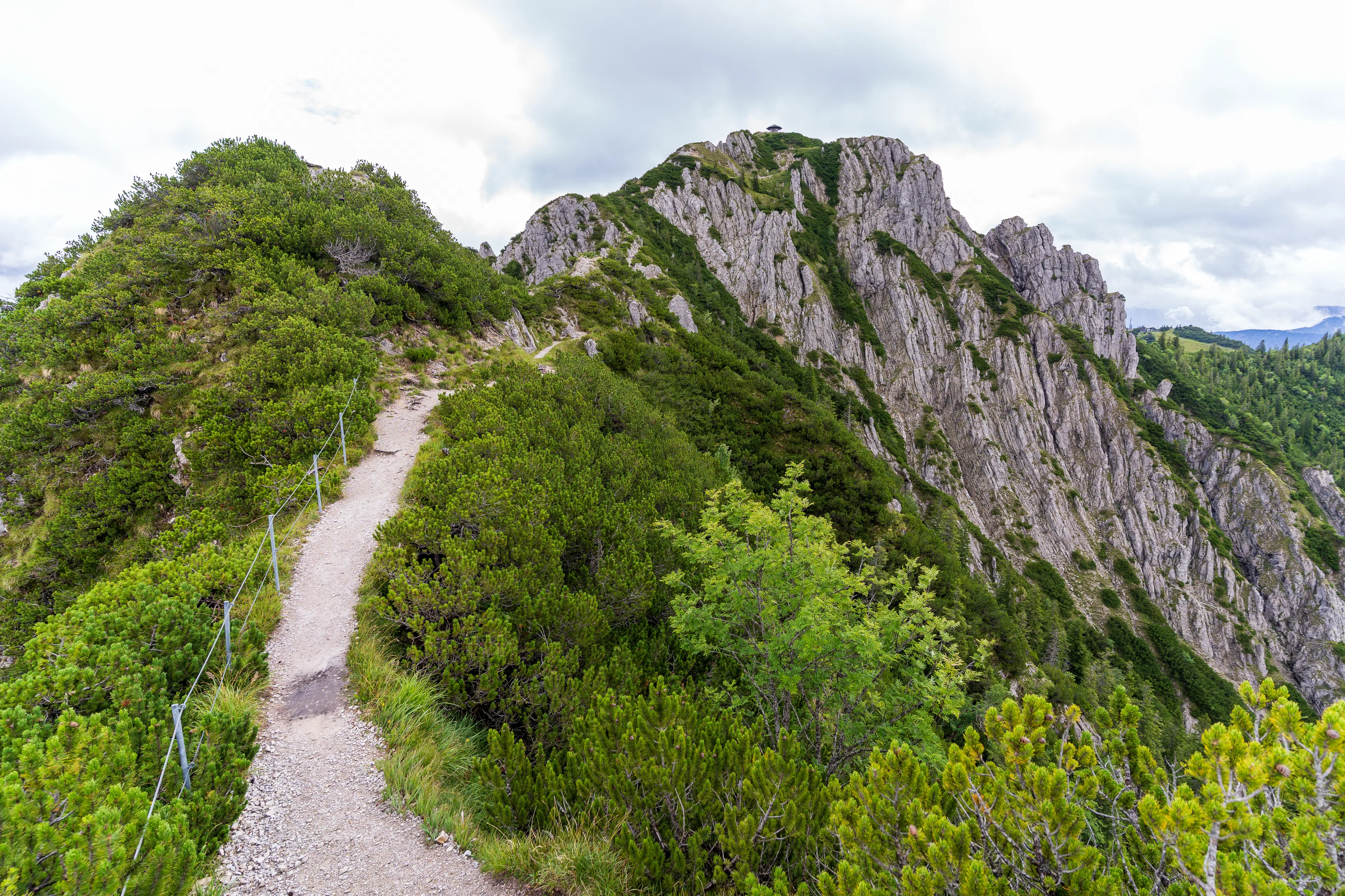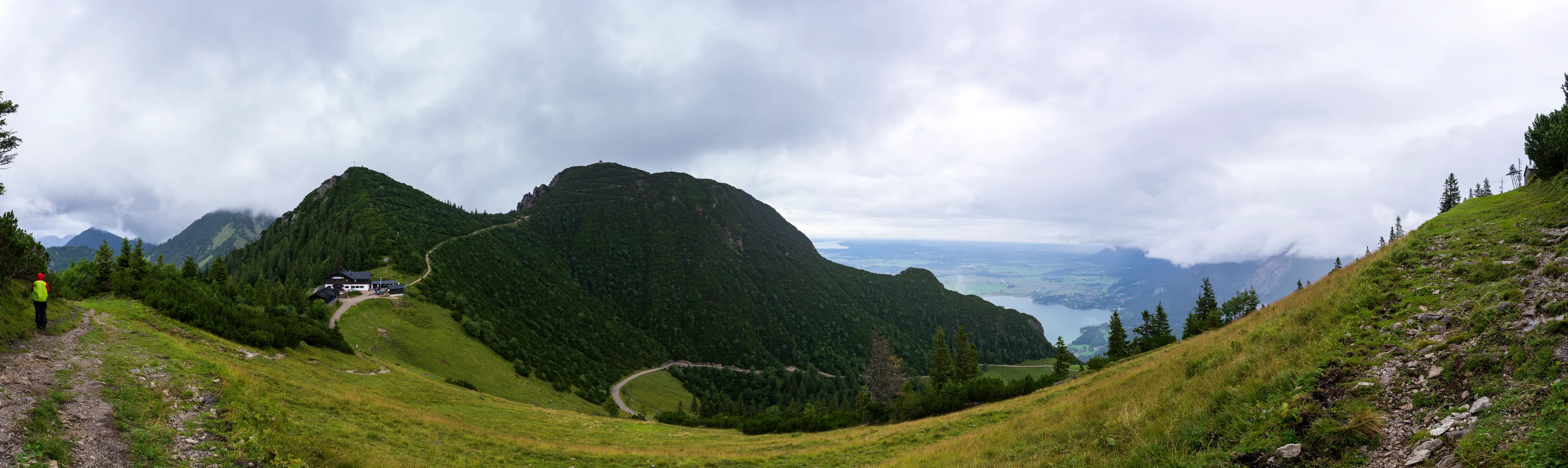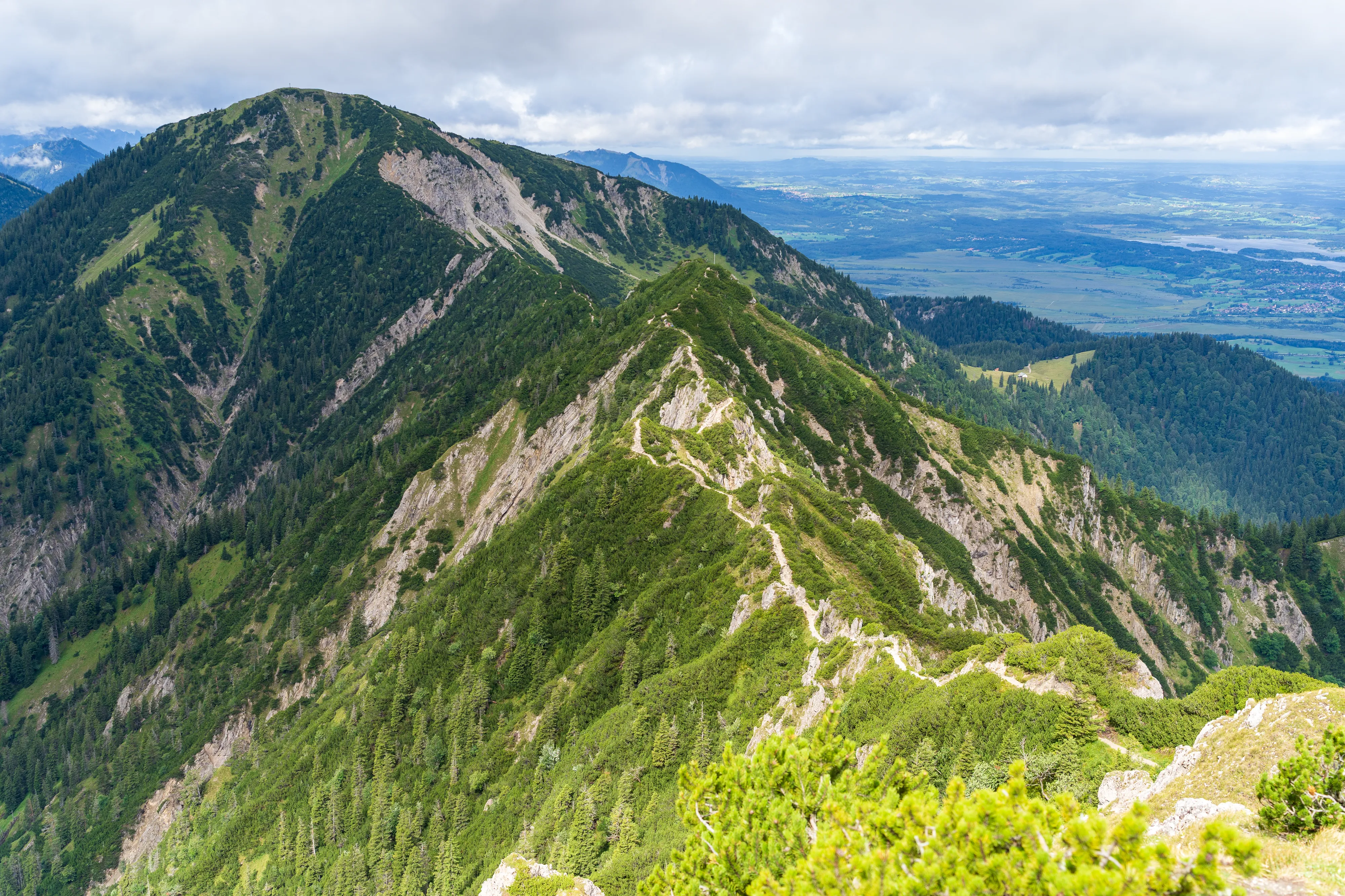 Auf dieser Tour wandeln wir auf den Spuren von König Ludwig II., für viele der bayrische König schlechthin. Der Name geht allerdings nicht auf den schillernden König und Erbauer von Neuschwanstein und anderen Schlössern, sondern auf zwei frühere Regenten, die Herzöge Wilhelm IV. und Ludwig X., zurück. Er entstand 1535 als Bayern noch Herzogtum und nicht Königreich war. Einen ikonischen Aussichtspunkt wie den heutigen gibt es seit spätestens 1865. Was aber hat Ludwig II. mit dem Herzogstand zu tun? Nun, er schien ihm recht zugewandt, denn er ließ sich etwas unterhalb eine Jagdhütte, das “Königshaus”, errichten. Und die Begeisterung all dieser hochgestellten Persönlichkeiten können wir absolut nachvollziehen - auch wenn wir leider absolut kein Kaiserwetter haben, sondern fortlaufend zwischen Regenschutz (Jacke an) und Belüftung (Jacke aus) abwägen müssen.