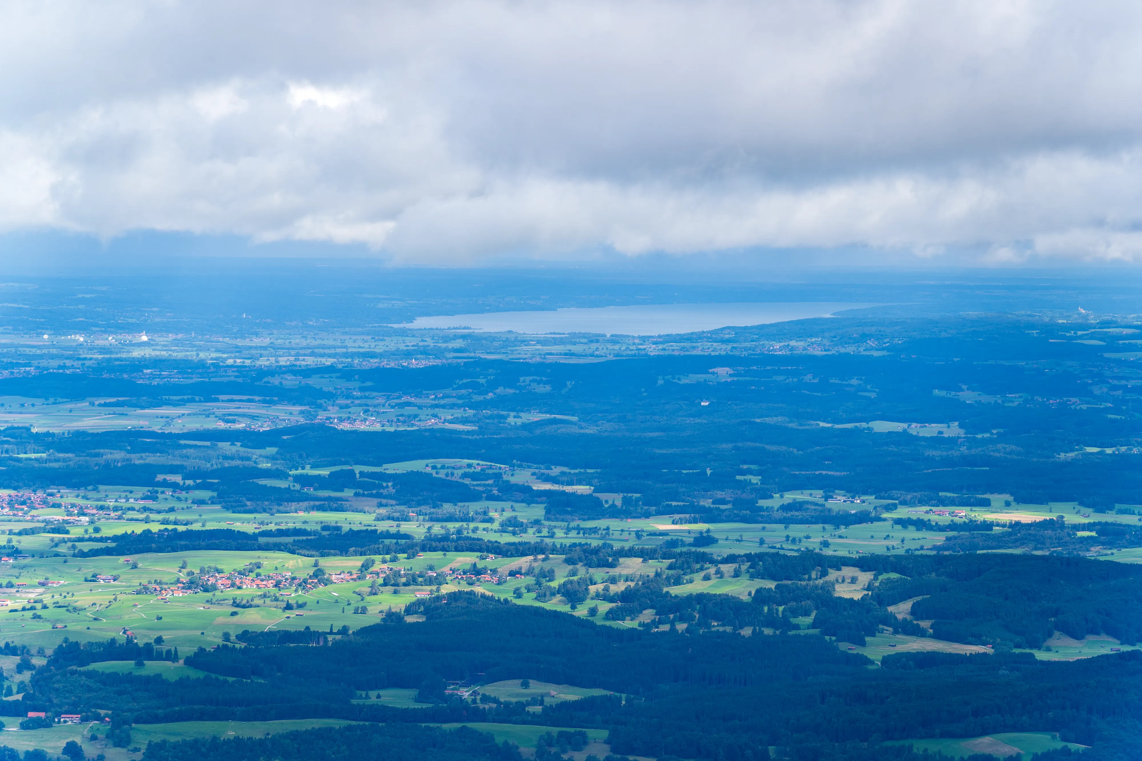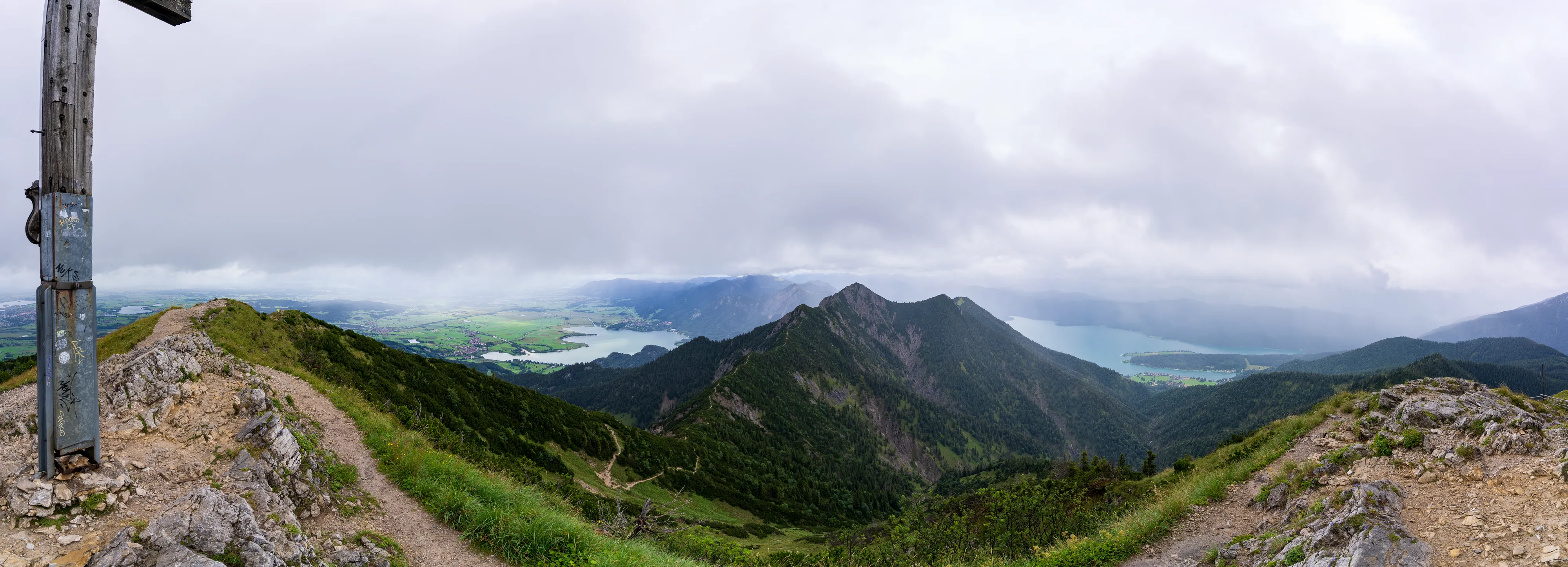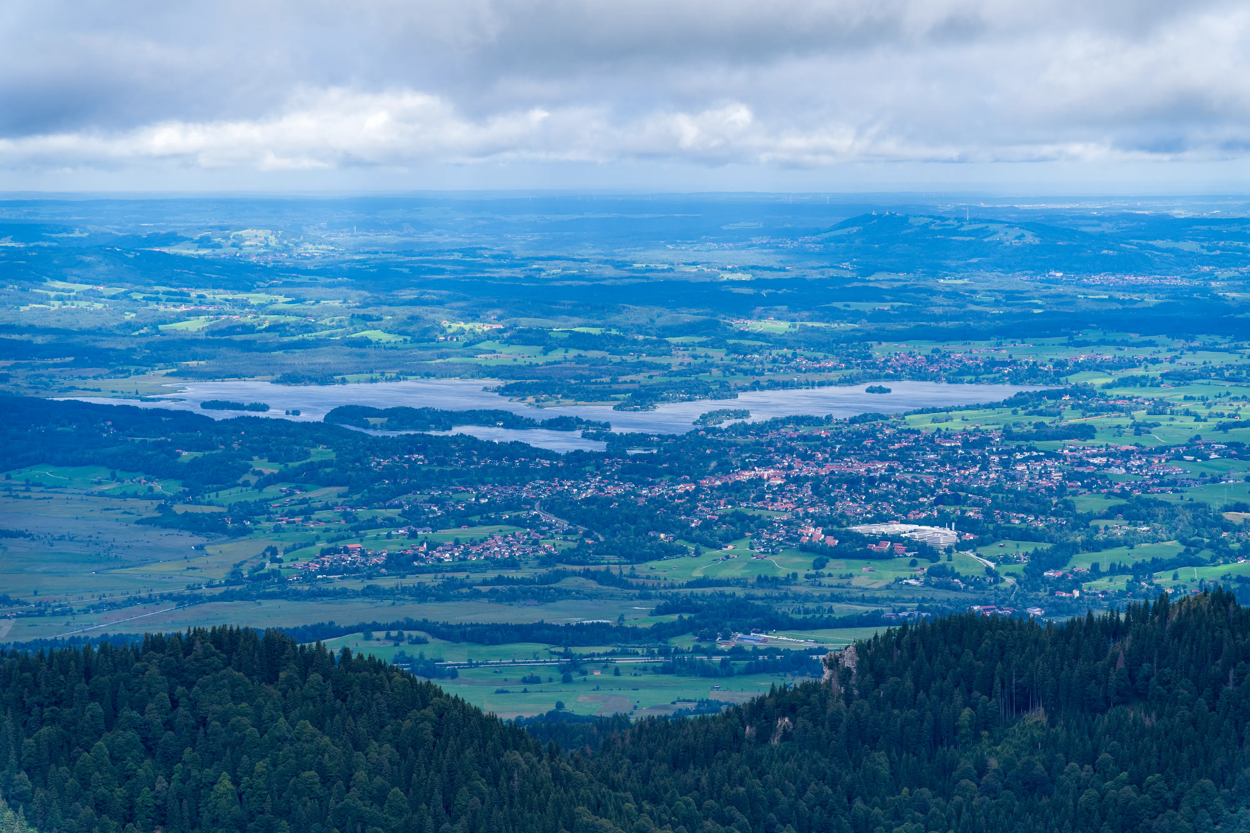 Von hier aus kann man alle größeren Seen des westlichen Oberlandes sehen. In ihrer Reihenfolge von links nach rechts: Staffelsee, Riegsee, Ammersee, Starnberger See, Kochelsee und Walchensee.