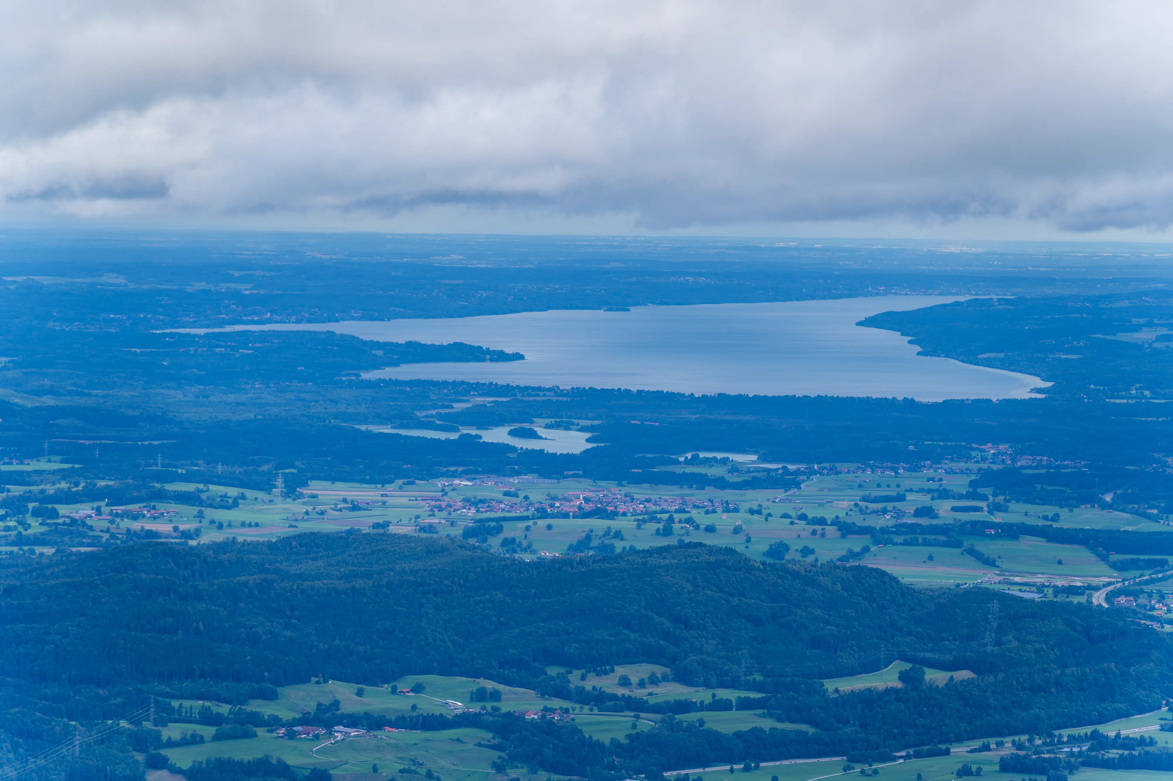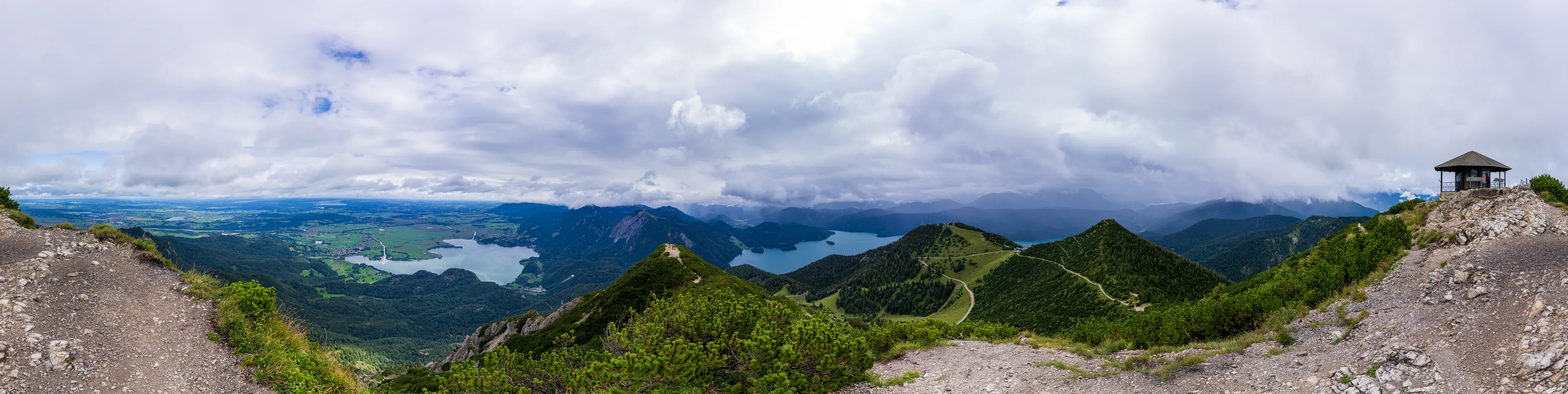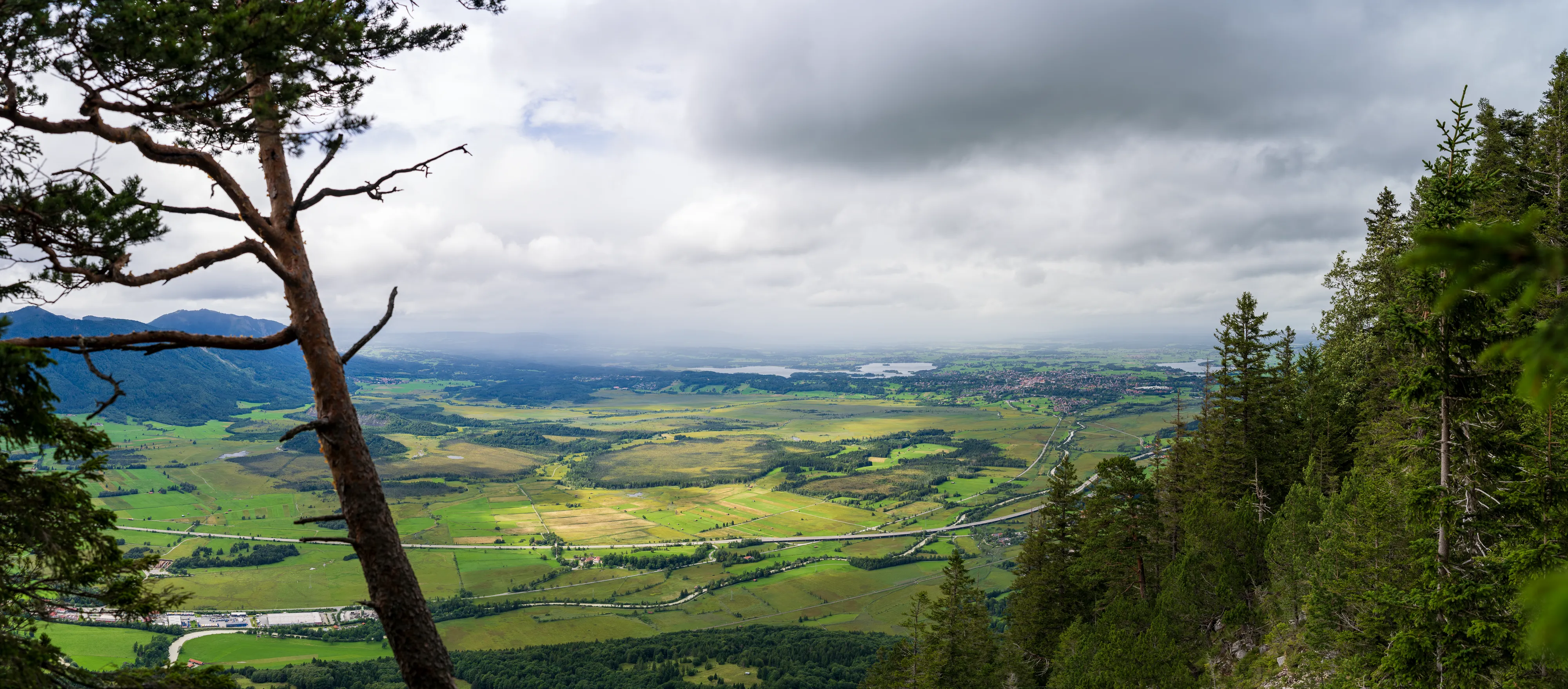 Von hier aus kann man alle größeren Seen des westlichen Oberlandes sehen. In ihrer Reihenfolge von links nach rechts: Staffelsee, Riegsee, Ammersee, Starnberger See, Kochelsee und Walchensee.