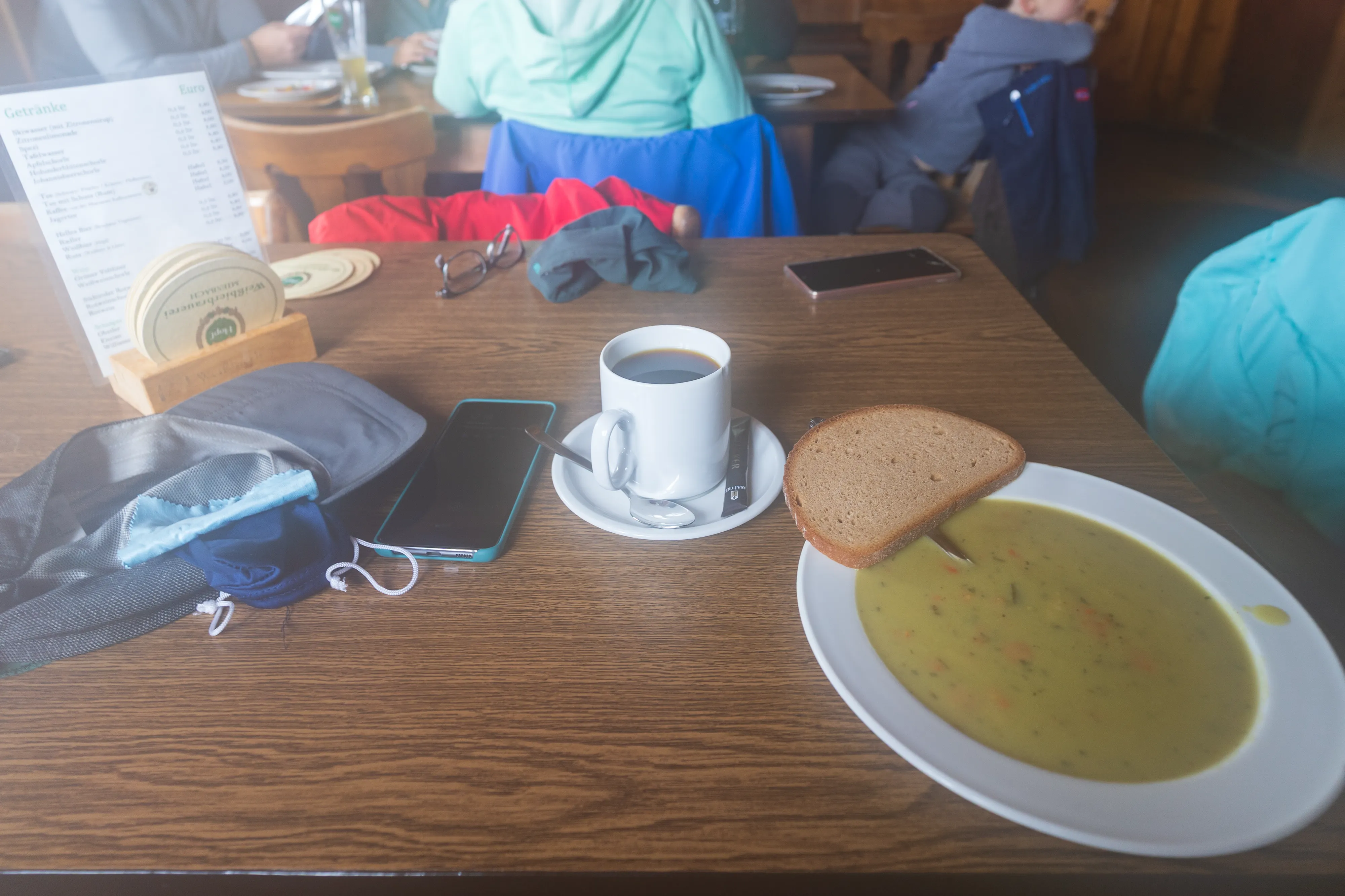“Nachmittäglicher” Kaiserschmarrn und dann später das Abendessen sind in Ordnung. Auch wenn es sich hier streng genommen nicht um eine Bergsteigerhütte handelt - nennt sich schließlich auch Berggasthaus - so ist es trotzdem recht urig. Umso mehr, da das Wetter sich nicht mehr bessert und wir das Haus heute nicht mehr verlassen.
