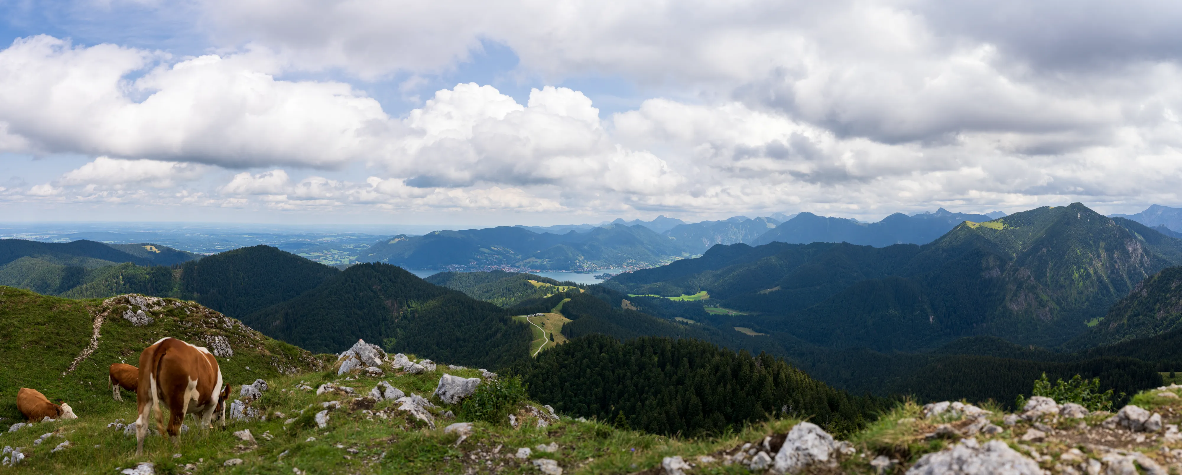 Wir wandern von dort über eine Vielzahl kleinerer Gipfel, hervorzuheben ist der Fockenstein, welcher einen schönen Rundumblick bietet, bis zur Lenggrieser Hütte. Die Tour ist mit Mittagspause auf der Aueralm und Fotostopps auf den Gipfeln in gut 8 Stunden geschafft. Nach einem recht steilen Aufstieg über Skipisten von Bad Wiessee aus wird es immer schöner. Man quert eine idyllisch gelegene Alm bzw. die diese umgebende Weide.