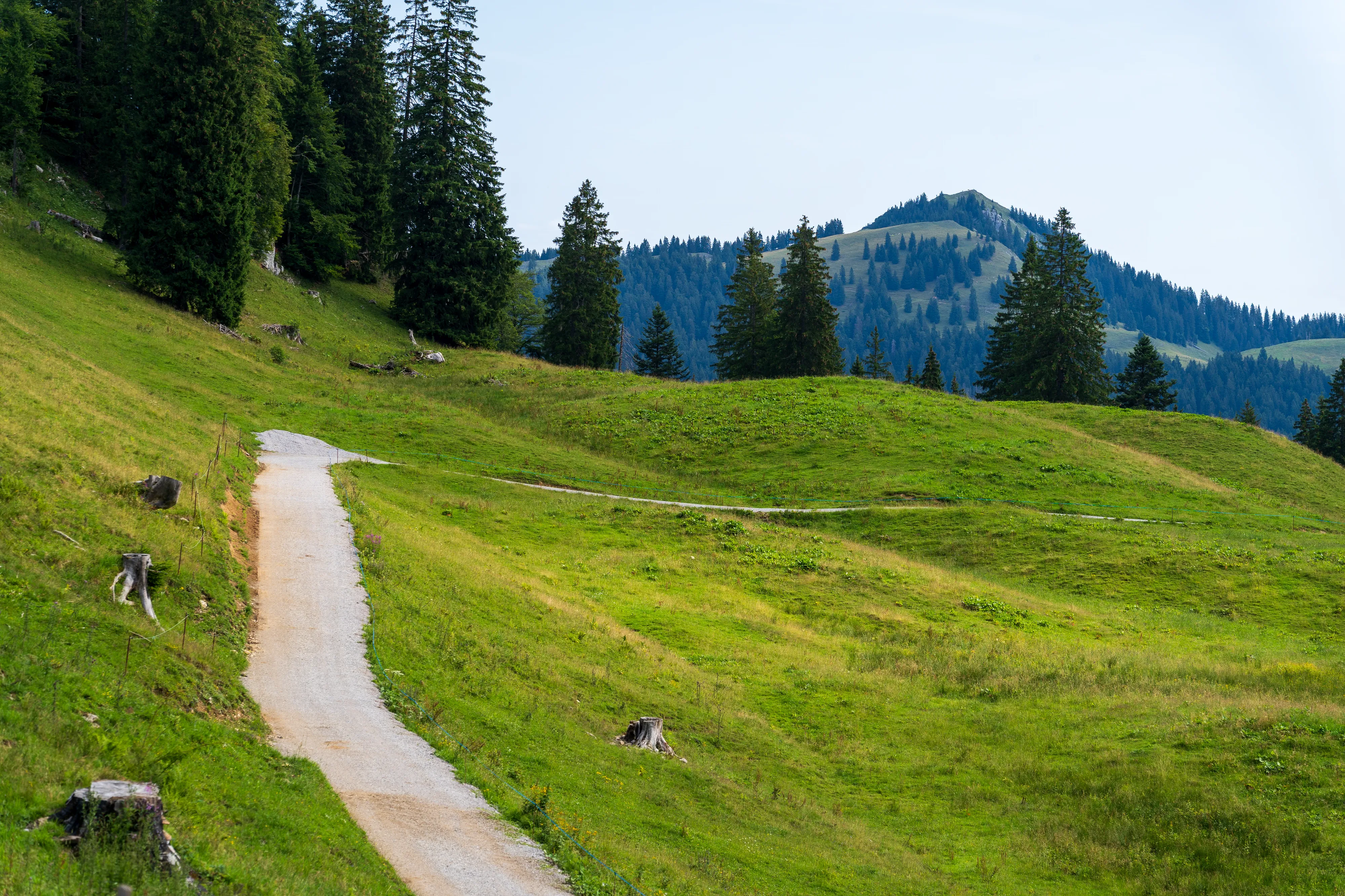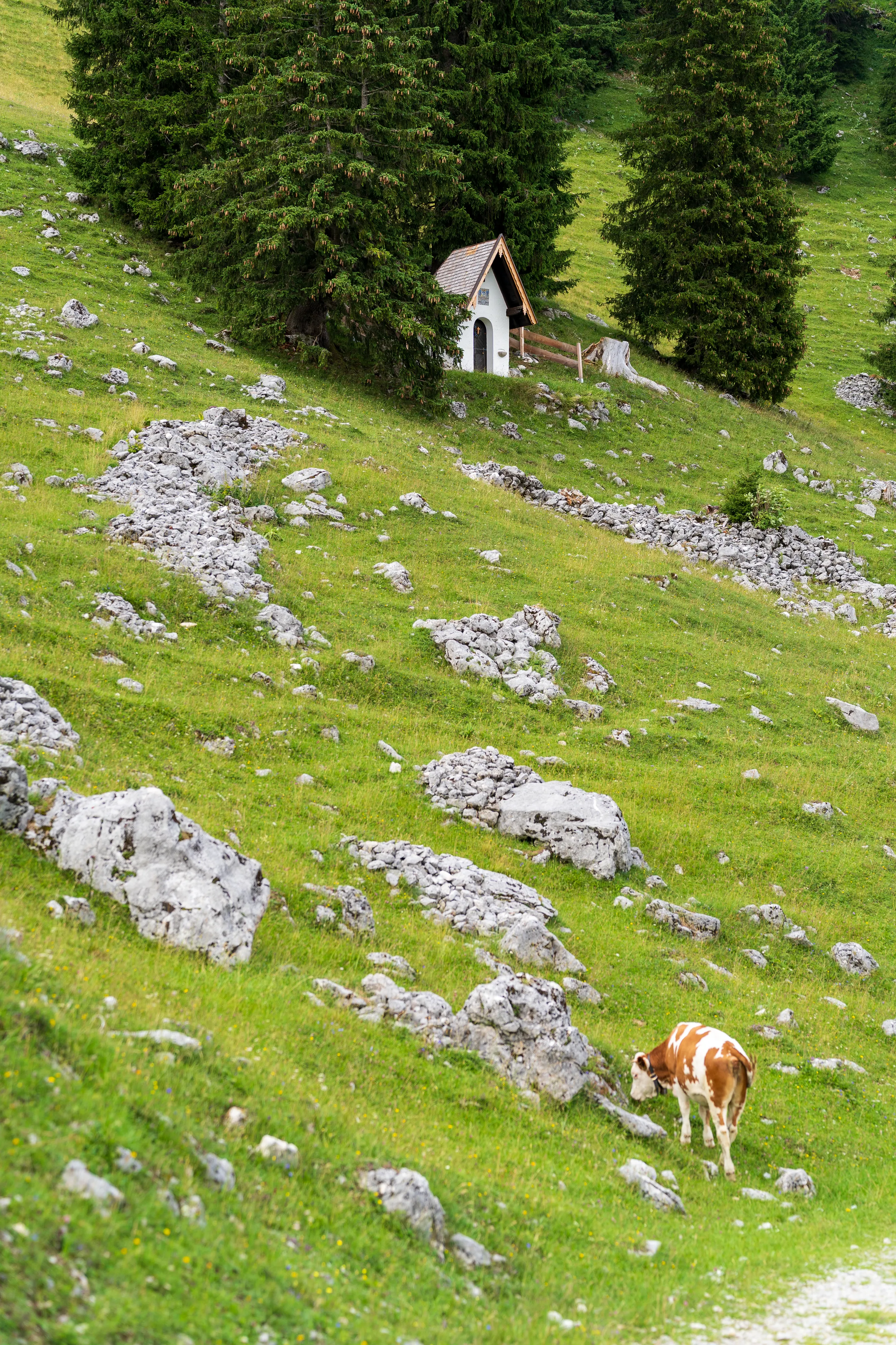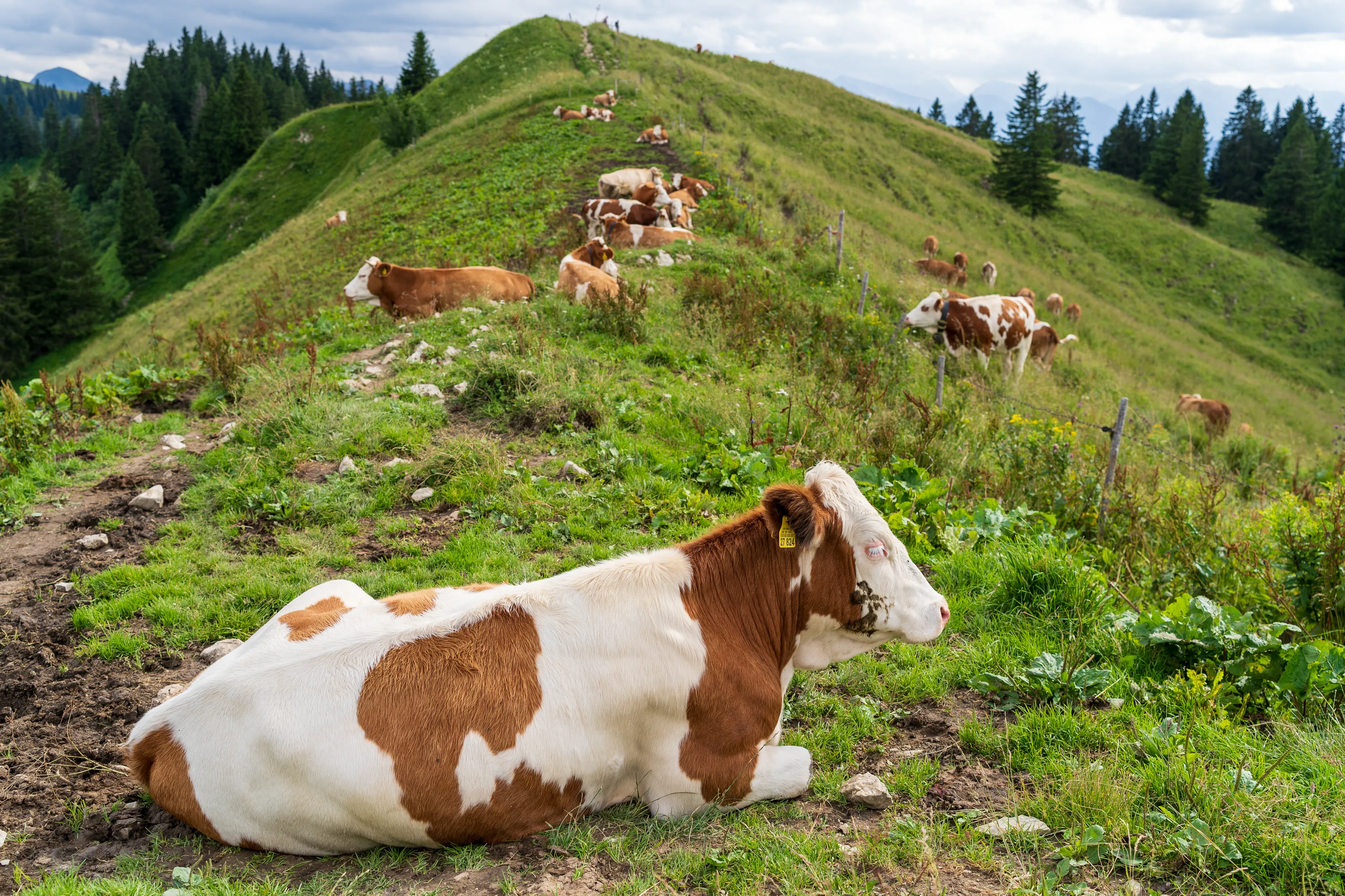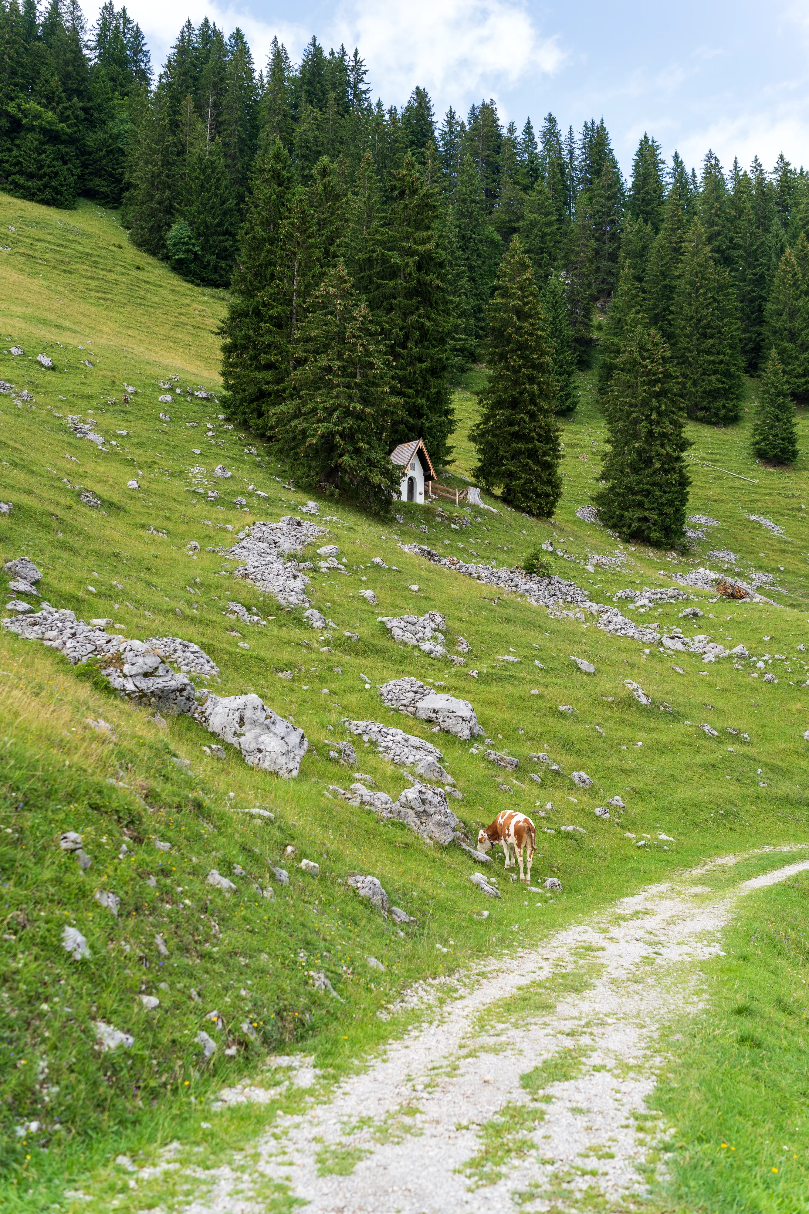 Nachdem man vom Fockenstein zum Hirschtal-Sattel abgestiegen ist, geht es nochmal steil zum Kampen mit seinen vielen, am Grat aufgereihten, Gipfeln hinauf. Diesen wandert man dann auf einem teils recht schmalen und exponierten Pfad entlang, quert einige weitere Rinderweiden und umgeht Gruppen von Weidevieh, das es sich auf dem Weg bequem gemacht hat, bevor man schließlich zur Lenggrieser Hütte absteigt.