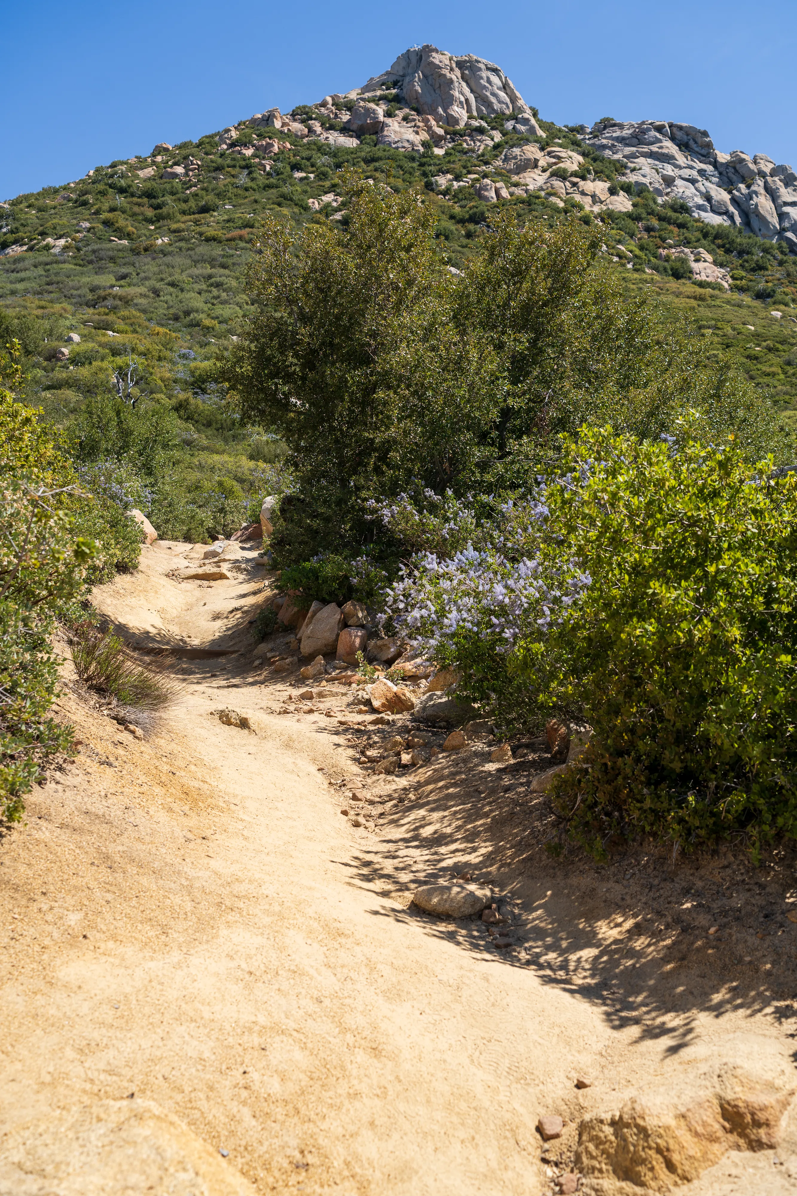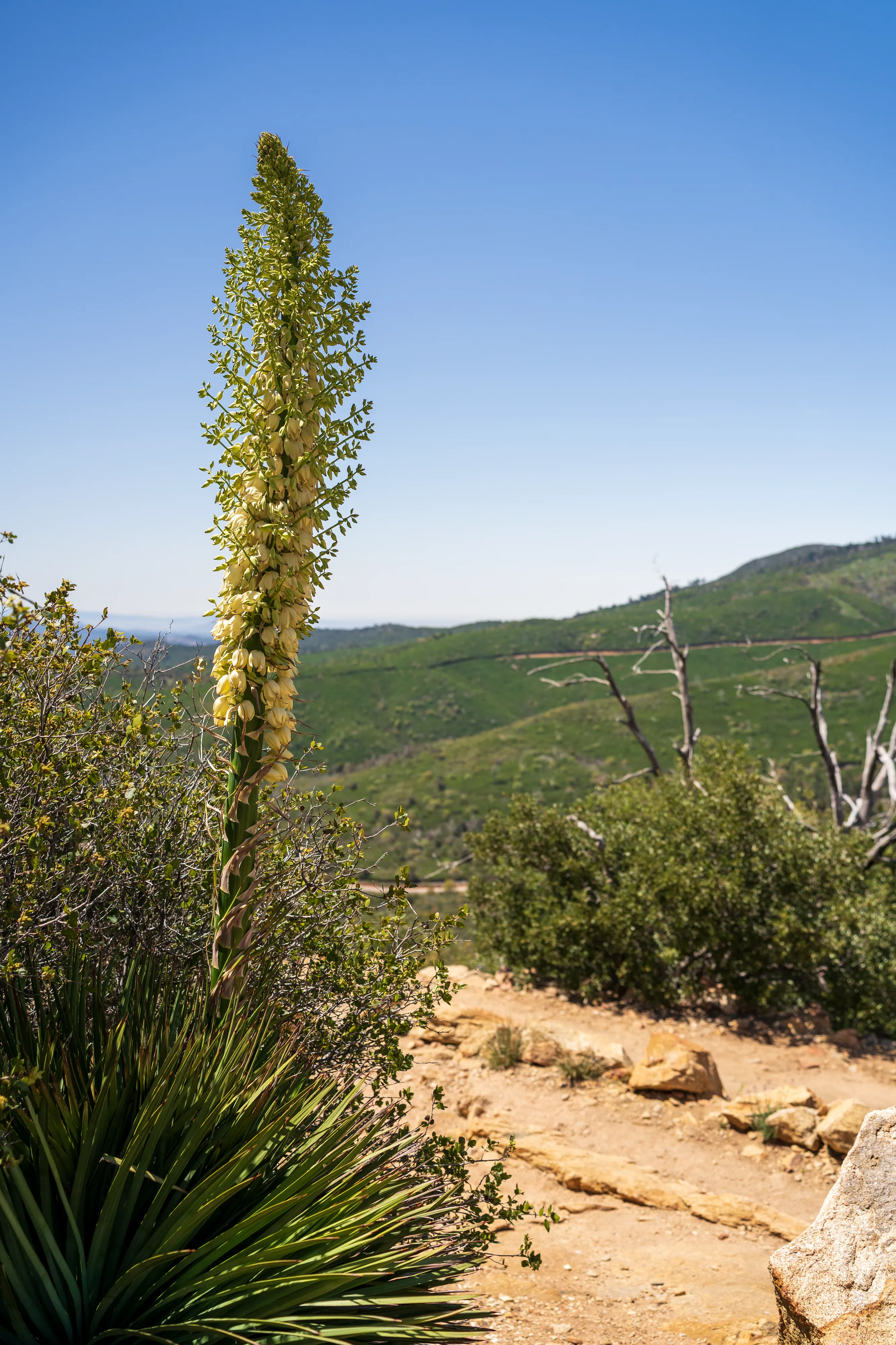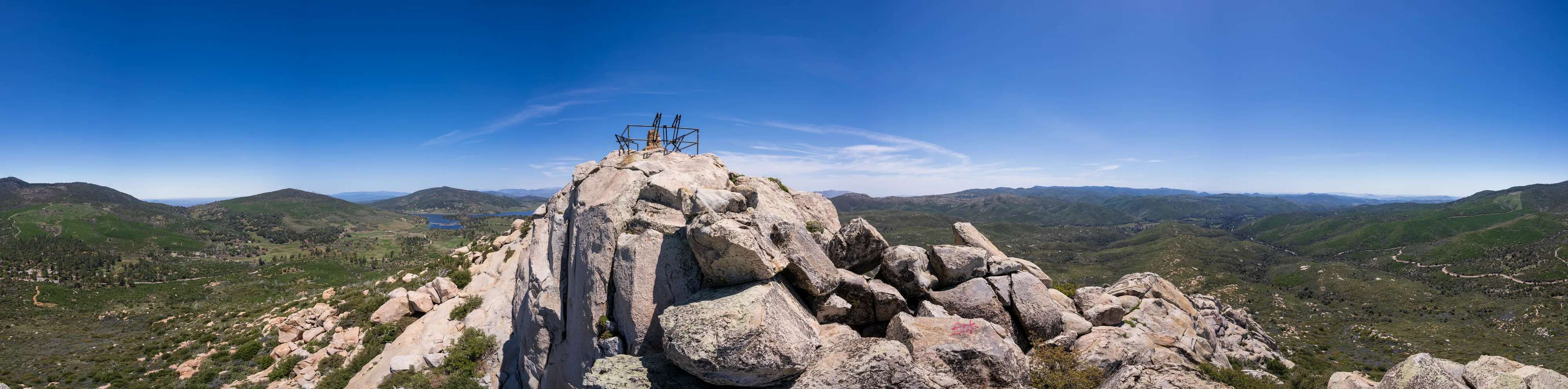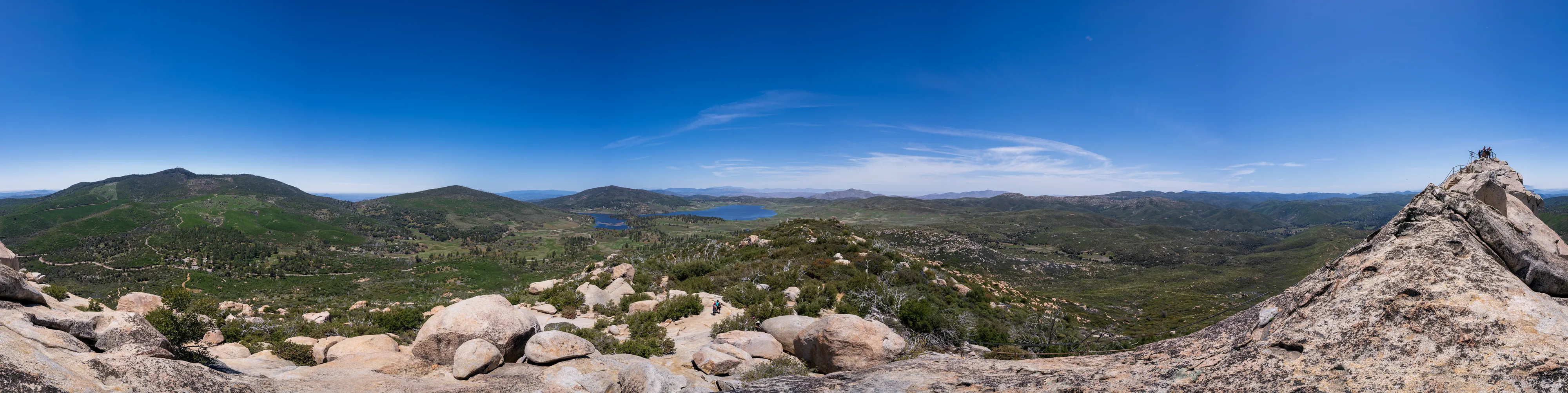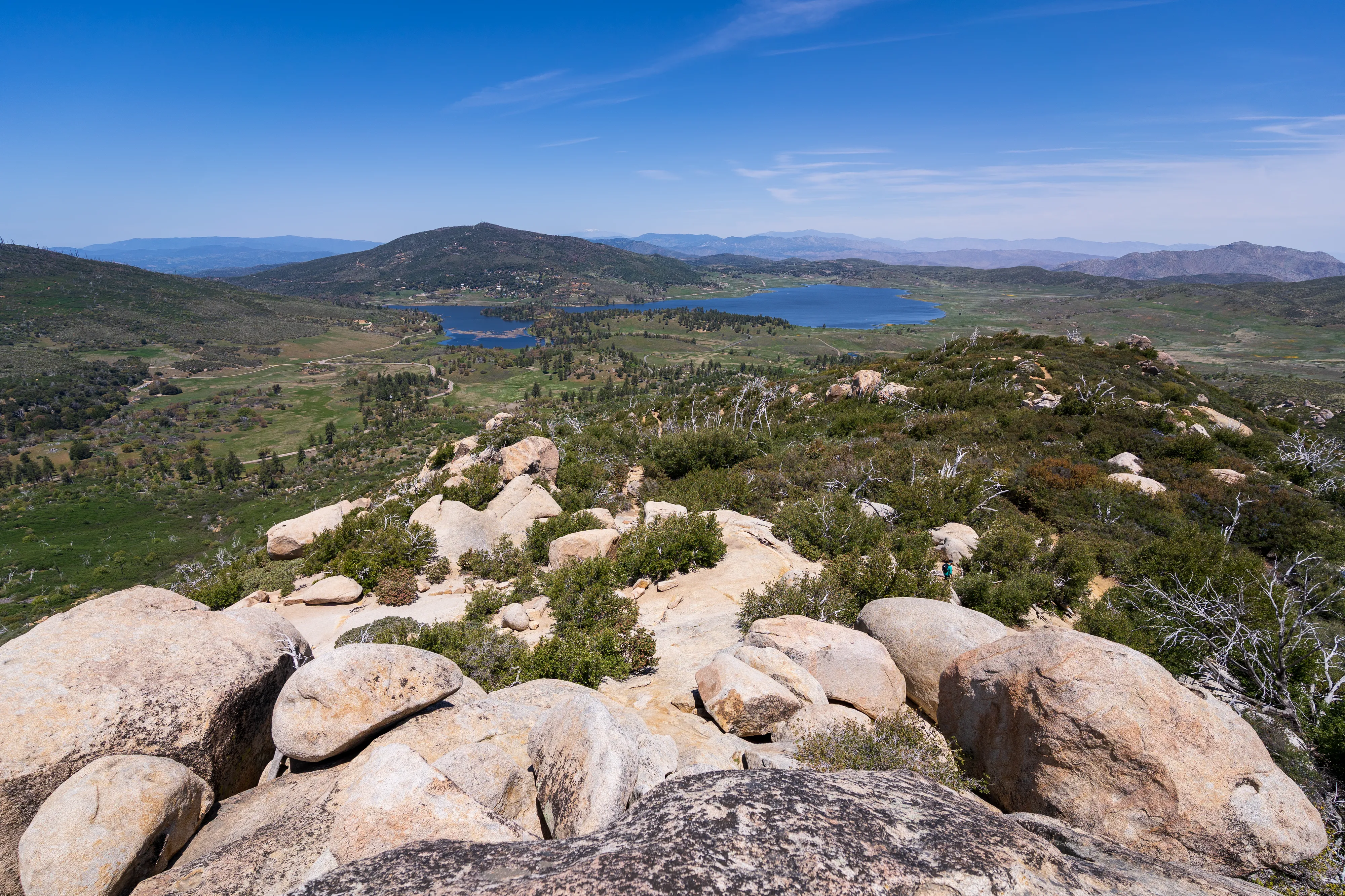 Morgens wandern wir auf den gegenüber des Campingplatzes gelegenen Stonewall Peak. Die Weg schlängelt sich gemächlich den Berg hinauf. Oben angekommen hat man eine traumhafte Aussicht über die Cuyamaca Mountain Wilderness und den Lake Cuyamaca sowie den Cleveland National Forest.