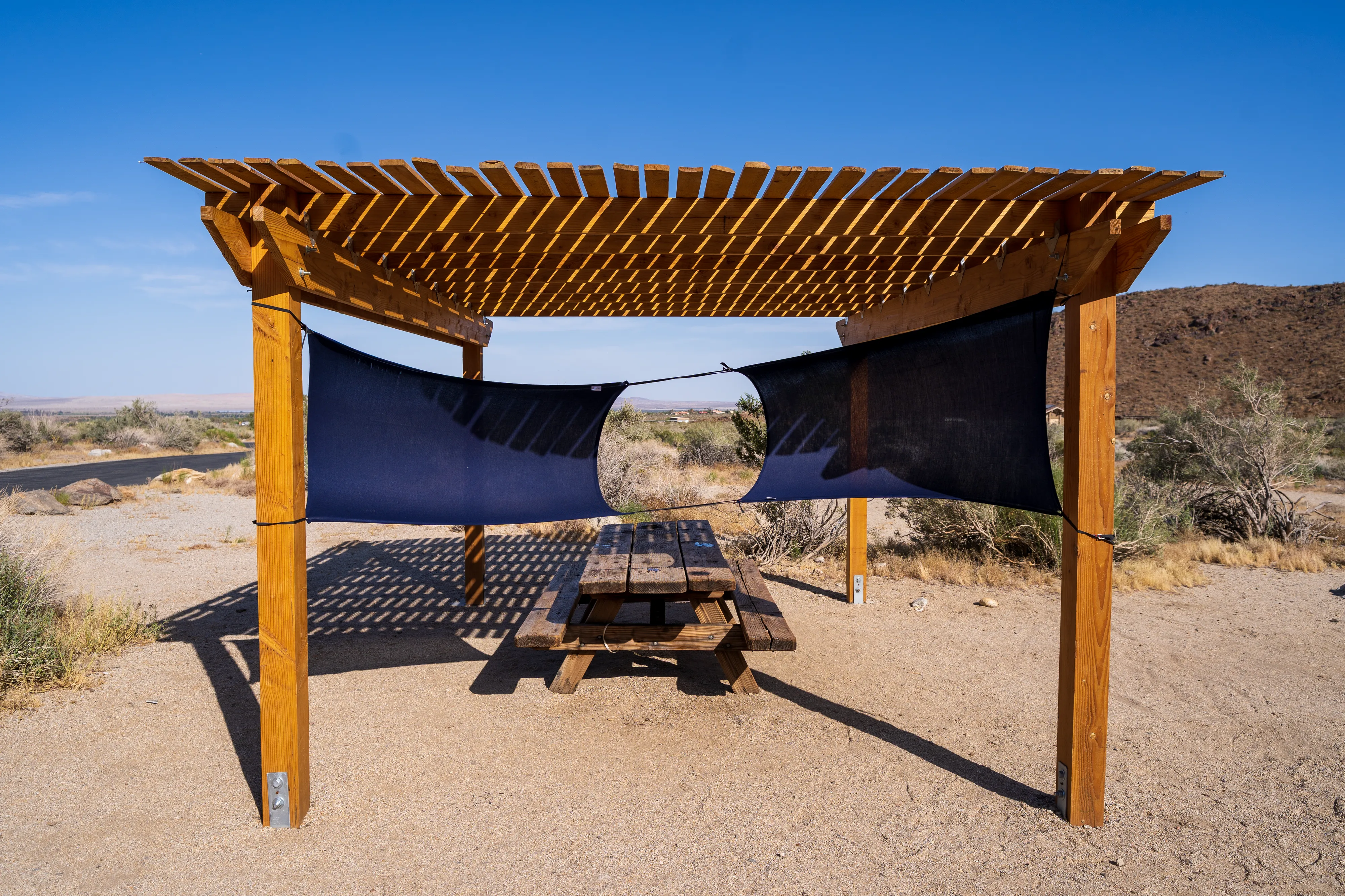 Unser, nur mit wenig Erfolg belohnter, Versuch ein schattiges, windgeschütztes Plätzchen zu schaffen. 🙈