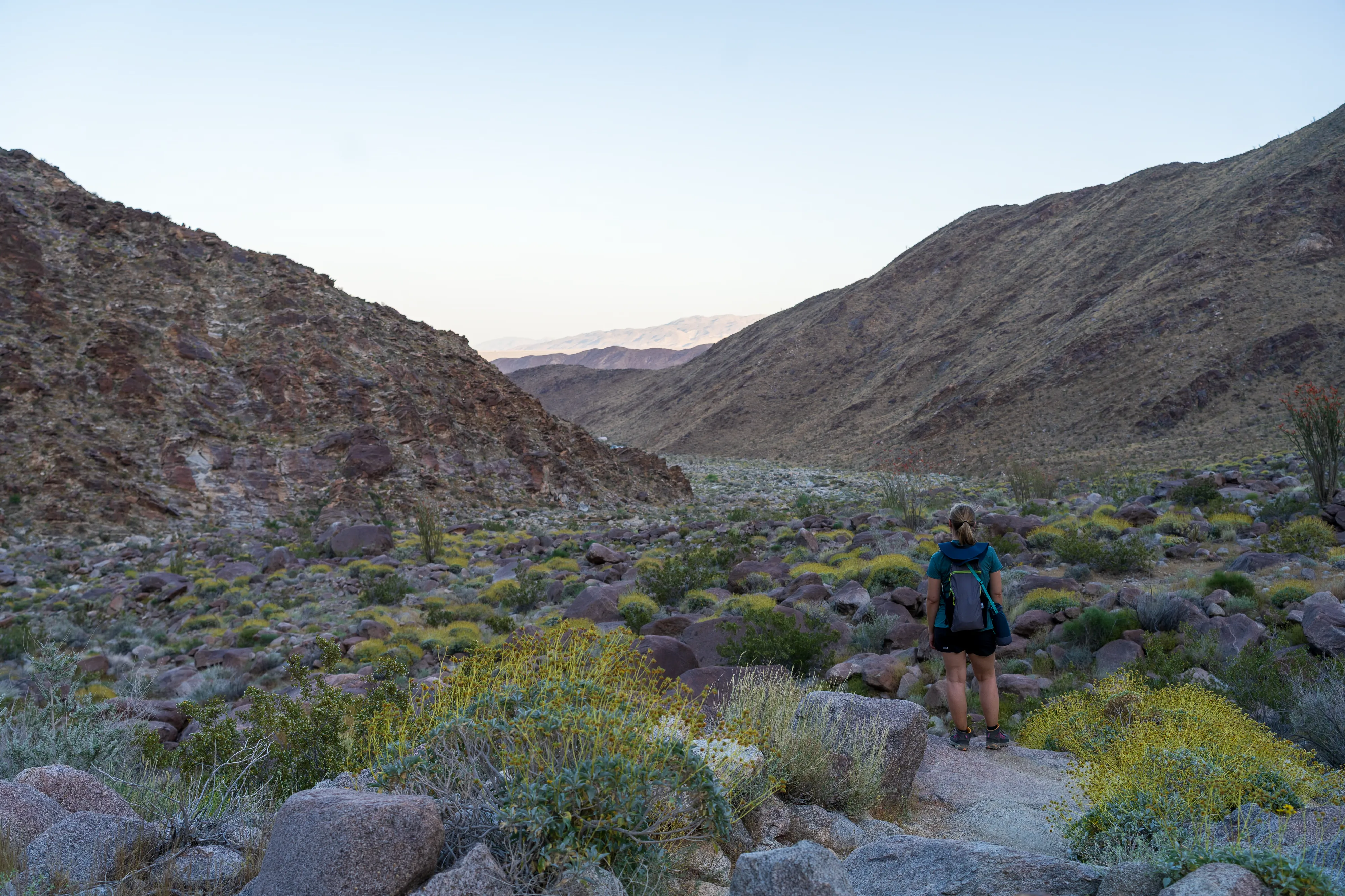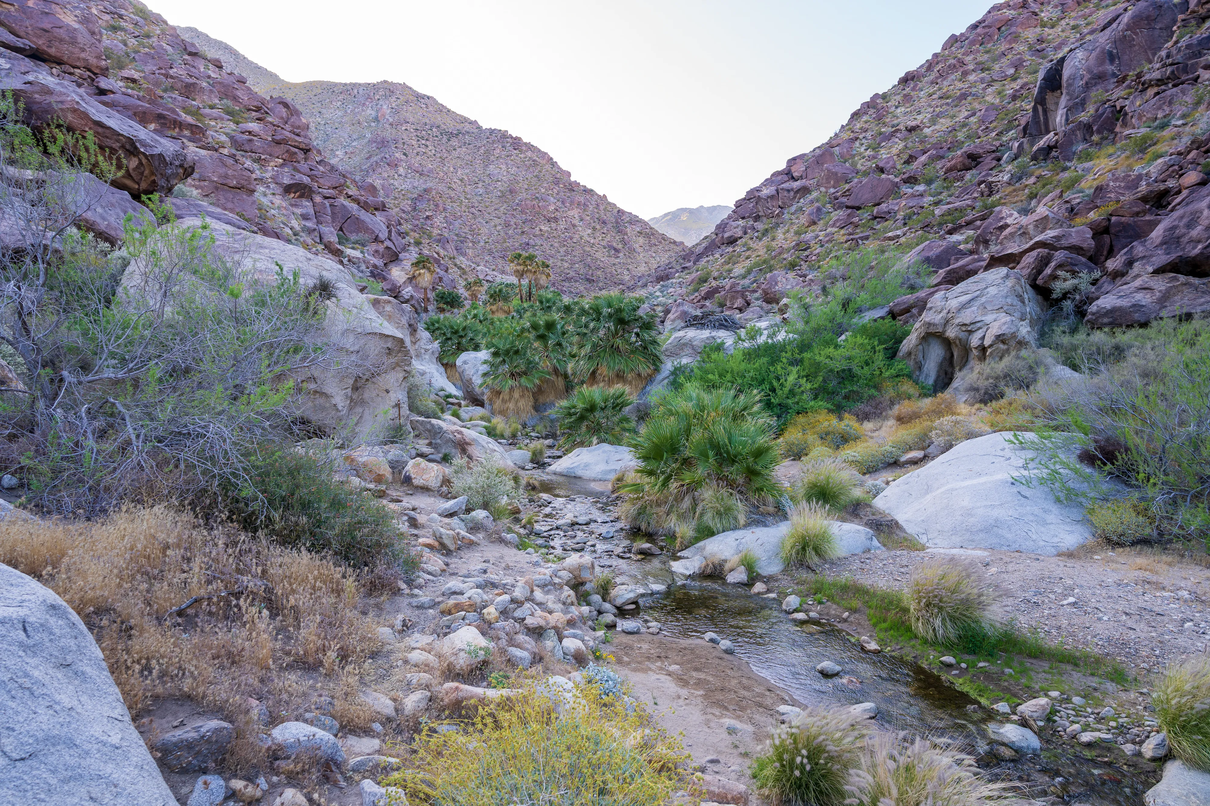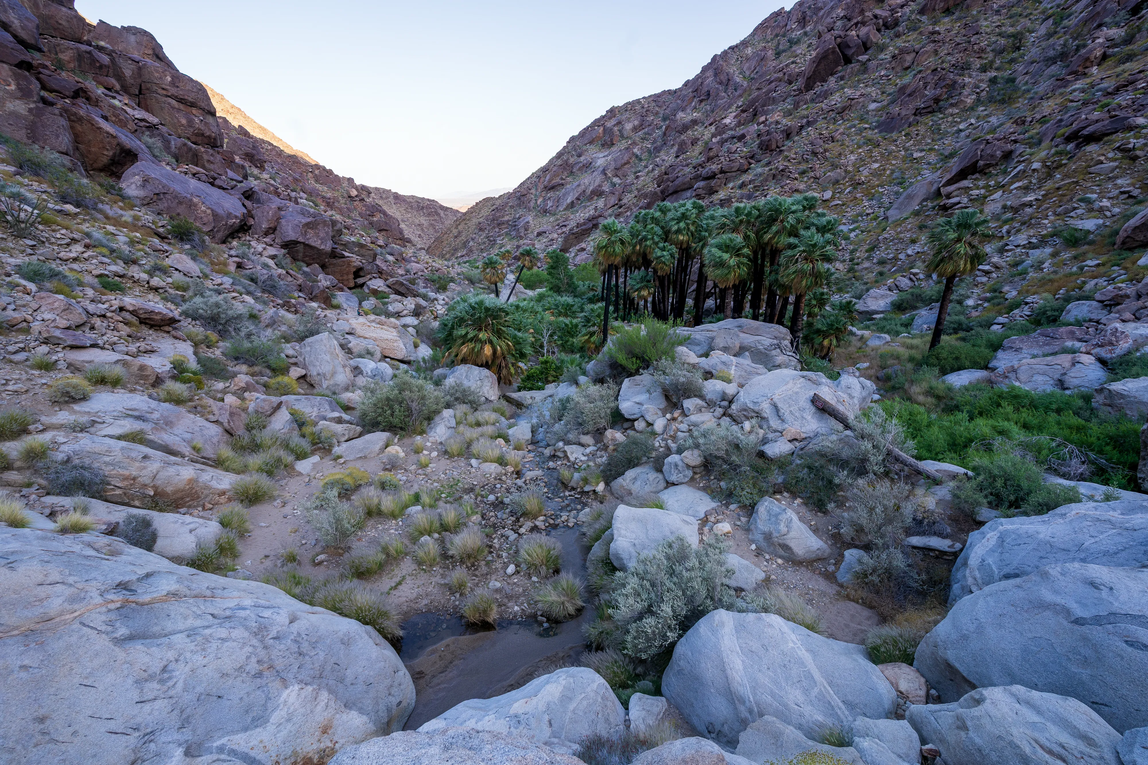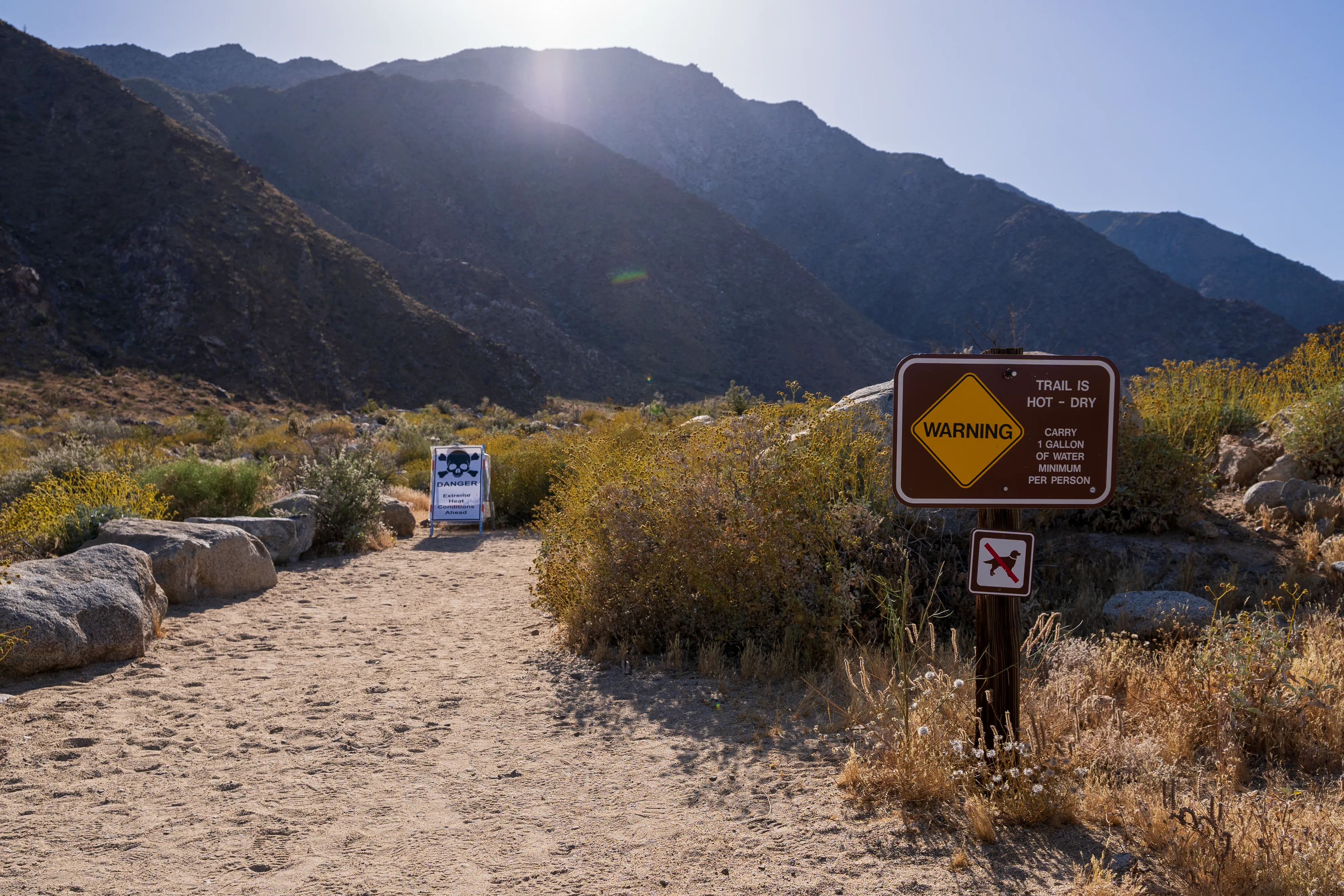 Da wir die Oase gerne noch im Licht sehen würden und am nächsten Morgen keine Zeit haben, müssen wir den Rat des Rangers leider ignorieren und machen uns am späten Nachmittag an den Palm Canyon Trail.