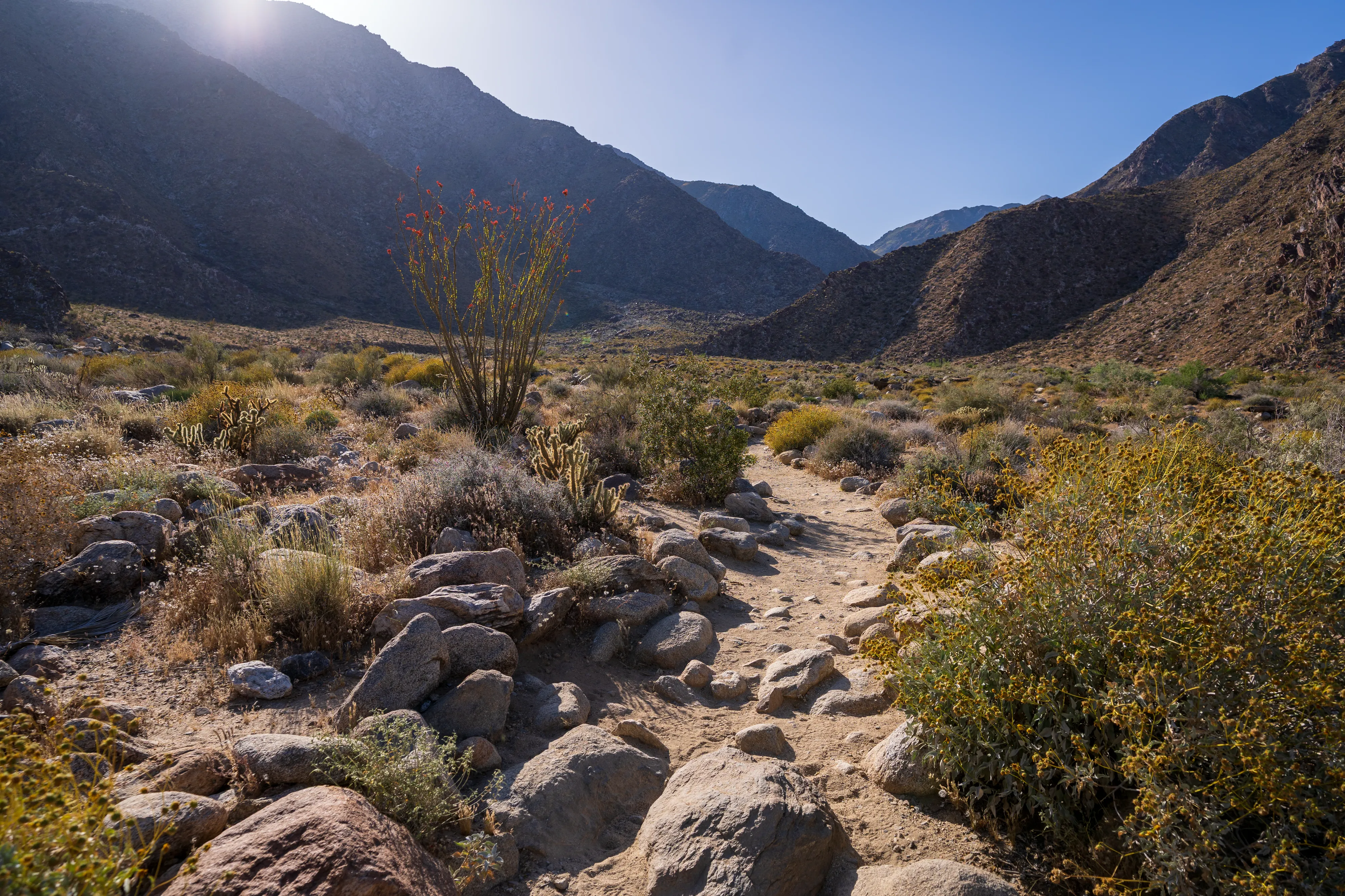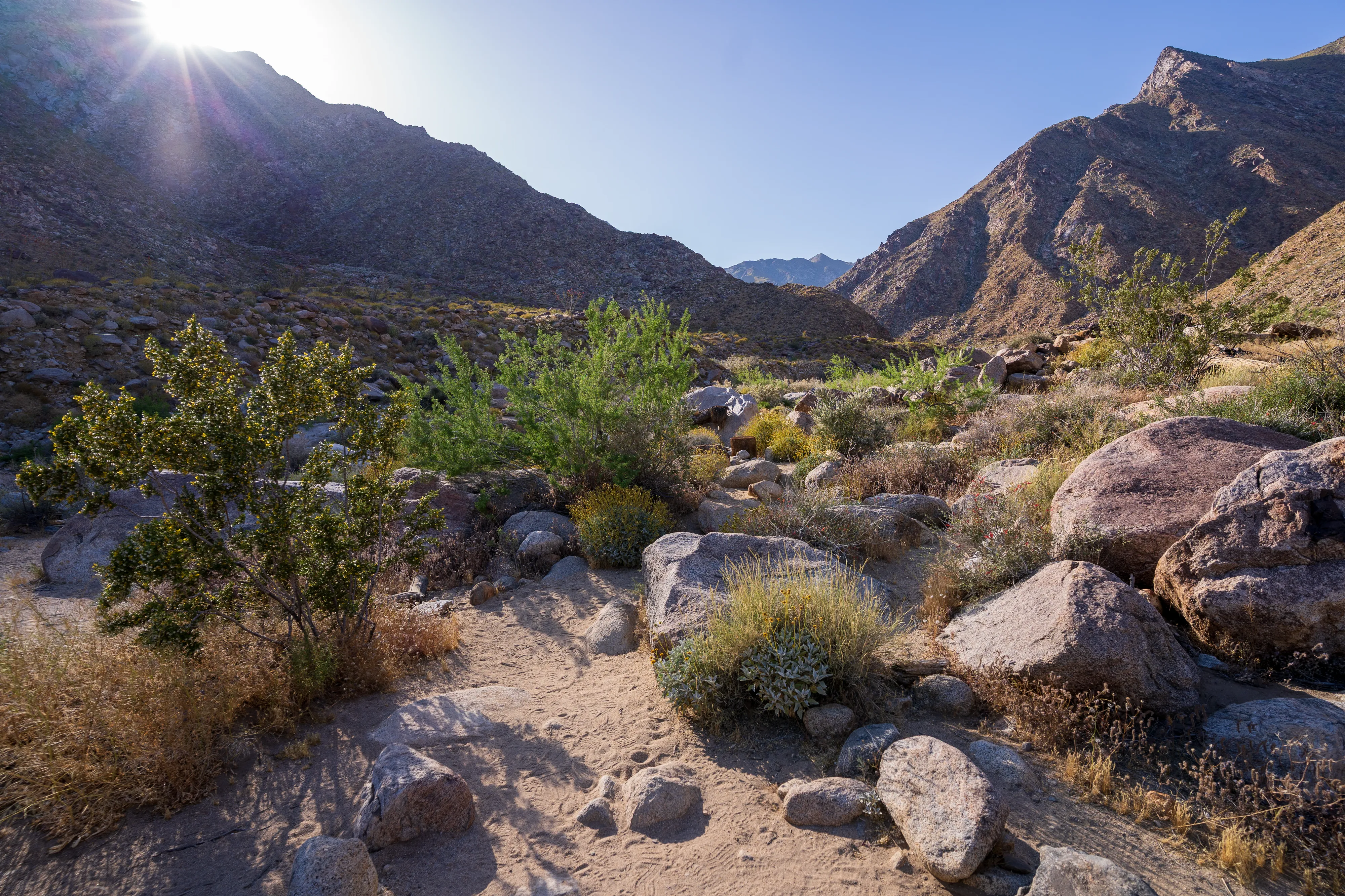 Wir fahren zum Campingplatz des State Parks, welcher außer den Stellplätzen im Grunde nur einen Trail umfasst: den Palm Canyon Trail.