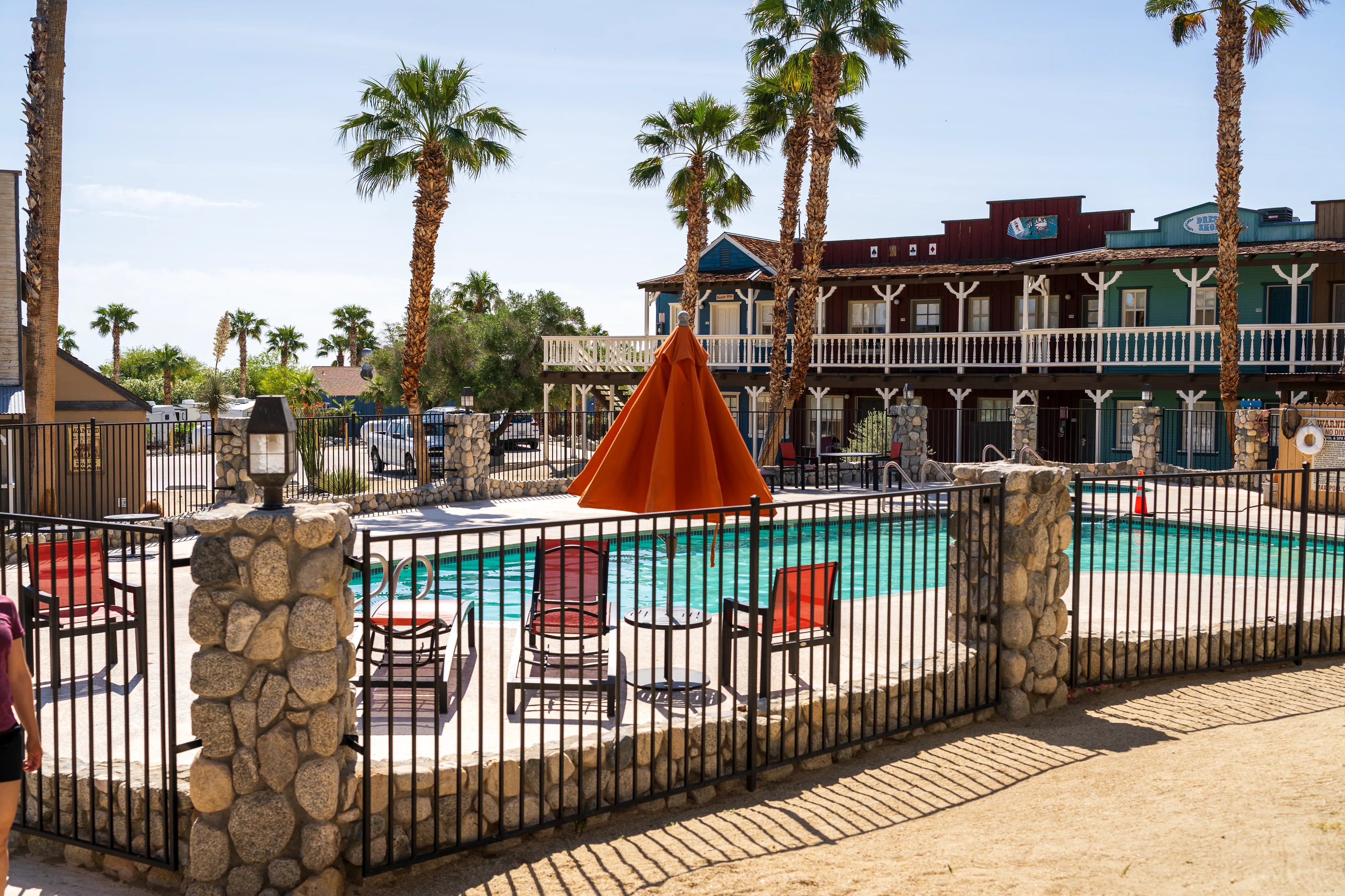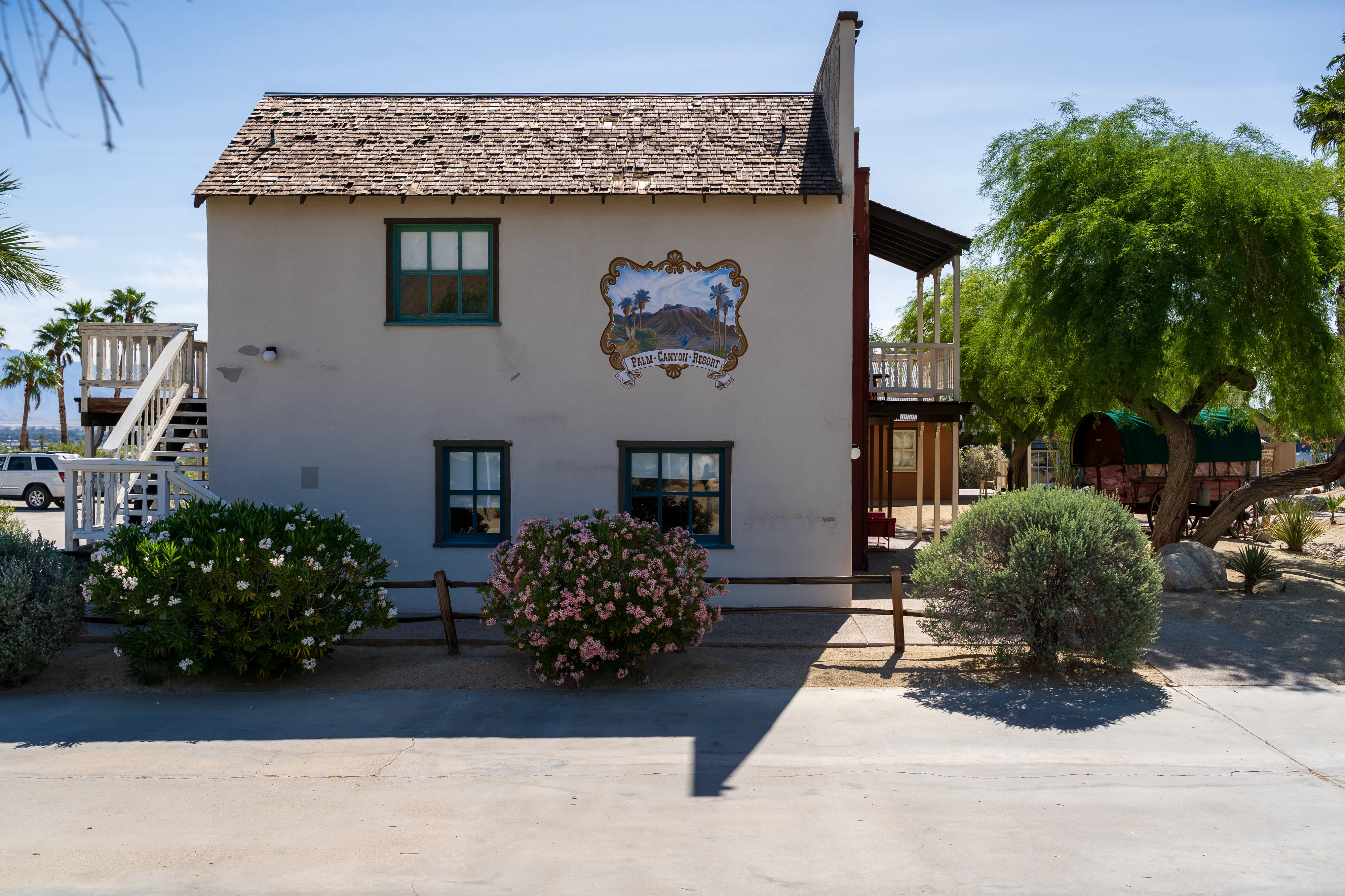 Wir fahren nach dem Frühstück von Borrego Springs durch die “Badlands” über Palm Springs nach Yucca Valley bis zum Joshua Tree Nationalpark. Wir sind noch keine 5 Minuten gefahren, da entdecken wir auch schon den ersten interessanten Stopp: das Palm Canyon Resort, ein Hotel, das aussieht wie ein Western-Filmset.