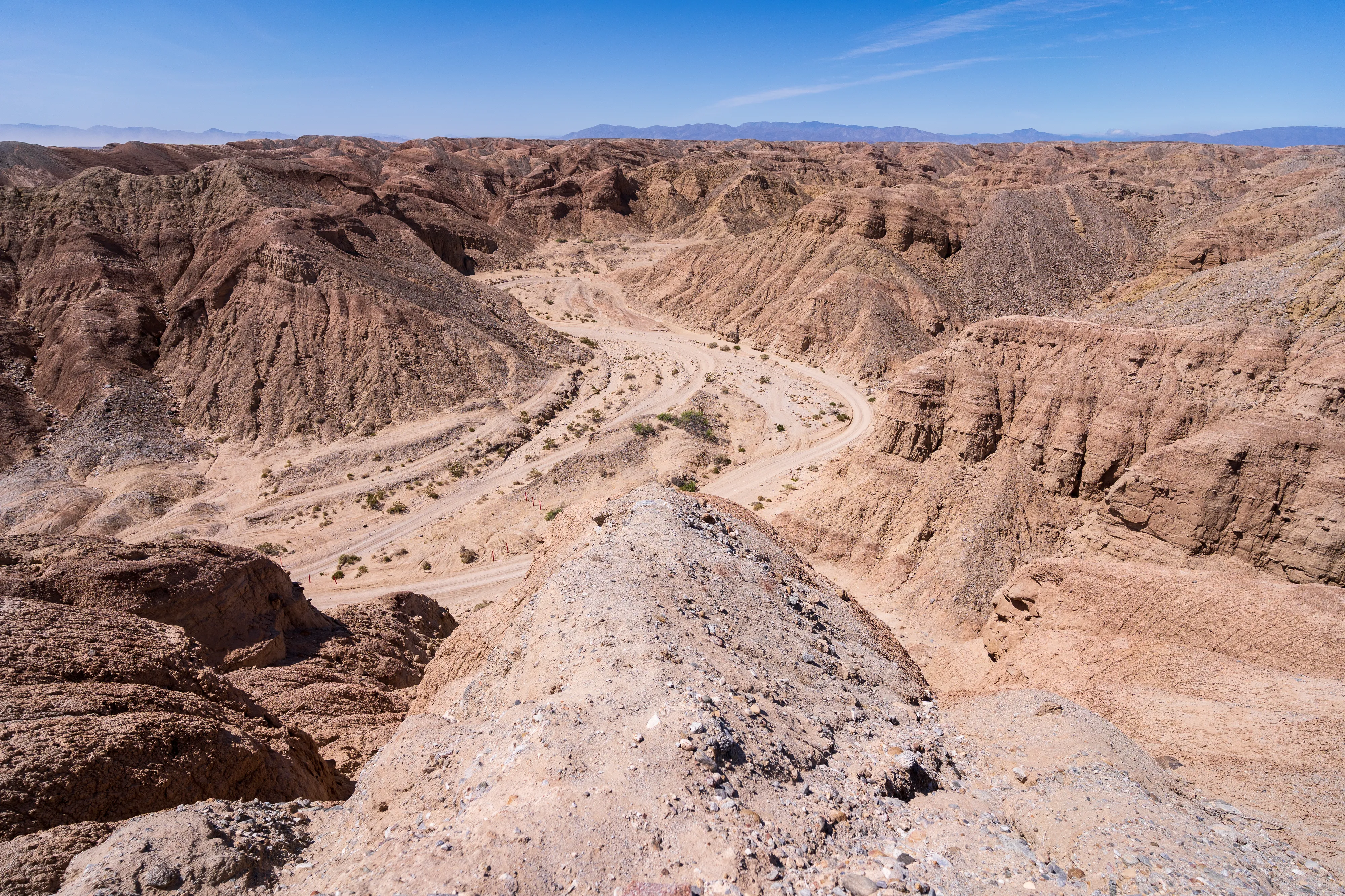 Brütende Hitze und Sandstürme im Tal - Schnee auf den Berggipfeln. Dementsprechend heißt das National Monument, auf welches wir hir schauen, Sand to Snow National Monument. Der Gipfel des San Giorgio Mountain ist mit beachtlichen 3506 m der höchste ganz Südkaliforniens.