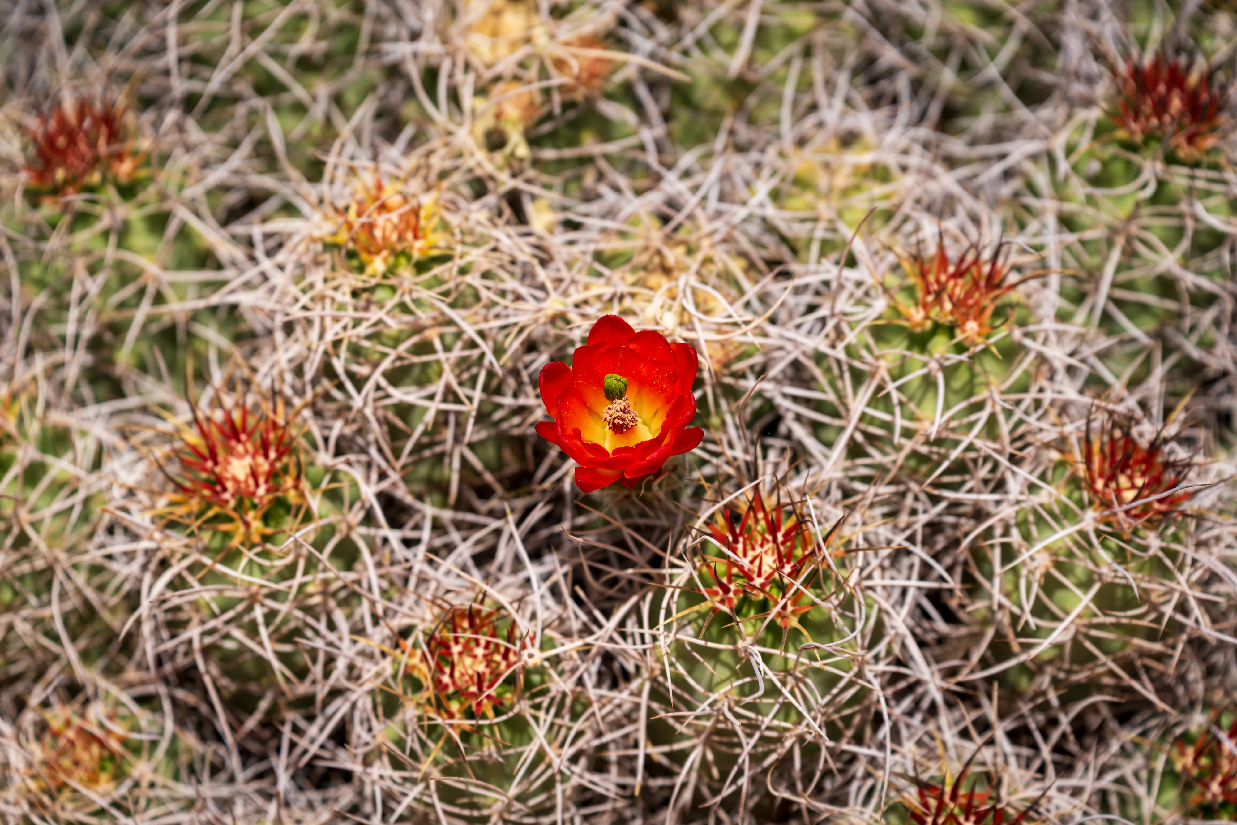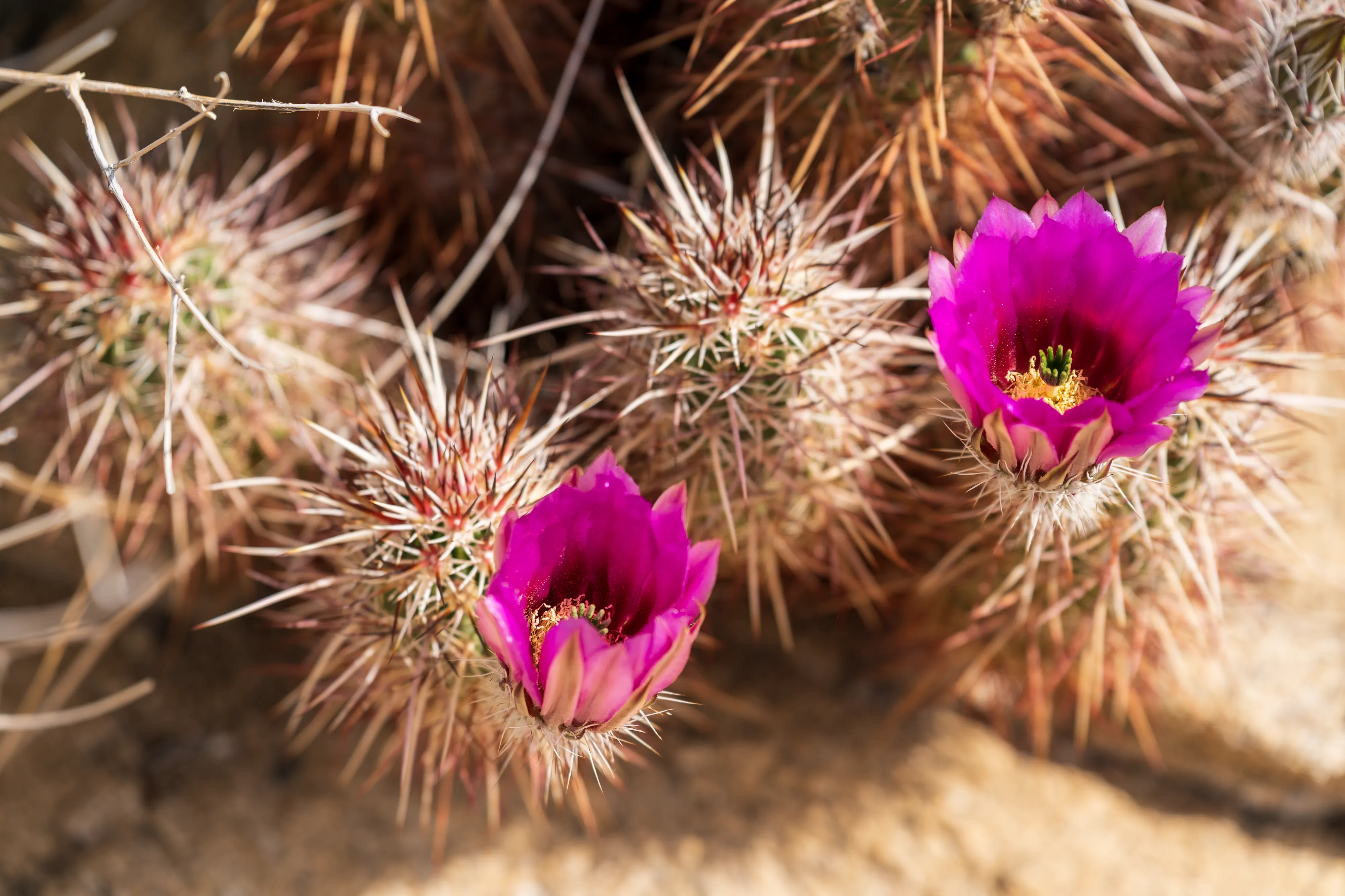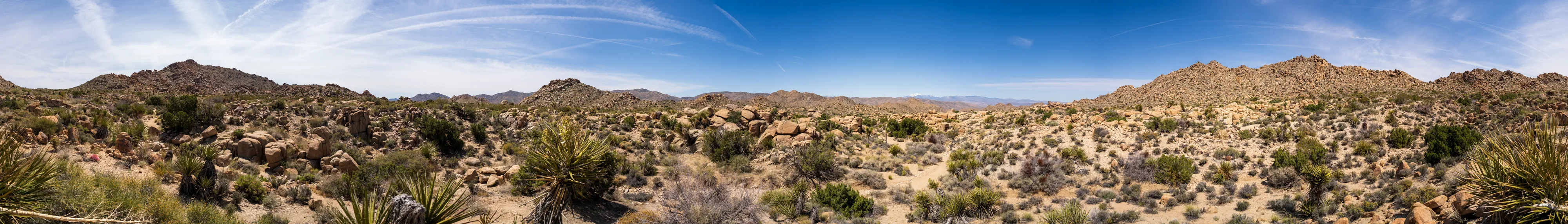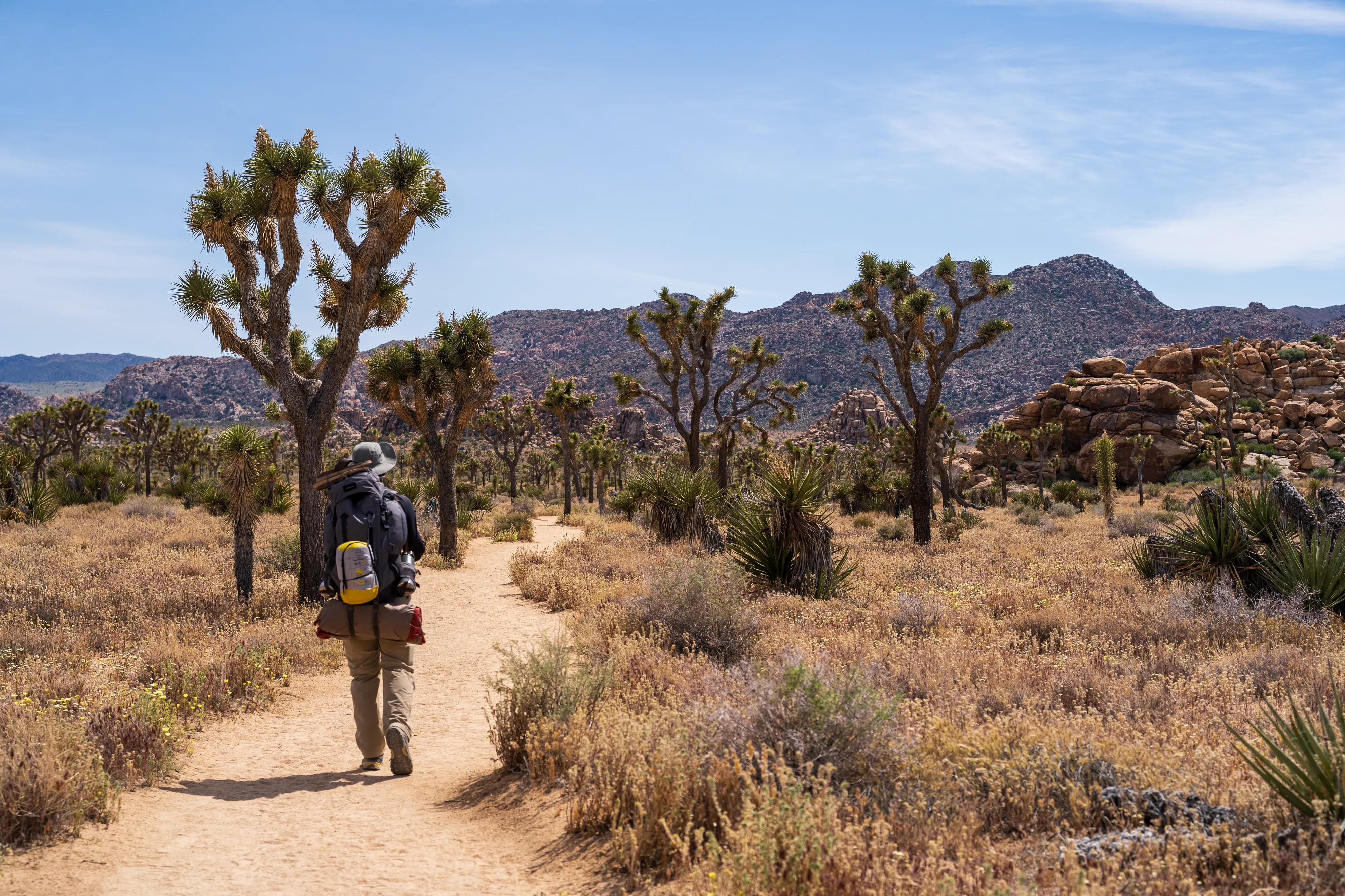 Wir wandern bei warmen, aber noch angenehmen Temperaturen durch eine wirklich schöne Landschaft: teils sandige, teils felsige Wege über Hügel mit allerlei Vegetation am Wegesrand. Joshua Trees, in verschiedenen Farben blühende Kakteen und viele andere Pflanzen, die uns biologischen Banausen nicht bekannt sind - deren Schönheit uns aber trotzdem erfreut.