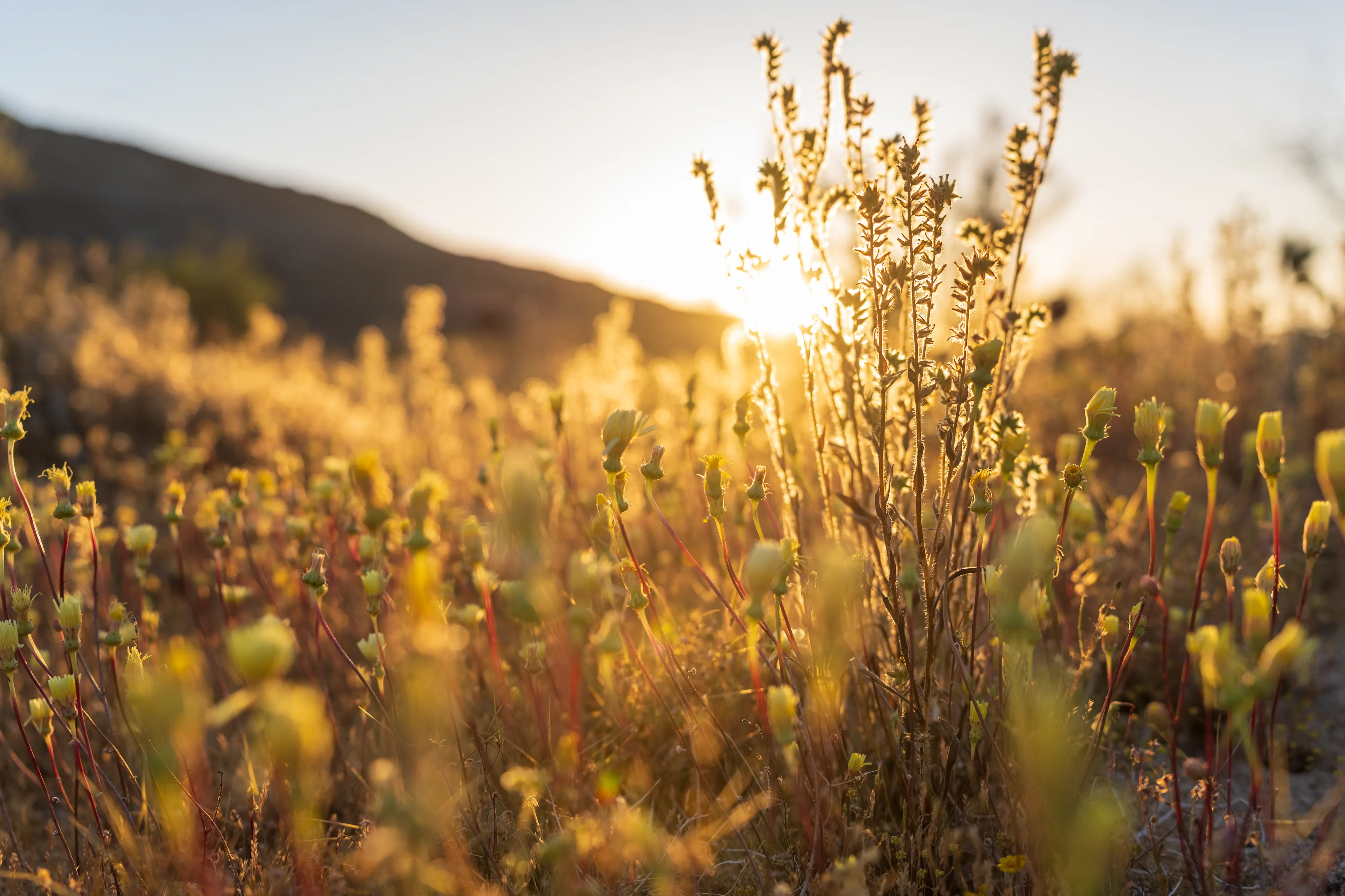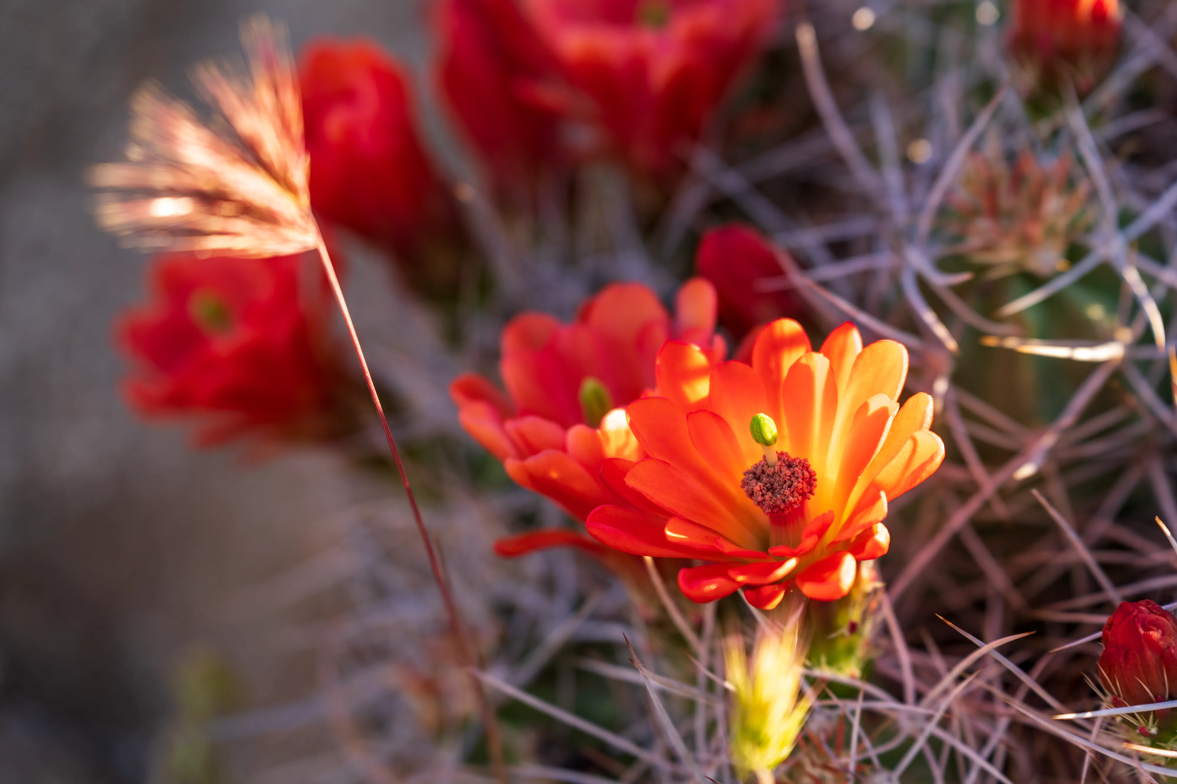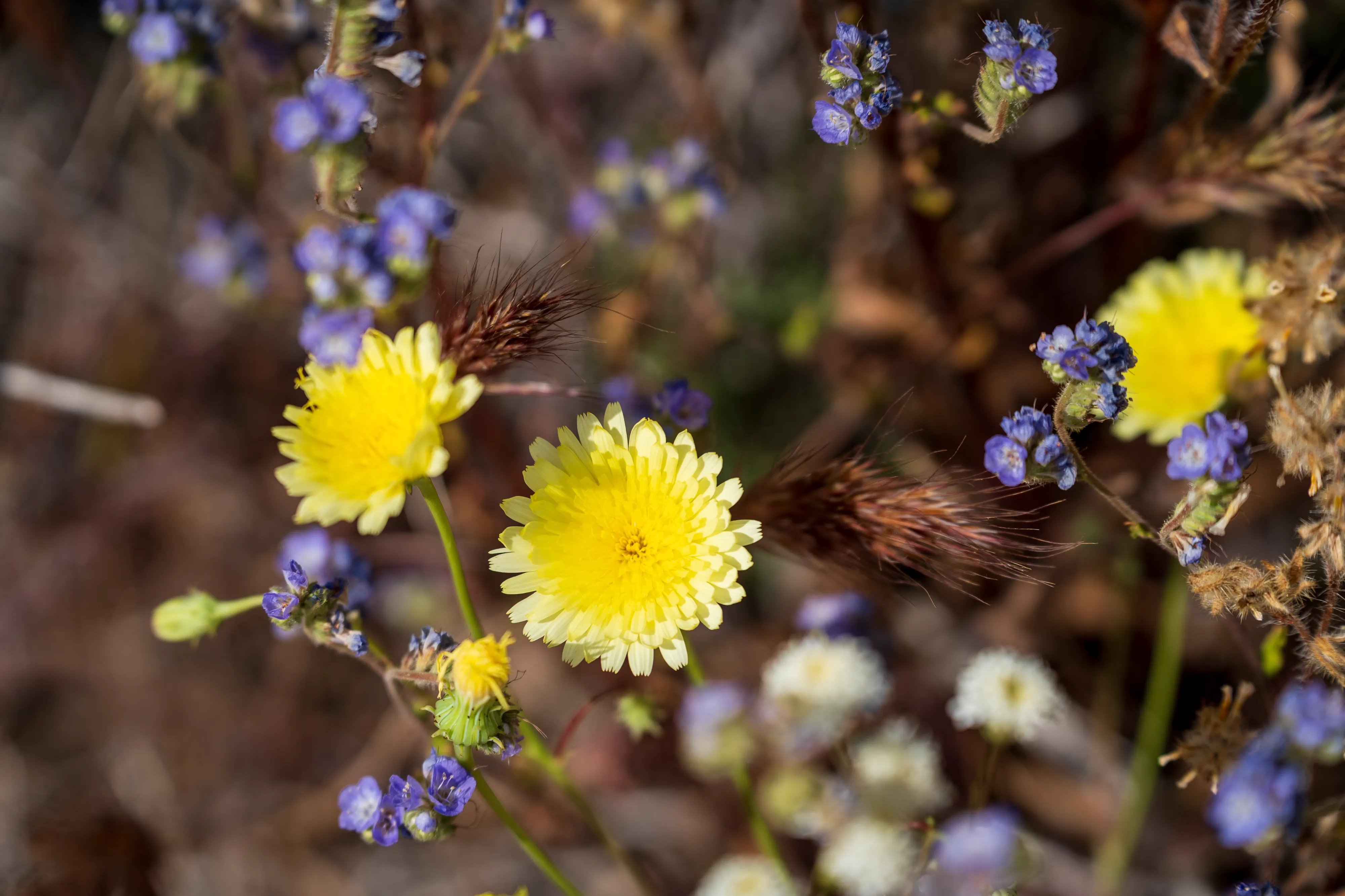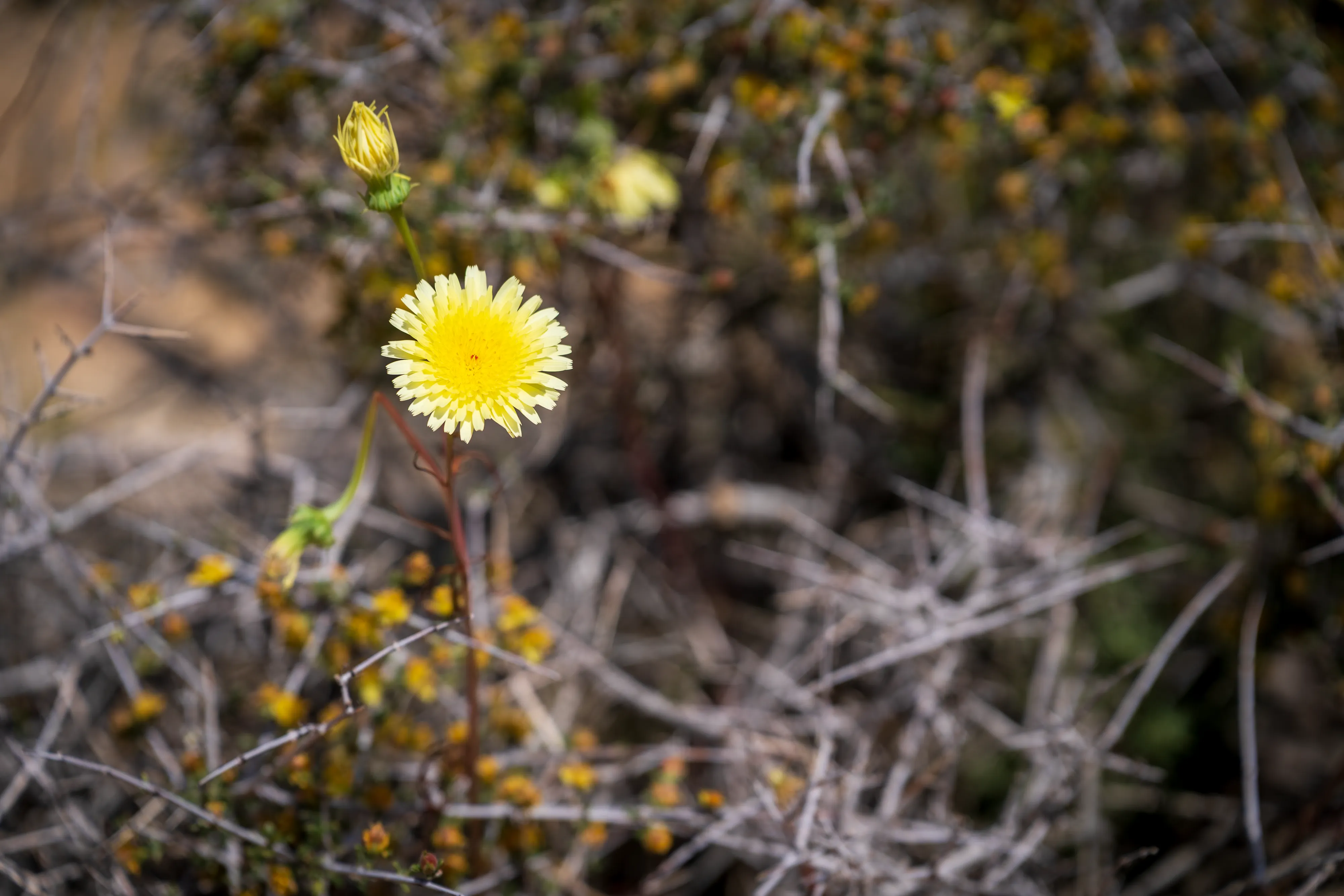 Wir wandern bei warmen, aber noch angenehmen Temperaturen durch eine wirklich schöne Landschaft: teils sandige, teils felsige Wege über Hügel mit allerlei Vegetation am Wegesrand. Joshua Trees, in verschiedenen Farben blühende Kakteen und viele andere Pflanzen, die uns biologischen Banausen nicht bekannt sind - deren Schönheit uns aber trotzdem erfreut.