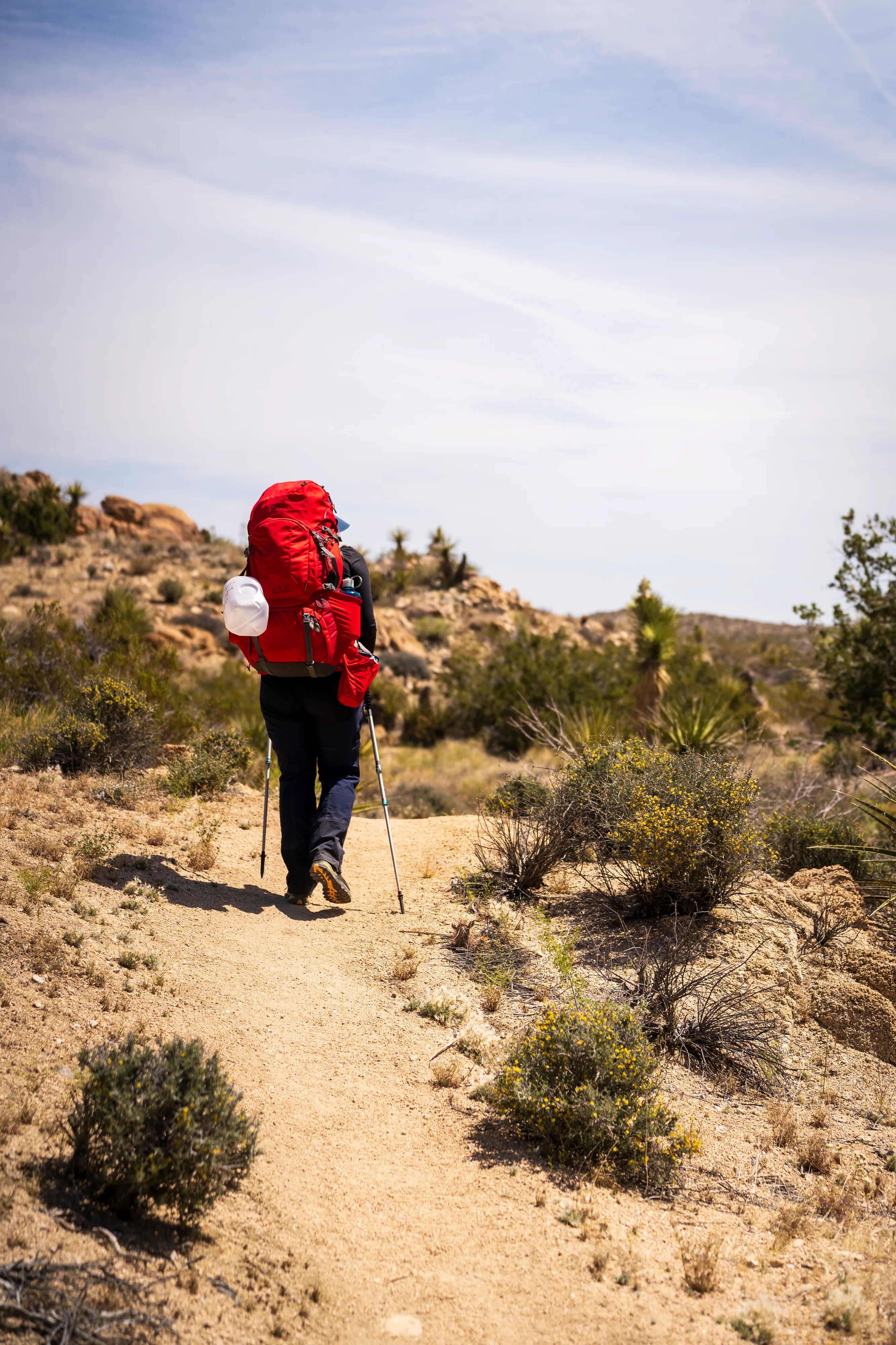 Wir stellen unser Auto also am Boy Scout Trail Parkplatz ab, packen alles für eine Nacht im Zelt in unsere Rucksäcke und machen uns - nun deutlich beschwert - auf den Weg. Insgesamt haben wir für den heutigen Abend und den morgigen Vormittag circa 22 km an (flacher) Strecke geplant. Die Route verläuft dabei durch verschiedene Abschnitte mit unterschiedlicher Topografie und Vegetation und hat sich im Nachhinein - wenn auch etwas zäh auf den letzten Kilometern - als schön und abwechslungsreich erwiesen.