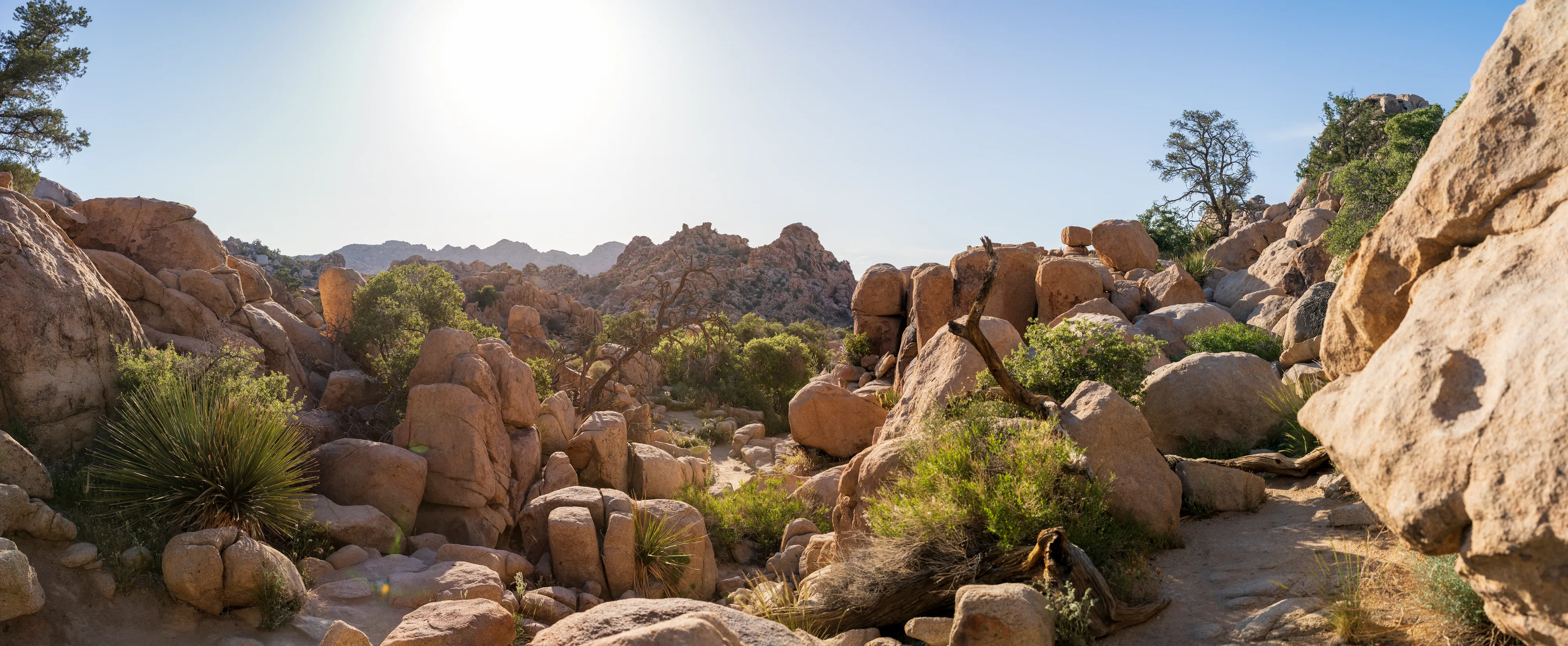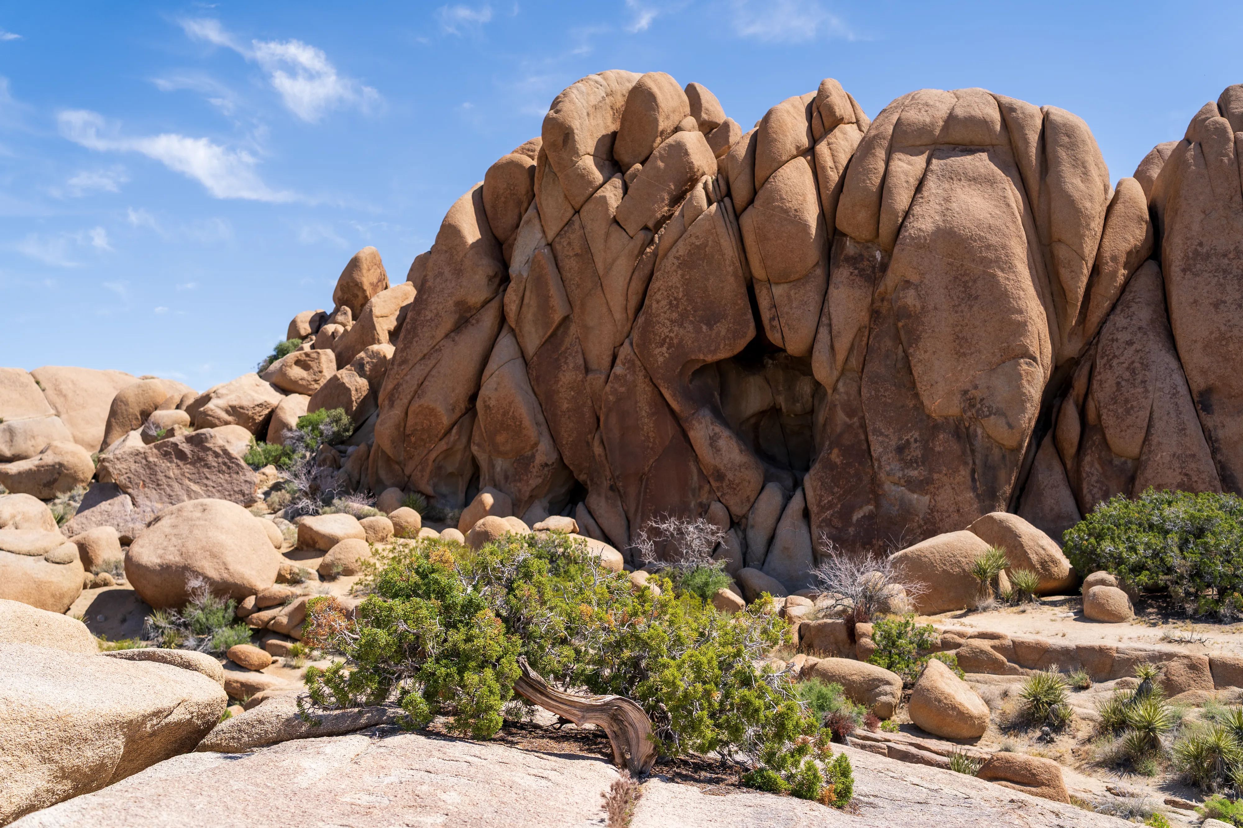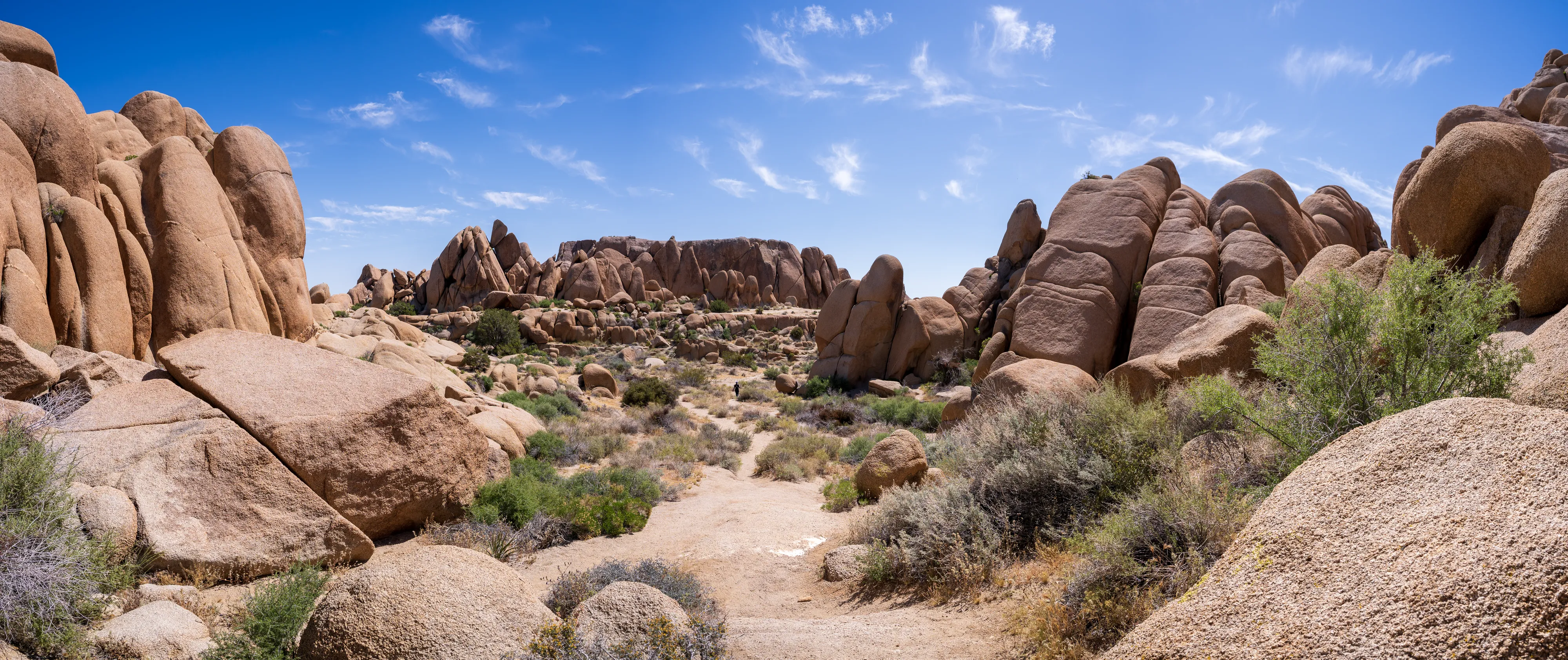 Das Hidden Valley ist wirklich eine schöne Überraschung: Es wurde erst im 20ten Jahrhundert zur Zeit Roosevelts von dem hier ansässigen Rancher zugänglich gemacht - in dem er einen Zugang zu dem von Felsen umgebenen Tal frei sprengte - um dort sein Vieh weiden zu können. Vorher war es angeblich ein von Viehdieben genutztes Versteck. Heute gibt es einen kurzen Rundweg durch das “Tal” mit seinen vielen gigantischen Granitbrocken sowie einige Kletterrouten an deren Hängen. Wirklich faszinierend ist allerdings die Tatsache, dass das Tal ein anderes Biotop aufweist als die umgebende Landschaft und sich so eine andere Vegetation entwickelt hat. Vermutlich durch die (wind-)geschützte Lage und das steinigere Gelände finden sich hier Kiefern und andere Baumarten, die man in den Ebenen des Nationalparks nicht findet.