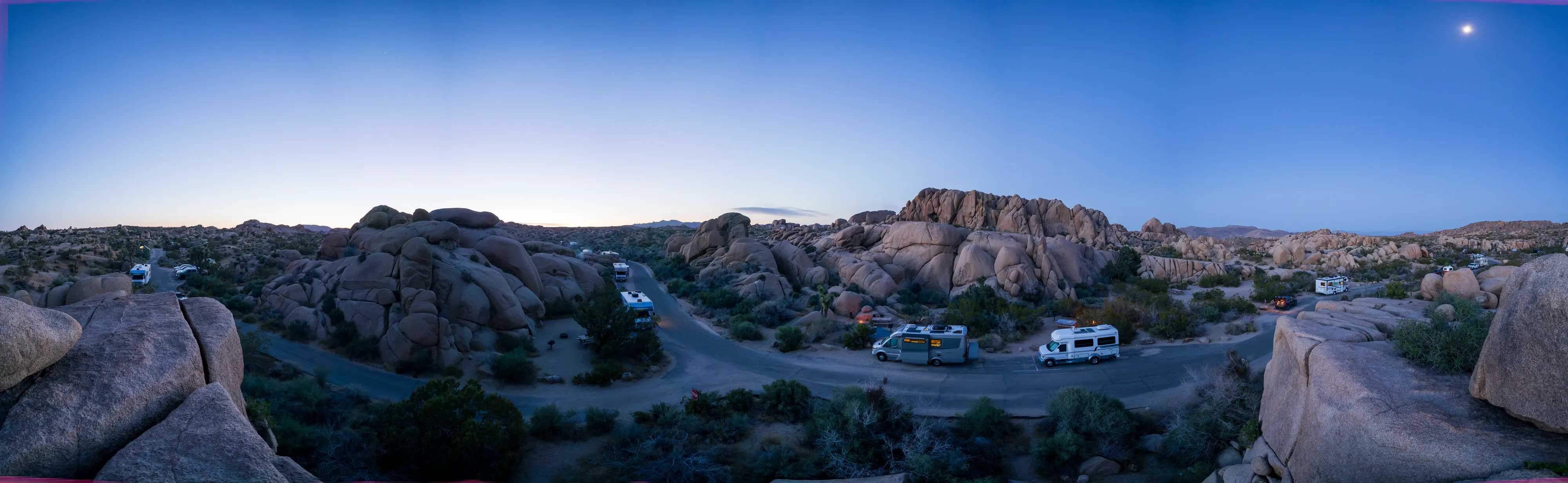 Außer dem Jumbo Rock Campground gibt es noch einige weitere Campingplätze im Nationalpark - diese wurde uns aber von verschiedenen Seiten empfohlen und wir sind sehr zufrieden mit der Wahl. Wir haben uns einen schönen Platz direkt neben großen Felsen ausgesucht - groß genug, dass hier eine ganze Kompanie Pfadfinder Platz finden würde. Allerdings dann doch nicht weitläufig genug, um den von der Nachbarn Grills herüberwehenden Rauchschwaden zu entgehen.