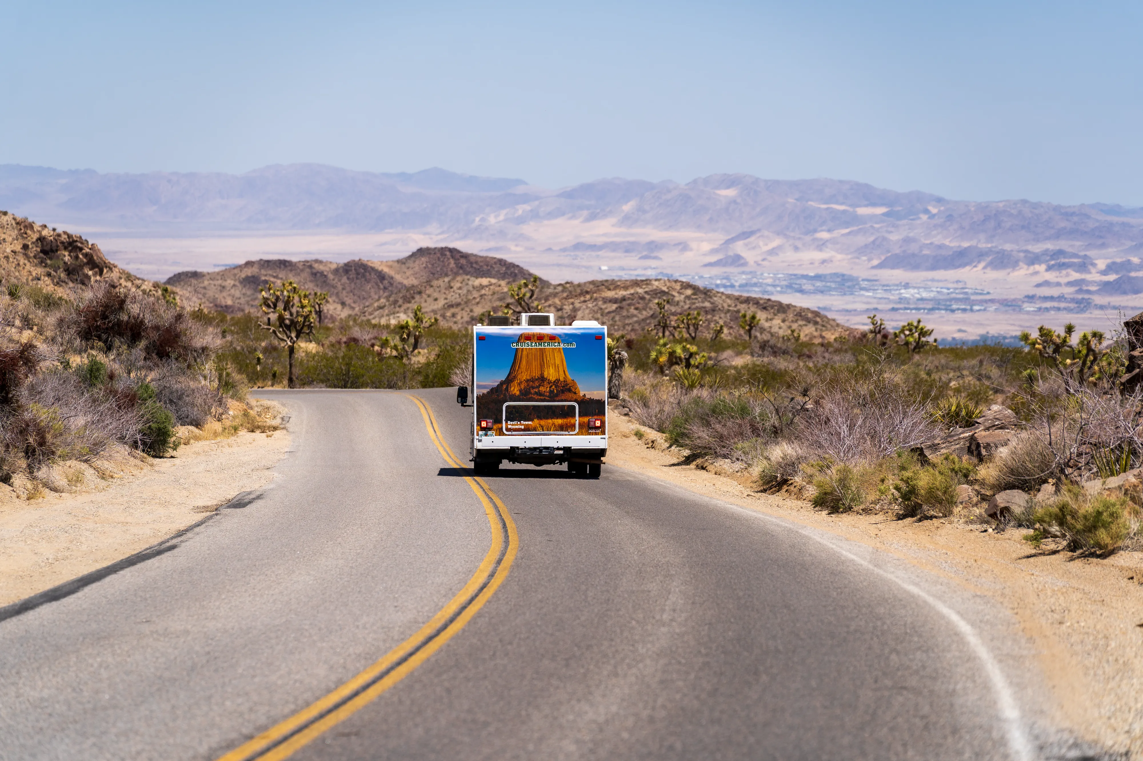 Der Weg hinab gestaltet sich tatsächlich einfacher als der Weg hinauf und nach Frühstück und Abbau des Zelts drehen wir noch eine Runde um den Elephant Rock bevor wir den Nationalpark wieder verlassen und uns durch das Mojave National Preserve bis nach Arizona vorarbeiten.
