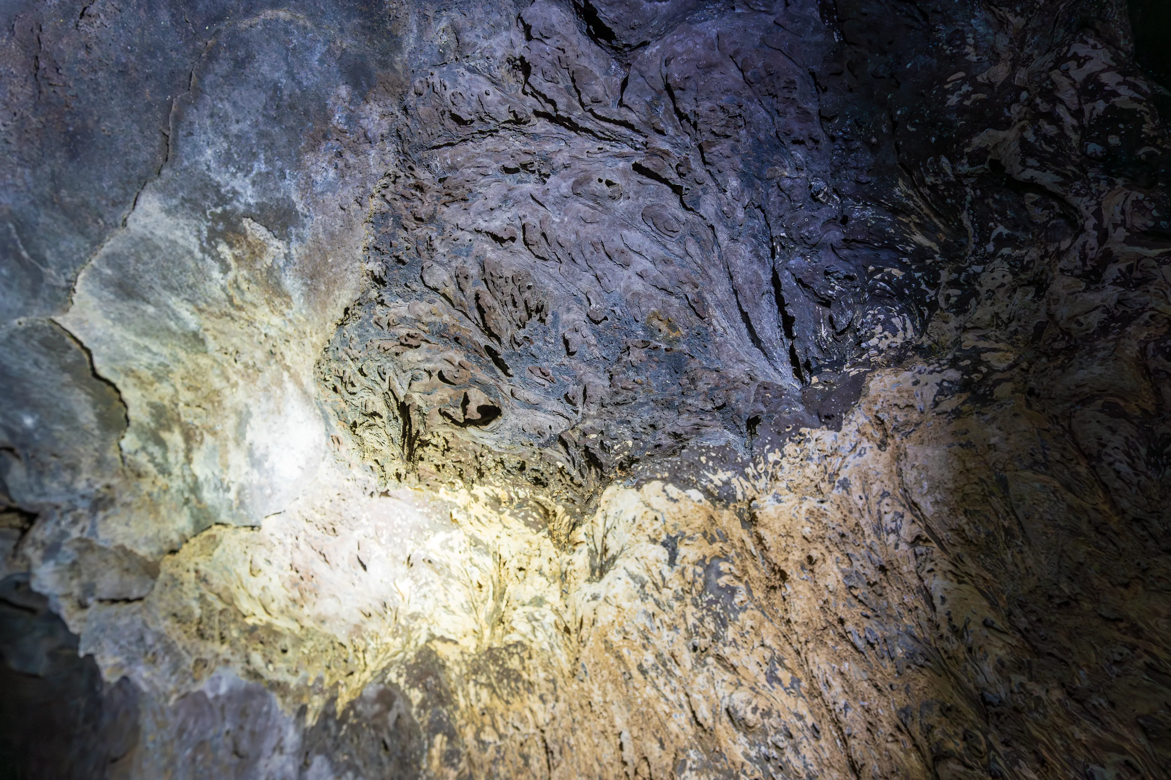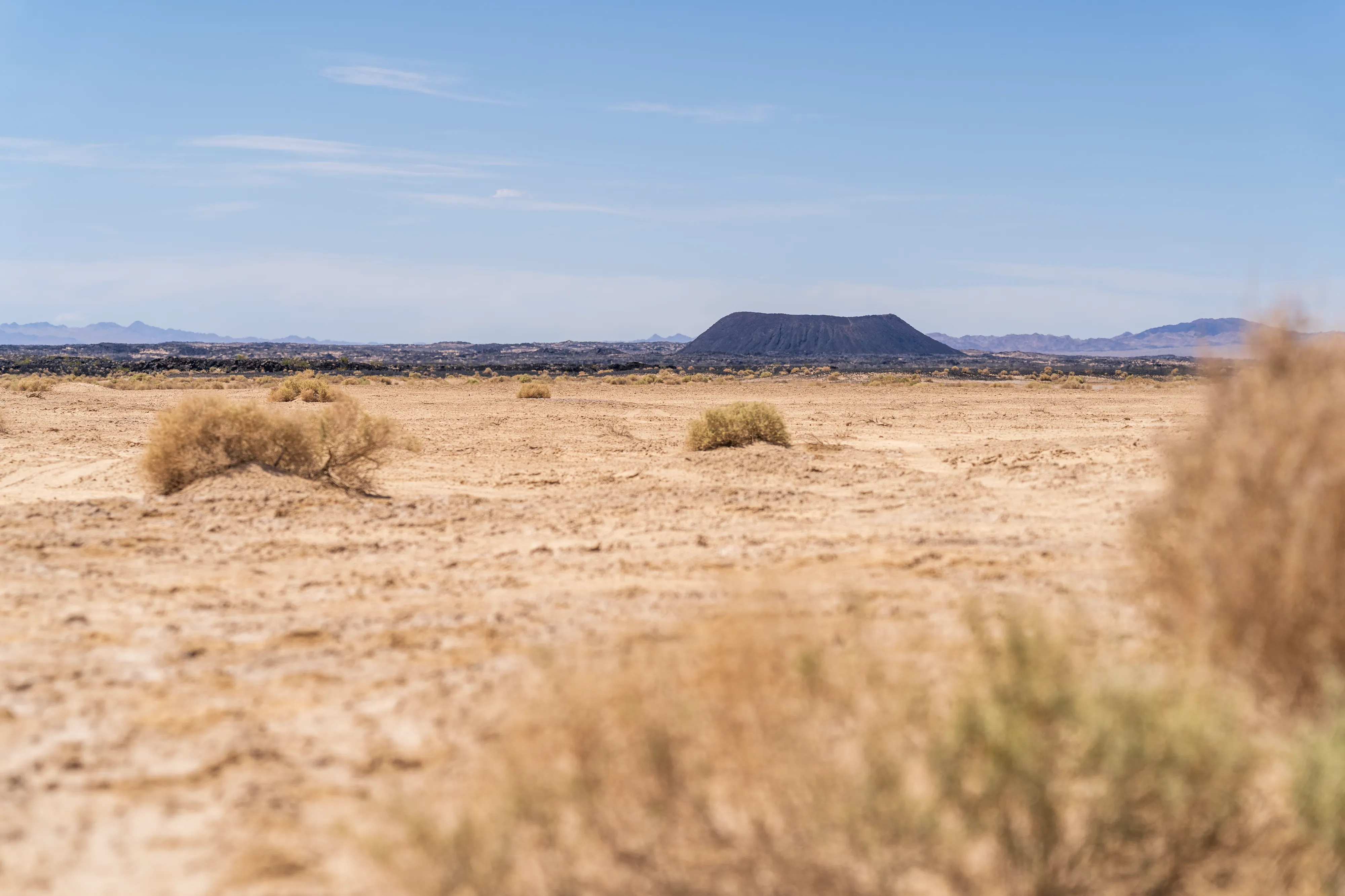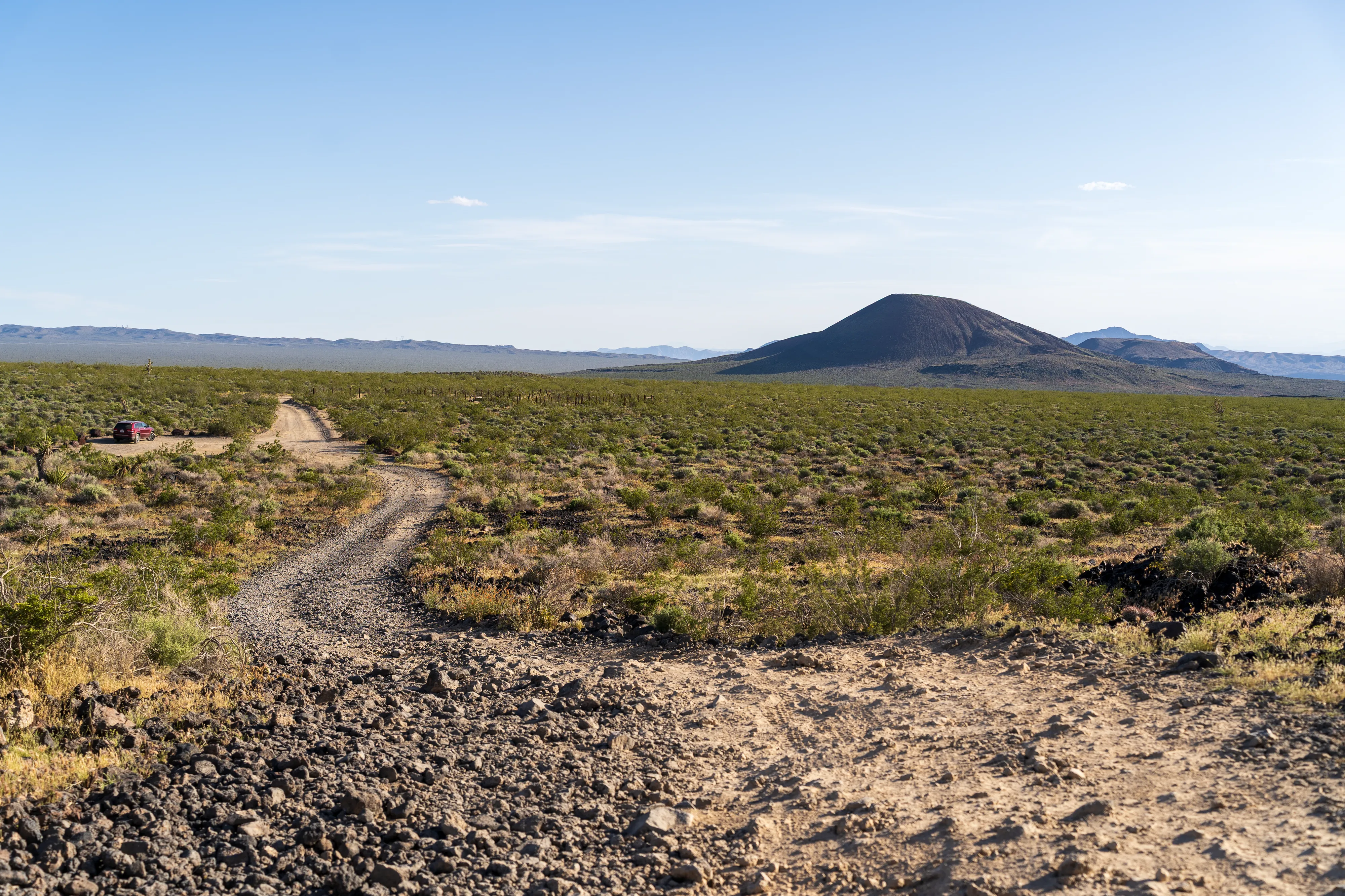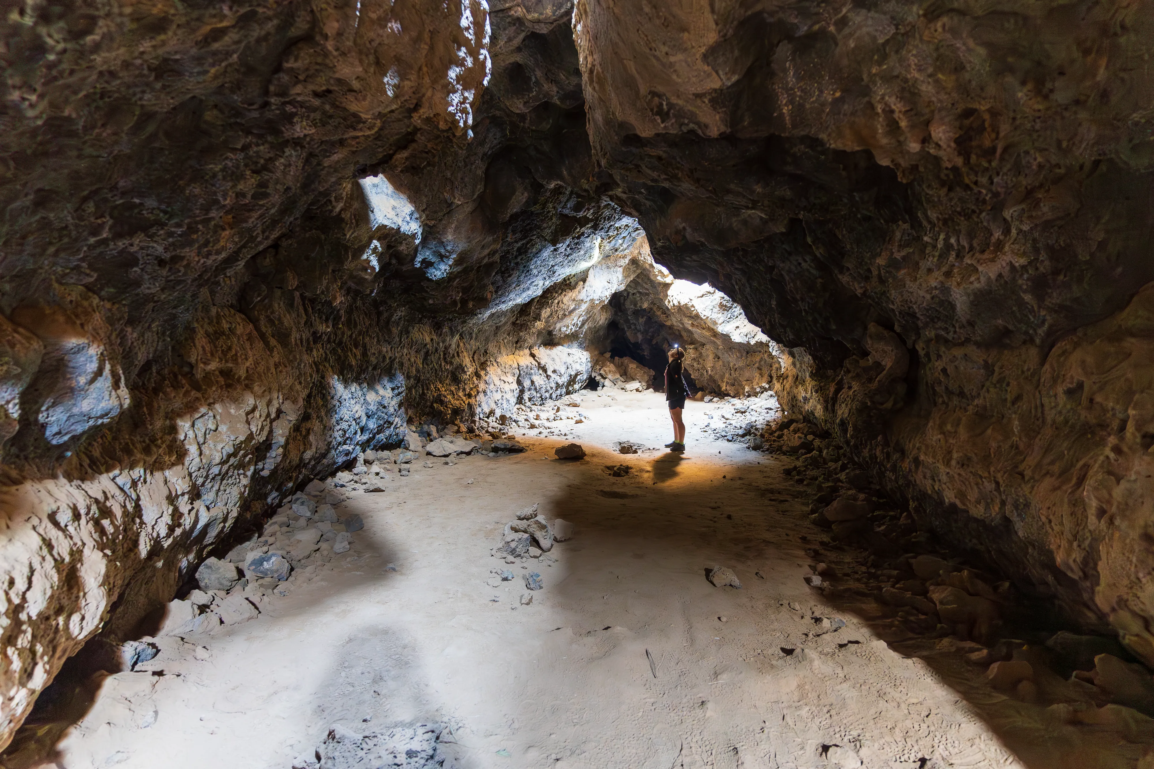 Nächster Stopp ist eine, ein paar Meilen östlich der Hauptstraße gelegene, Lava Tube. Auf der Anfahrt sind wir mehr als froh ein Auto mit viel Bodenfreiheit und Allradantrieb zu haben. Mit einem Kleinwagen wären wir vermutlich nur sehr langsam vorangekommen - immer mit der Angst, im Sand stecken zu bleiben oder aufzusetzen. In der Gegend finden sich einige Vulkane - und diese sind natürlich auch eine Voraussetzung dafür, dass sich Lava Tubes bilden. Sie entstehen, wenn ein Lavastrom einen Vulkan hinabfließt, außen abkühlt aber innen weiterfließt. So bleibt von dem Strom nur eine Hülle übrig, welche man dann begehen kann. Solche Höhlen sind vergleichsweise selten und frei begehbare Exemplare noch viel weniger. Insofern ist das schon etwas Besonderes.