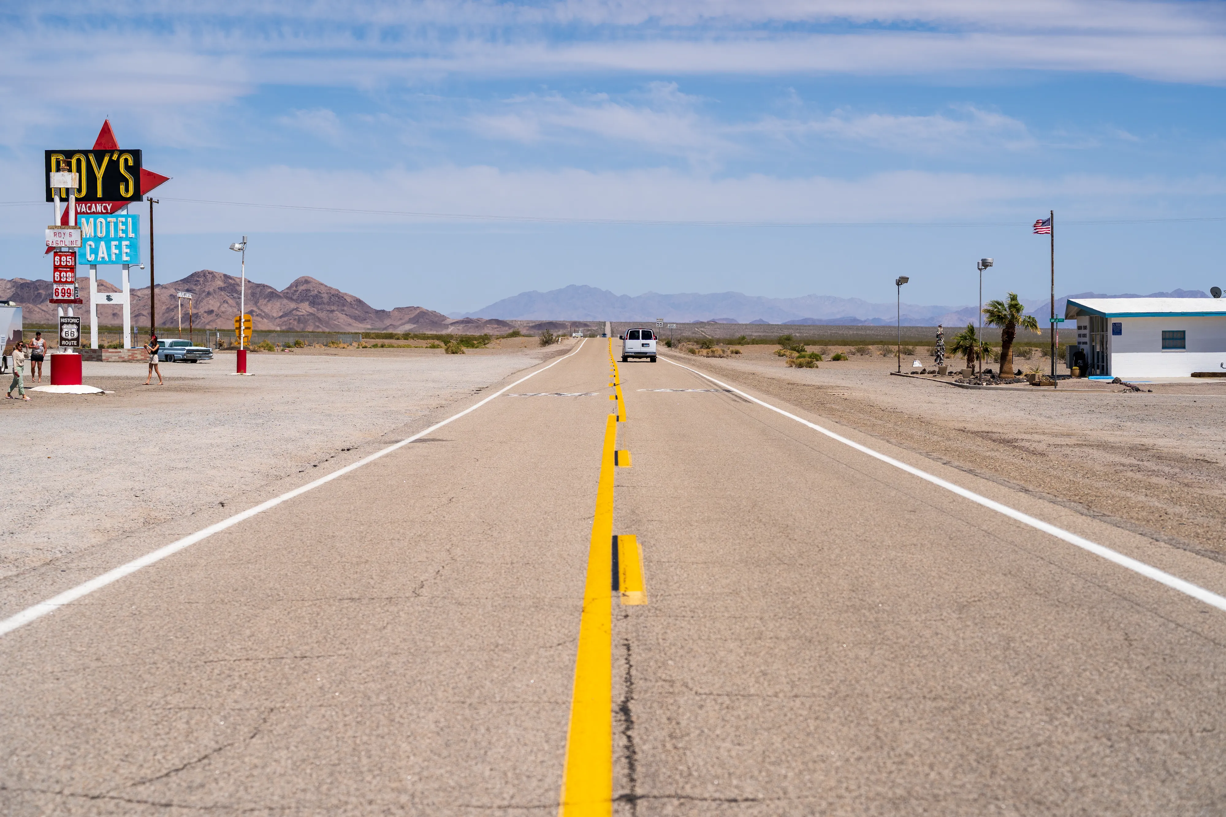 Früher sicher von noch größerer Bedeutung herrscht aber auch jetzt noch ein reger Zugverkehr. Heute gibt es in Amboy eine Tankstelle mit Motel und Shop, einen zugehörigen Flughafen (ohne Schild könnte man es auch für ein Feld halten) und eine Filiale des US Postal Service. Außerdem gibt es, warum auch immer, noch eine Buddha-Statue (welche sogar bei Google Maps verzeichnet ist :see-no-evil:). Da die Straße durch Amboy Teil der historischen Route 66 ist, zieht es trotzdem einige Touristen hier entlang.