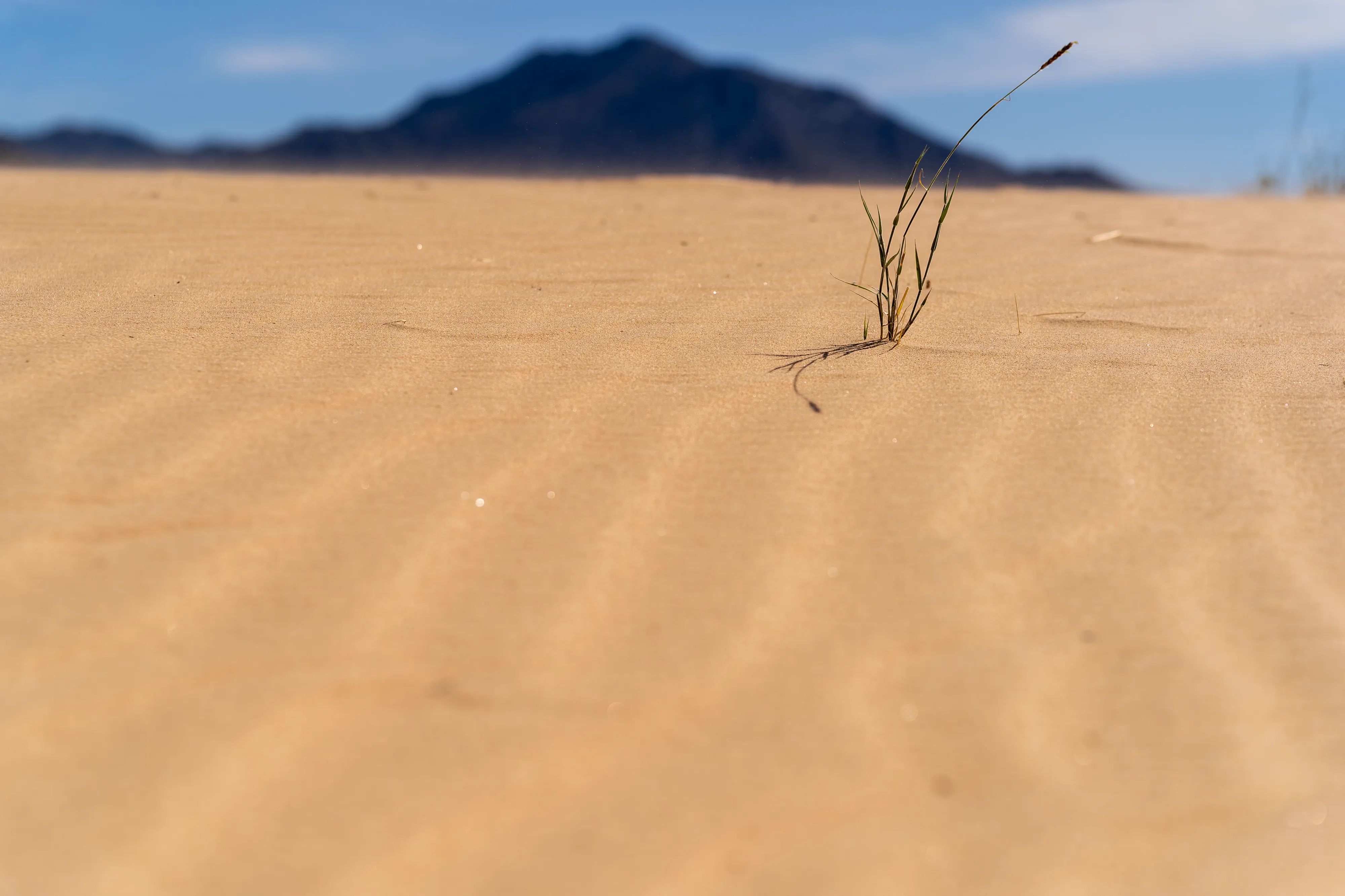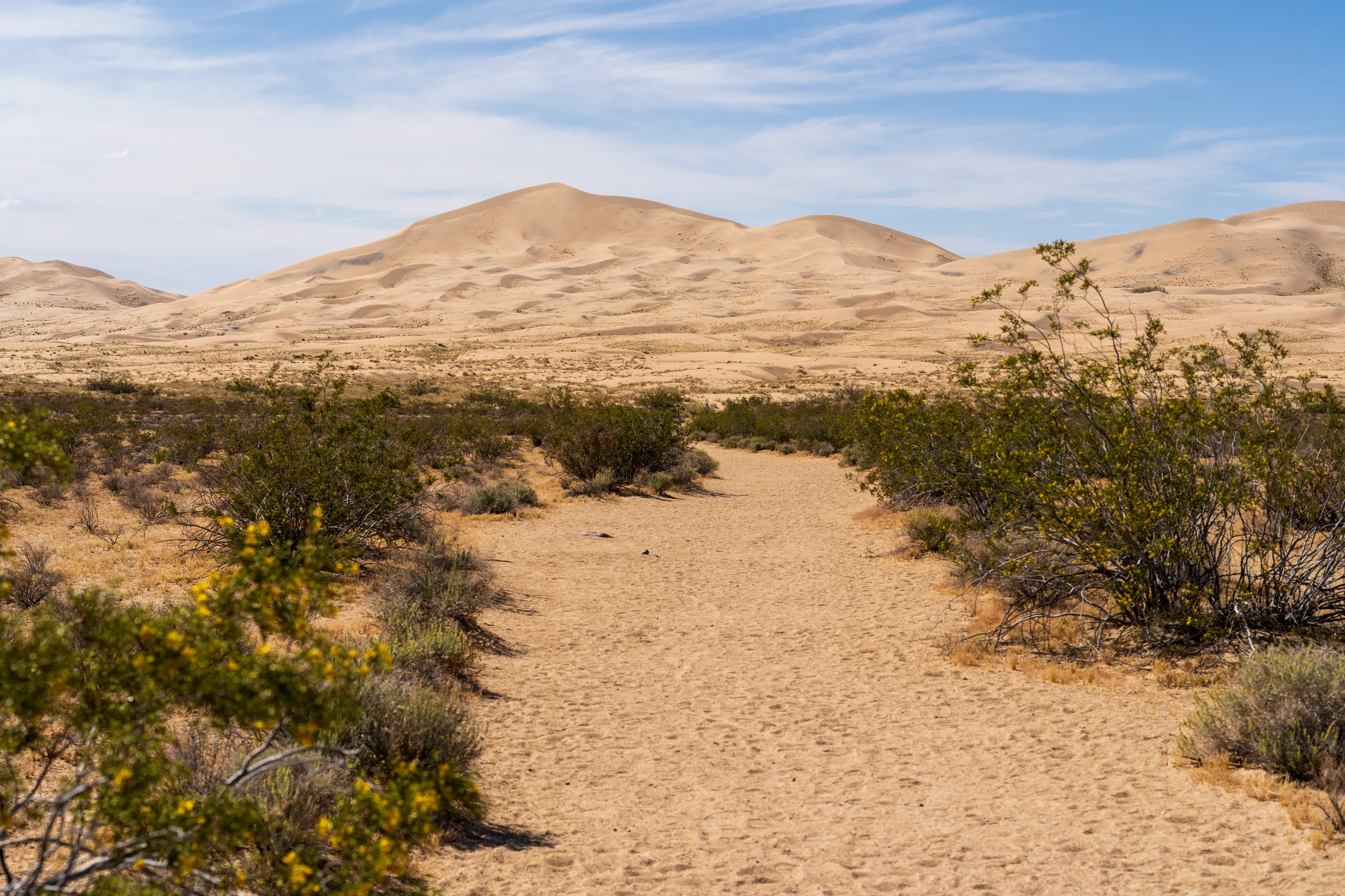 Wir queren die Interstate 40 und fahren nun durch das oben bereits vorgestellte Mojave National Preserve. Erster Stopp sind die Kelso Dunes, eine Ansammlung riesiger - immerhin bis zu 200 m aufragenden - Sanddünen, welche wie eine Mischung aus Nordseestrand und Sahara erscheinen.
