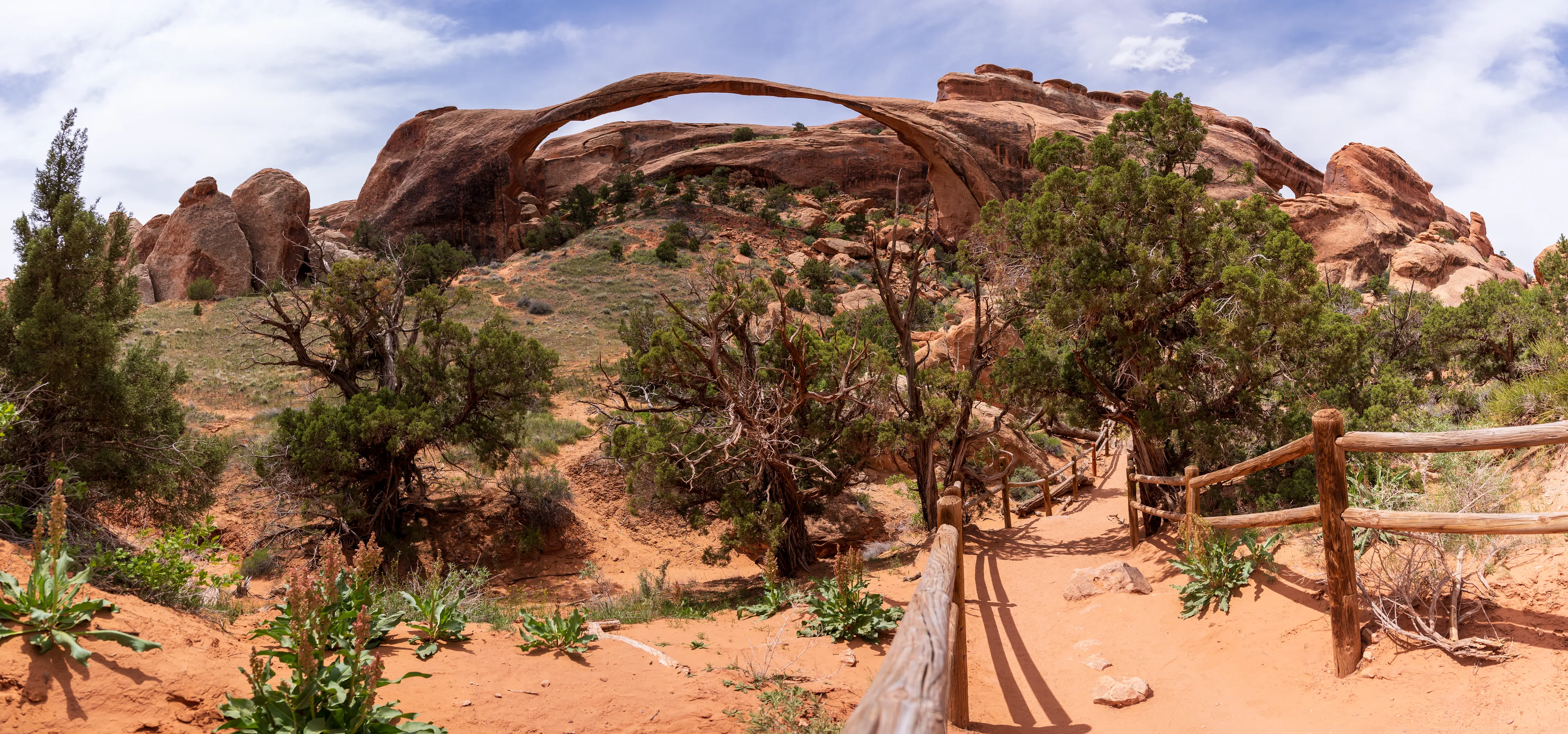 Landscape Arch ist, bezogen auf die Spannweite, der größe Bogen im Arches NP - und der fünftgrößte der Welt (wobei Platz 1-4 allesamt nach China gehen). Die enorme Spannweite von über 88 Metern und die Tatsache, dass der Bogen an seiner dünnsten Stelle lediglich eine Dicke von 25 cm aufweist, sind ziemlich beeindruckend. Durfte man sich früher noch unter dem Bogen aufhalten ist dies seit einem Felssturz nicht mehr gestattet.