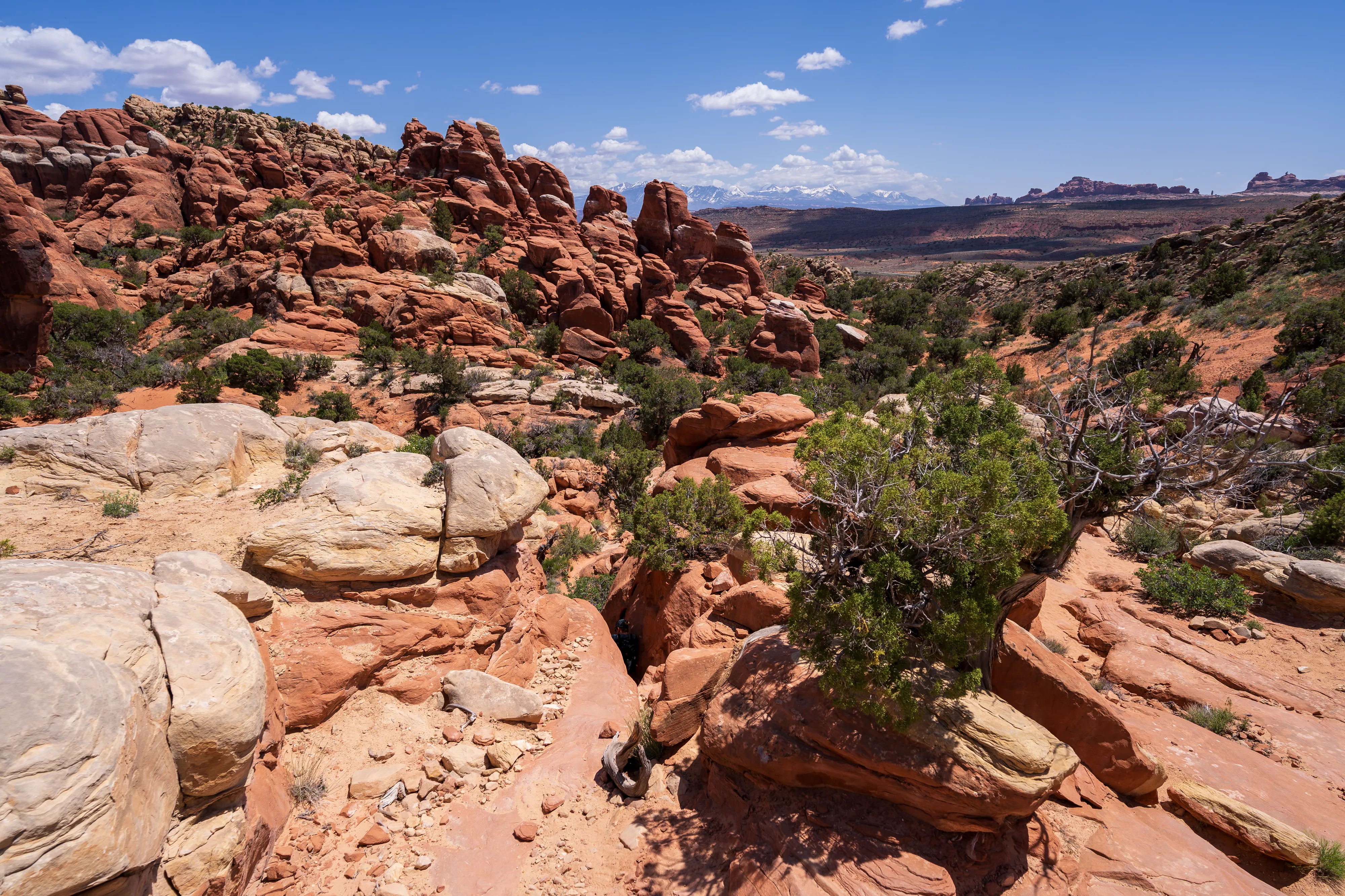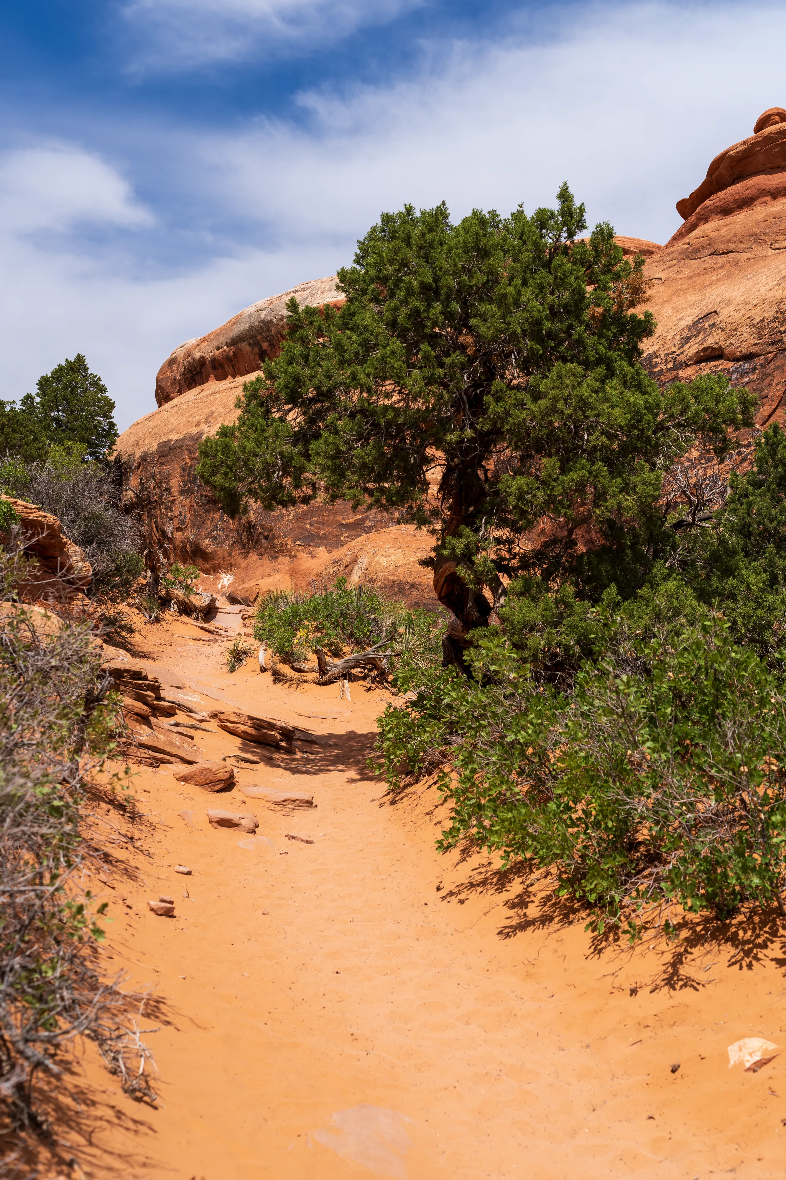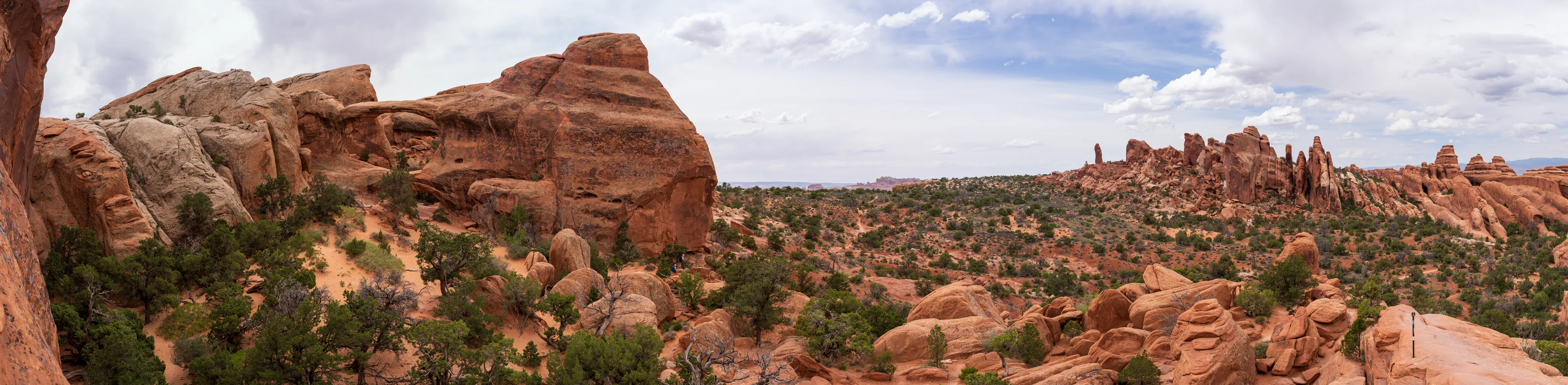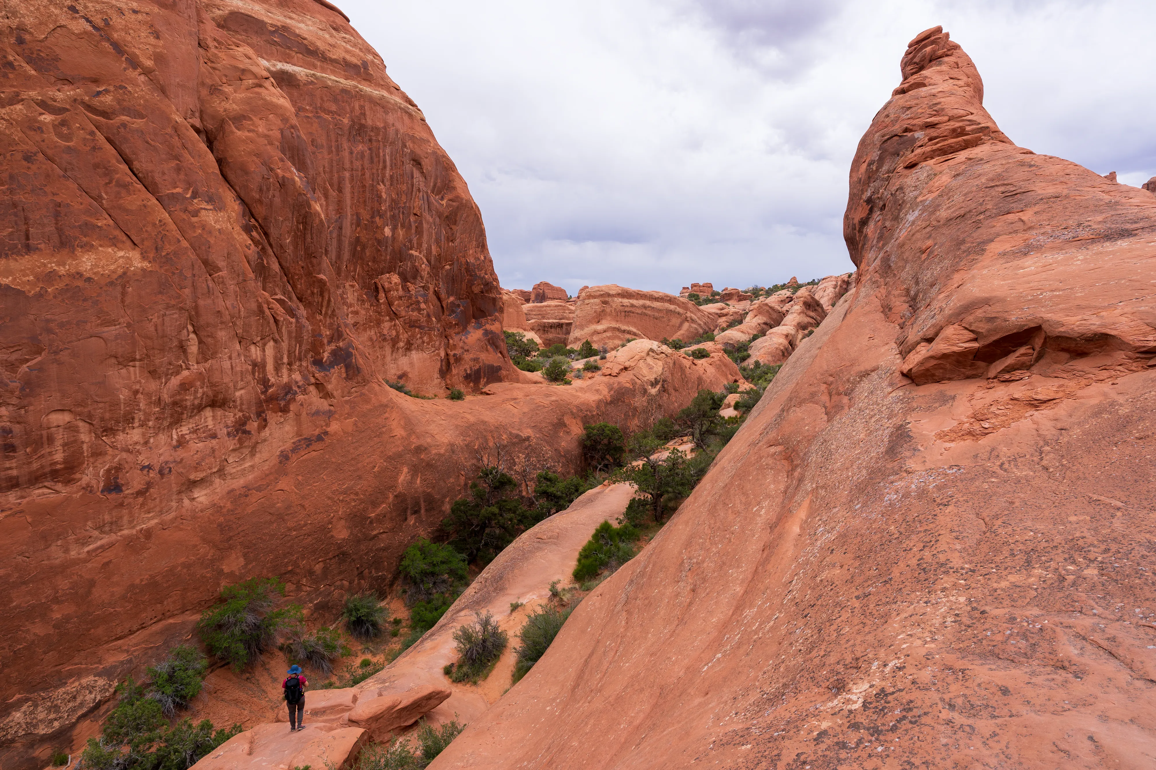 Um möglichst alle Arches in dem Gebiet abzuklappern, kombinieren wir den Devils Garden Loop Trail mit dem Primitive Loop Trail. Auf dieser circa 12 km langen Wanderung kommen wir an berühmten Bögen wie dem Landscape Arch vorbei, aber auch an kleineren, dennoch faszinierenden Exemplaren. Nicht nur die spektakulären Felsen machen die Route abwechslungsreich, sondern auch die Wegführung, die einige (einfache) Kletterpassagen umfasst.