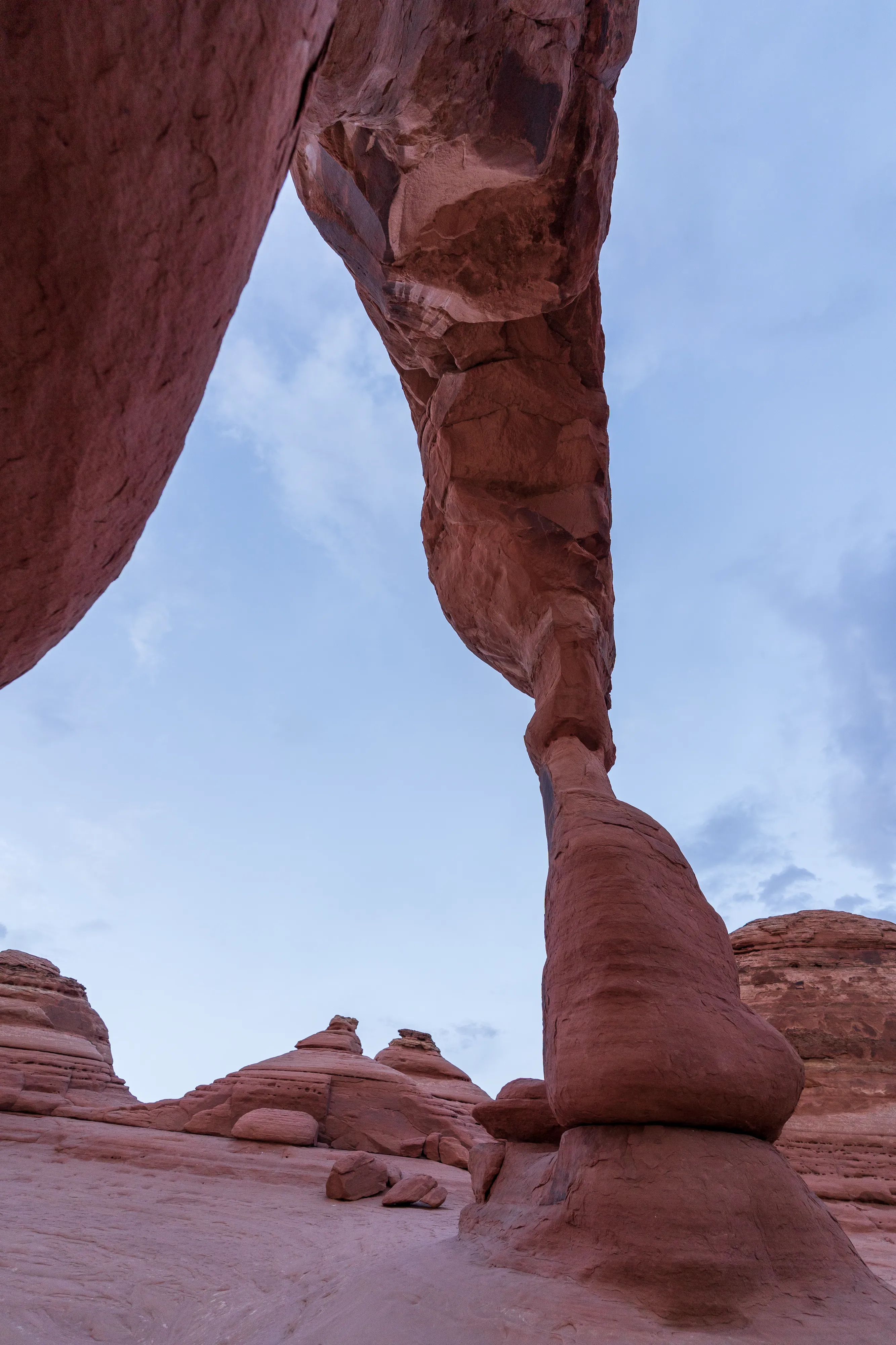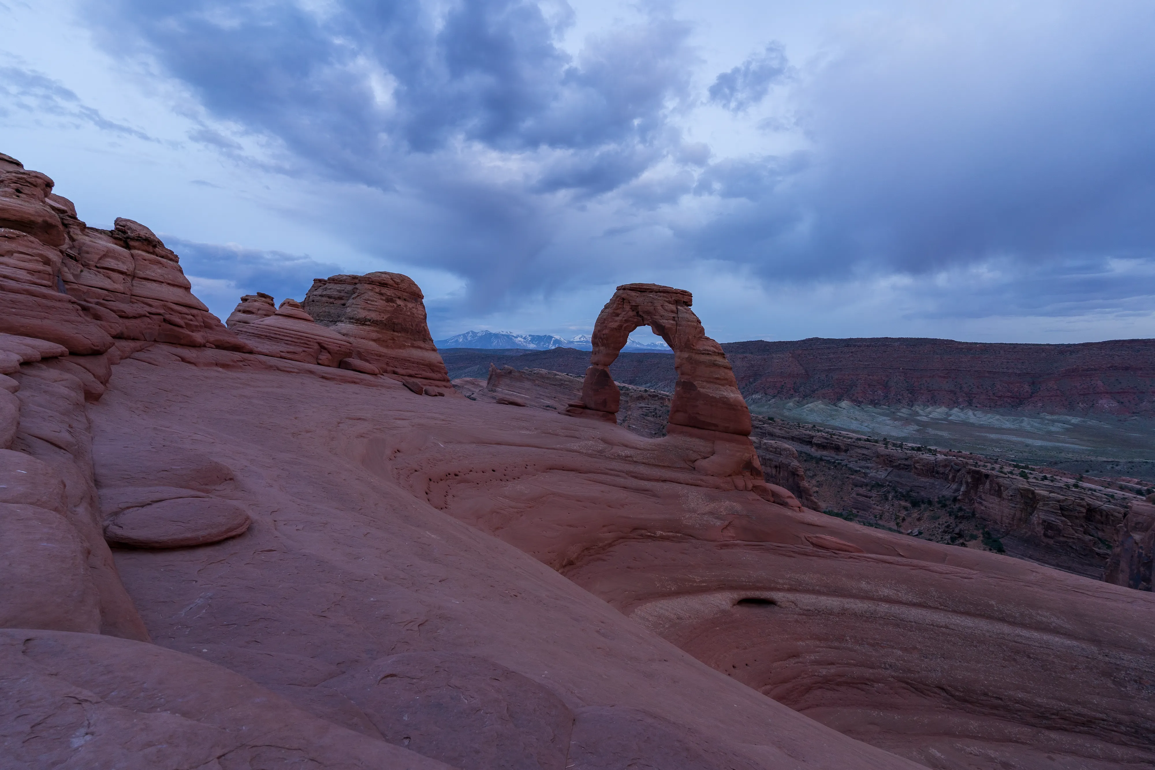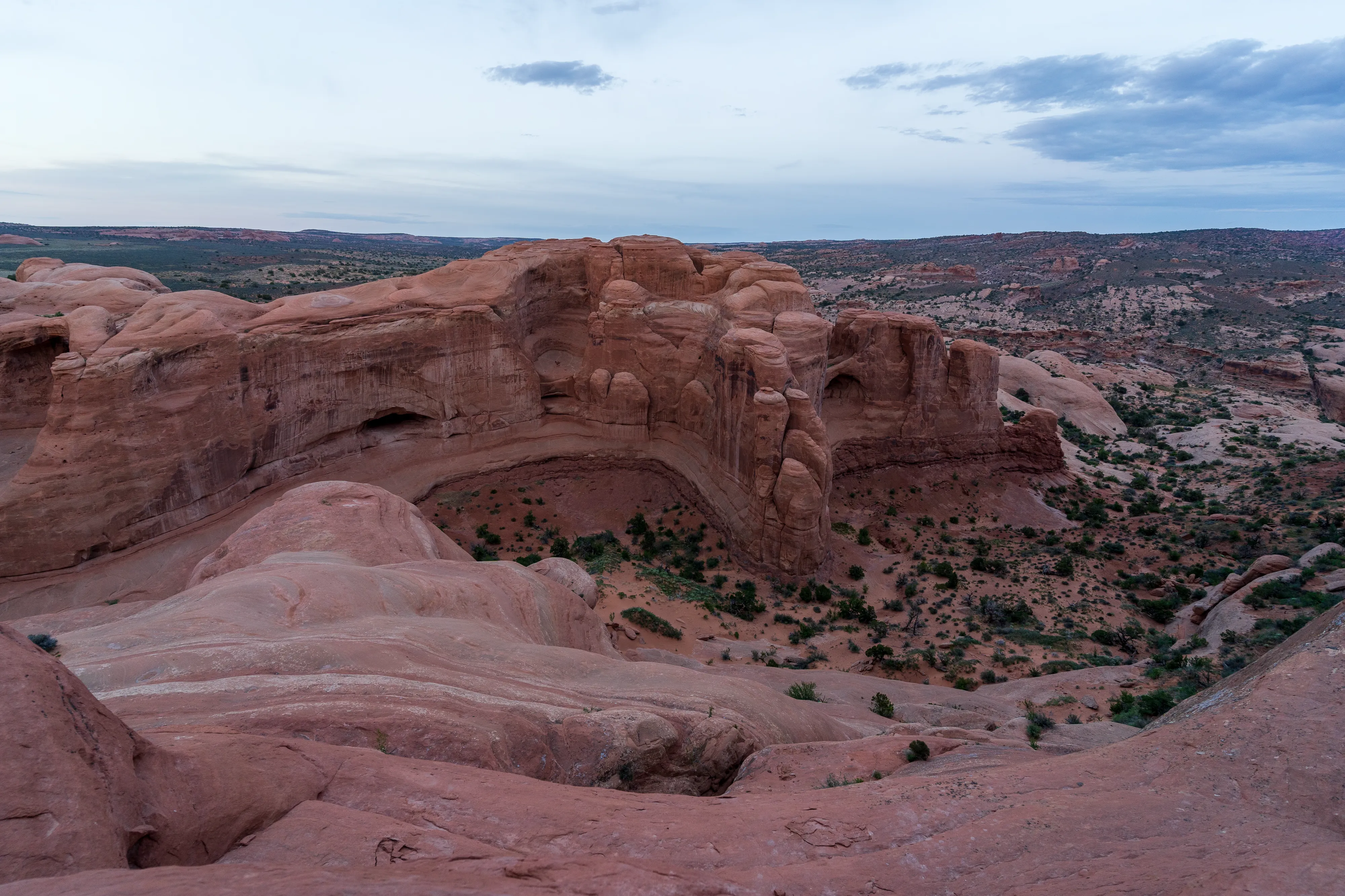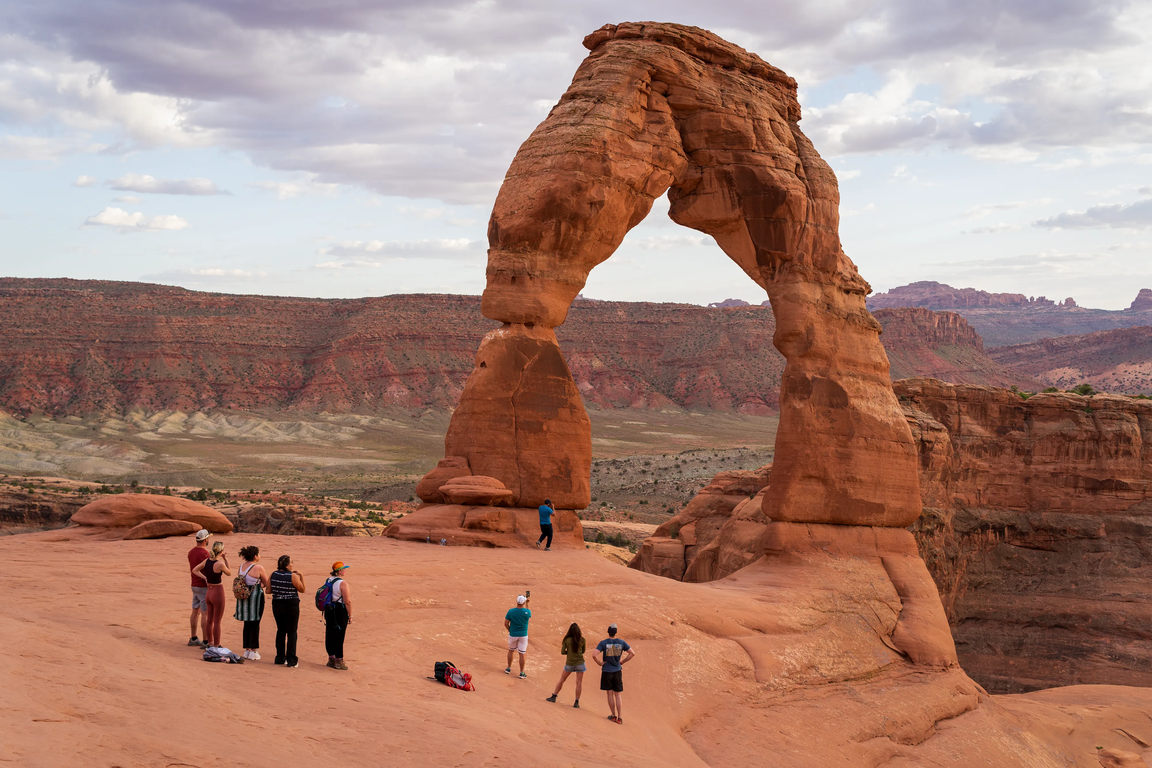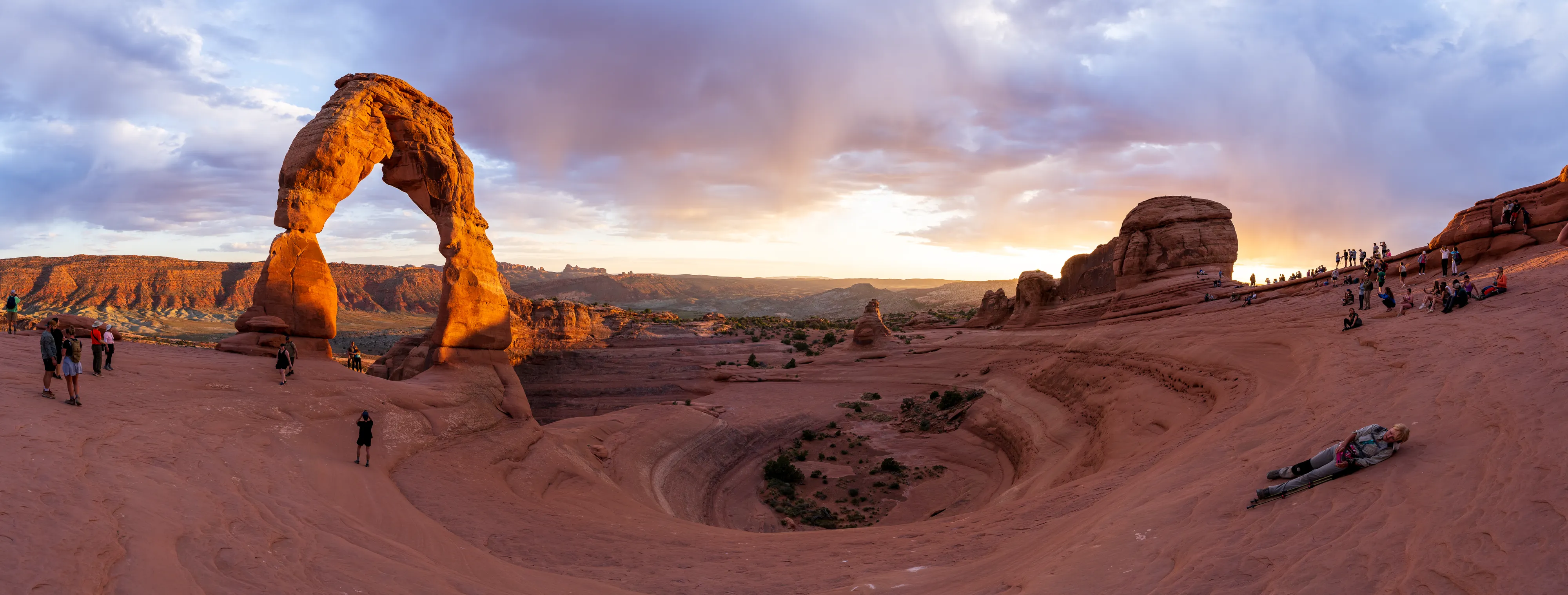 Am späten Nachmittag fahren wir zum Parkplatz des zum Delicate Arch führenden Wanderwegs. Für den Fall, dass man sich tagsüber wundert, wo die ganzen Touristen in diesem beliebten NP sind - hier bekommt man die Antwort. In großer Kolonne marschieren wir also die 2,5 km zum vermutlich berühmtesten Arch der USA, welcher als Wahrzeichen Utah’s auch ein mögliches Motiv der hiesigen Nummernschilder ist. Und der Hype ist gerechtfertigt!