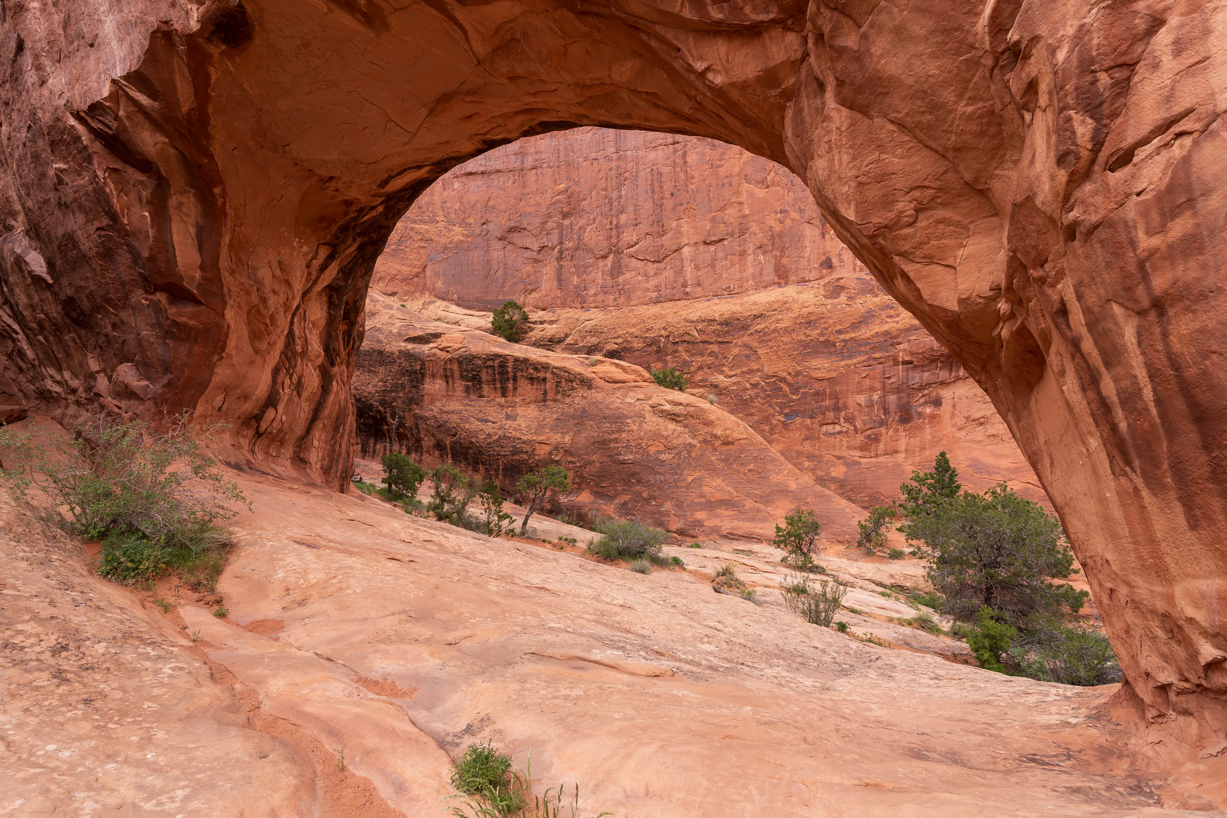 Ganz anders zeigt sich der Navajo Arch. Er wirkt mehr wie ein großes Loch im Felsen denn wie ein Bogen aus Stein.