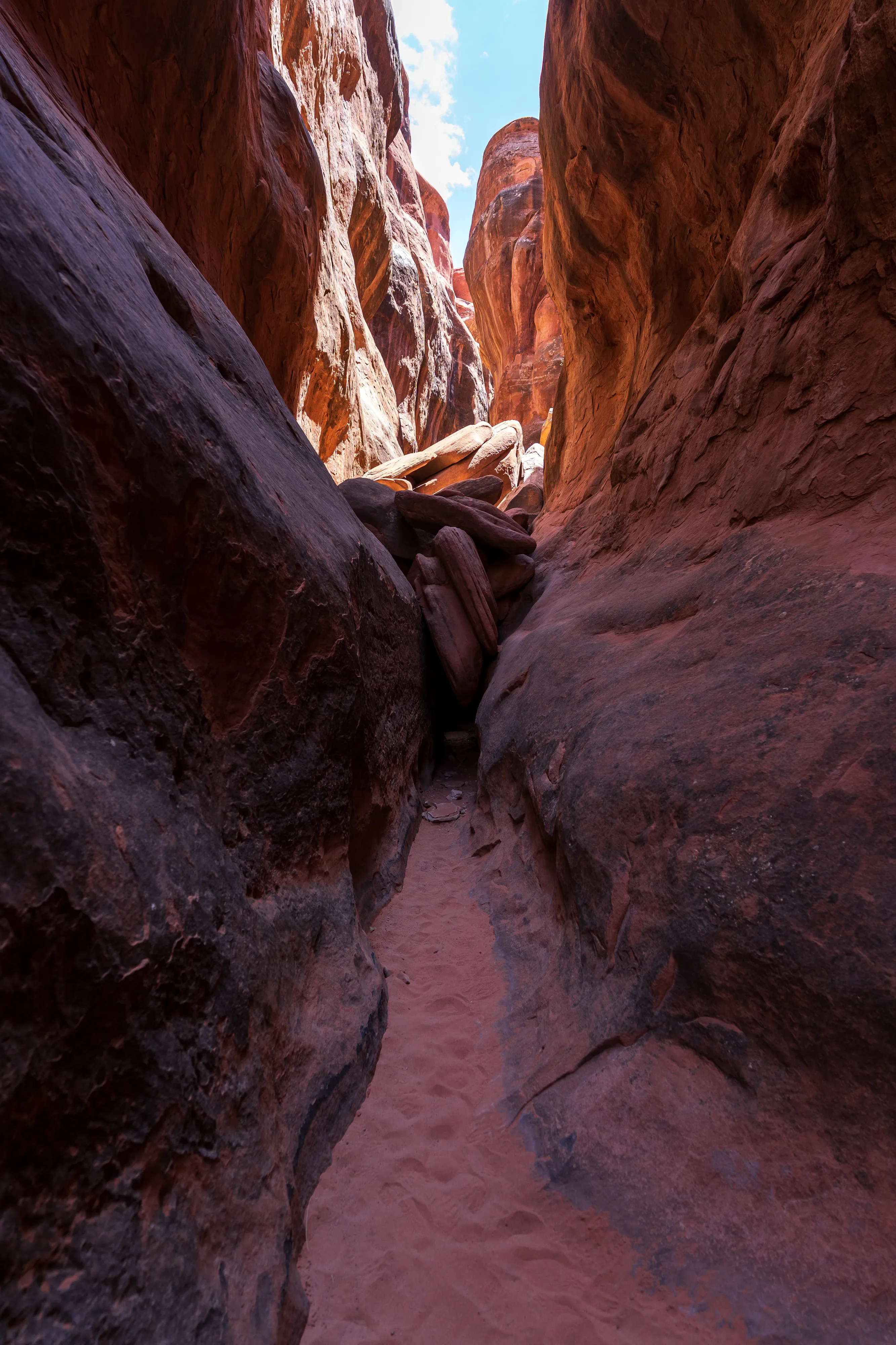 Weiter geht es mit dem Auto zum Sand Dune Arch. Hier ist man nach wenigen Minuten Fußmarsch am Ziel.