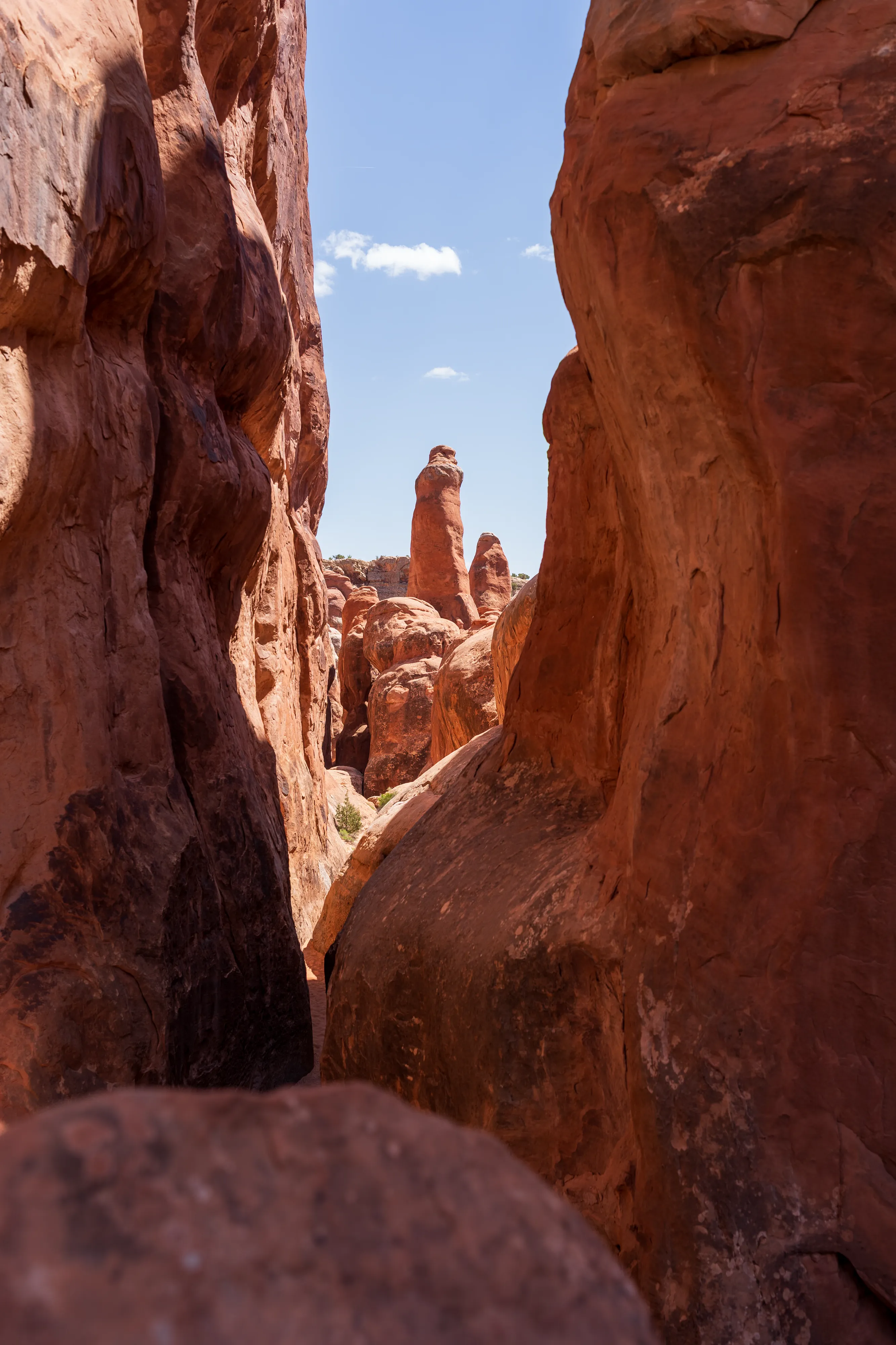 Nachdem wir unser Zelt fürs Erste also wieder für uns alleine haben, steht heute der zweite Waschtag an. Dank Münzwaschmaschinen in einem nahegelegenen Waschsalon ist das schnell erledigt und wir fahren erneut in den Arches NP, um unseren Permit für Fiery Furnace zu nutzen.