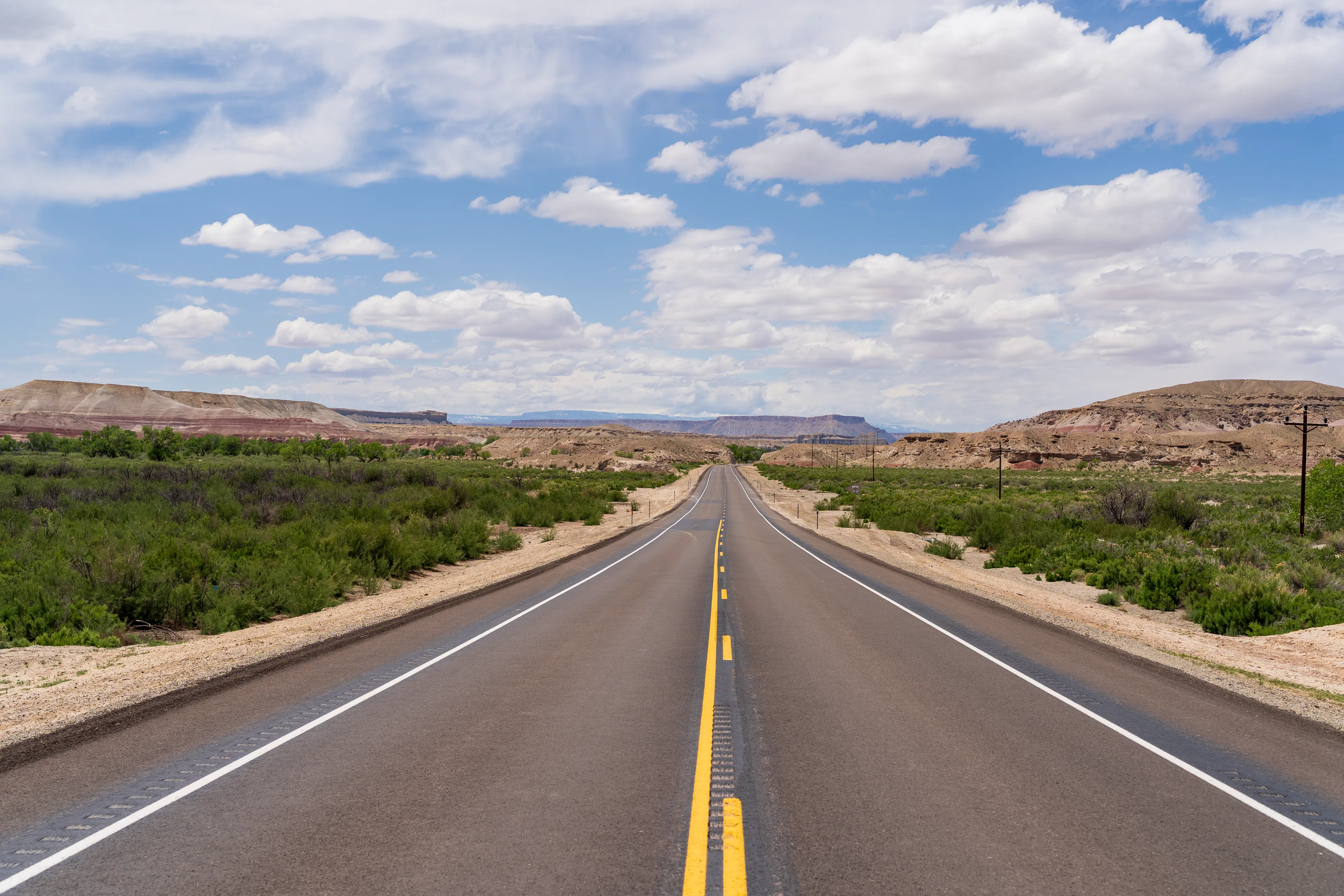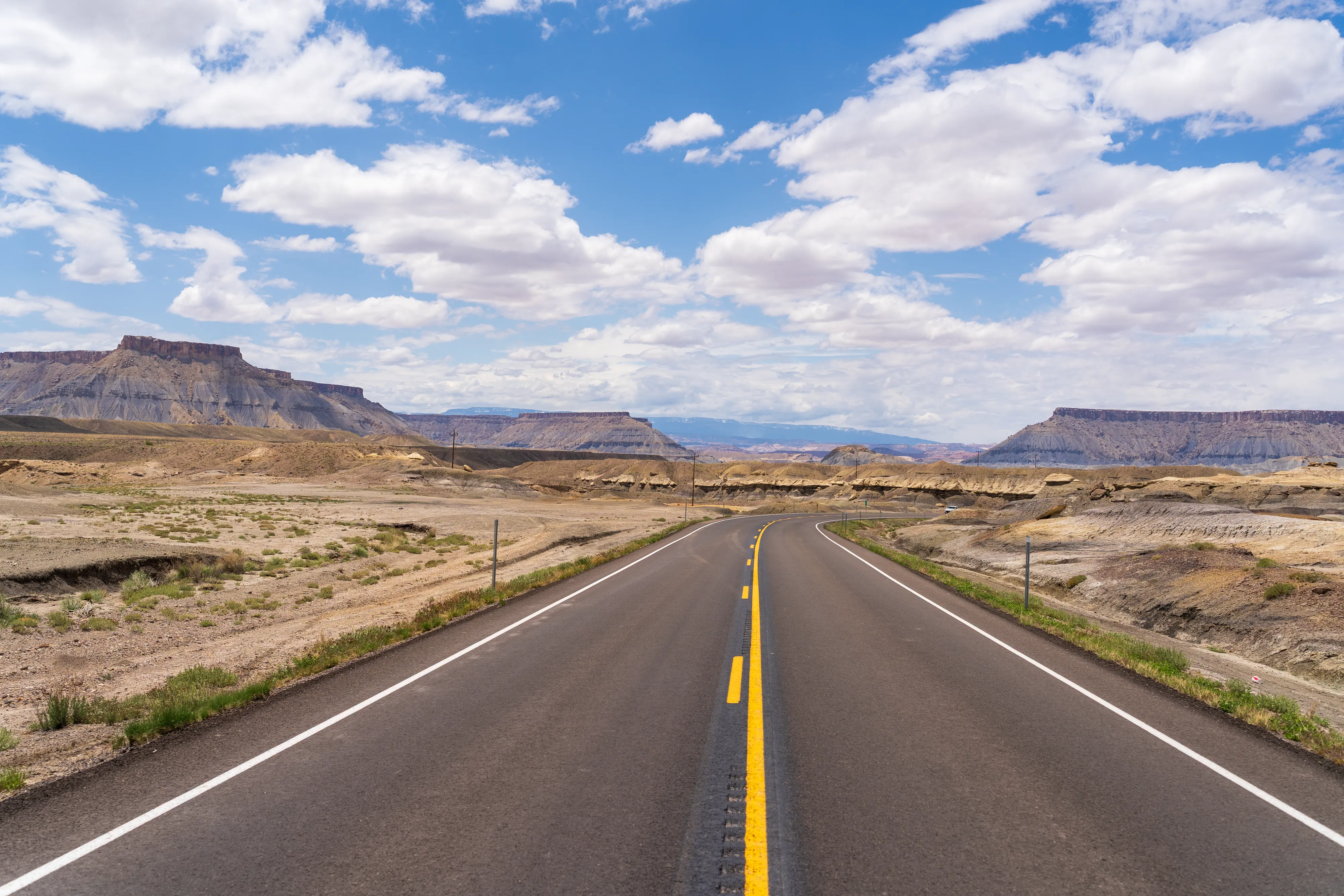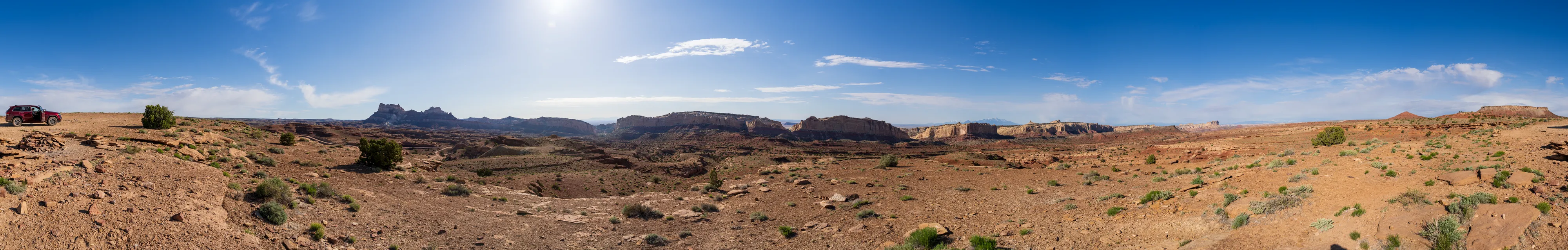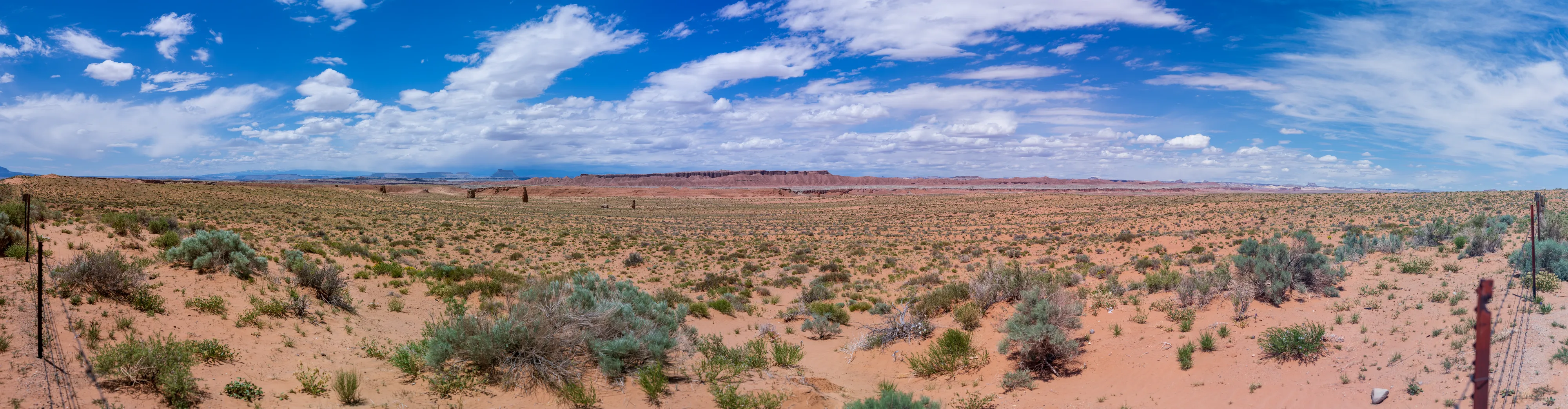 Wir setzen unsere Fahrt Richtung Capitol Reef National Park auf der Utah State Route 24 über Hanksville fort. Am Horizont sehen wir den Factory Butte, einen sehr schmalen, langgestreckten Felsen, der hoch aus der umgebenden Ebene aufragt.