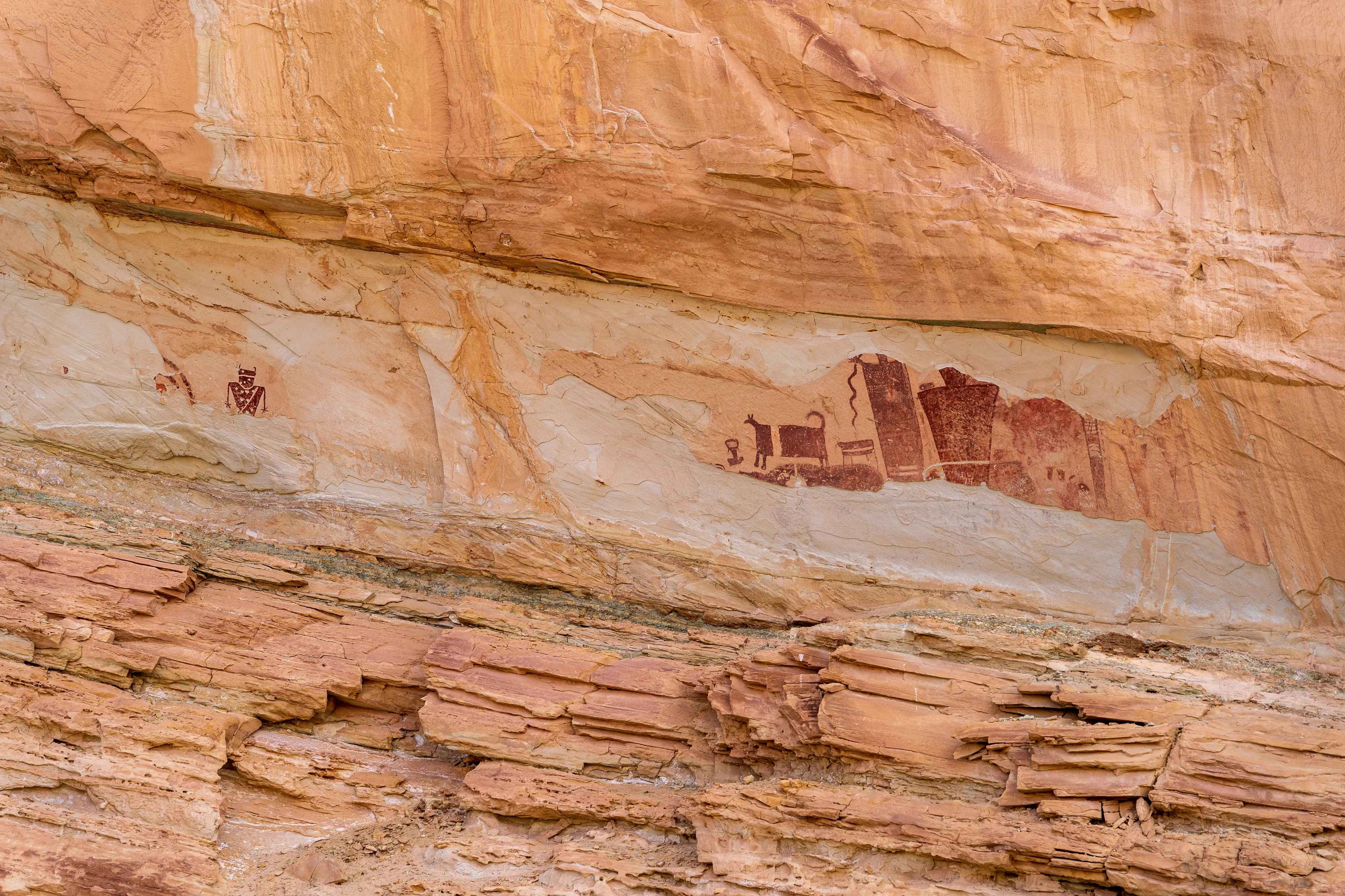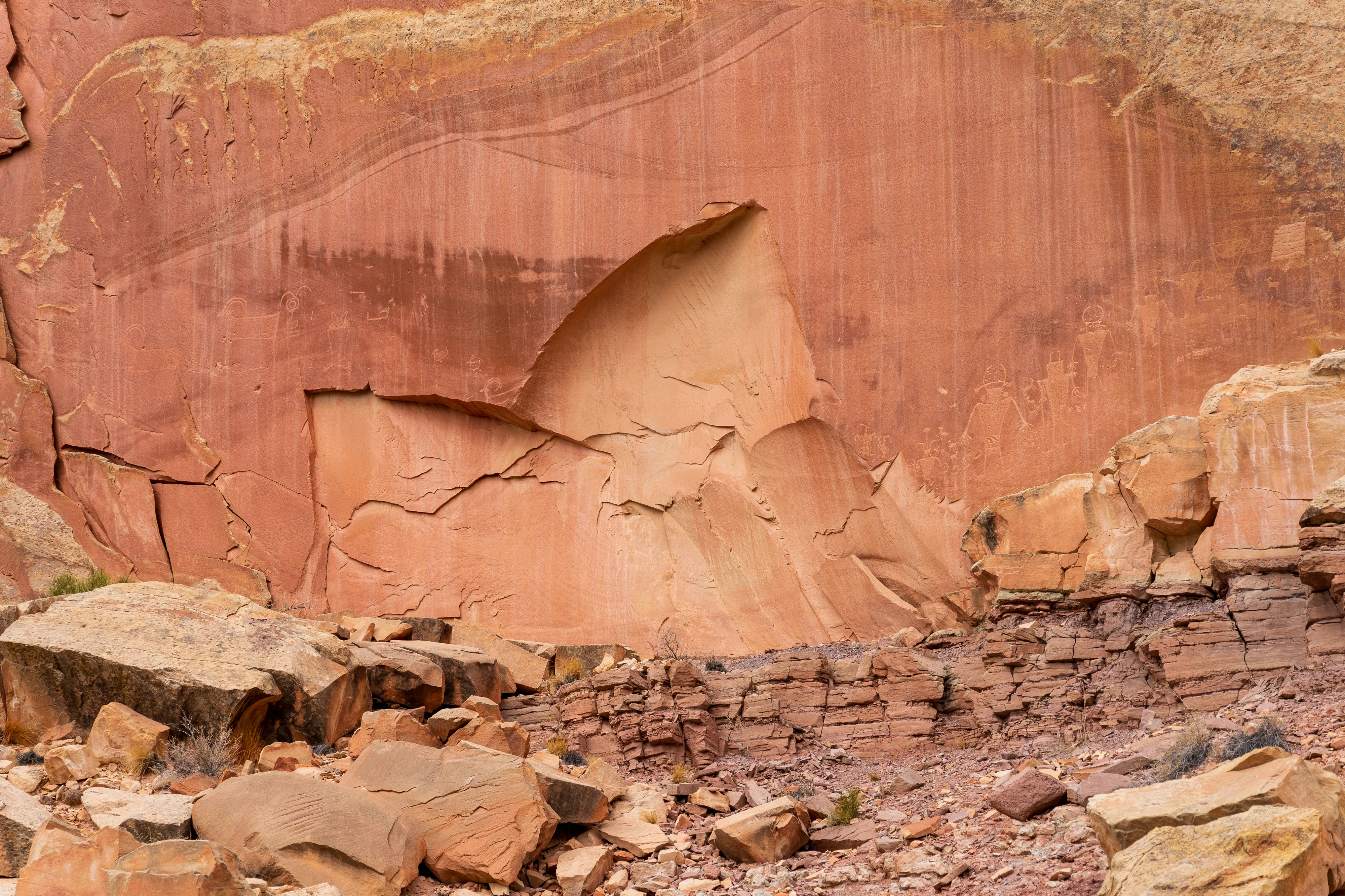 Einen gewissen Einblick in noch deutlich länger vergangene Zeiten bieten auch die vielen Petroglyphen, welche vermutlich auf Angehörige der sogenannten Fremont-Kultur zurückgehen. Diese mysteriösen - viel scheint man nicht über sie zu wissen - Ureinwohner haben sich entlang des, nach demselben Pionier benannten, Fremont Rivers mit unzähligen Gravuren verewigt.