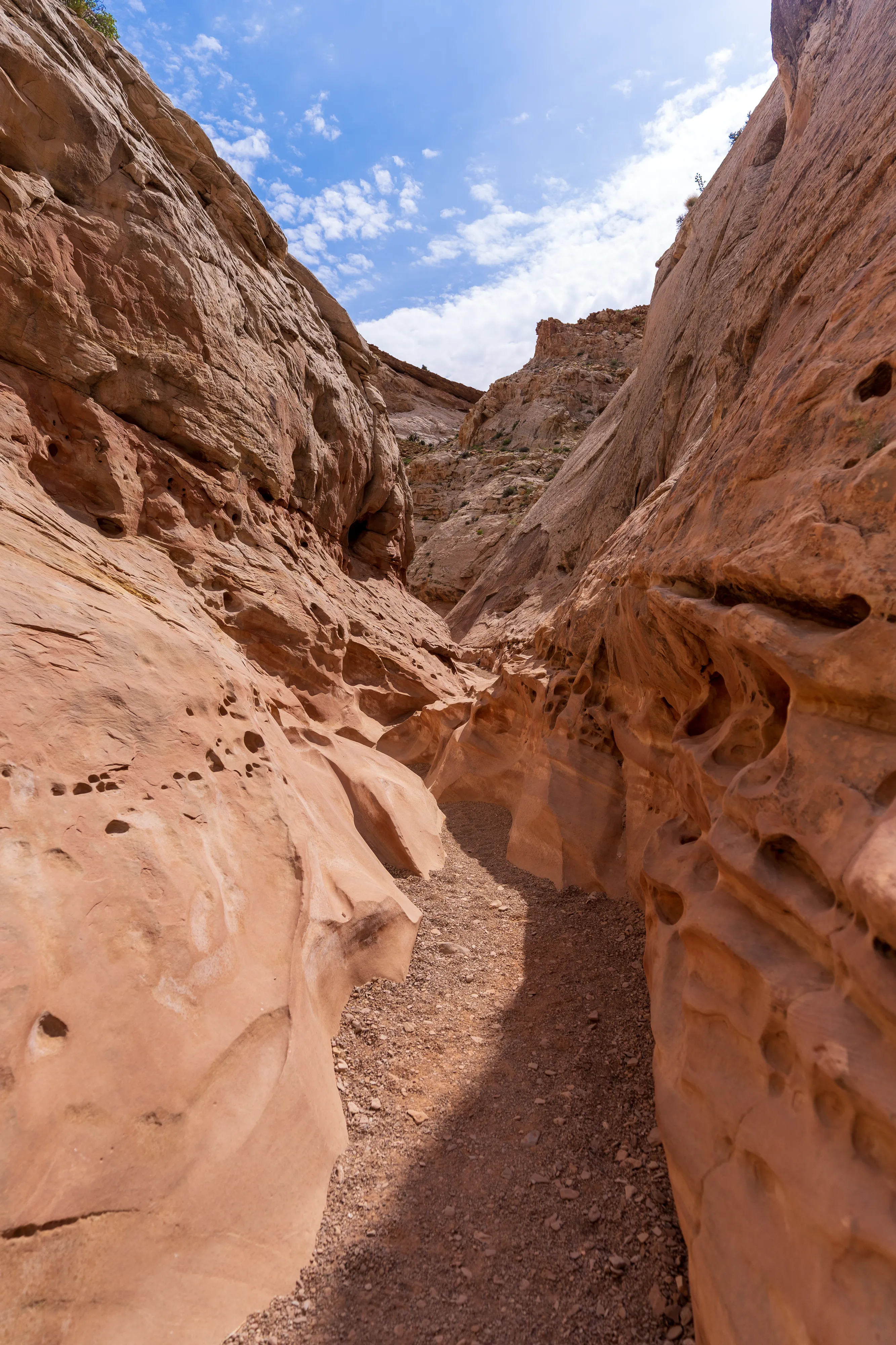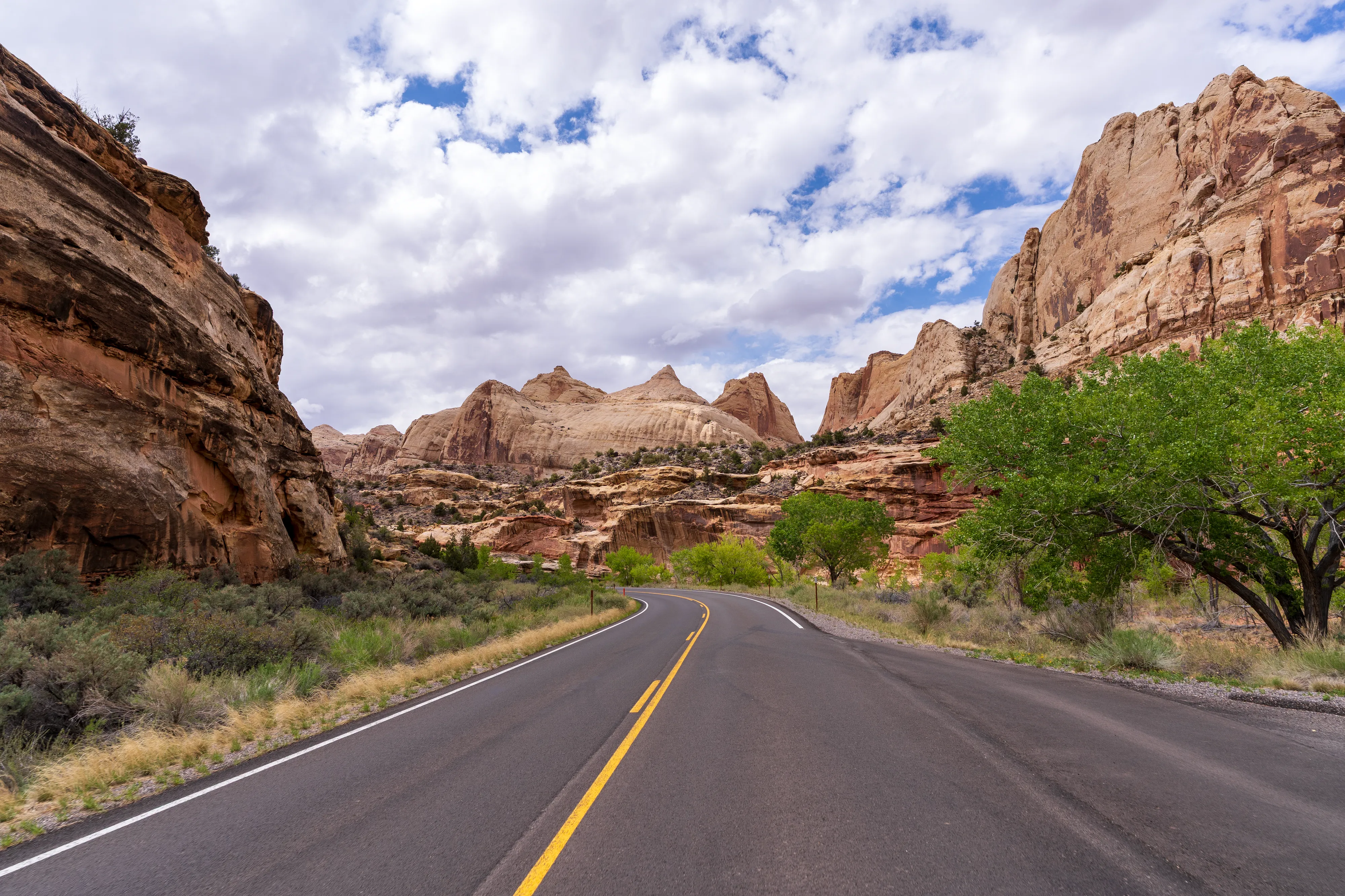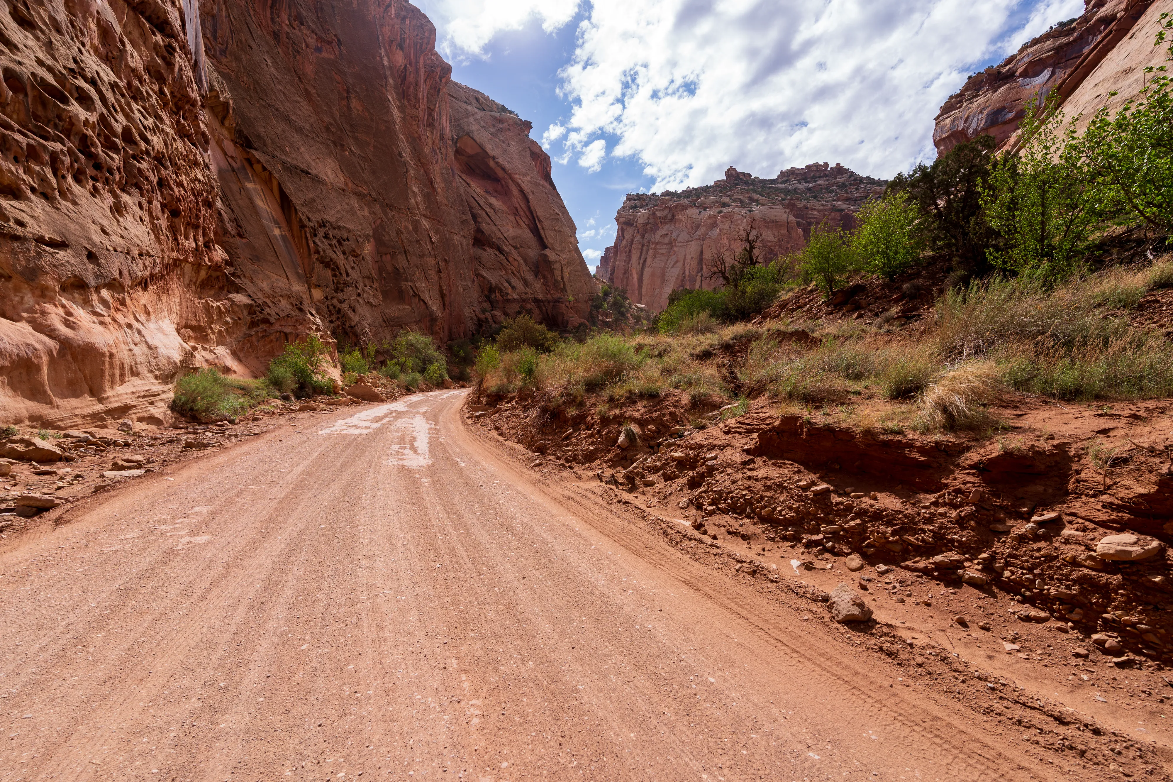 Der Straße folgend fahren wir hinter Cainsville in den vom Fremont River gegrabenen Canyon hinein, bis wir in Fruita auf den Scenic Drive des Capital Reef NP wechseln.