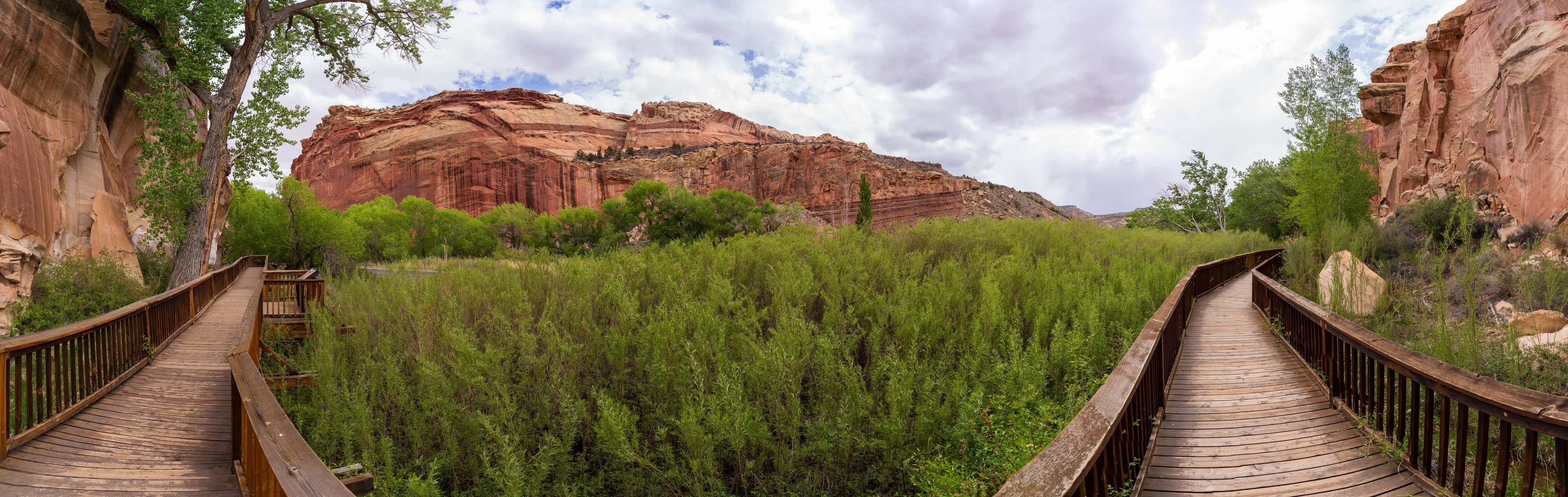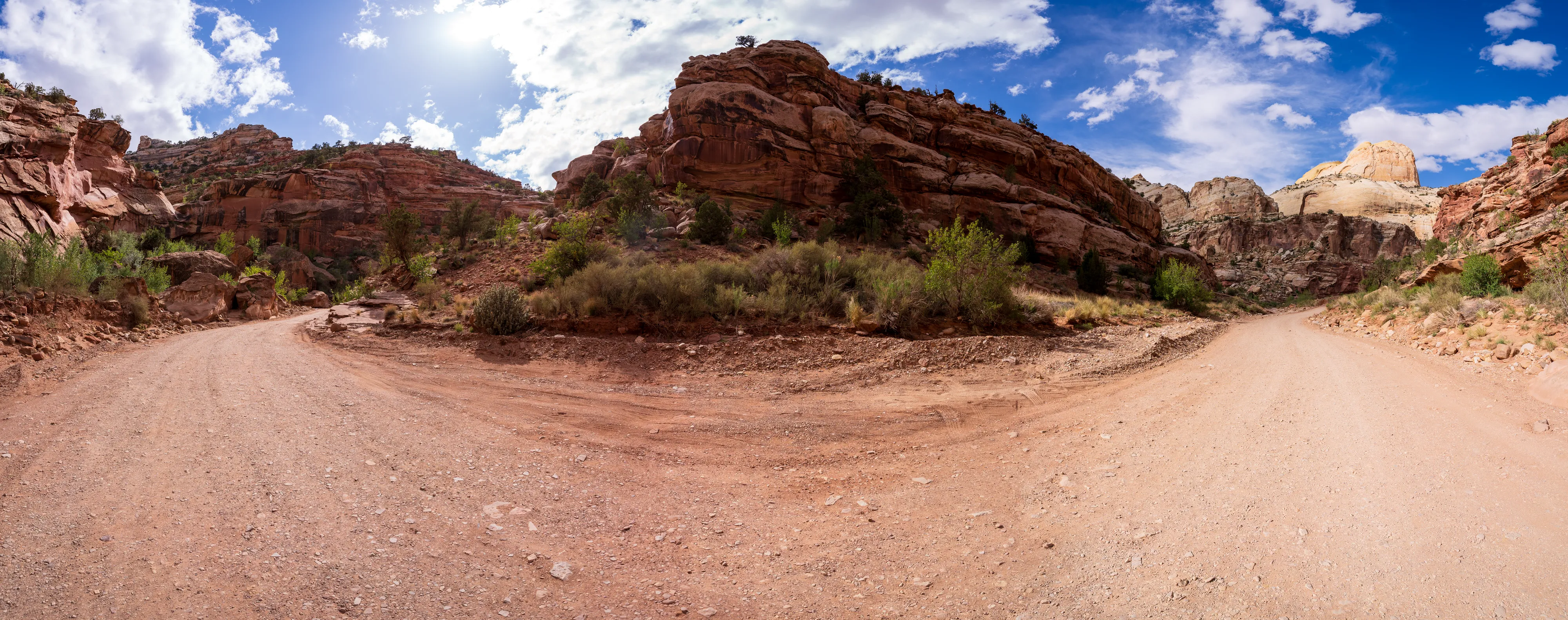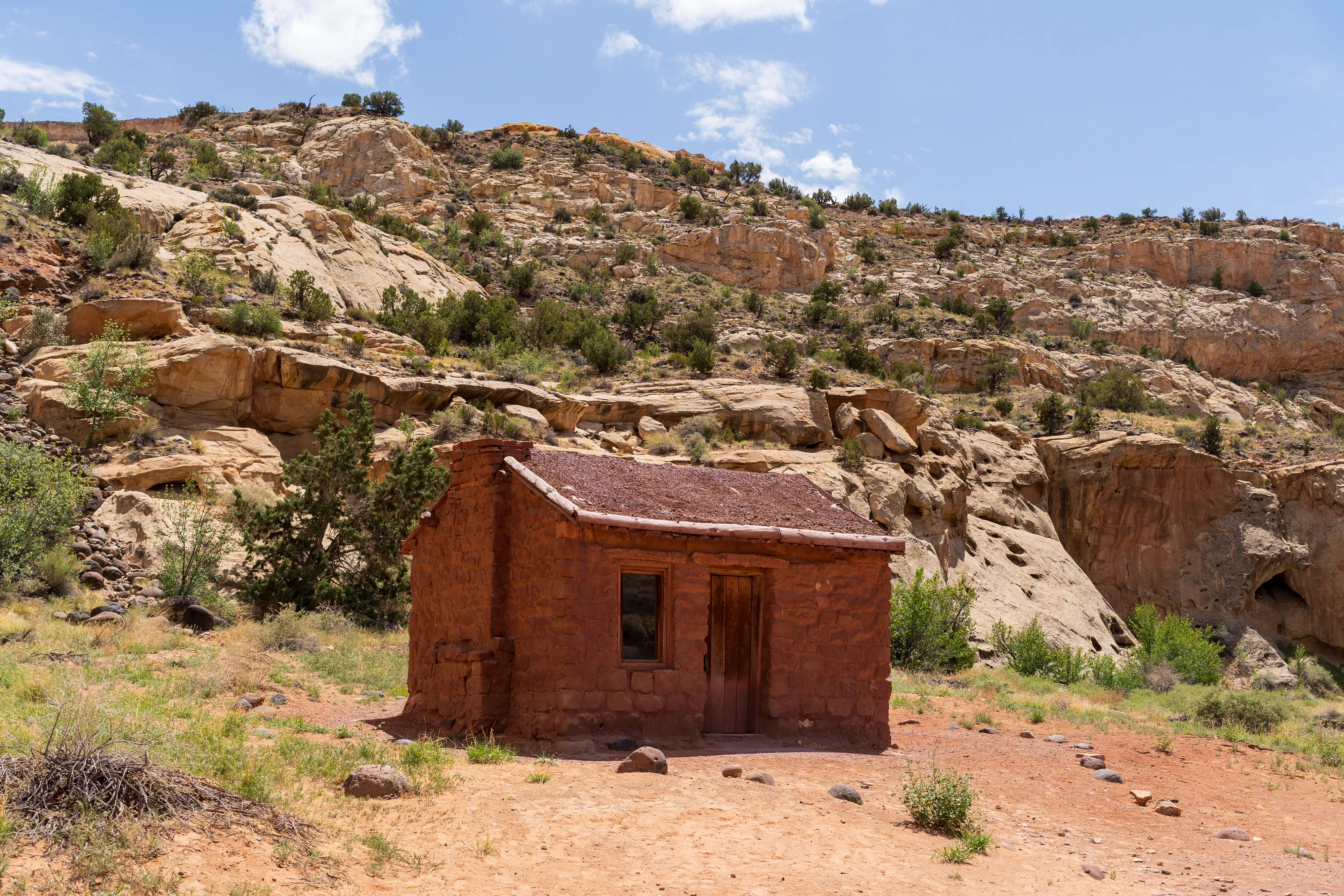 Fruita ist eine 1880 unter dem Namen “Junction” von Mormonen gegründete Siedlung, die für ihren Obstanbau bekannt war. Auch wenn von der Siedlung heute kaum noch etwas übrig geblieben ist und hier keine Mormonen mehr wohnen, so werden die Obstplantagen als Teil des historischen Erbes vom Nationalpark weiter gepflegt. Neben den Bäumen gibt es noch vereinzelte Einrichtungen, wie beispielsweise das ehemalige Schulhaus/Gemeindehaus und ein Wohnhaus, welche einen interessanten Einblick in die damalige Zeit in dieser abgeschiedenen Gegend geben.