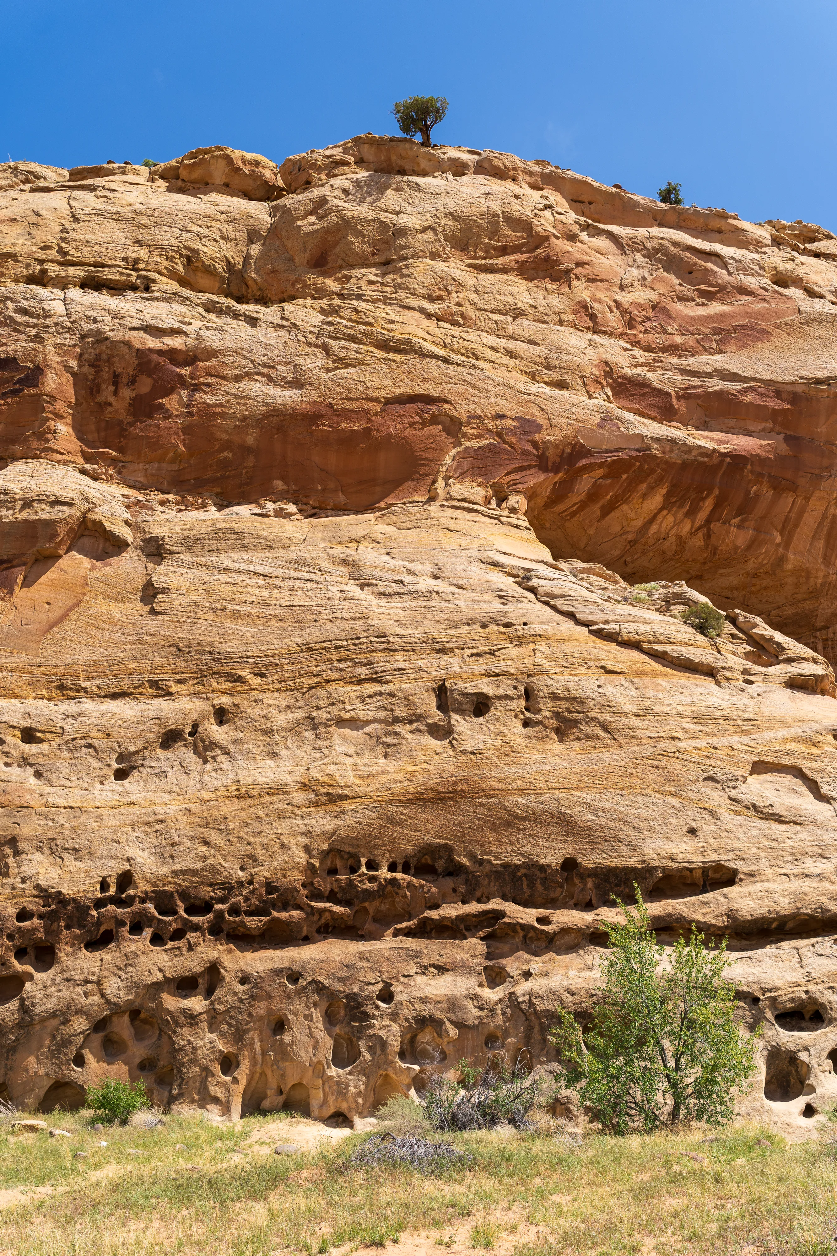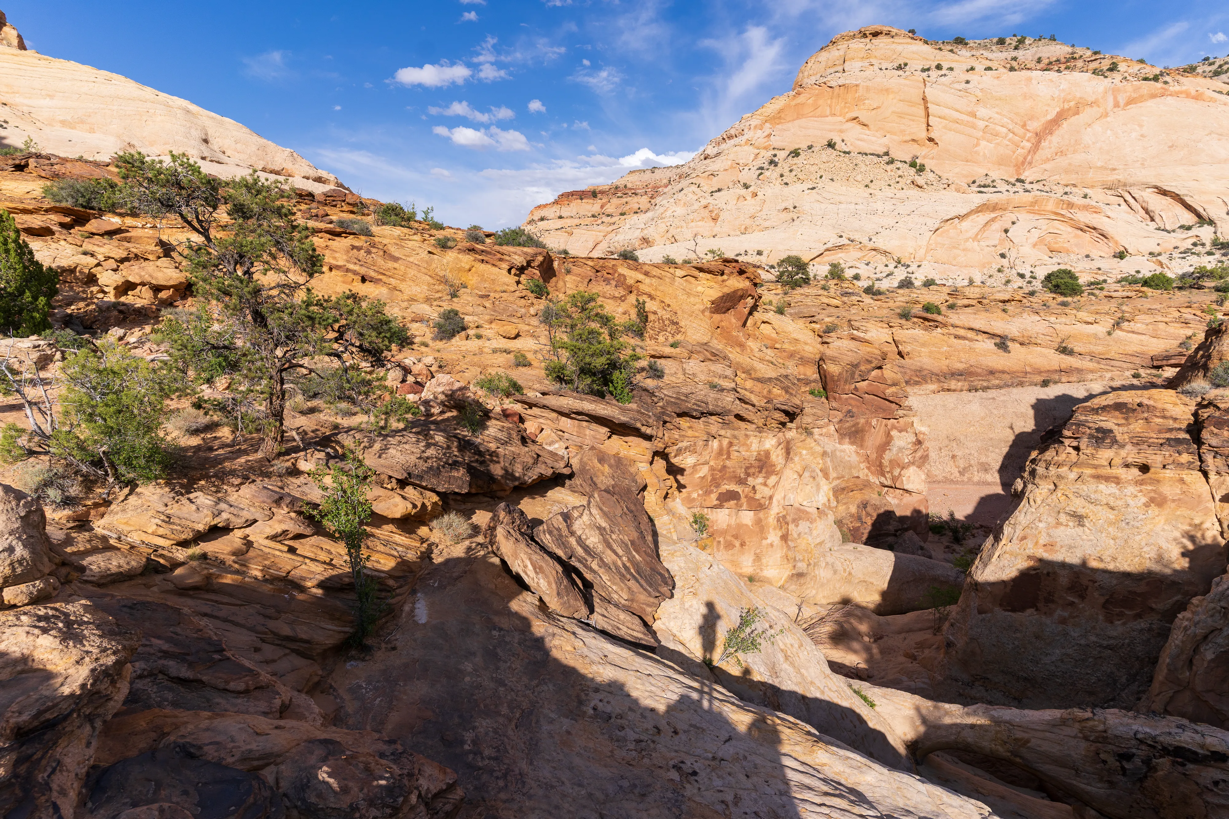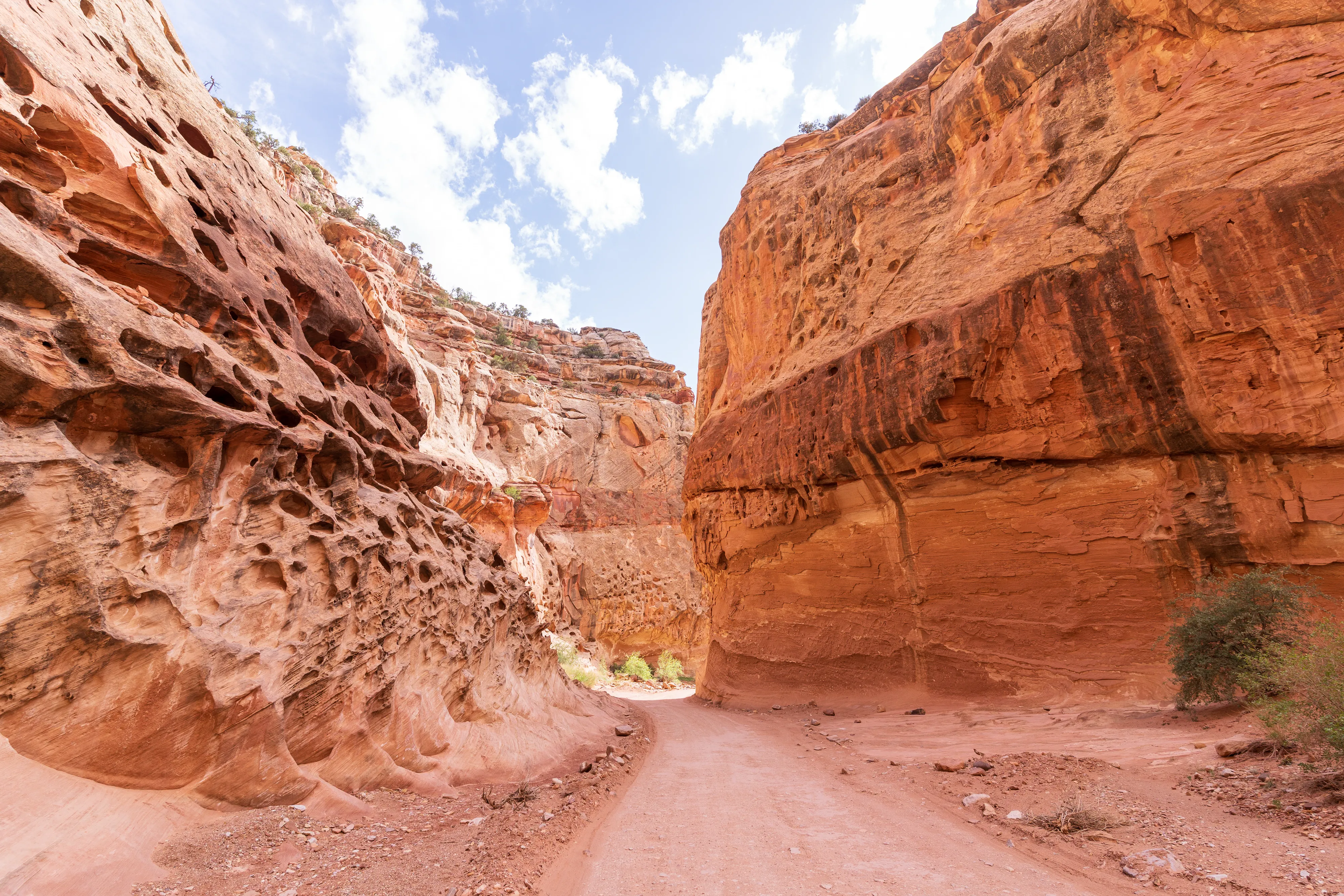 Fruita ist eine 1880 unter dem Namen “Junction” von Mormonen gegründete Siedlung, die für ihren Obstanbau bekannt war. Auch wenn von der Siedlung heute kaum noch etwas übrig geblieben ist und hier keine Mormonen mehr wohnen, so werden die Obstplantagen als Teil des historischen Erbes vom Nationalpark weiter gepflegt. Neben den Bäumen gibt es noch vereinzelte Einrichtungen, wie beispielsweise das ehemalige Schulhaus/Gemeindehaus und ein Wohnhaus, welche einen interessanten Einblick in die damalige Zeit in dieser abgeschiedenen Gegend geben.