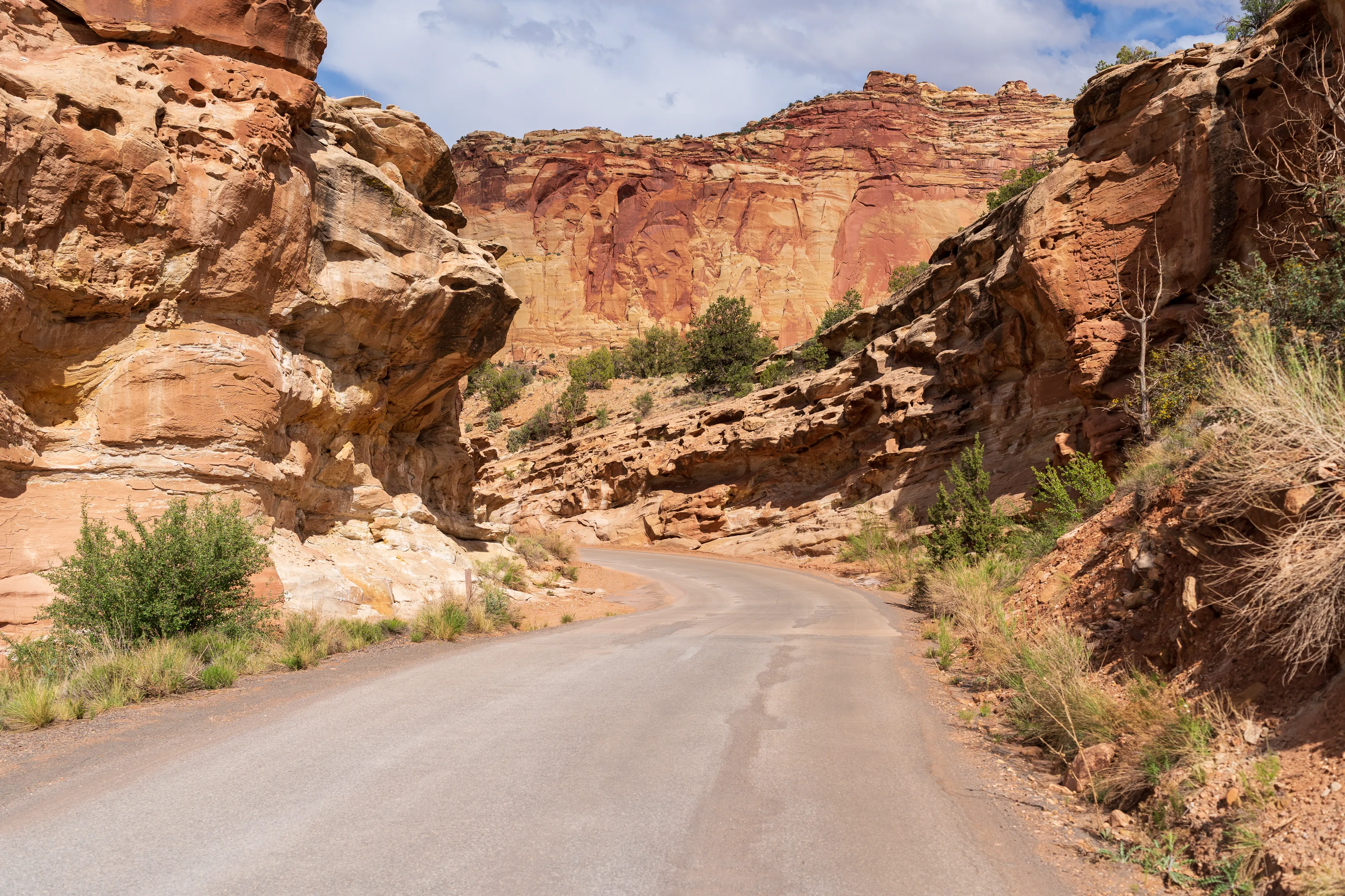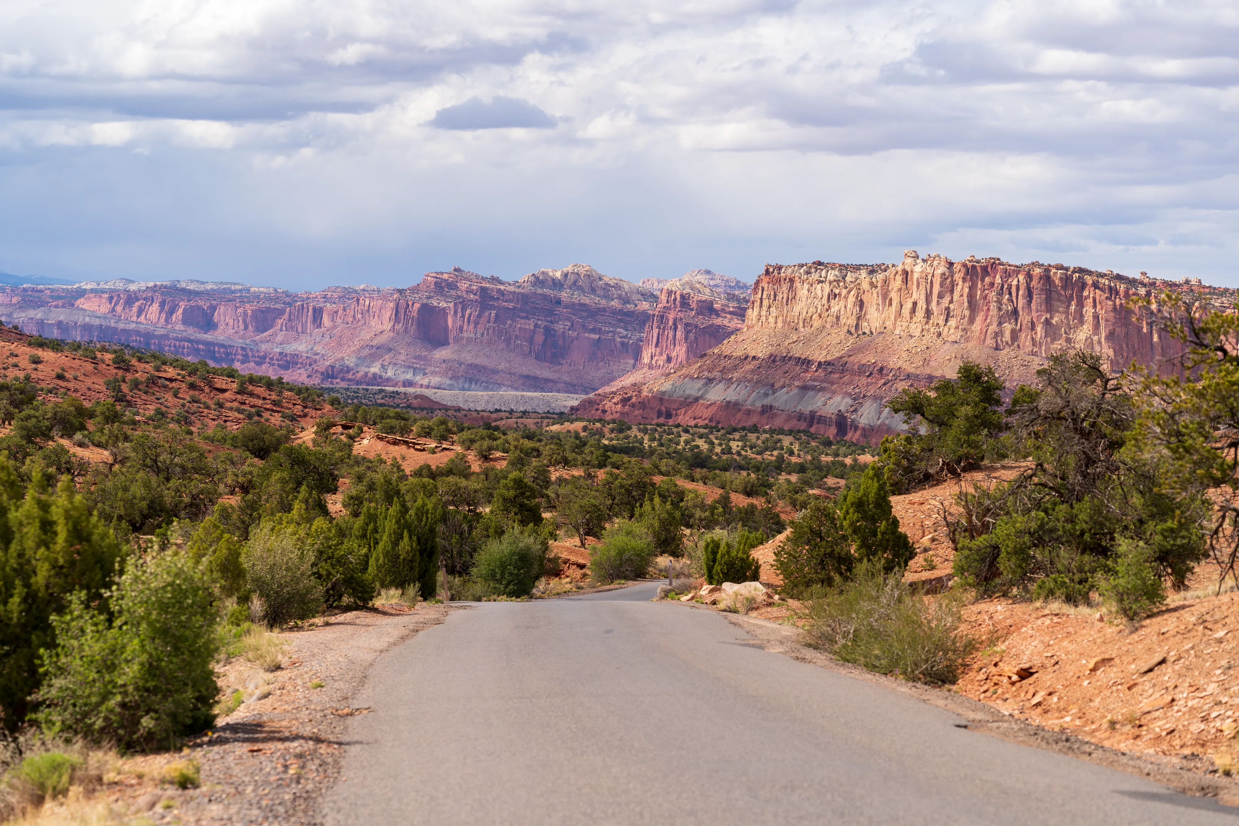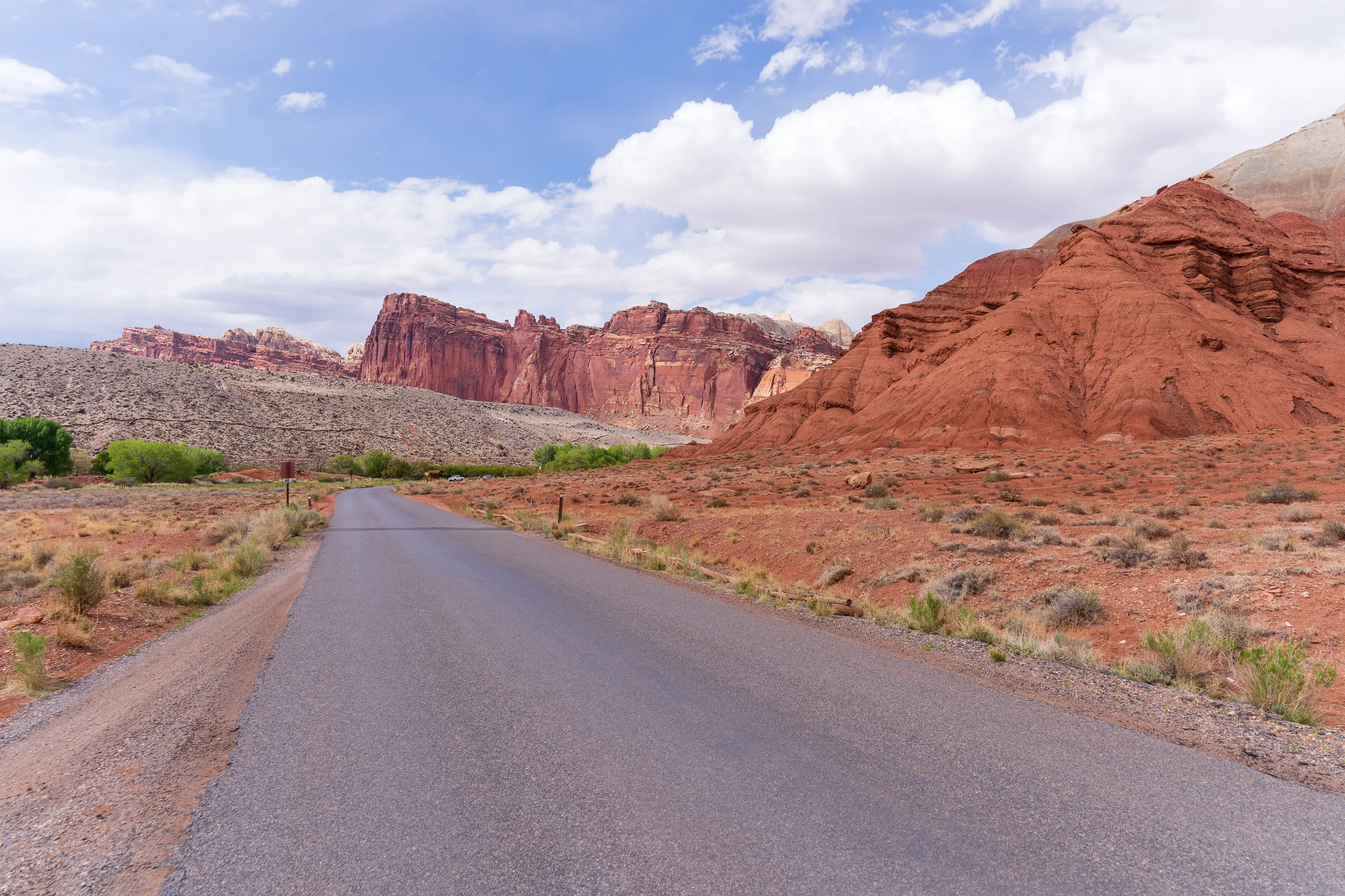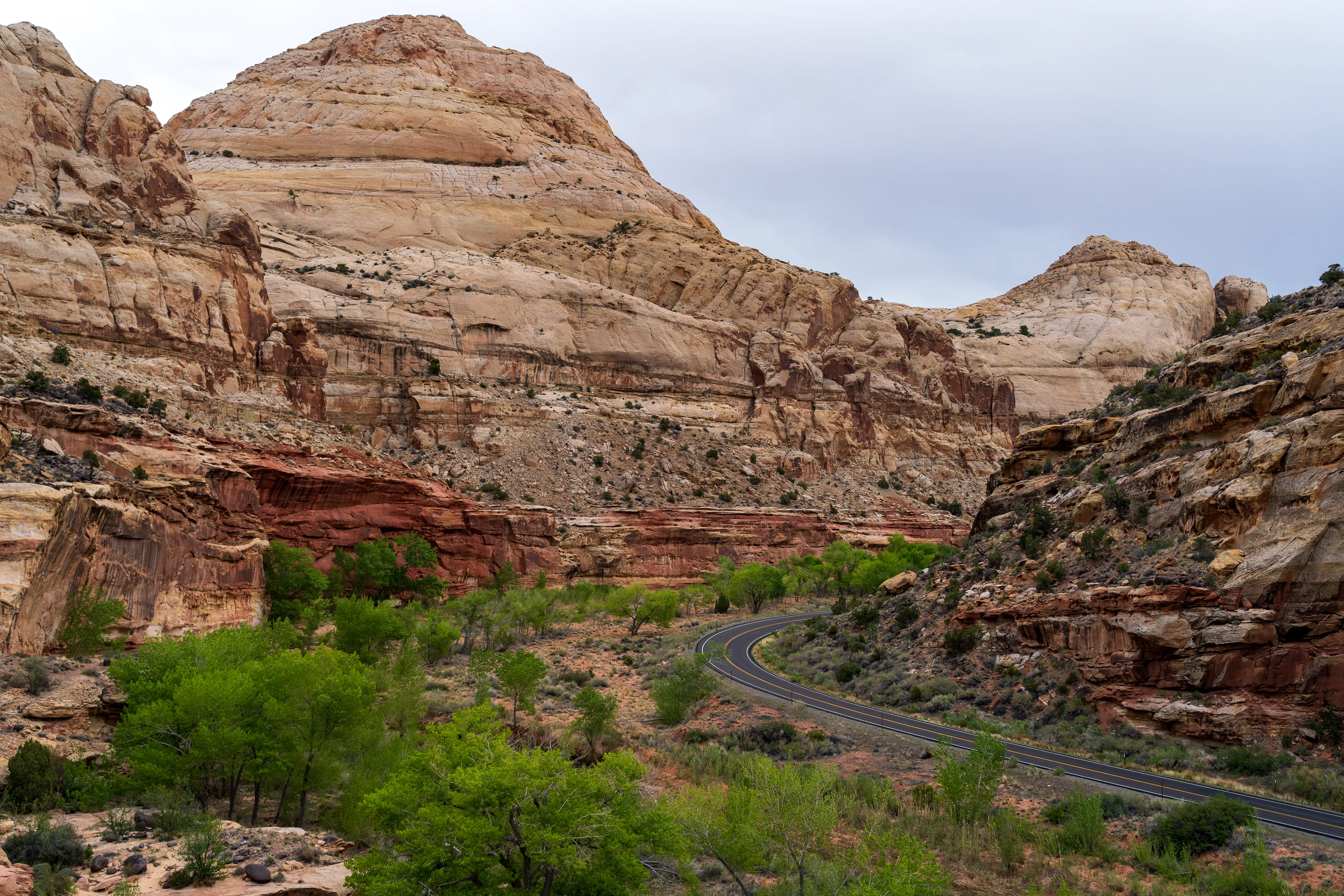 Von Fruita schlängelt sich der Scenic Drive Richtung Süden entlang einer Verwerfung, links und rechts sind vielschichtige und vielfarbige Felsen zu bestaunen. Der Nationalpark ist vor allem aus geologischer Sicht interessant, da er einen großen Teil der Waterpocket Fold genannten Erdfalte unter Schutz stellt. Generell wurde das Colorado-Plateau durch plattentektonische Vorgänge recht gleichmäßig angehoben - daher die horizontalen Gesteinsschichten, beispielsweise sichtbar im Grand Canyon. Bei der Waterpocket Fold war dies nicht der Fall - entlang dieser Verwerfungslinie wurden die Schichten nur auf einer Seite gleichmäßig angehoben, auf der anderen wurden die oberen Schichten lediglich von darunterliegenden “aufgefaltet”, sodass sie nun neben- statt übereinander an der Oberfläche liegen. Der Name “Waterpocket Fold” rührt daher, dass diese verschiedenen an der Oberflächen liegenden Schichten unterschiedlich stark zur Erosion neigen und sich daher Vertiefungen, die “Waterpockets”, bilden. Der National Park Service erklärt diese “Monoklinale” recht anschaulich.