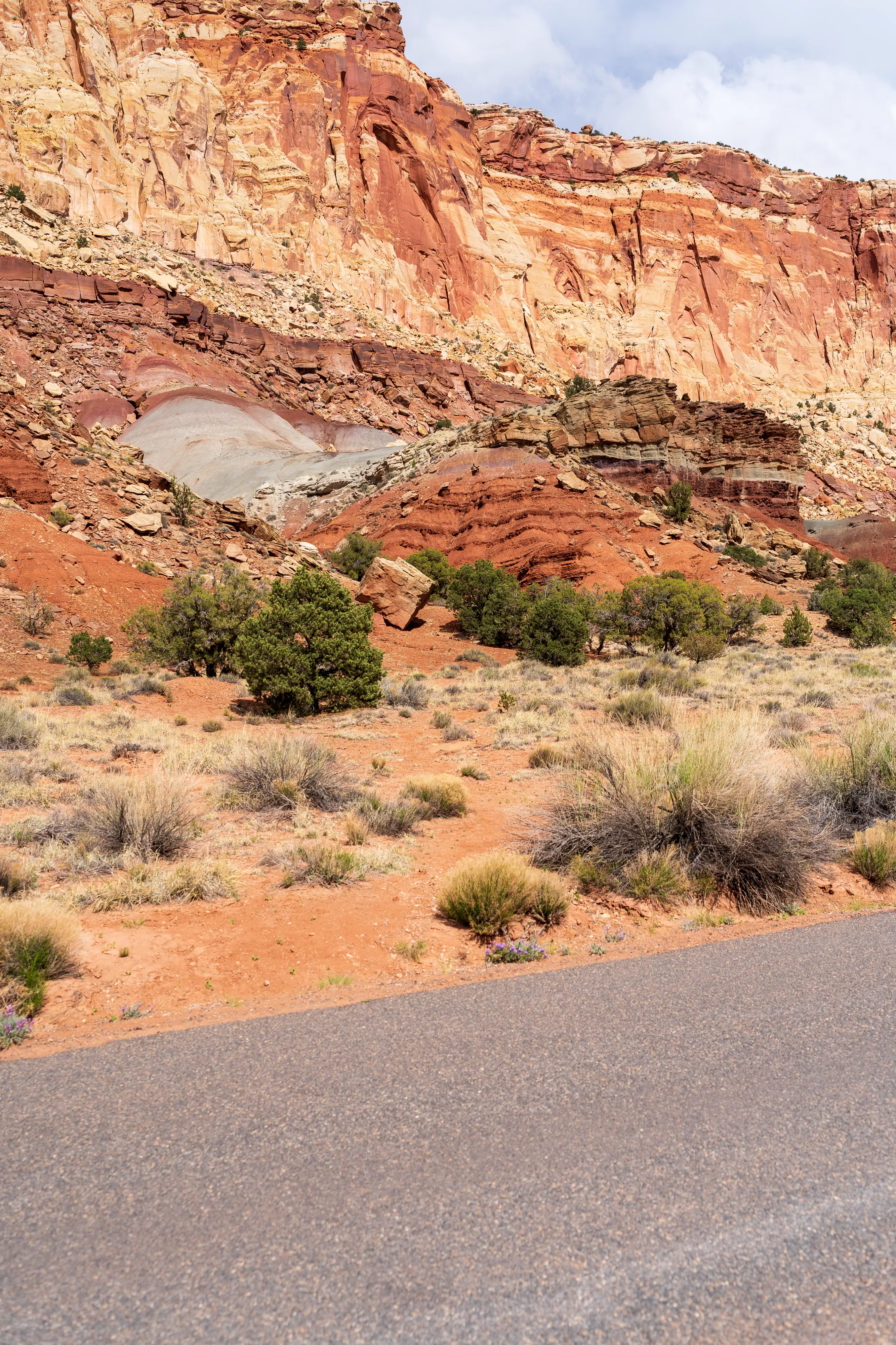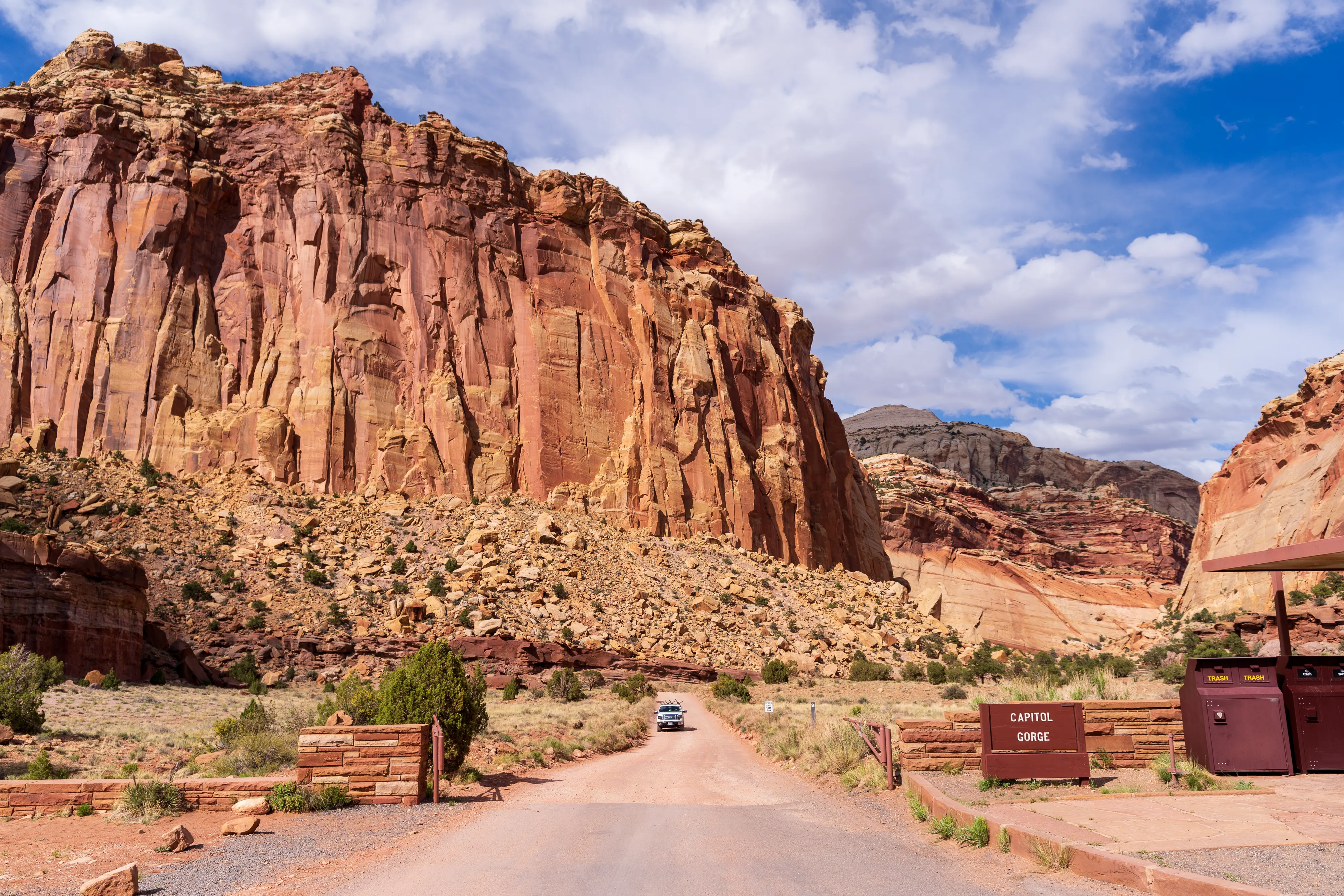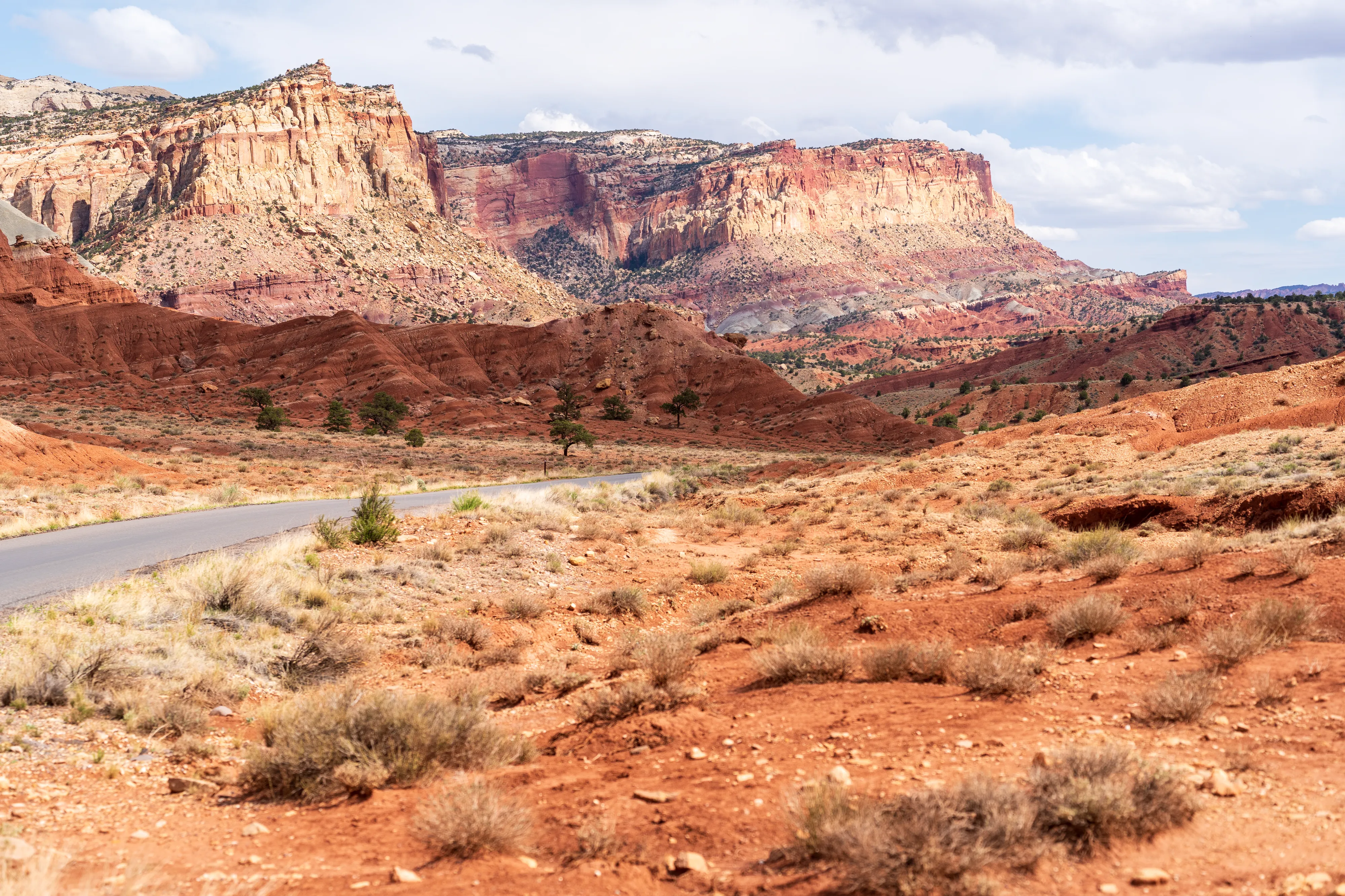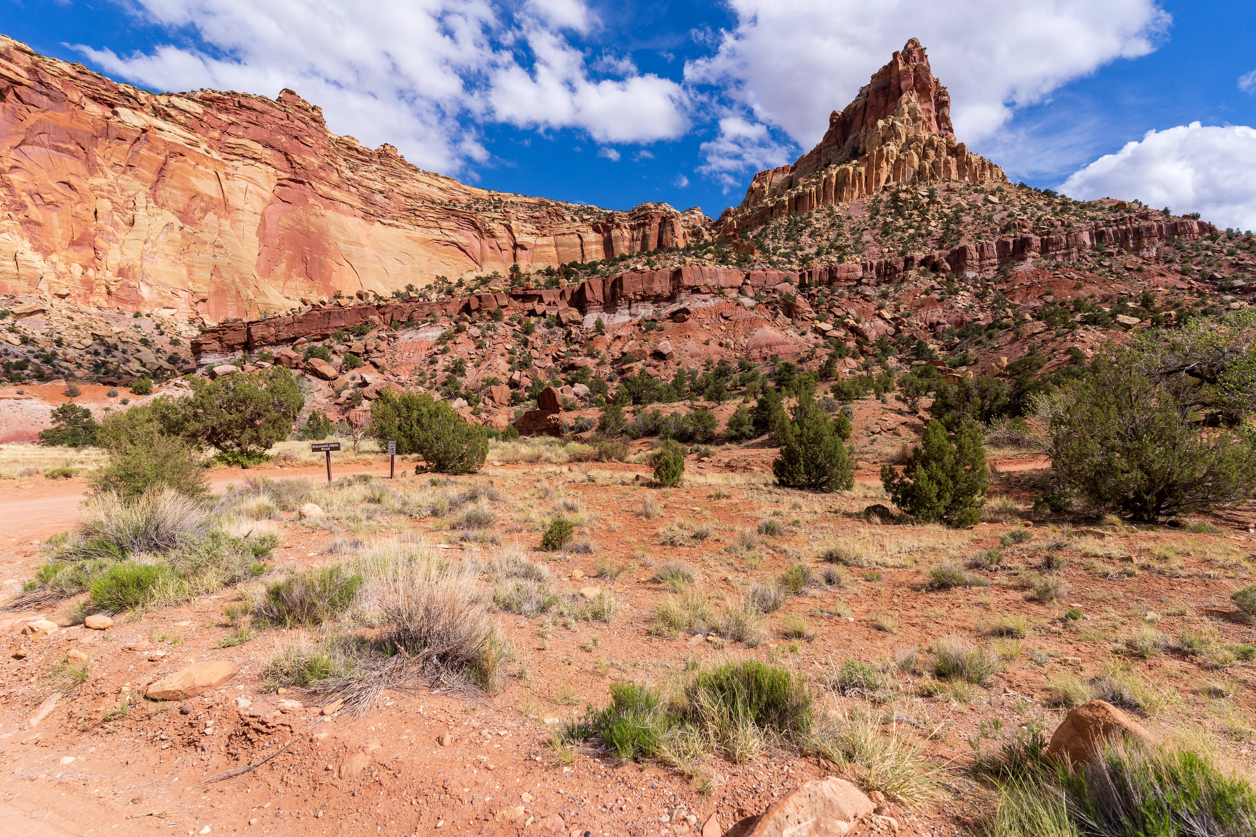 Von Fruita schlängelt sich der Scenic Drive Richtung Süden entlang einer Verwerfung, links und rechts sind vielschichtige und vielfarbige Felsen zu bestaunen. Der Nationalpark ist vor allem aus geologischer Sicht interessant, da er einen großen Teil der Waterpocket Fold genannten Erdfalte unter Schutz stellt. Generell wurde das Colorado-Plateau durch plattentektonische Vorgänge recht gleichmäßig angehoben - daher die horizontalen Gesteinsschichten, beispielsweise sichtbar im Grand Canyon. Bei der Waterpocket Fold war dies nicht der Fall - entlang dieser Verwerfungslinie wurden die Schichten nur auf einer Seite gleichmäßig angehoben, auf der anderen wurden die oberen Schichten lediglich von darunterliegenden “aufgefaltet”, sodass sie nun neben- statt übereinander an der Oberfläche liegen. Der Name “Waterpocket Fold” rührt daher, dass diese verschiedenen an der Oberflächen liegenden Schichten unterschiedlich stark zur Erosion neigen und sich daher Vertiefungen, die “Waterpockets”, bilden. Der National Park Service erklärt diese “Monoklinale” recht anschaulich.