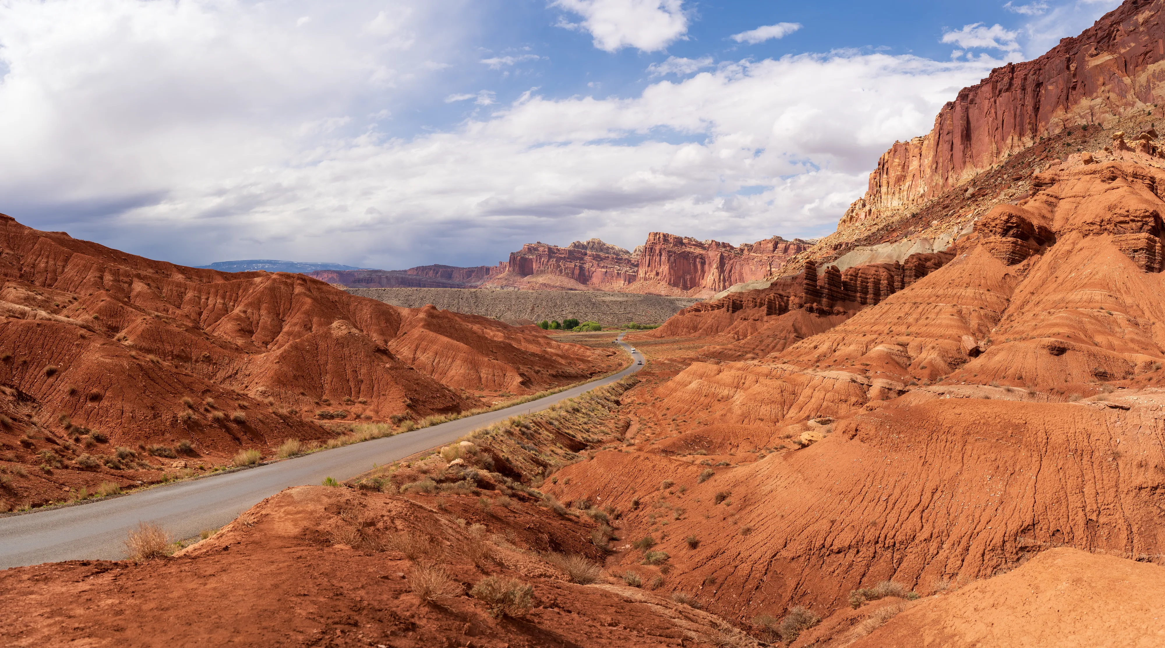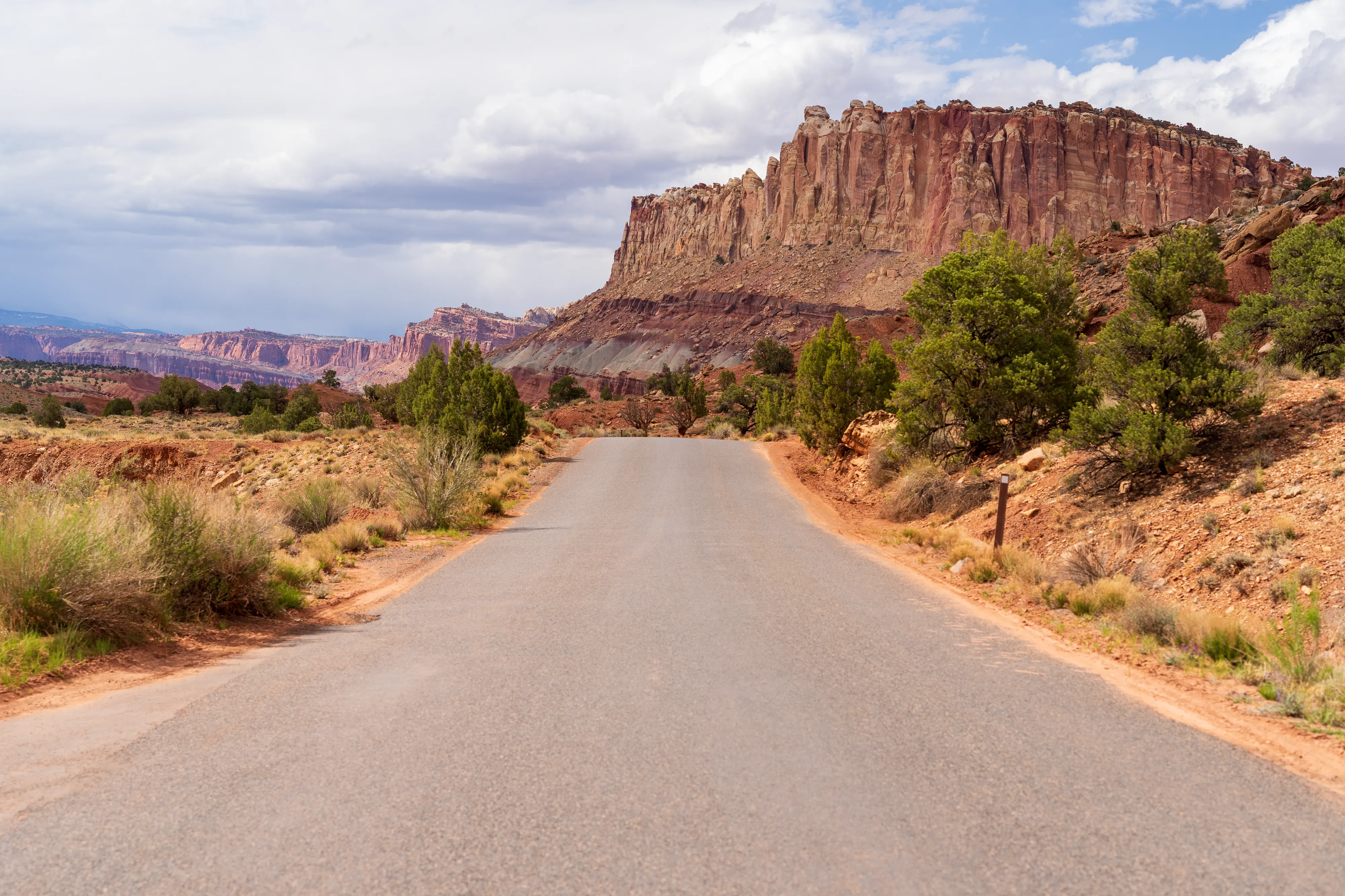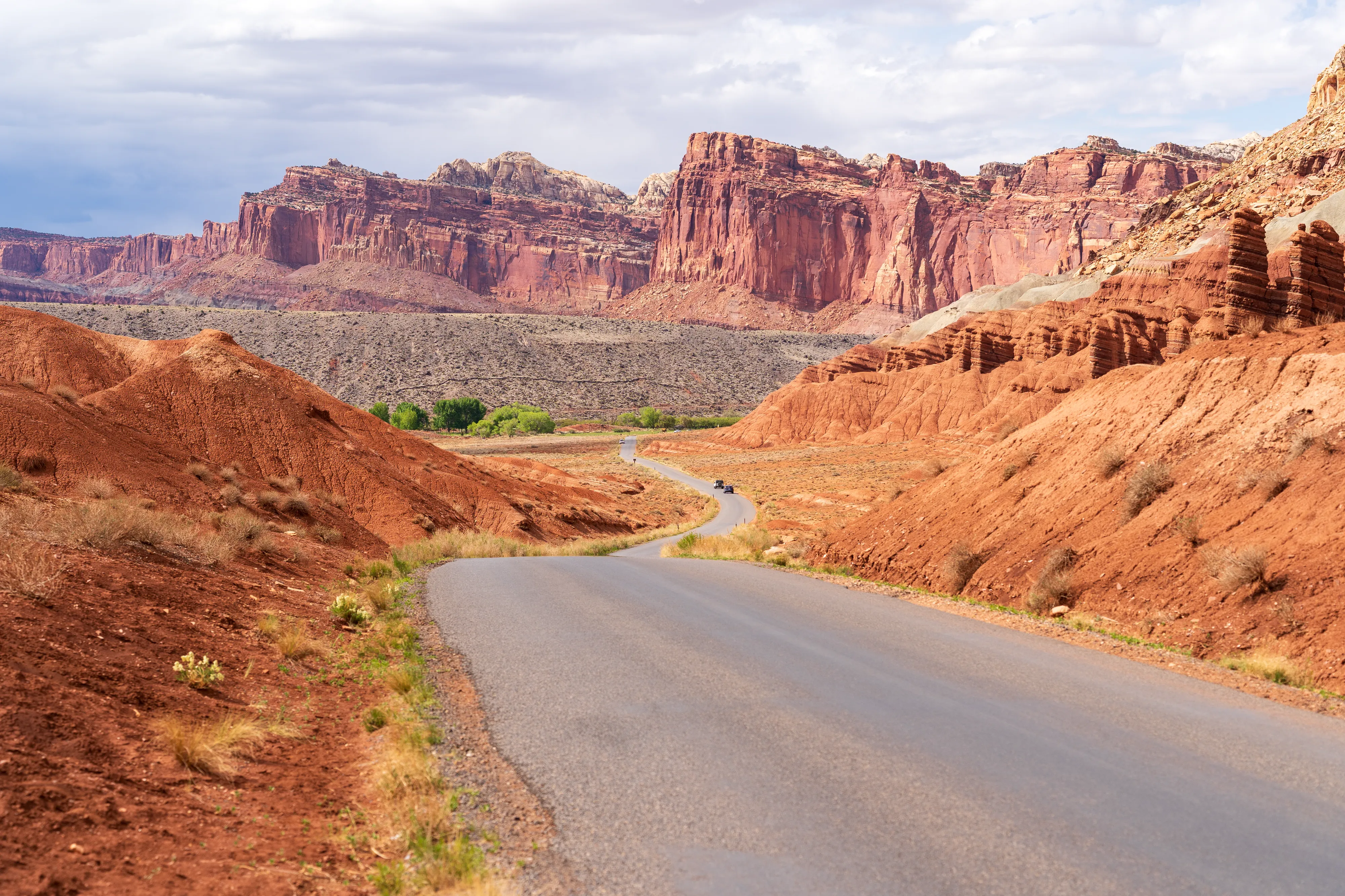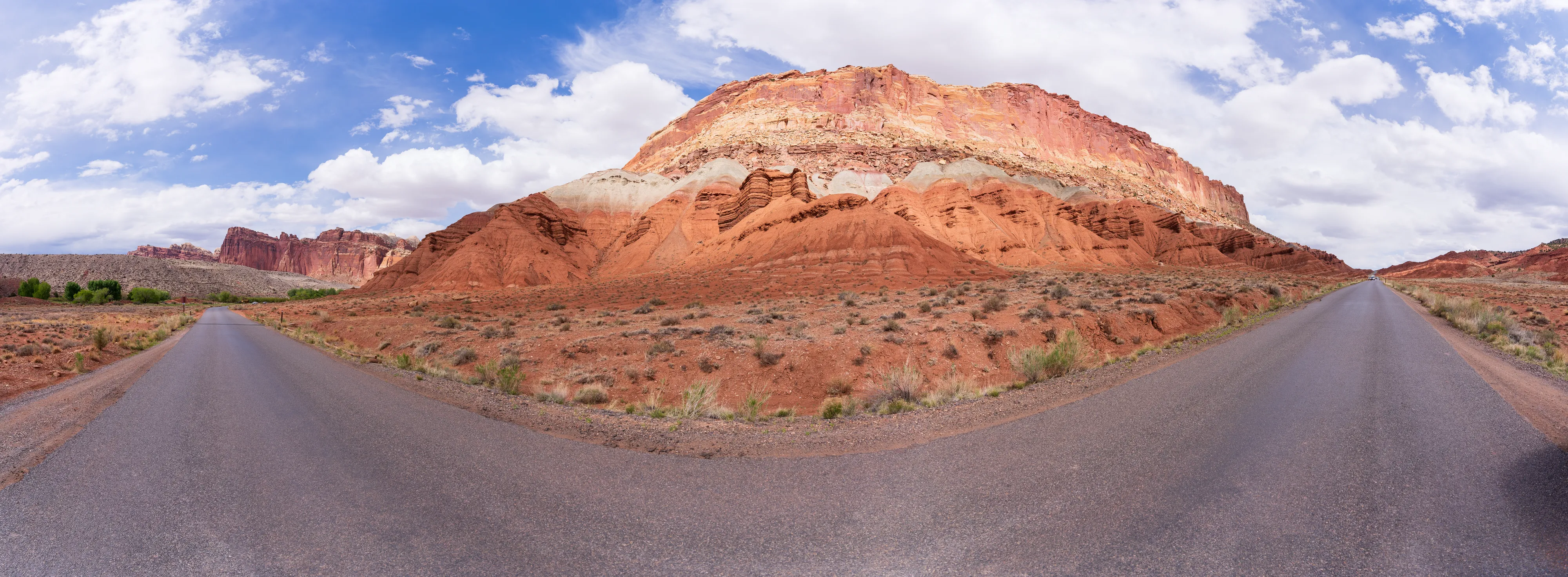 Von Fruita schlängelt sich der Scenic Drive Richtung Süden entlang einer Verwerfung, links und rechts sind vielschichtige und vielfarbige Felsen zu bestaunen. Der Nationalpark ist vor allem aus geologischer Sicht interessant, da er einen großen Teil der Waterpocket Fold genannten Erdfalte unter Schutz stellt. Generell wurde das Colorado-Plateau durch plattentektonische Vorgänge recht gleichmäßig angehoben - daher die horizontalen Gesteinsschichten, beispielsweise sichtbar im Grand Canyon. Bei der Waterpocket Fold war dies nicht der Fall - entlang dieser Verwerfungslinie wurden die Schichten nur auf einer Seite gleichmäßig angehoben, auf der anderen wurden die oberen Schichten lediglich von darunterliegenden “aufgefaltet”, sodass sie nun neben- statt übereinander an der Oberfläche liegen. Der Name “Waterpocket Fold” rührt daher, dass diese verschiedenen an der Oberflächen liegenden Schichten unterschiedlich stark zur Erosion neigen und sich daher Vertiefungen, die “Waterpockets”, bilden. Der National Park Service erklärt diese “Monoklinale” recht anschaulich.