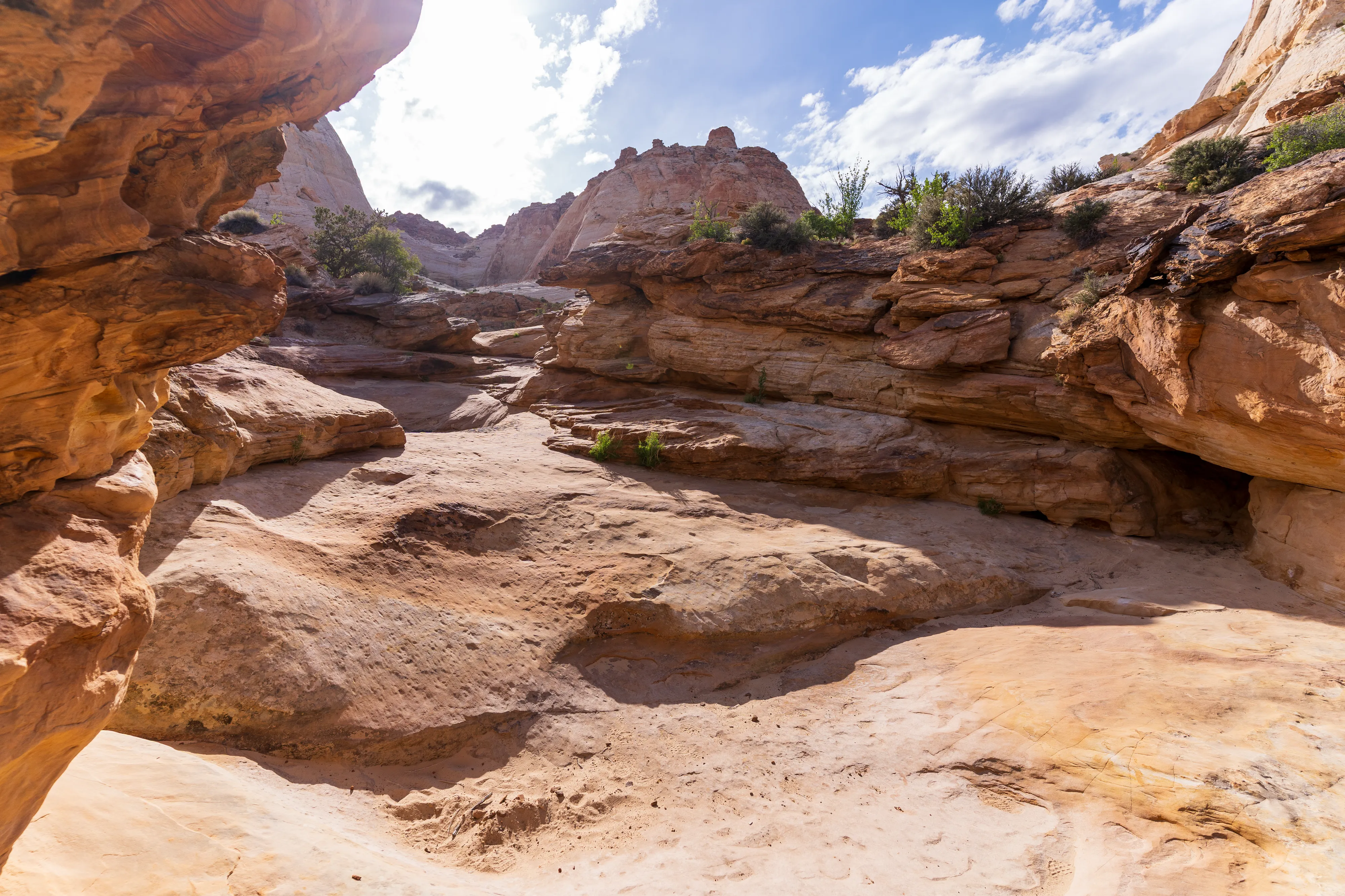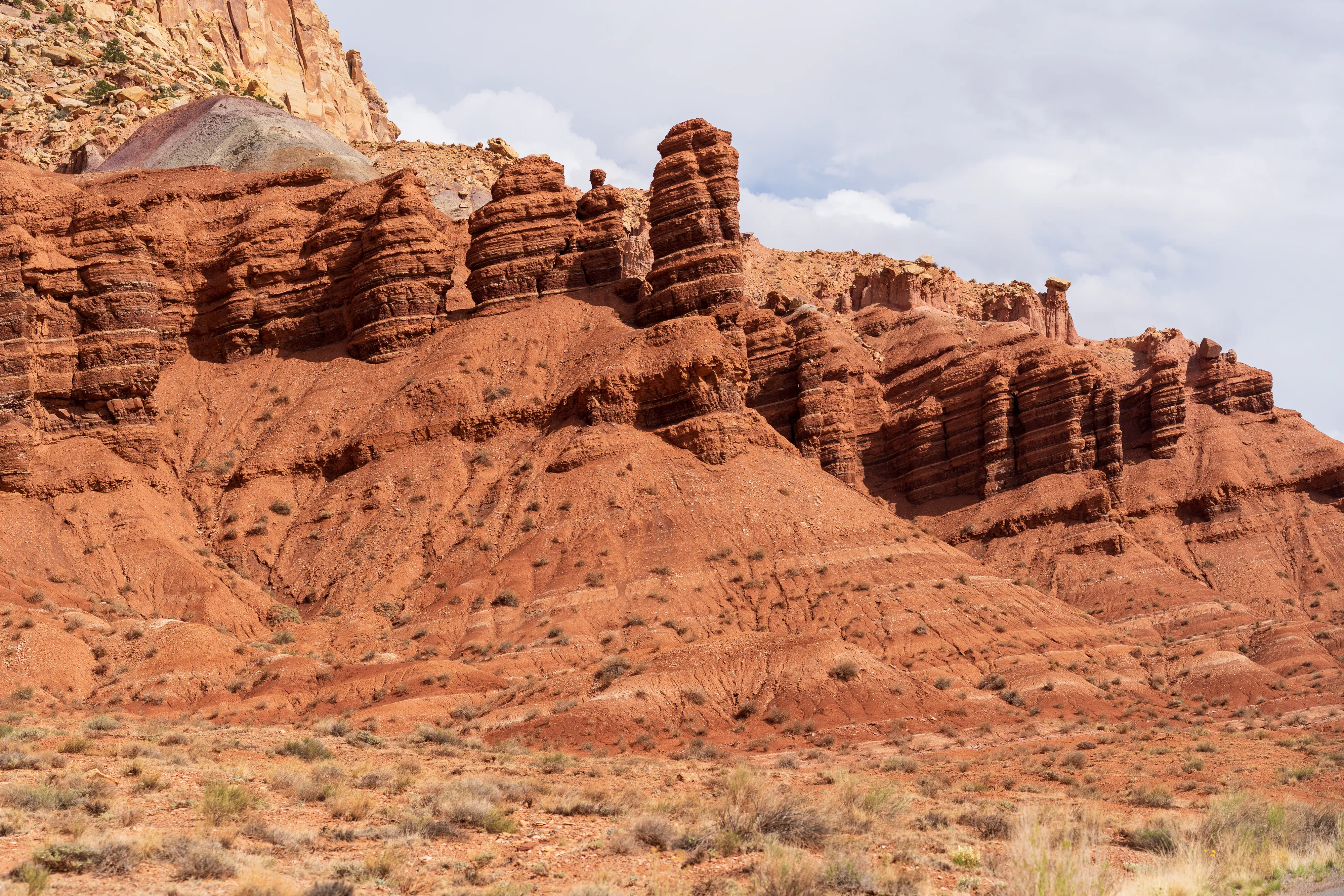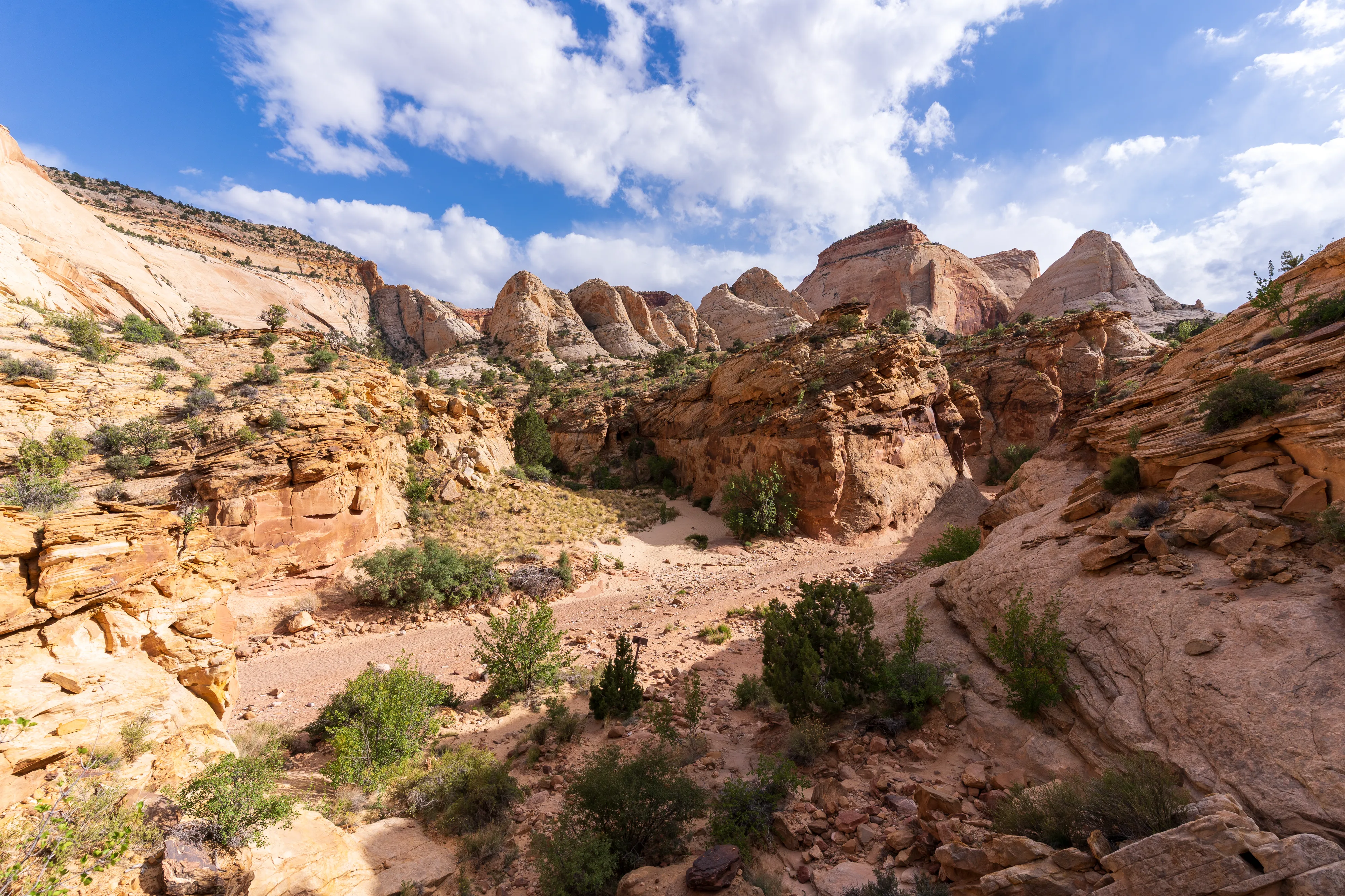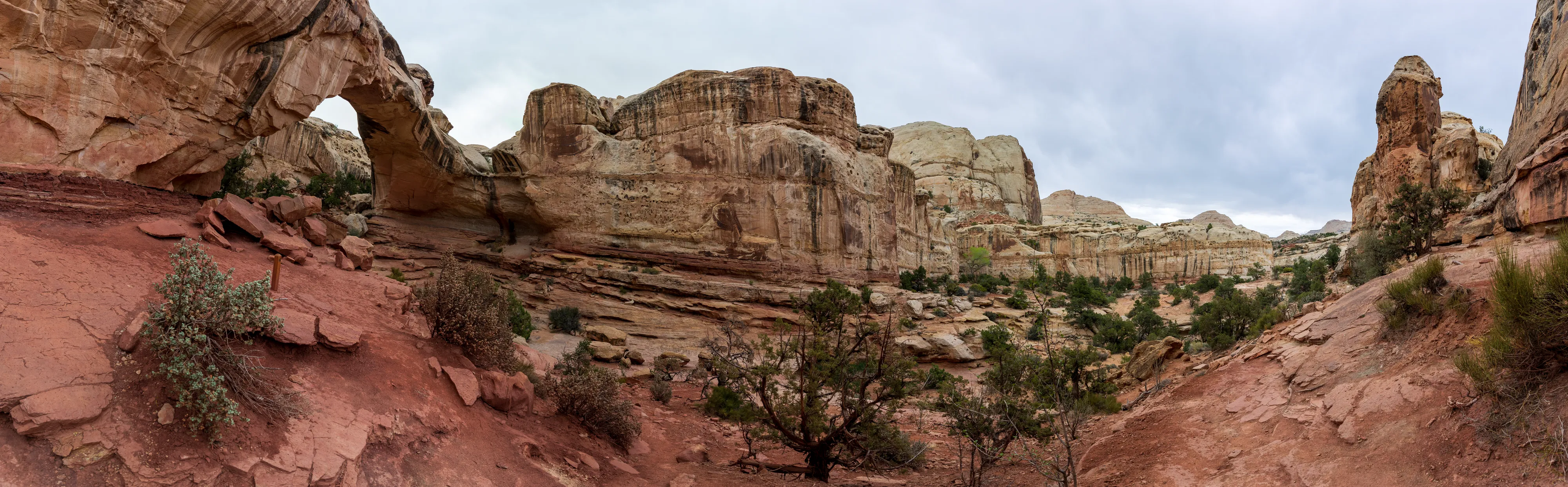 Von Fruita schlängelt sich der Scenic Drive Richtung Süden entlang einer Verwerfung, links und rechts sind vielschichtige und vielfarbige Felsen zu bestaunen. Der Nationalpark ist vor allem aus geologischer Sicht interessant, da er einen großen Teil der Waterpocket Fold genannten Erdfalte unter Schutz stellt. Generell wurde das Colorado-Plateau durch plattentektonische Vorgänge recht gleichmäßig angehoben - daher die horizontalen Gesteinsschichten, beispielsweise sichtbar im Grand Canyon. Bei der Waterpocket Fold war dies nicht der Fall - entlang dieser Verwerfungslinie wurden die Schichten nur auf einer Seite gleichmäßig angehoben, auf der anderen wurden die oberen Schichten lediglich von darunterliegenden “aufgefaltet”, sodass sie nun neben- statt übereinander an der Oberfläche liegen. Der Name “Waterpocket Fold” rührt daher, dass diese verschiedenen an der Oberflächen liegenden Schichten unterschiedlich stark zur Erosion neigen und sich daher Vertiefungen, die “Waterpockets”, bilden. Der National Park Service erklärt diese “Monoklinale” recht anschaulich.