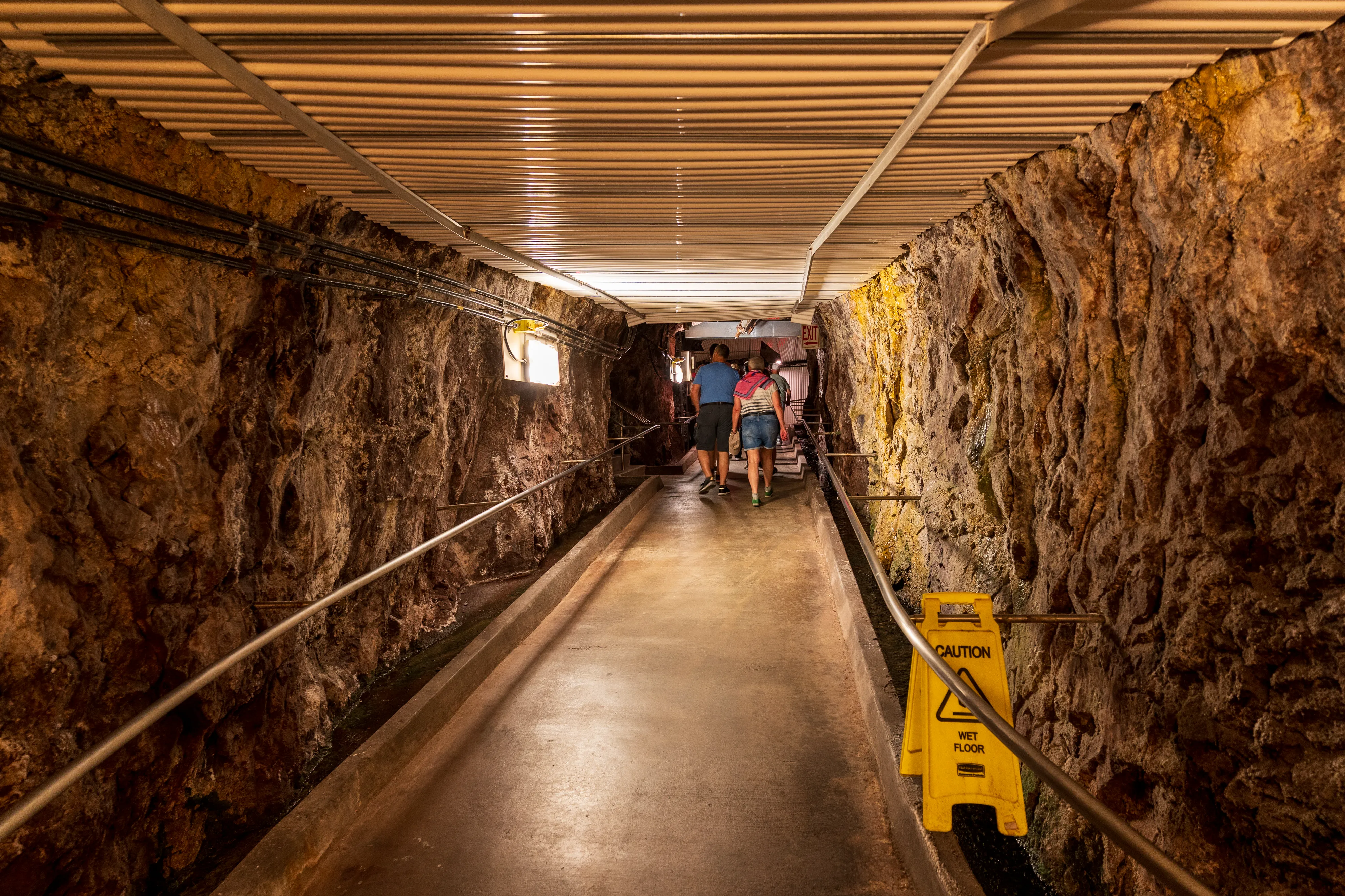 Am ersten Vormittag fahren wir jedoch erstmal zum circa 60 km entfernten Hoover Dam. Wie auch schon beim Grand Canyon, dem Glen Canyon und Lake Powell spielt der Colorado River hier eine entscheidende Rolle - denn sein Wasser wird an der Grenze von Nevada und Arizona zum 170 km (!) langen Lake Mead aufgestaut. Dabei erfüllt er drei Zwecke: Er ermöglicht eine geregelte Wasserabgabe an die stromabwärts gelegenen Gegenden und legt frühere Überschwemmungsgebiete für die Landwirtschaft trocken, dient der Stromerzeugung für die gesamte Region und schafft mit dem Lake Mead ein Wasserreservoir und Erholungsgebiet für Las Vegas. Die in den 1930er Jahren erbaute Talsperre war damals mit 221 m Höhe die höchste Staumauer der Welt. Unser Ticket erlaubt es uns das Museum zur Geschichte und Funktionsweise der Talsperre sowie einen Teil von innen anzuschauen. So fahren wir mit einem Aufzug tief hinab in die gigantische Staumauer und stehen vor riesigen Röhren, die enorme Mengen an Wasser führen können.