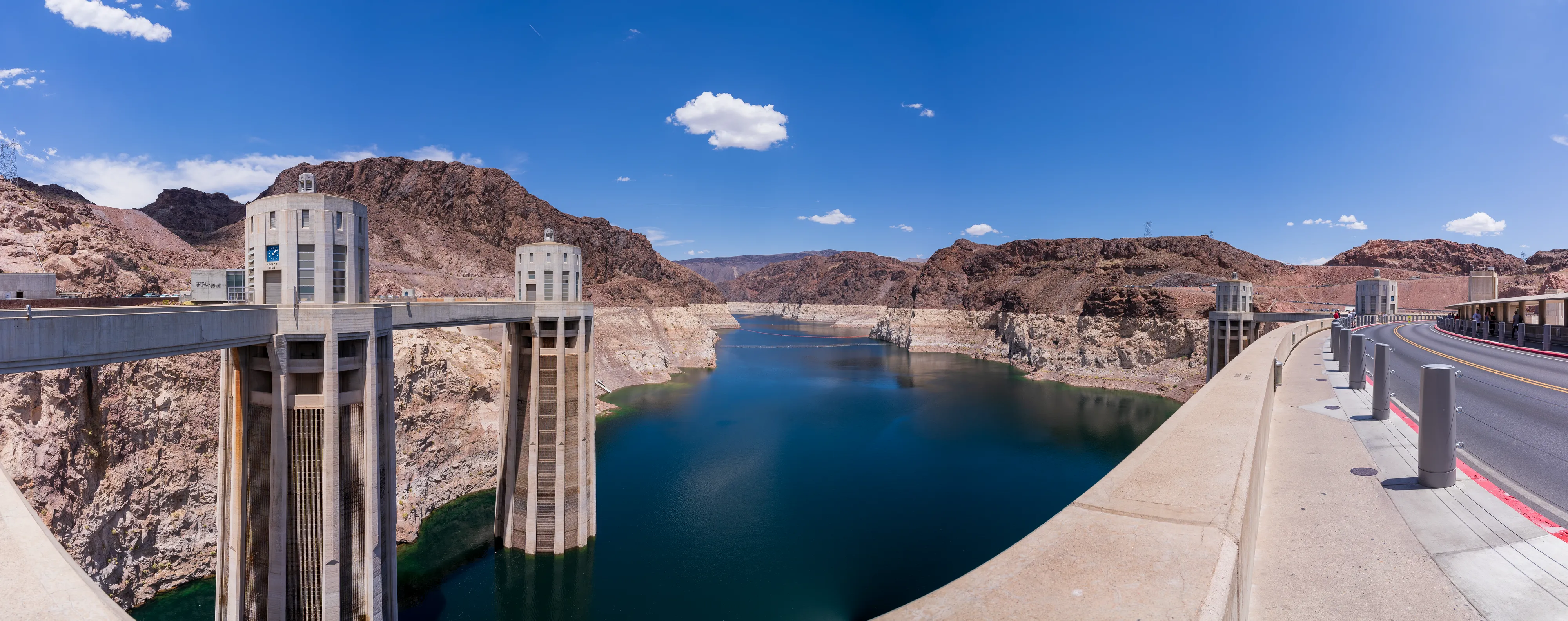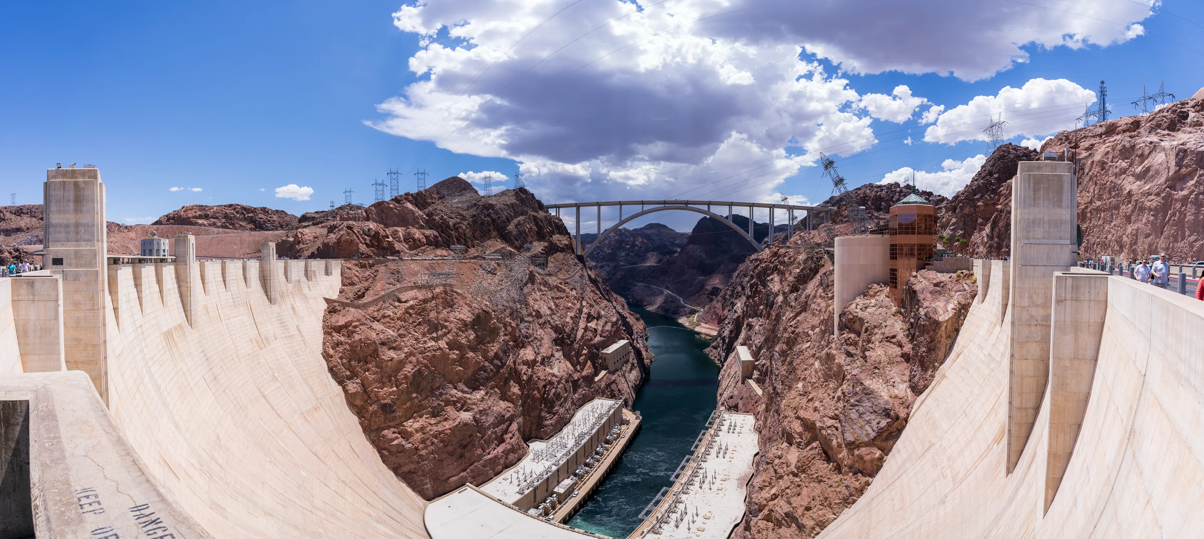 - der Damm wiegt mit 6,6 Millionen Tonnen circa 18-mal so viel wie das Empire State Building und die Arbeitersiedlung Boulder City war mit zeitweise über 7000 Einwohnern die größte Stadt Nevadas - unvorstellbar, wenn man an das riesige, sich heute fast bis an den Damm ausdehnende Las Vegas denkt