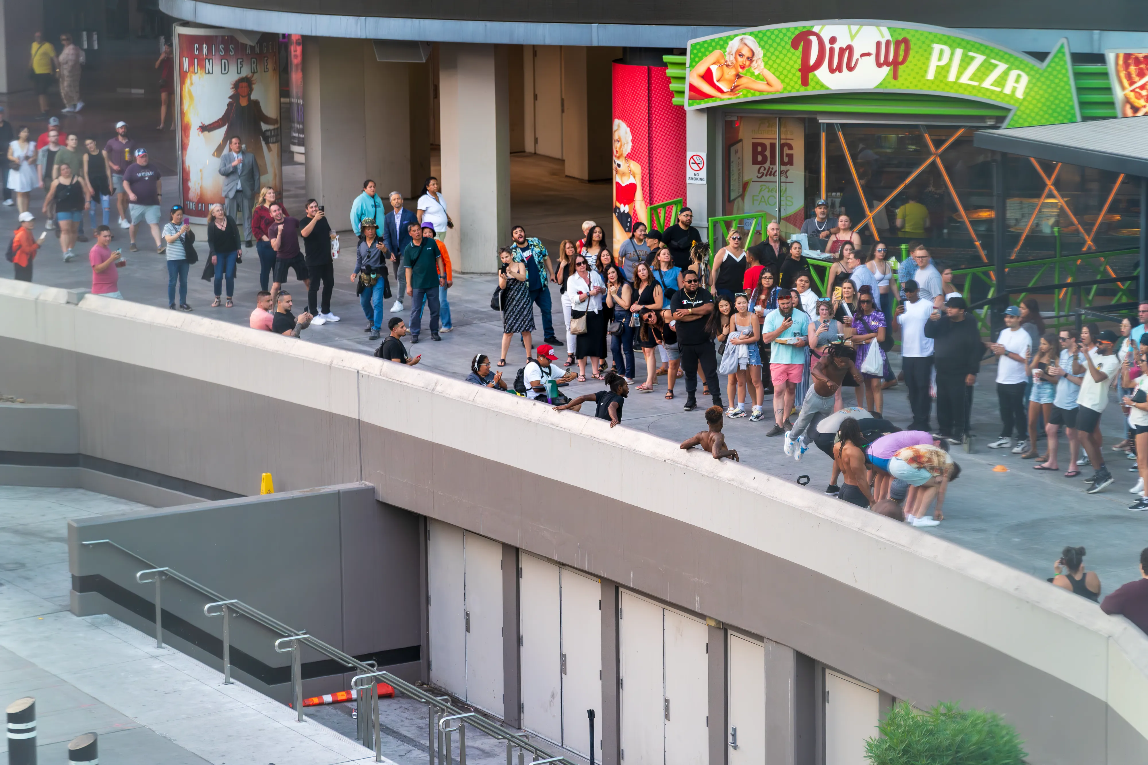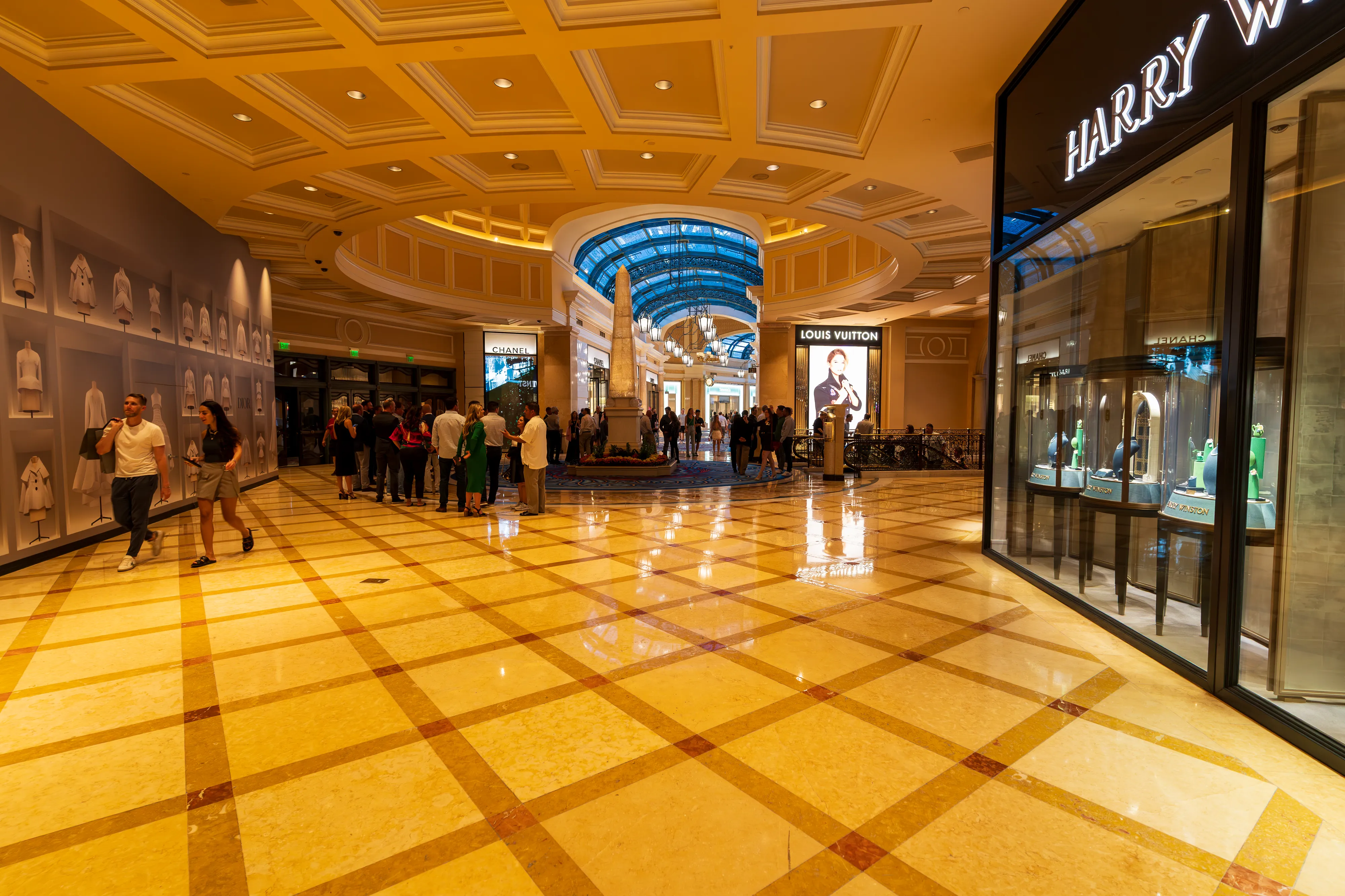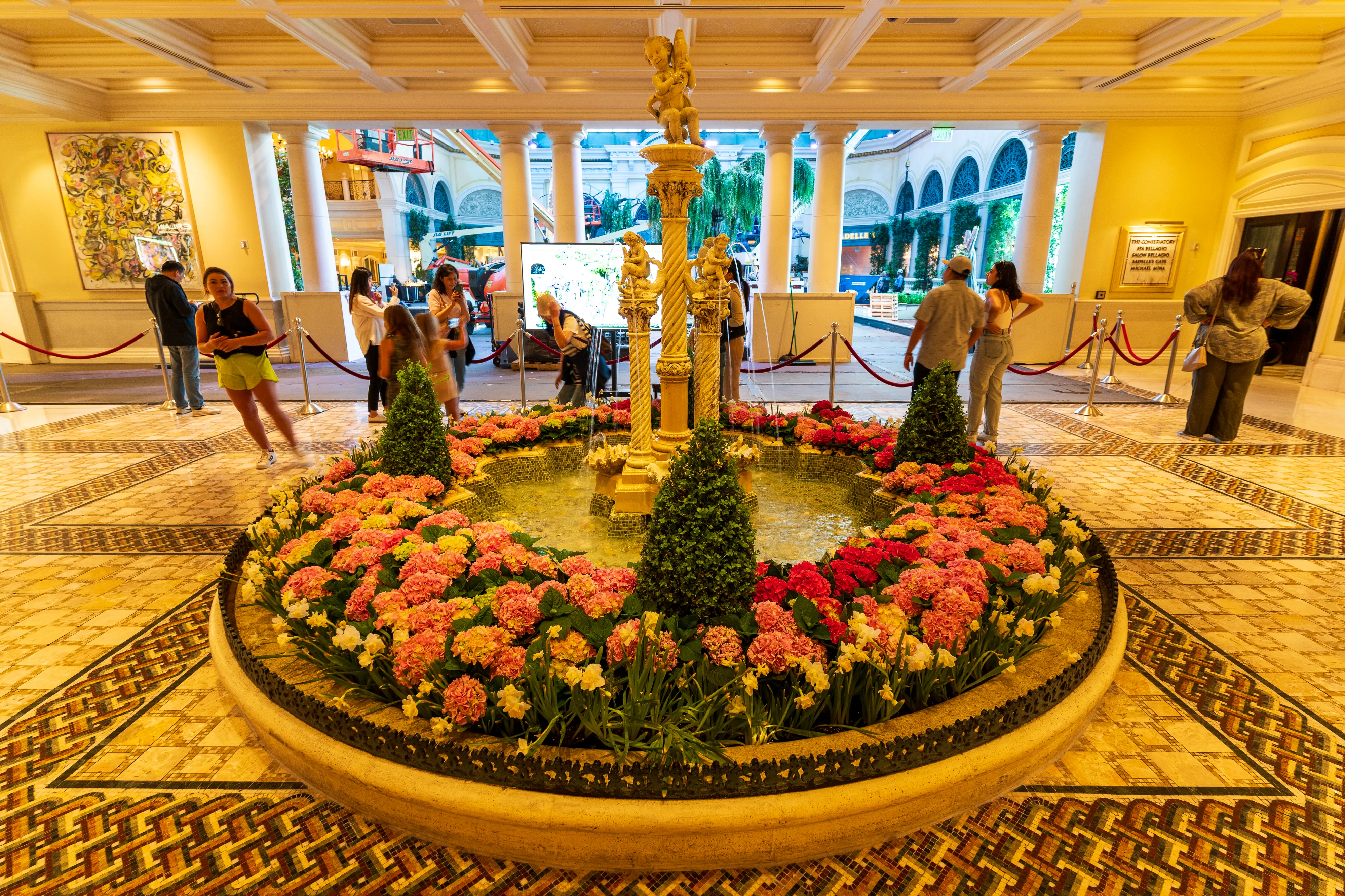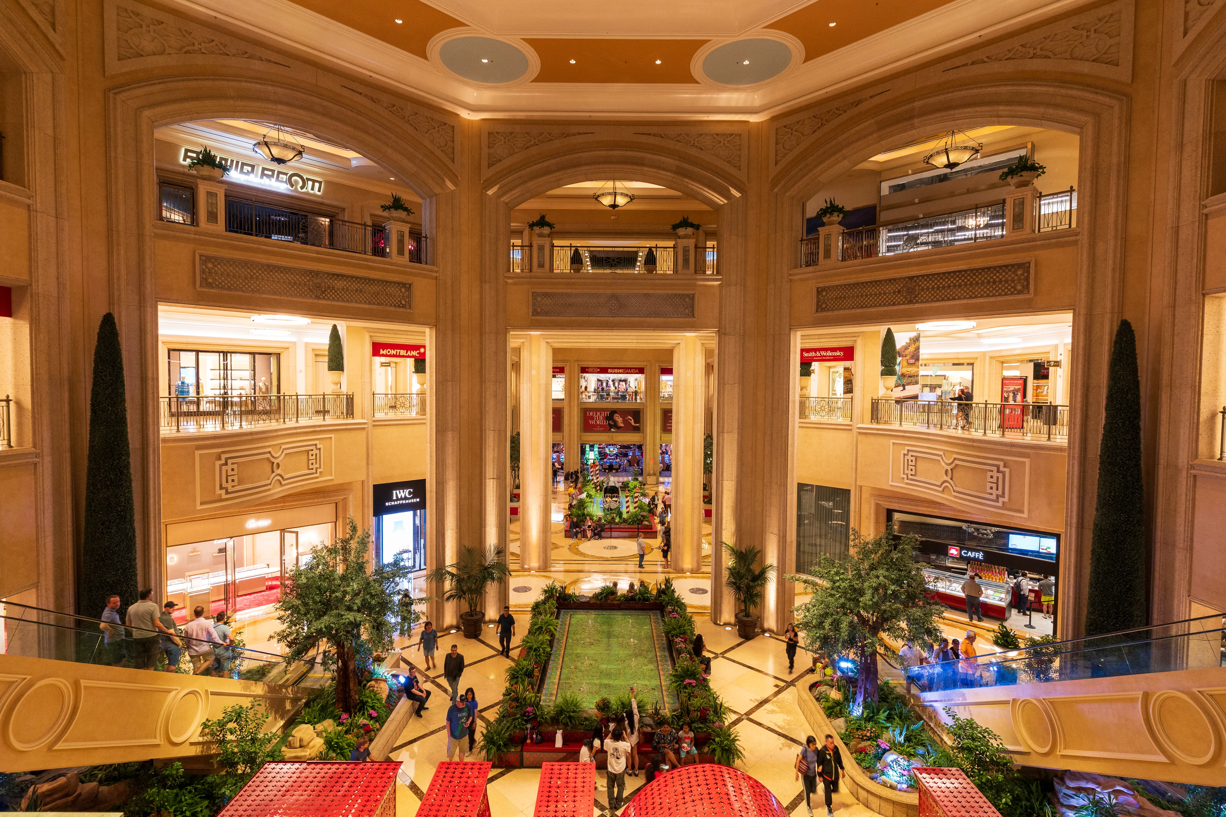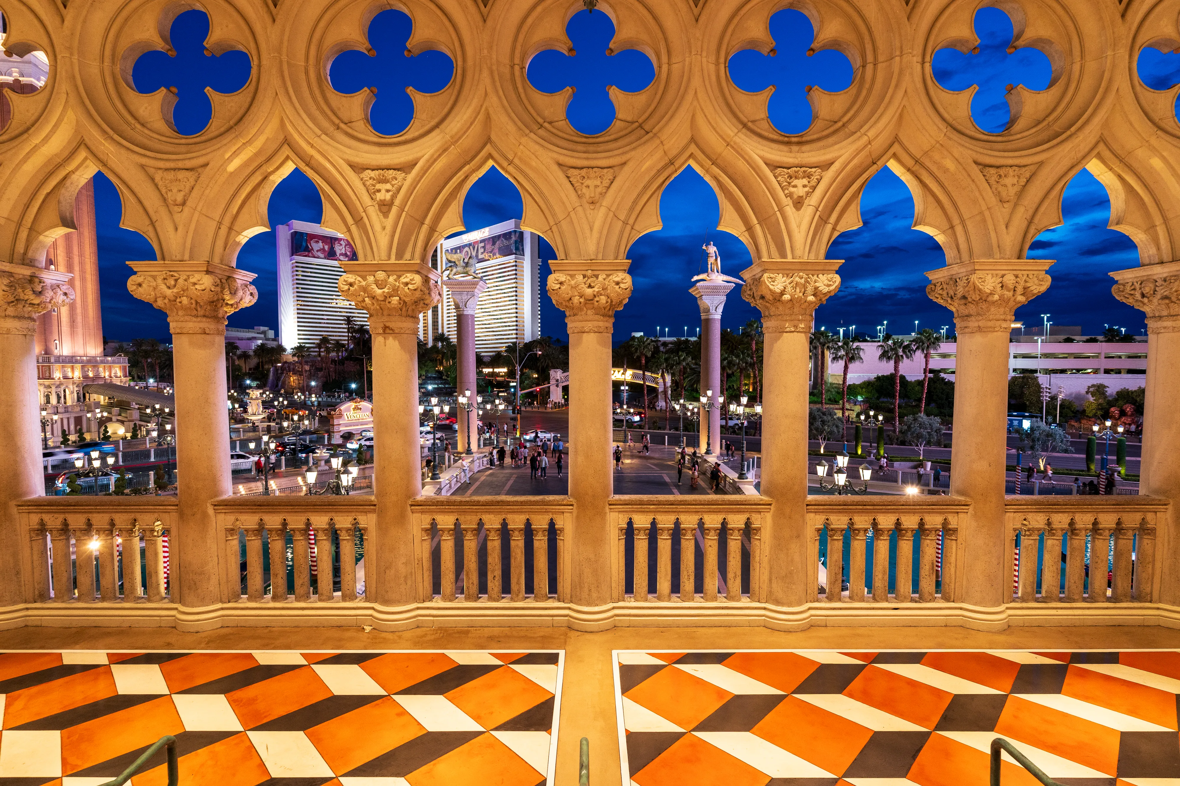 Auf dem Rückweg legen wir noch einen Stopp bei einem großen Outdoorgeschäft ein, um ein wenig Ausrüstung zu shoppen. Nachmittags sind wir dann zurück am Hotel und machen uns bei warmen 30 Grad auf den Weg zum Strip. Wir schauen uns die großen Kasinos wie z.B. das Excalibur, das Bellagio und das The Venetian von innen an, spielen ein paar Runde Roulette (und hören mit einem kleinen aber sehr befriedigenden Gewinn auf) und bestaunen die nachgebauten Städte und Sehenswürdigkeiten: Venedig, New York, Paris. Besonders das The Venetian beeindruckt mit einem nachgebauten Kanal im Gebäudeinnern: inklusive pseudo-italienischer Gondolieri, Rialtobrücke und Markusturm – alles unter einem dauerblauen Himmel. Auch die turmreiche Burg des Excalibur, die Wasserspiele und der weltgrößte Schokoladenbrunnen beim Bellagio sowie die Feuershow beim The Mirage zeigen den exzentrischen Charakter dieser Stadt.