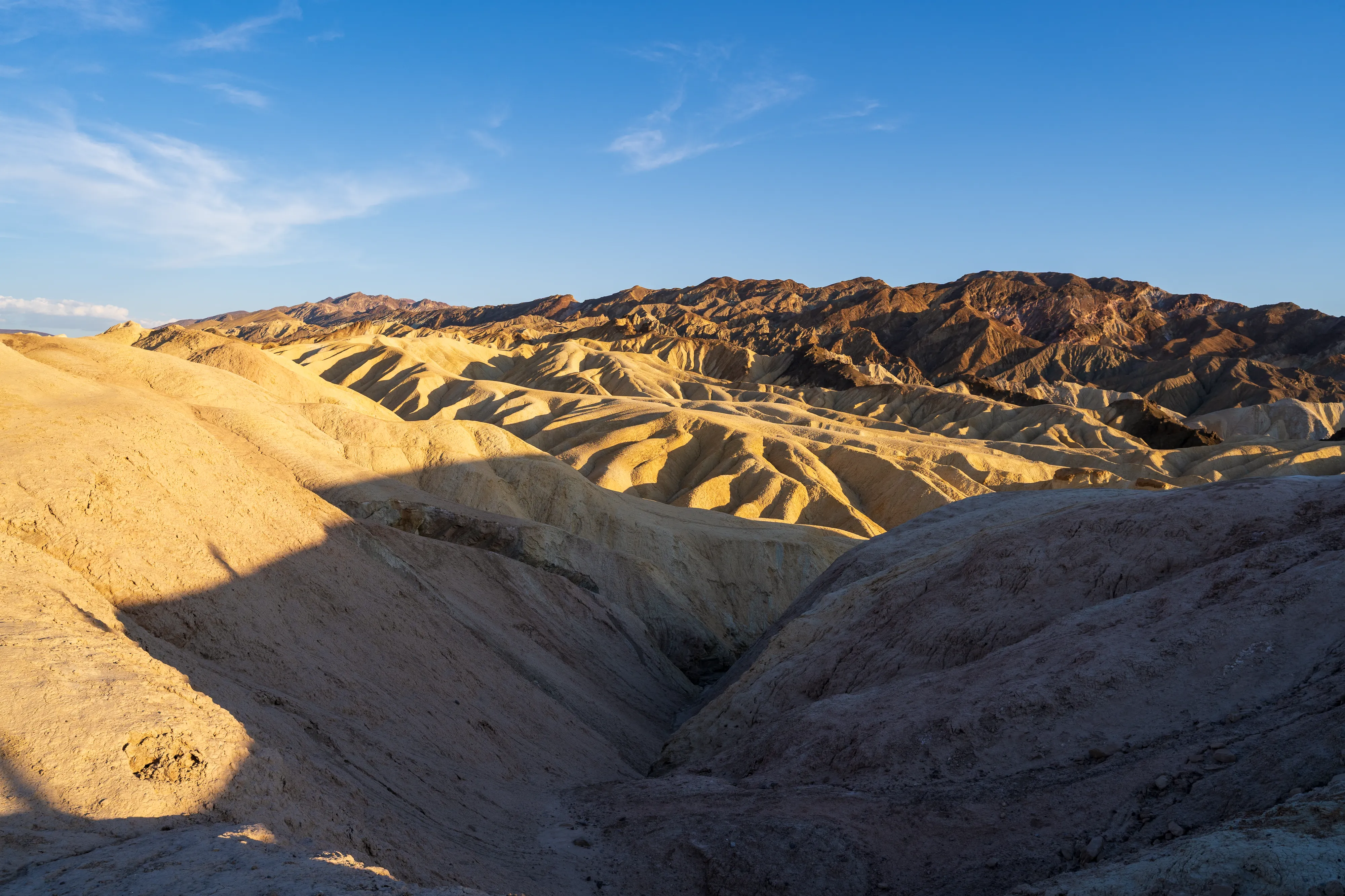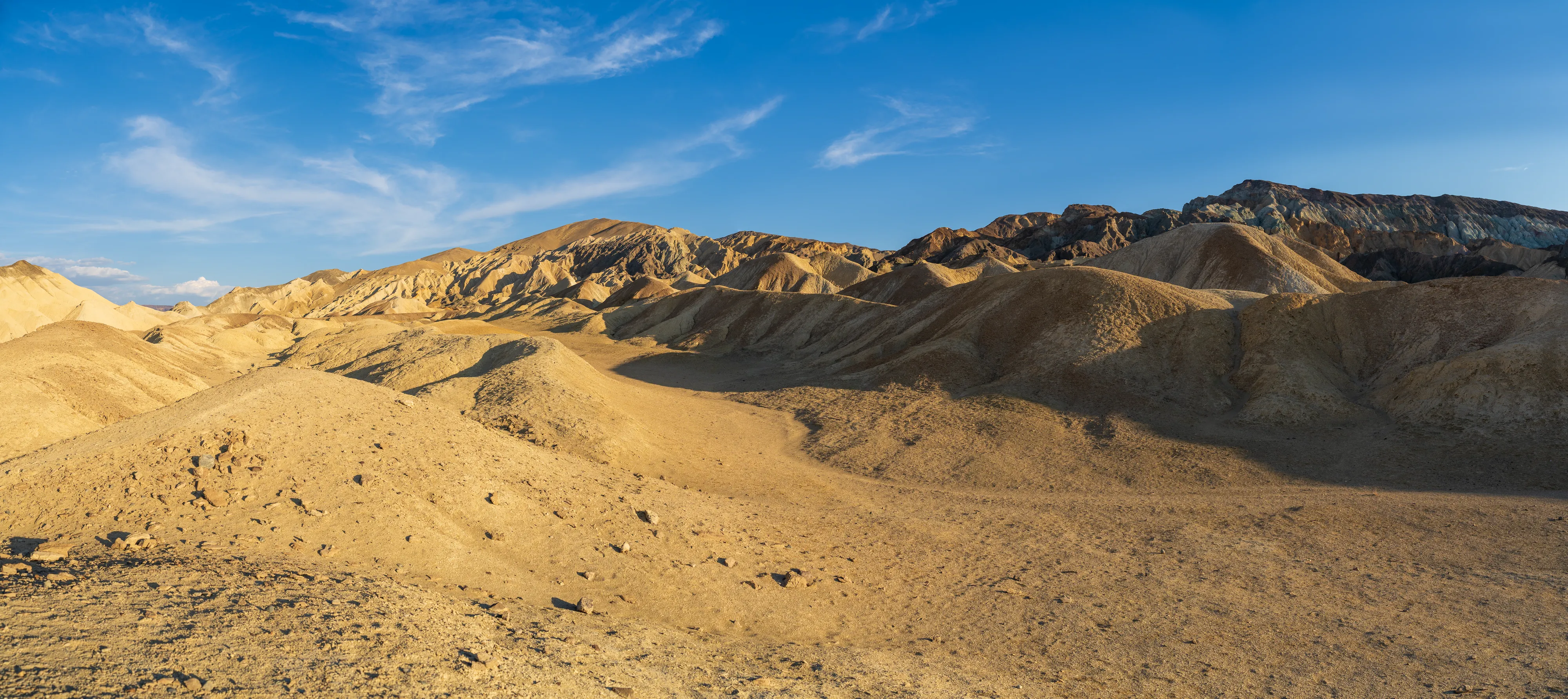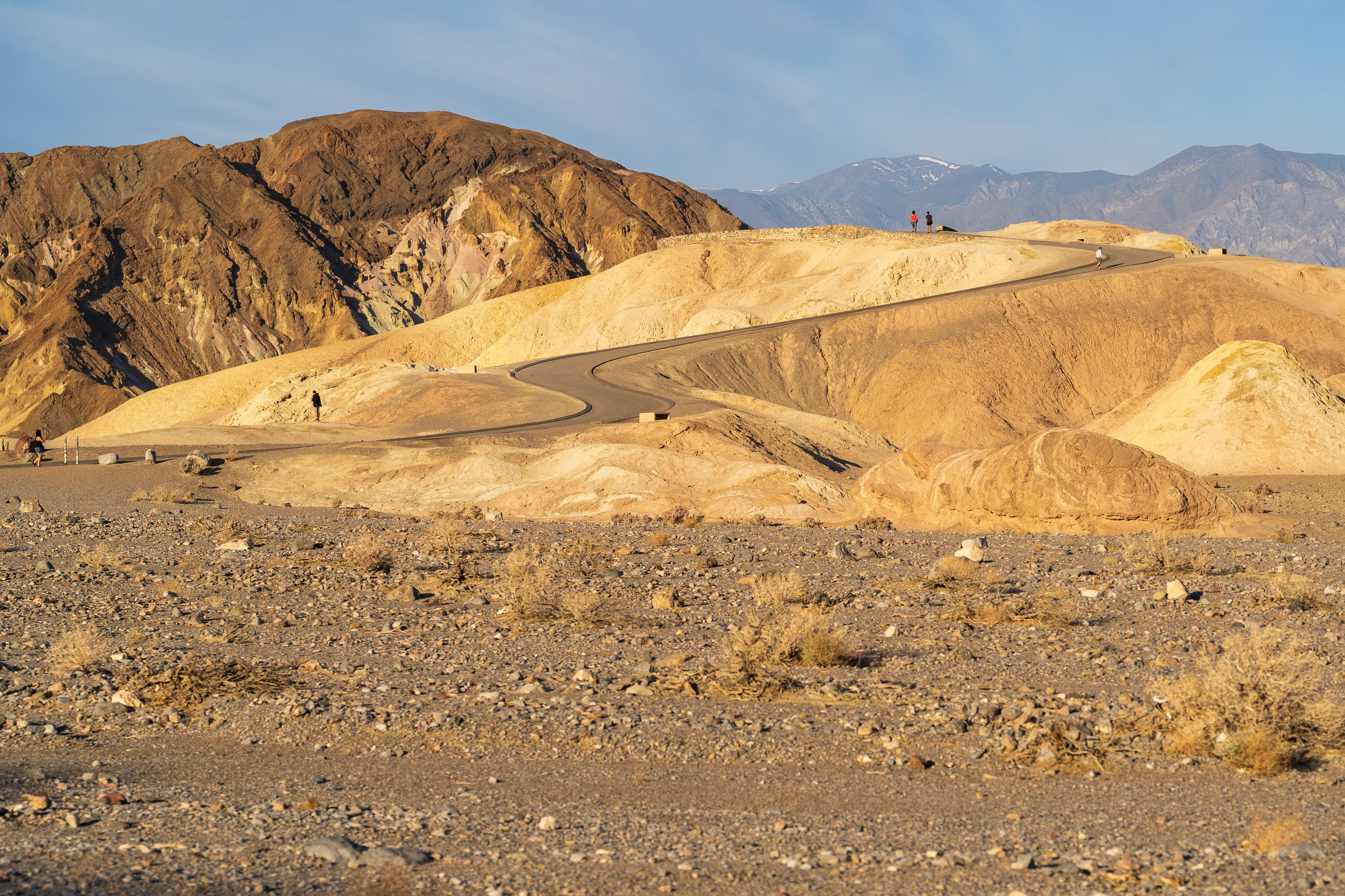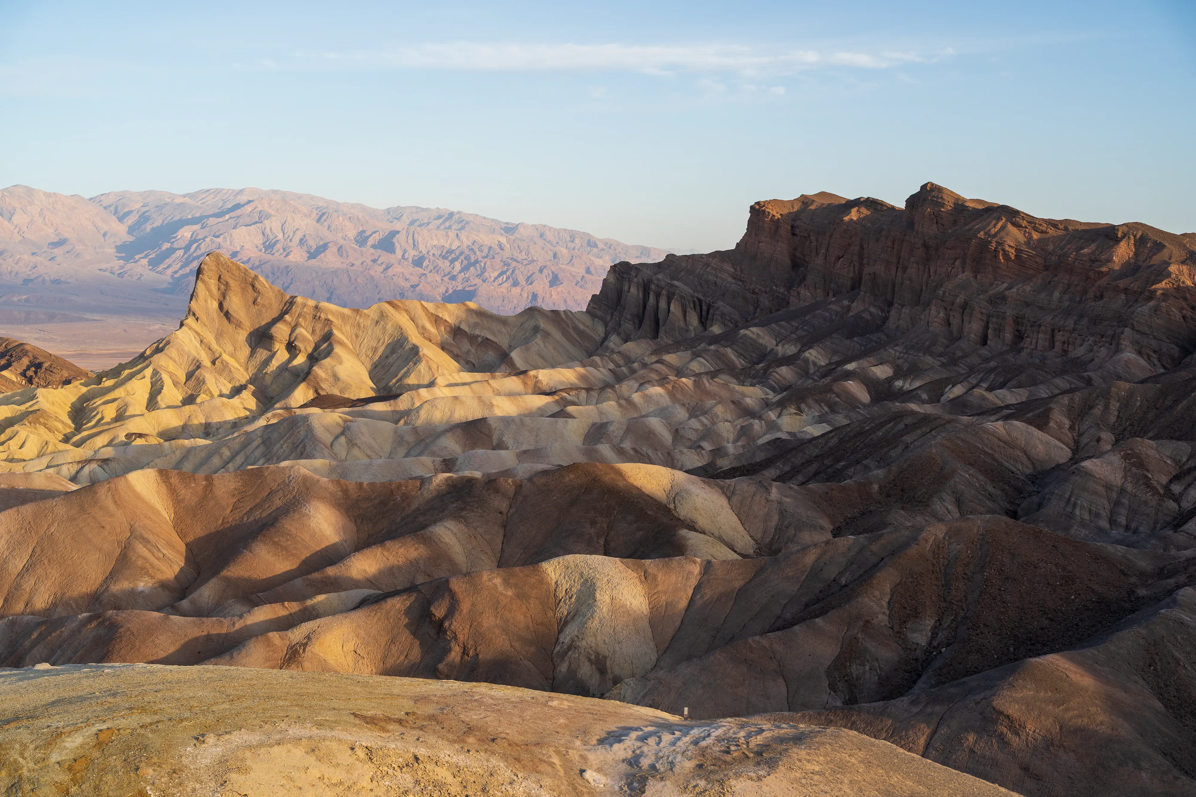 Unser nächster Stopp ist der Zabriskie Point. Hier hat man nochmals einen, wenn auch ganz anderen, Blick auf Badwater Basin sowie über den Golden Canyon – wir sind passend zum Sonnenuntergang da.
