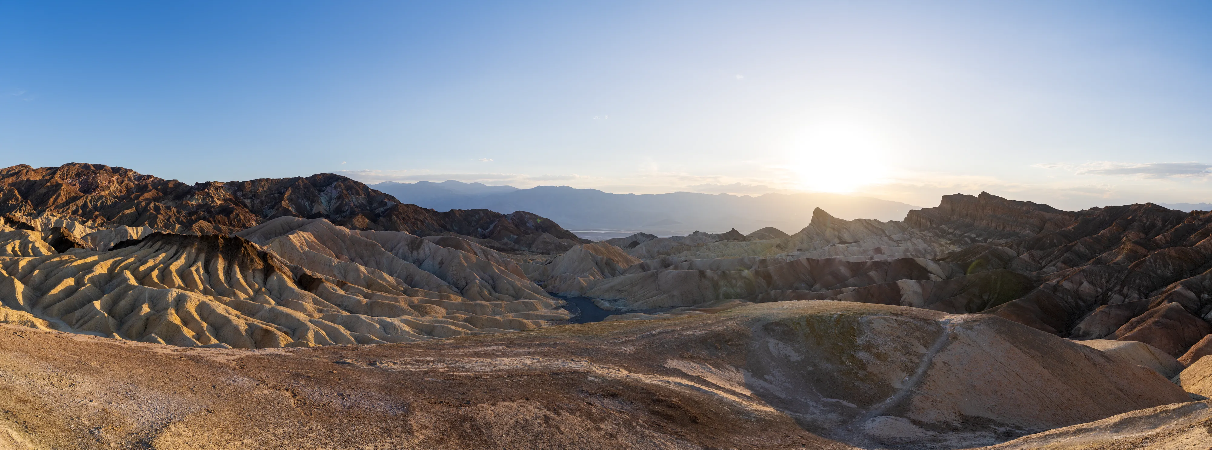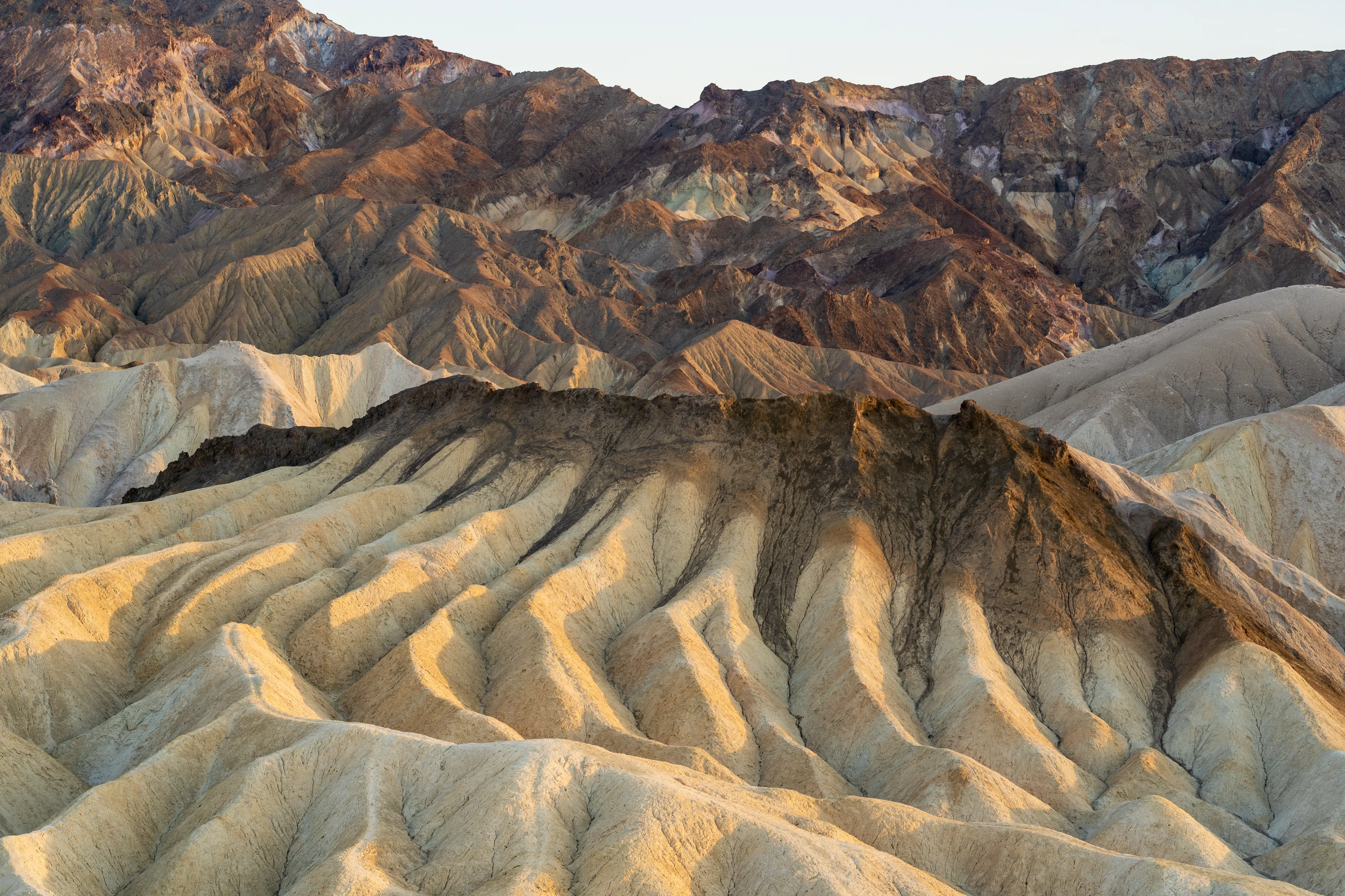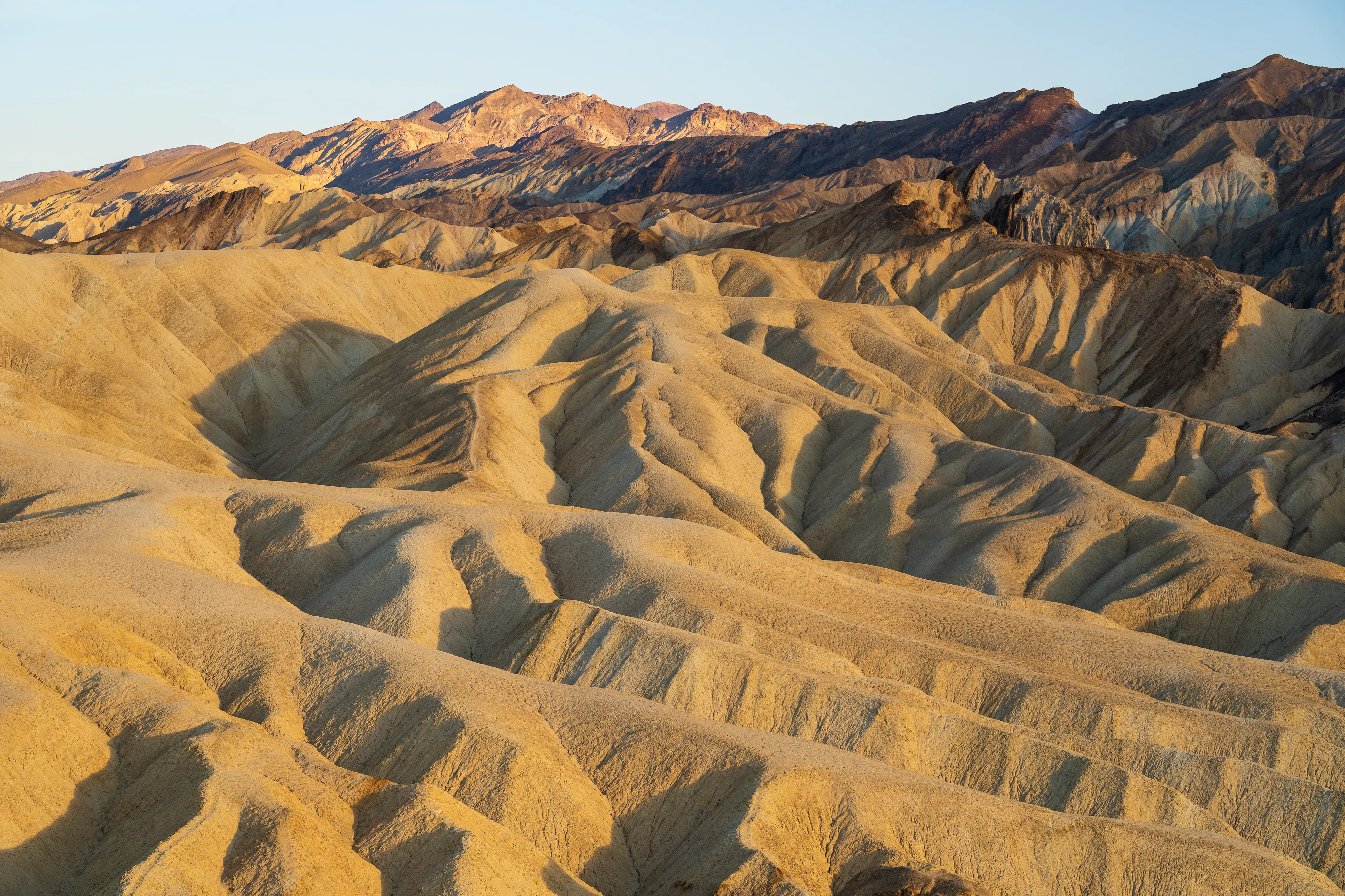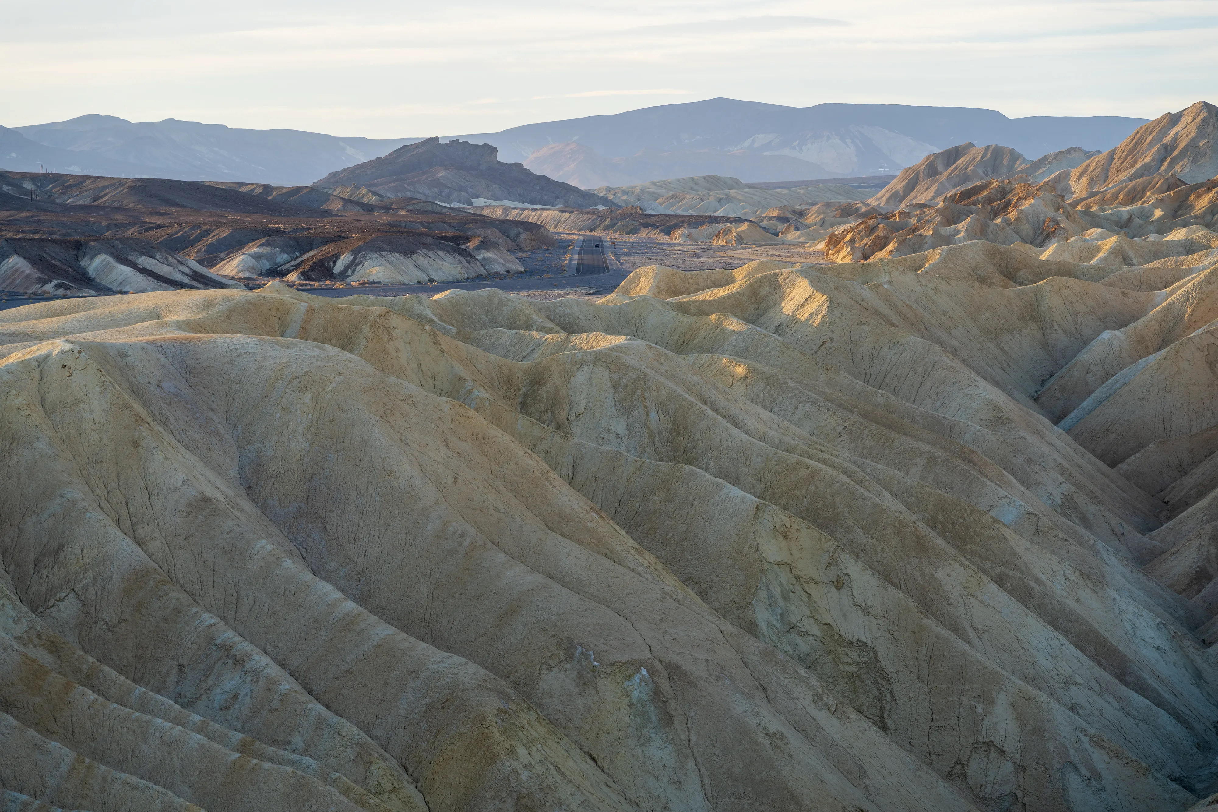 Unser nächster Stopp ist der Zabriskie Point. Hier hat man nochmals einen, wenn auch ganz anderen, Blick auf Badwater Basin sowie über den Golden Canyon – wir sind passend zum Sonnenuntergang da.