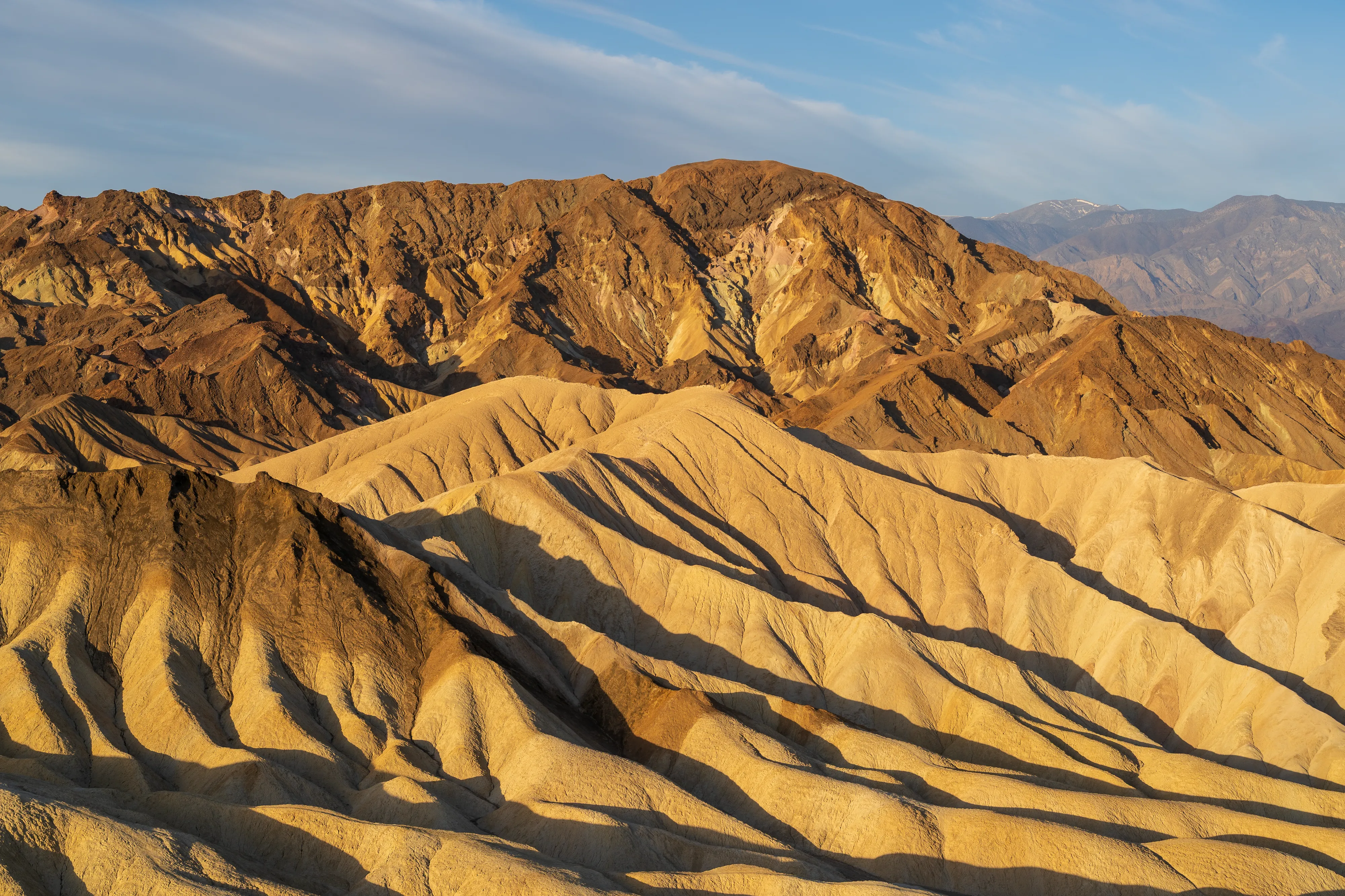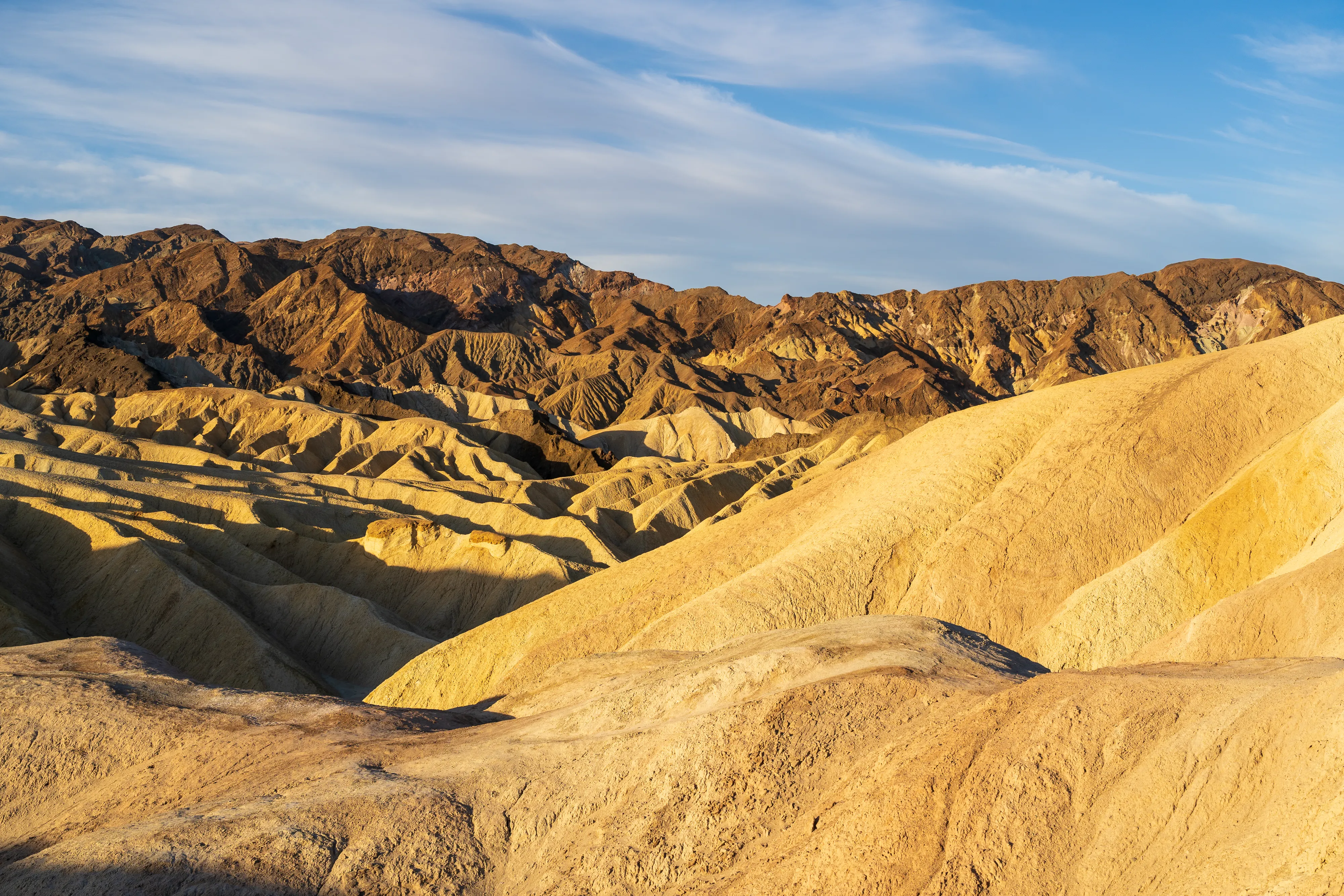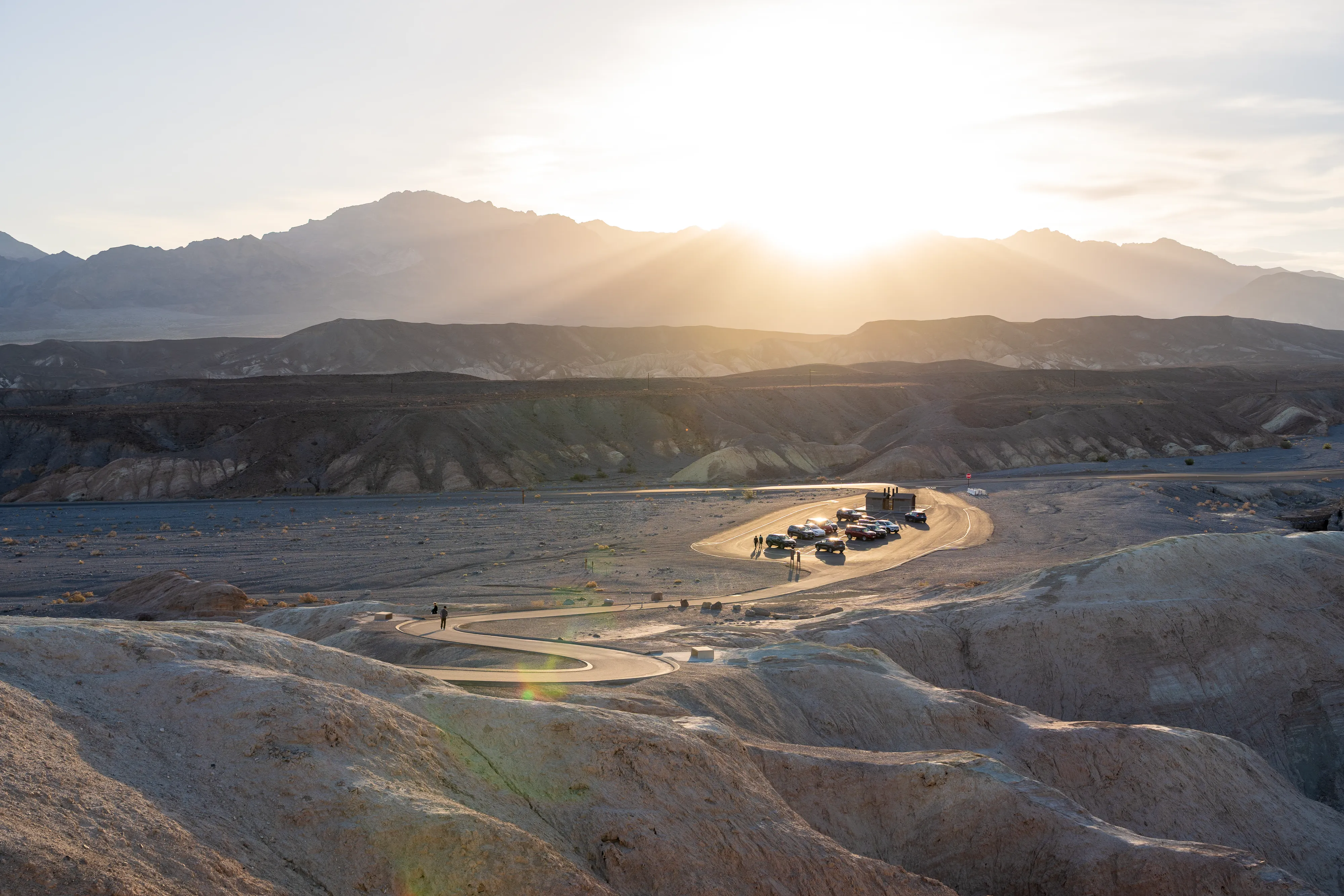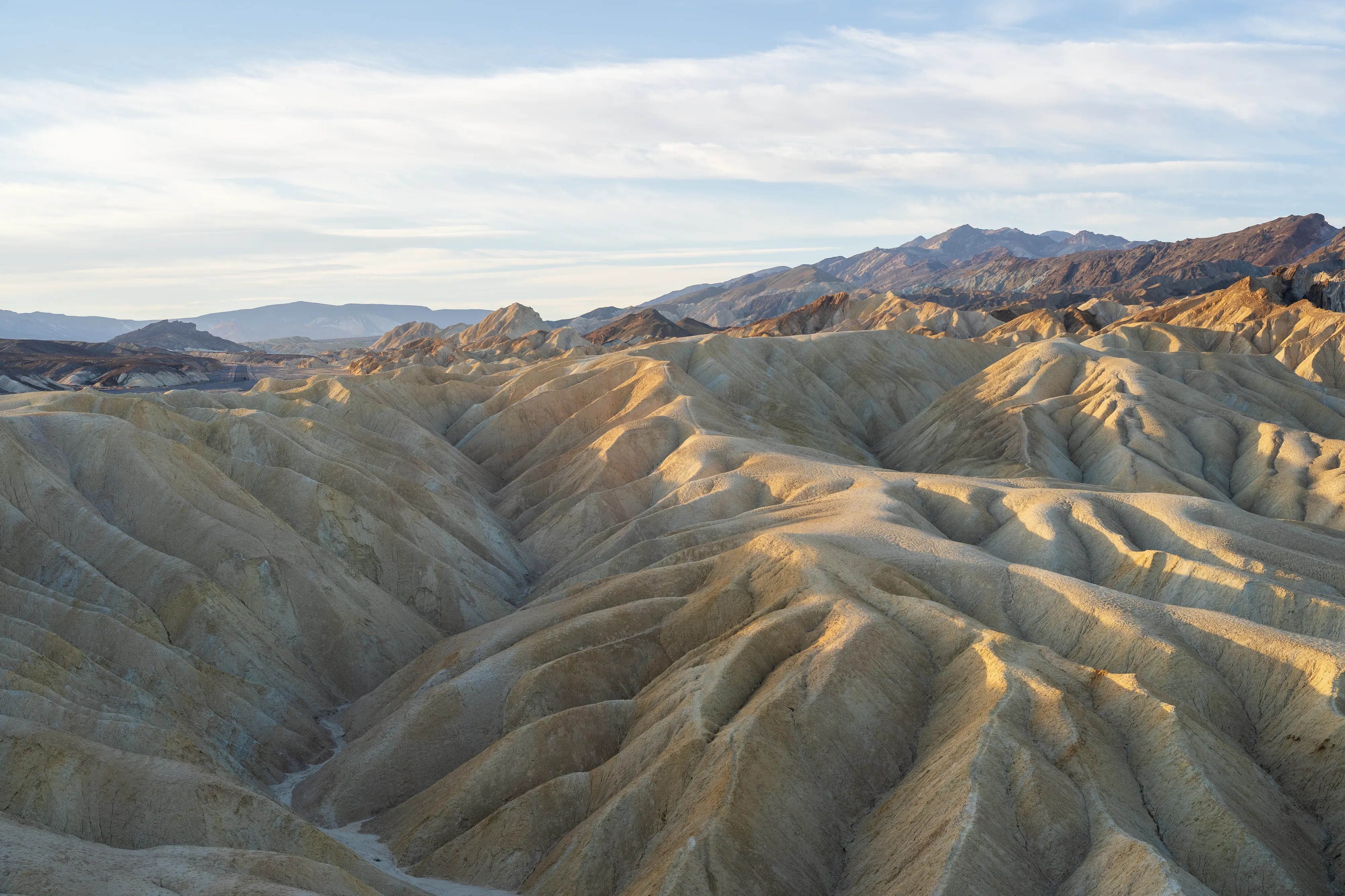 Unser nächster Stopp ist der Zabriskie Point. Hier hat man nochmals einen, wenn auch ganz anderen, Blick auf Badwater Basin sowie über den Golden Canyon – wir sind passend zum Sonnenuntergang da.