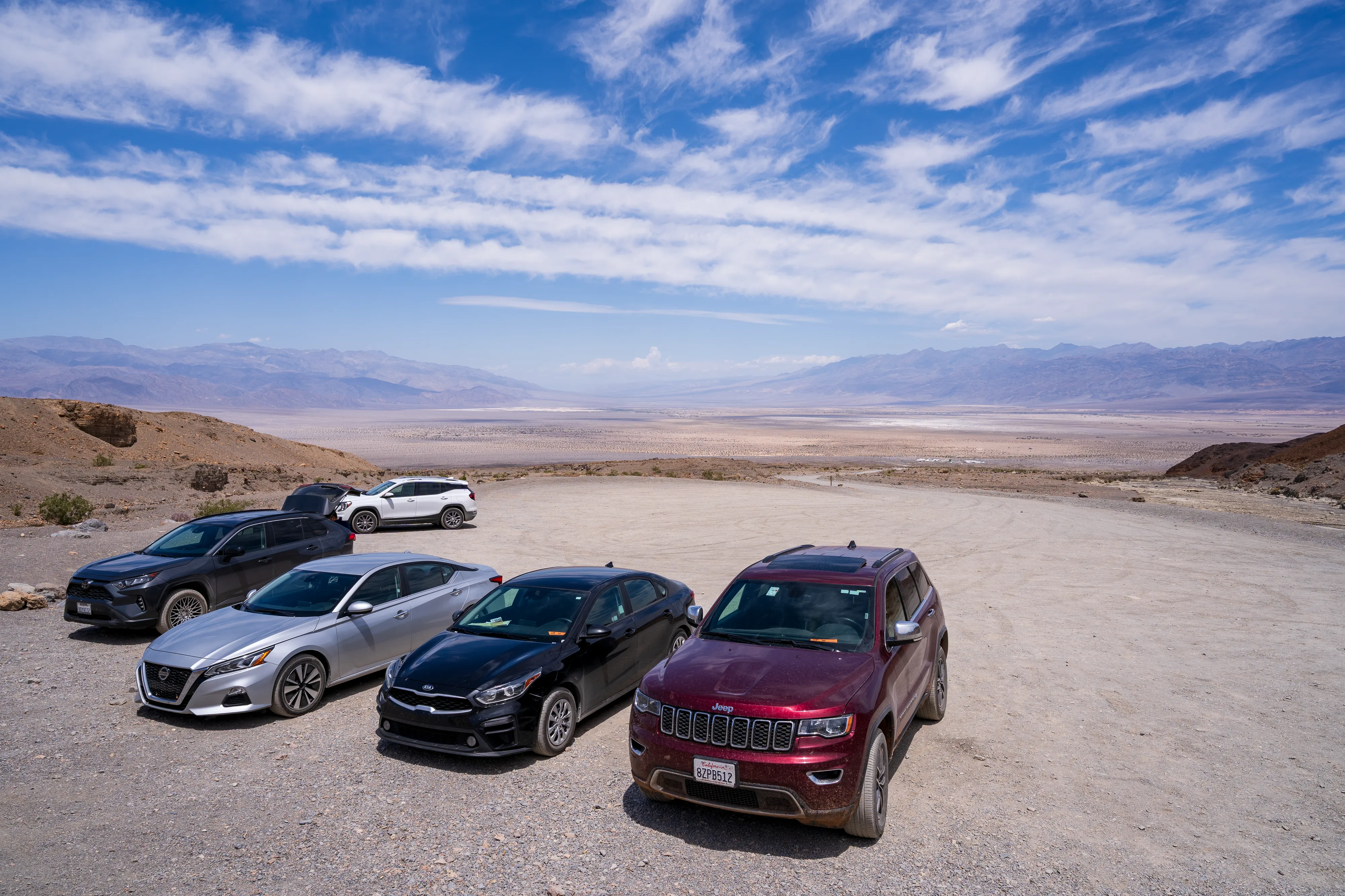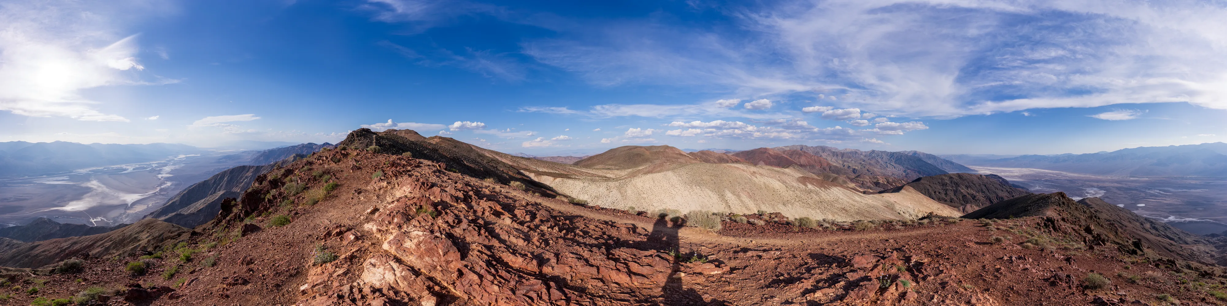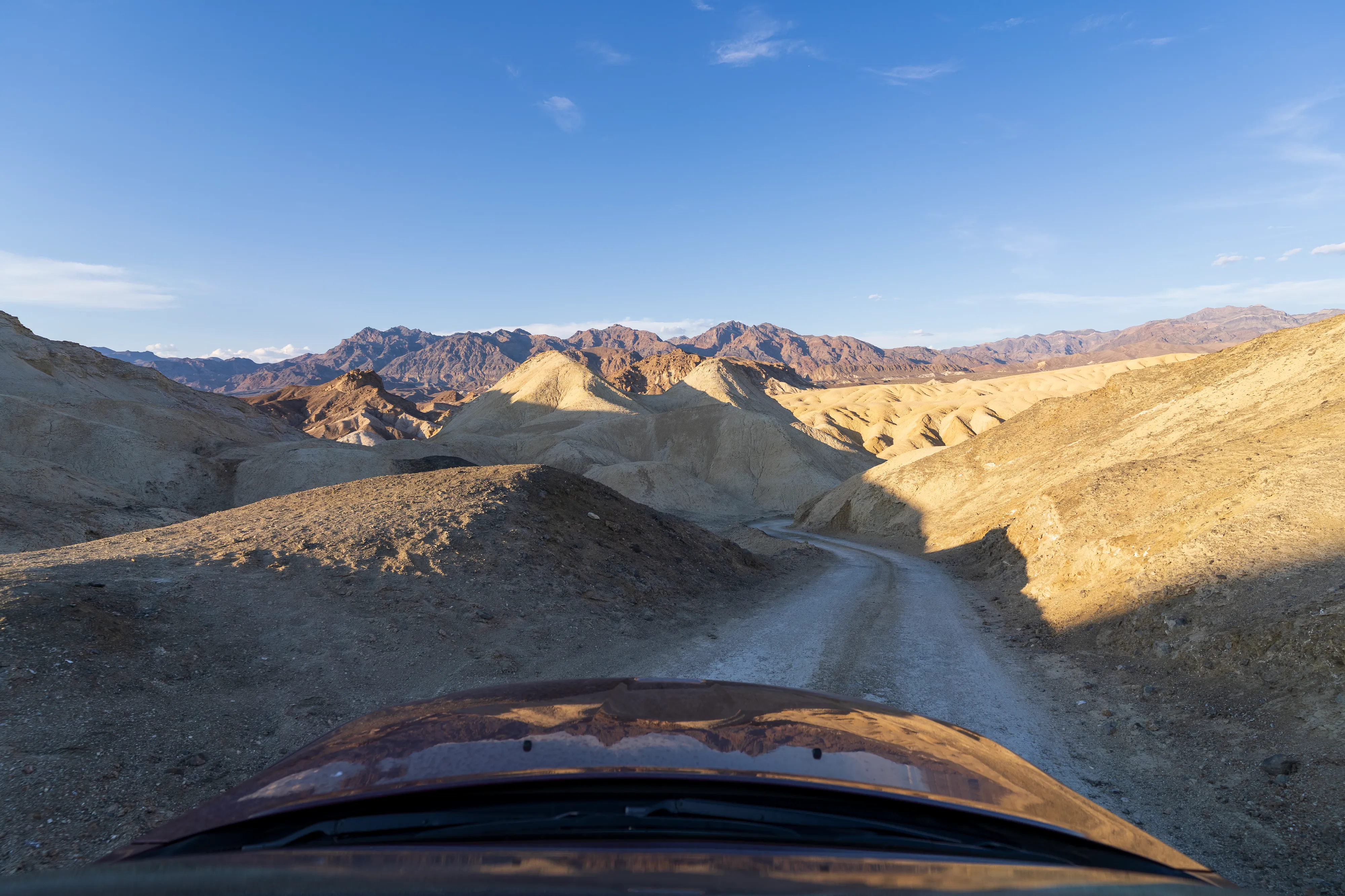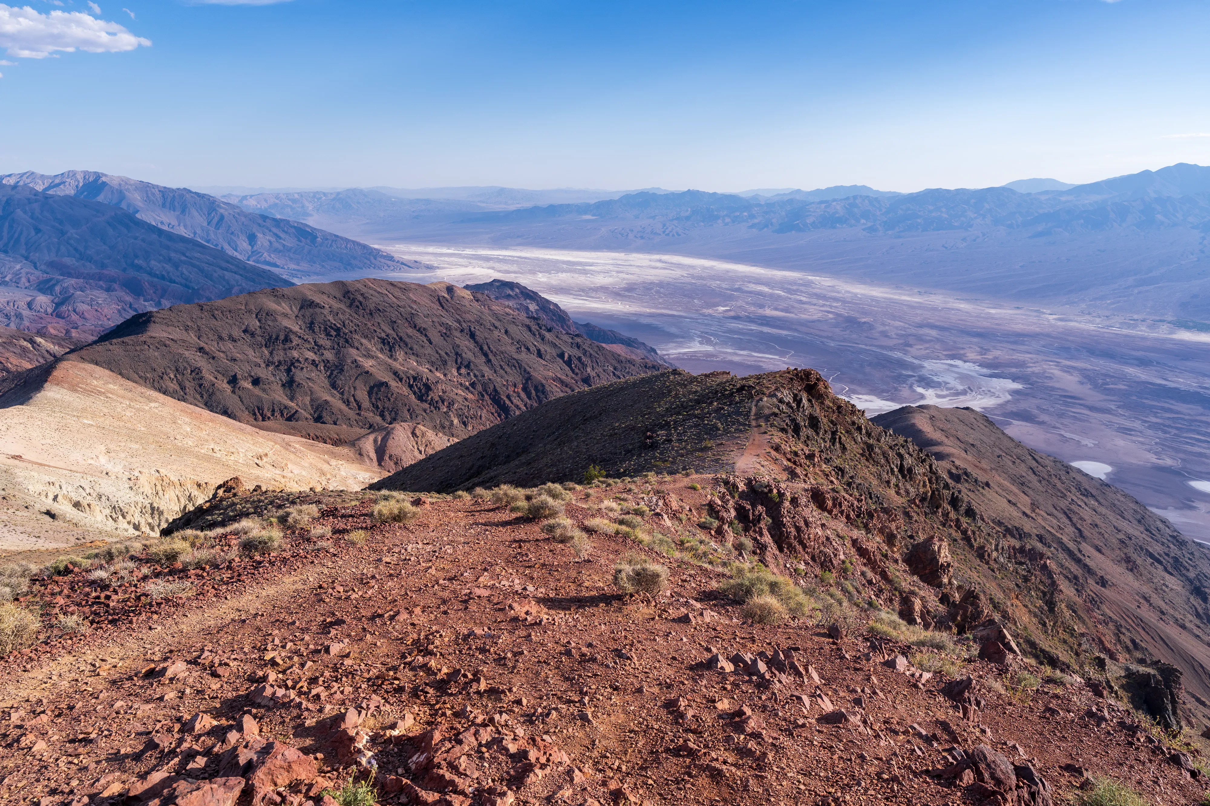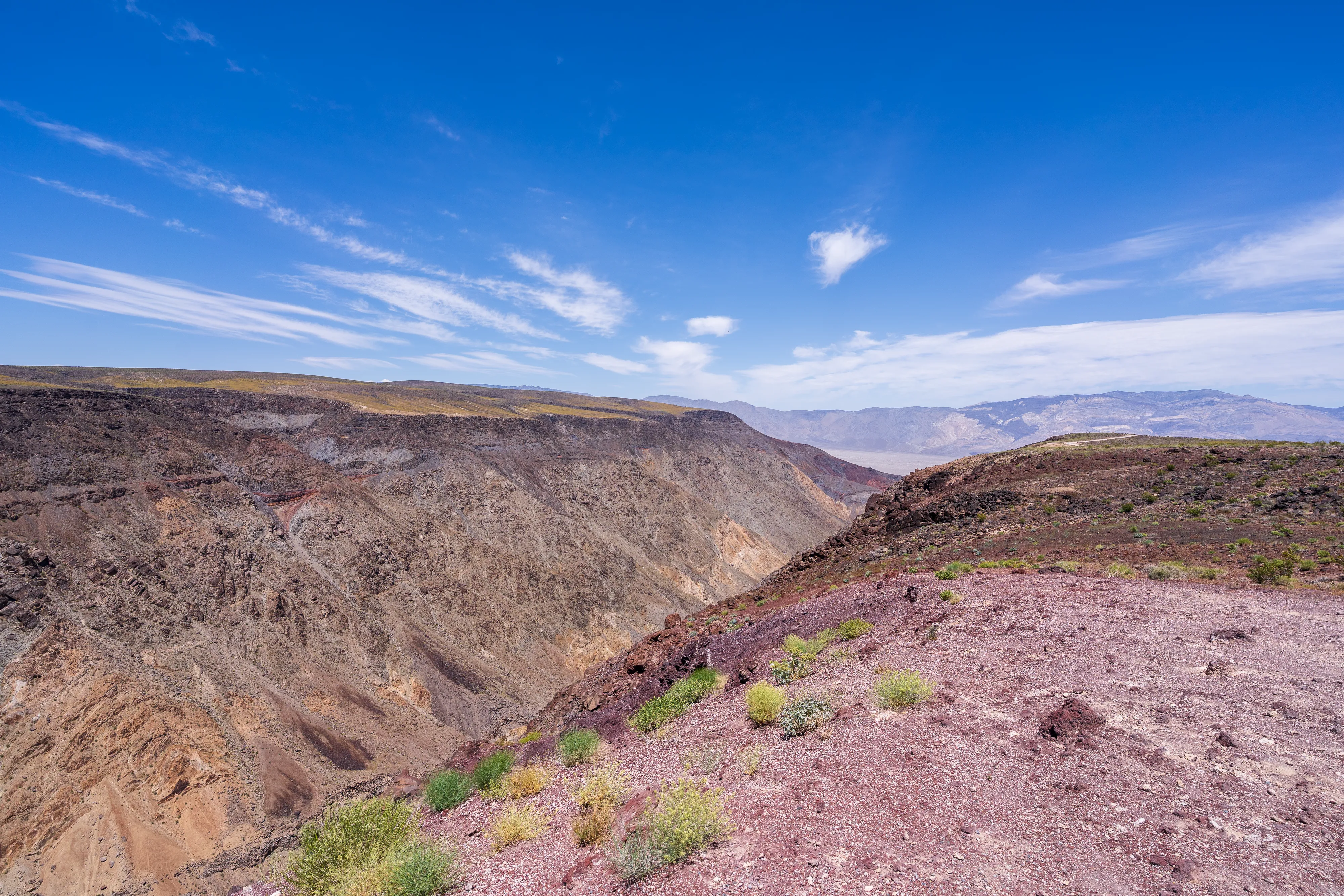 Aber eben dieses Klima macht den Death Valley Nationalpark auch so besonders: hier finden sich sowohl Fels-, Sand- und Salzwüste sowie einige andere Überraschungen der Natur. Unsere Route führt uns von Süden in den NP und wir fahren als Erstes zum, auf circa 1650 m gelegenen, Dante’s View, von wo aus man einen guten Ausblick über Badwater Basin hat.