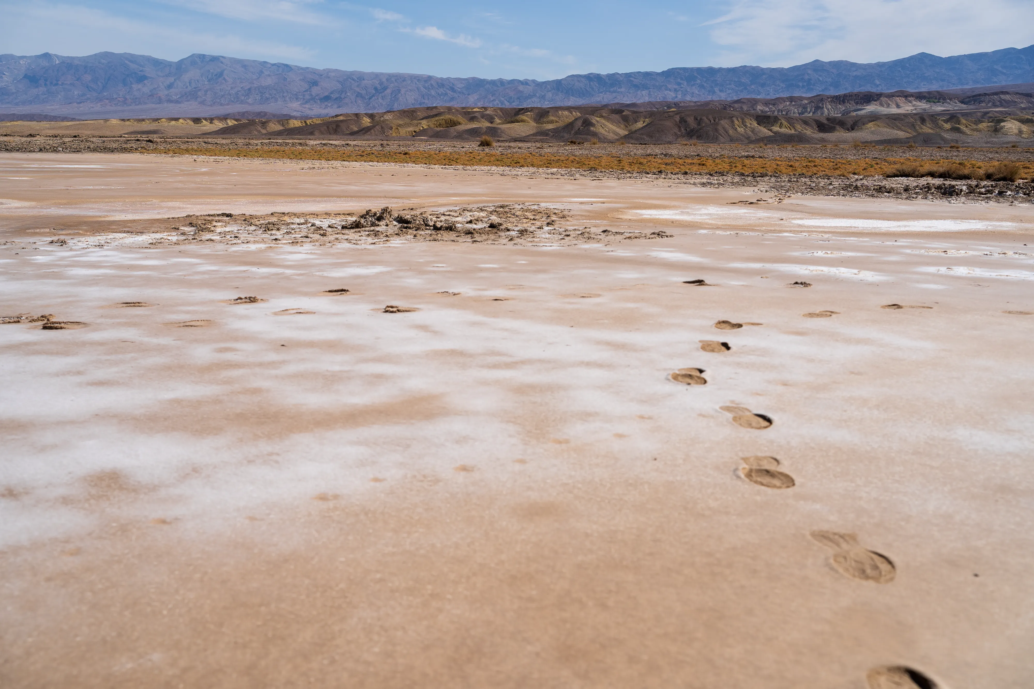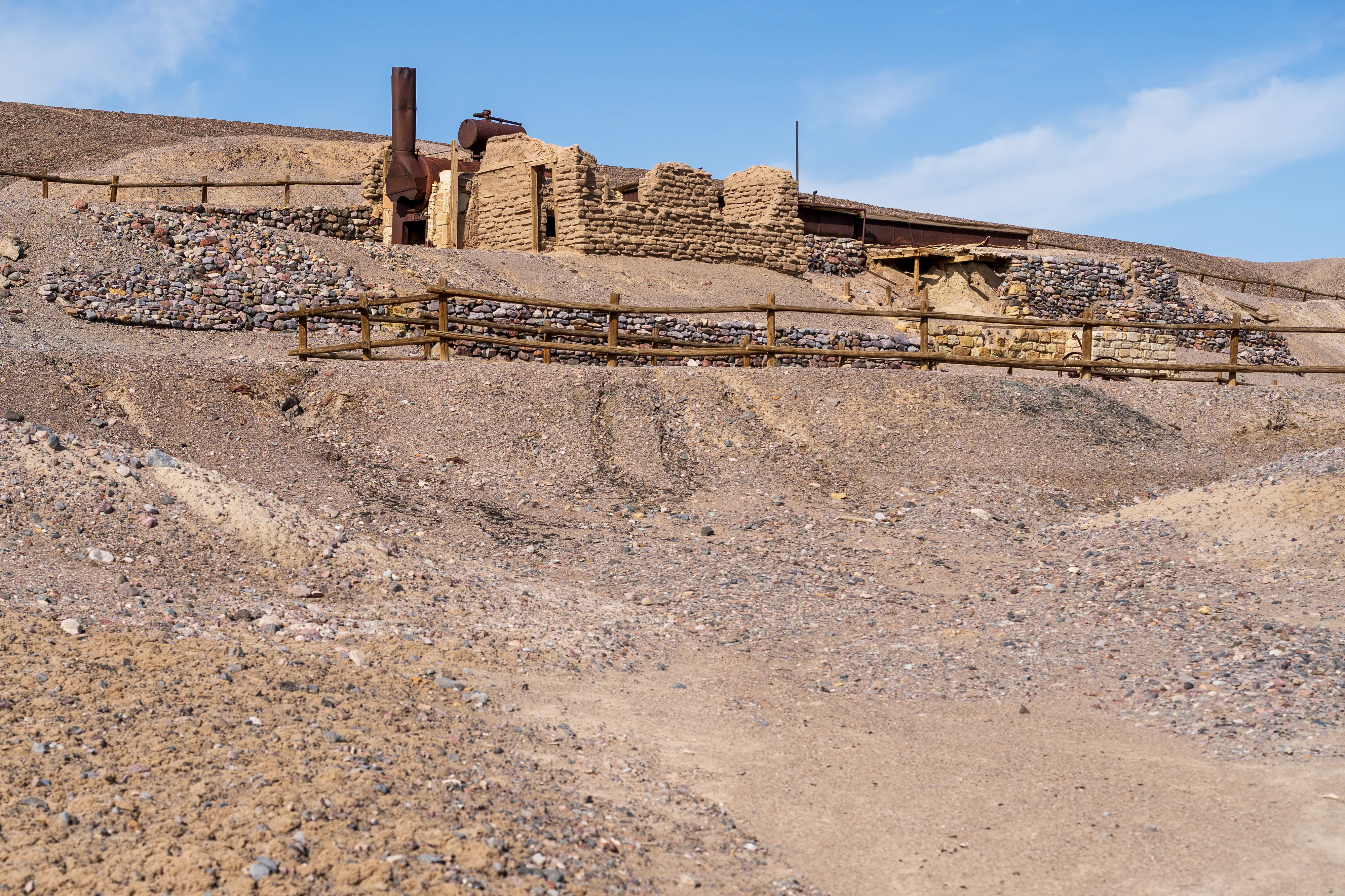 So befinden sich hier Überreste einer alten Miene, einer Aufbereitungsanlage sowie ein historisches Gespann. Richtung Cottonball Basin finden wir dann schließlich noch die sehenswerten Salzkristalle – wenn auch nicht als Polygone, sondern einfach als gleichmäßige “Kruste”.