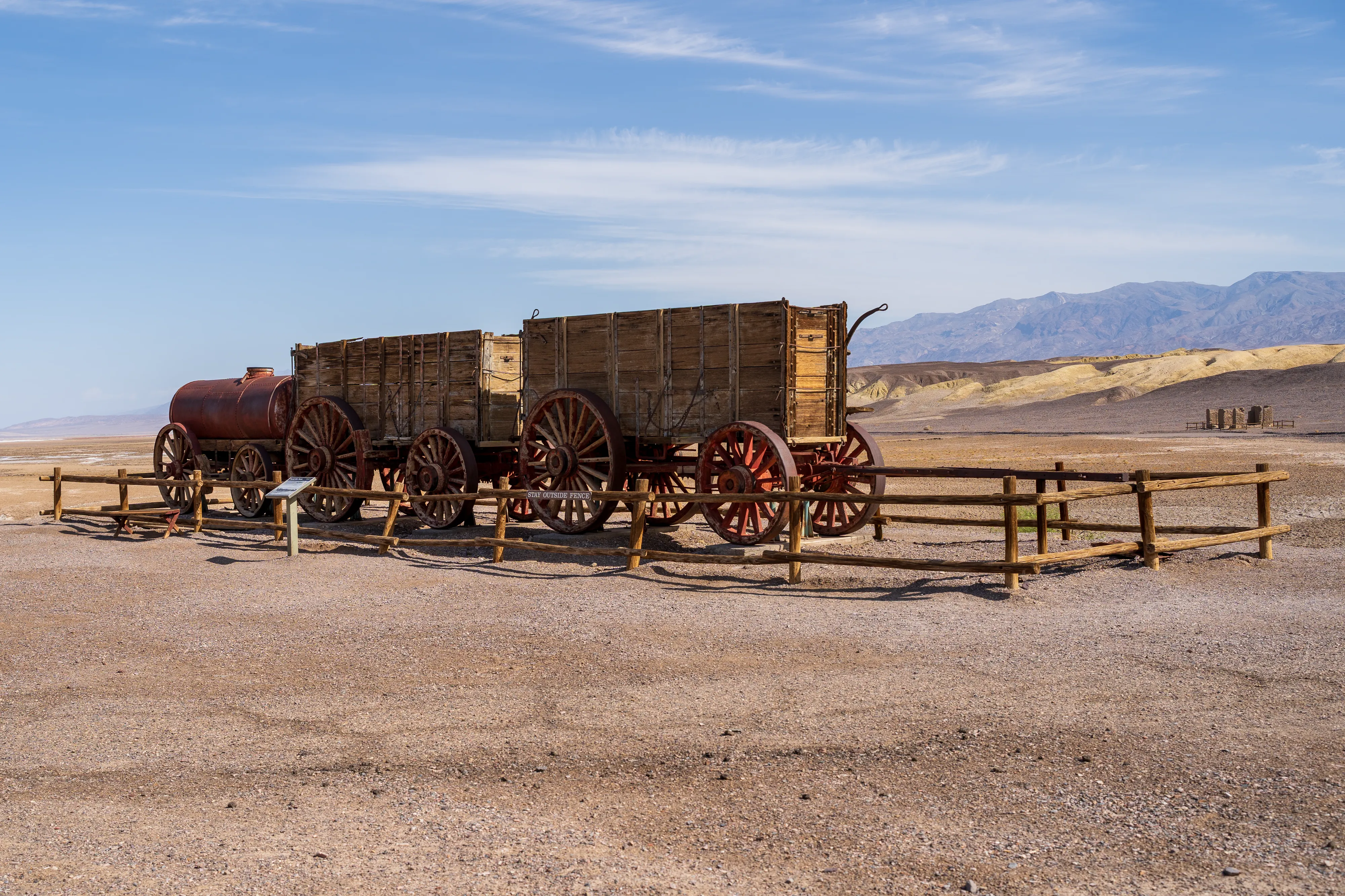 So machen wir uns auf den Weg Richtung Borax Mine. Denn lange bevor das Death Valley für Touristen interessant wurde und ab 1933 als National Monument bzw. seit 1994 als Nationalpark seine heutige Bestimmung gefunden hat, war es ein für den Bergbau interessantes Gebiet: Gold und Silber fanden sich hier, aber wohl nur in geringen Mengen. Langfristig gefördert wurde hingegen das für die Herstellung von Seife notwendige Borax. Dieses wurde von sogenannten “Twenty-Mule Teams” (bestehend aus 18 Eseln und zwei Pferden) in Wägen zu den nächsten, mehrere Hunderte Kilometer entfernten, Eisenbahngleisen gezogen.
