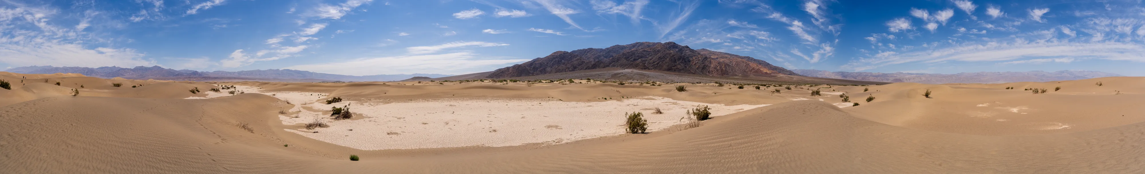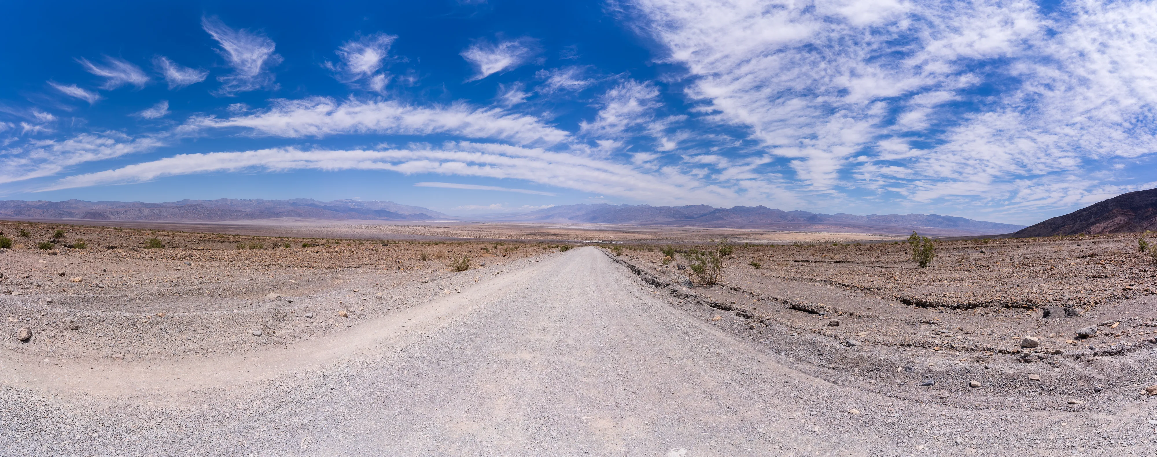 Von Las Vegas aus machen wir uns nach einem kurzen Aufenthalt im Red Rock National Conservation Area auf den Weg zum heißesten Ort der Welt – dem Death Valley. 1913 wurde hier eine Temperatur von 56,7 ºC gemessen - mehr als jemals sonst irgendwo. Allerdings geht man mittlerweile von einem Beobachtungsfehler aus - das macht jedoch nichts, denn 2010 hat ein automatisiertes System den unbestrittenen Wert von 54,4 ºC gemessen und somit den Rekord “abgesichert”. Das “Tal des Todes” hat seinen Namen nicht nur daher, dass die Temperaturen hier regelmäßig über 40 °C steigen (im Juli liegt die mittlere Tagestemperatur bereits knapp über 30 ºC, die mittlere Tagesmaxtemperatur sogar oberhalb von 40 ºC), sondern da es generell eher lebensfeindliche Bedingungen aufweist. Das Tal befindet sich in einem Kessel der Mojave-Wüste und zeichnet sich neben den hohen Temperaturen im Sommer auch durch niedrige Temperaturen im Winter aus. Außerdem ist es sehr trocken - da die Wolken an umschließenden Bergen abregnen und vom Pazifik kommend an fünf Bergketten bereits alle Feuchtigkeit verlieren. In Summe also kein besonders angenehmes Klima.