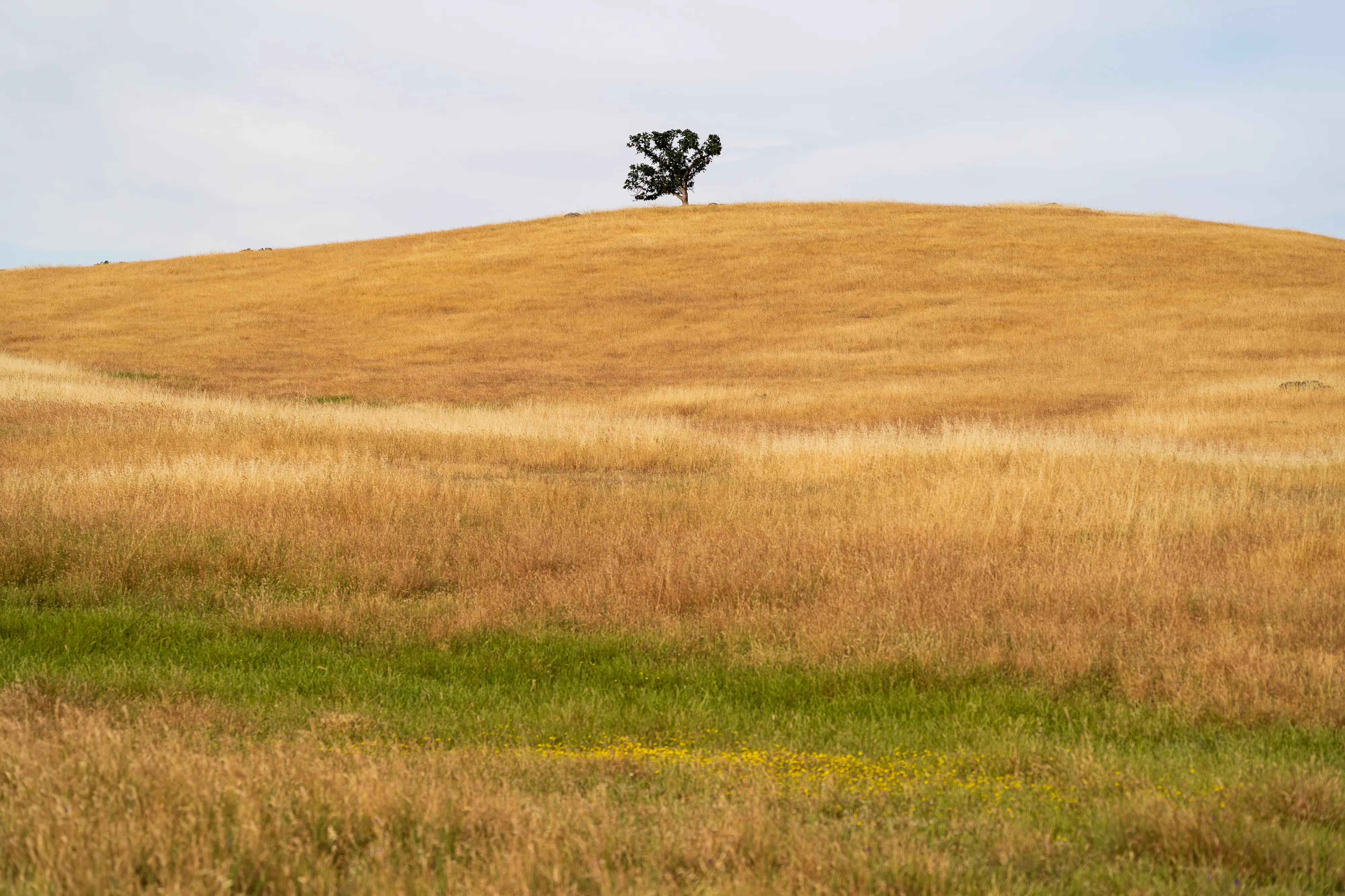 Nach einer nicht ganz so bequemen Nacht im Auto machen wir uns morgens auf den Weg durch eine Landschaft sanfter Hügel überzogen von goldenem Gras und vereinzelten Bäumen.