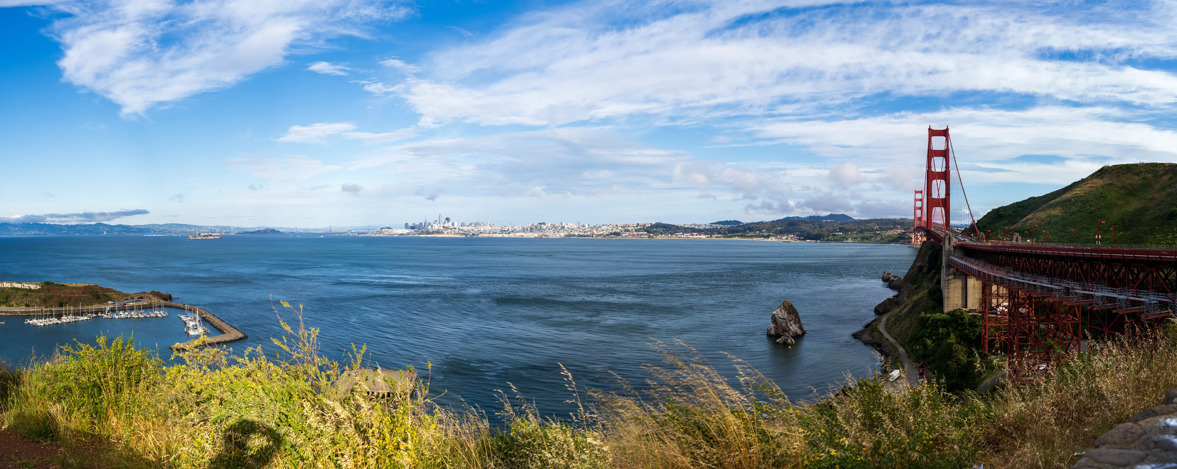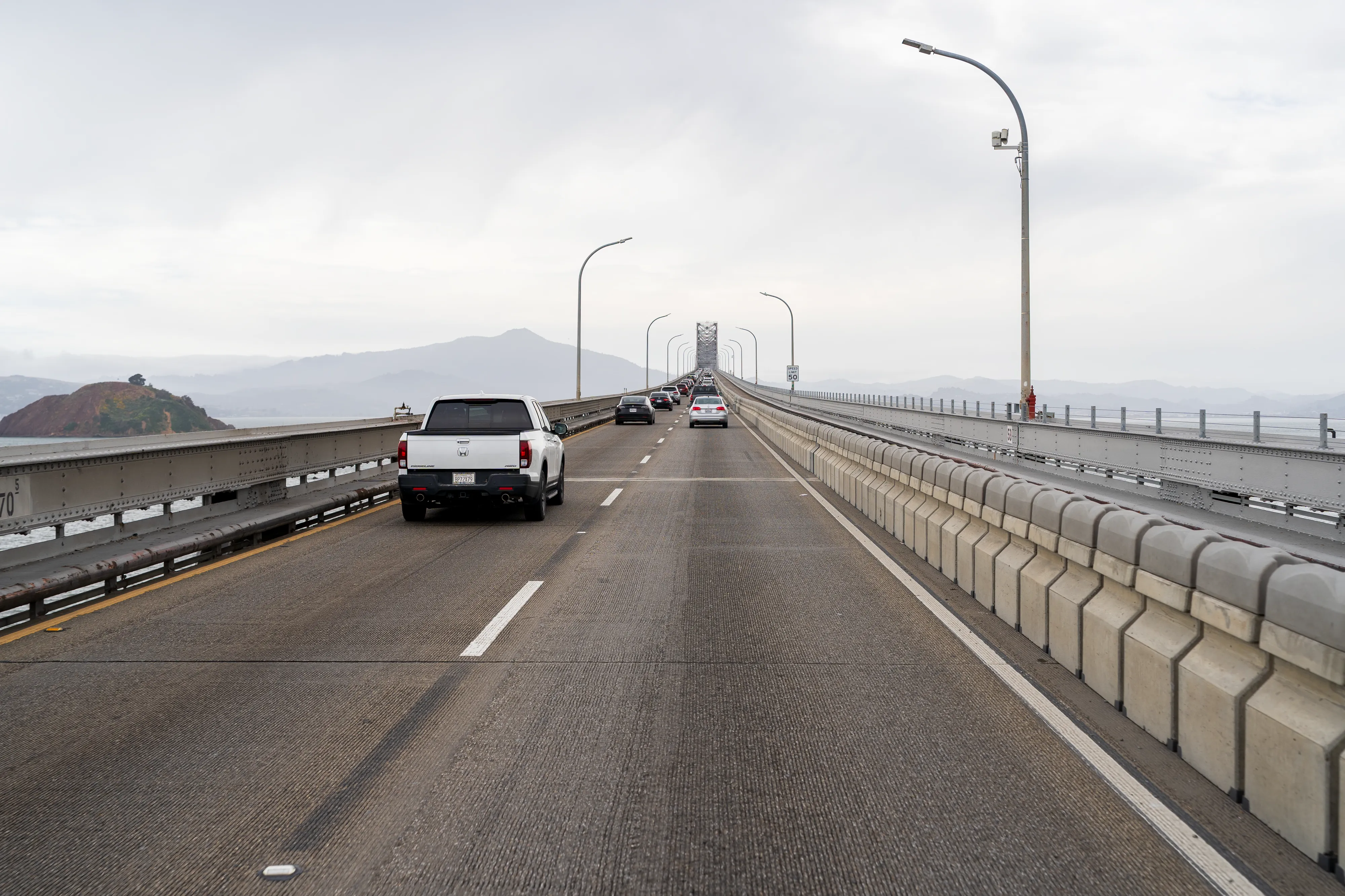 Auf dem Weg Richtung Bay Area rollen wir weiter durch eine Landschaft sanfter Hügel mit goldenem Gras - bis die Natur immer mehr den Städten und Siedlungen weicht und wir vorbei an bekannten Namen wie Oakland und Berkeley und schließlich über die Richmond Bridge ins Marin County fahren.