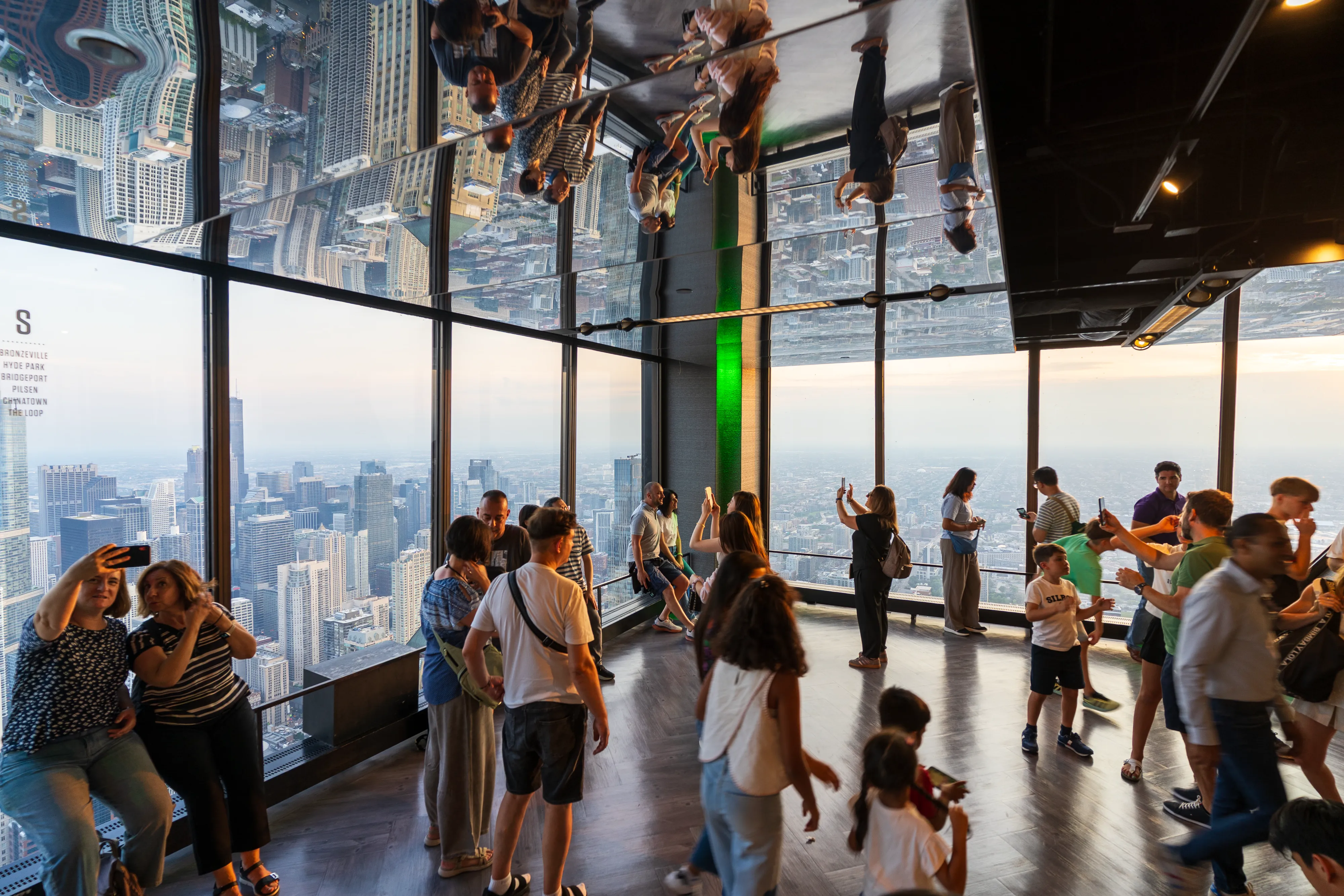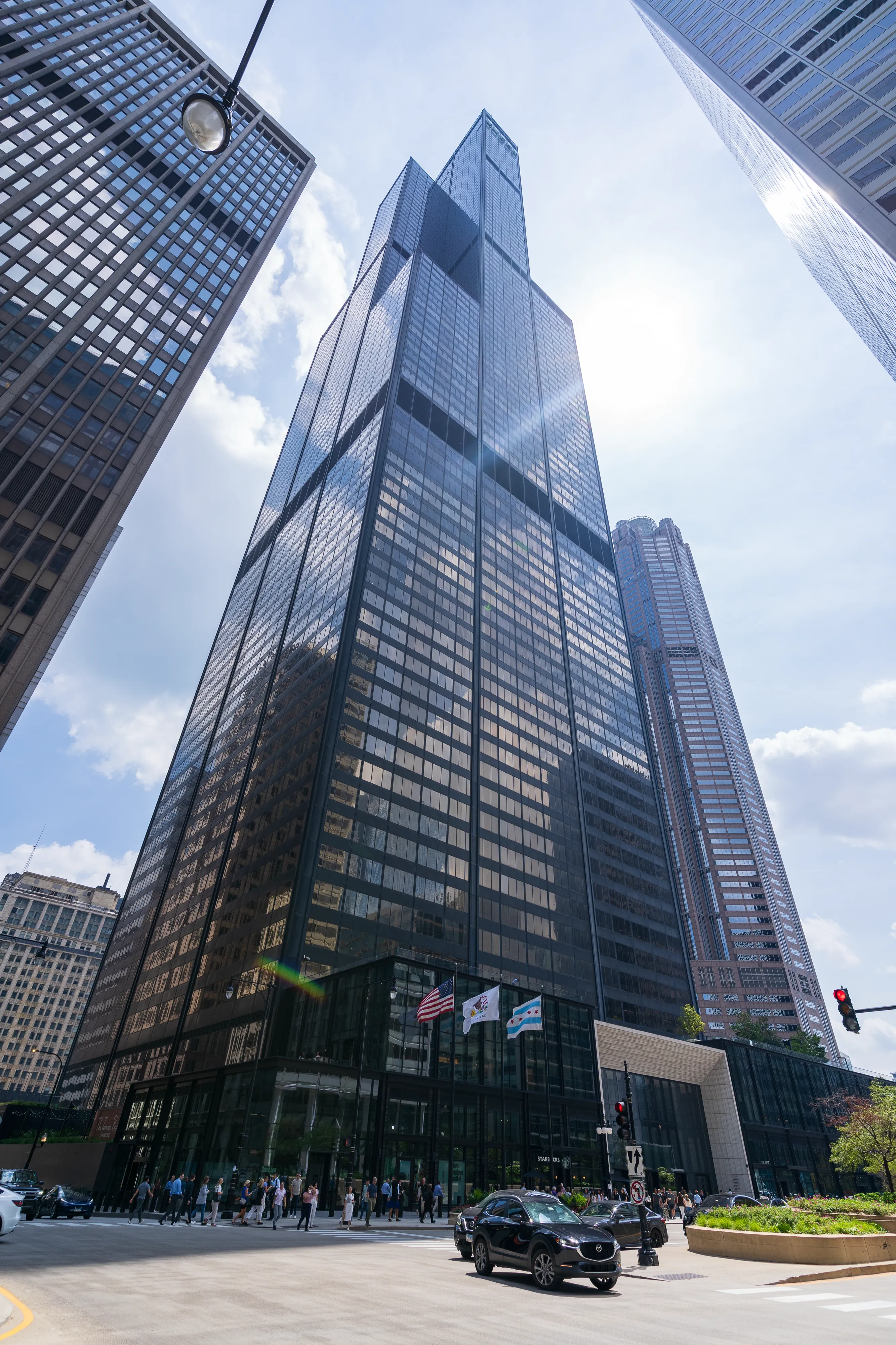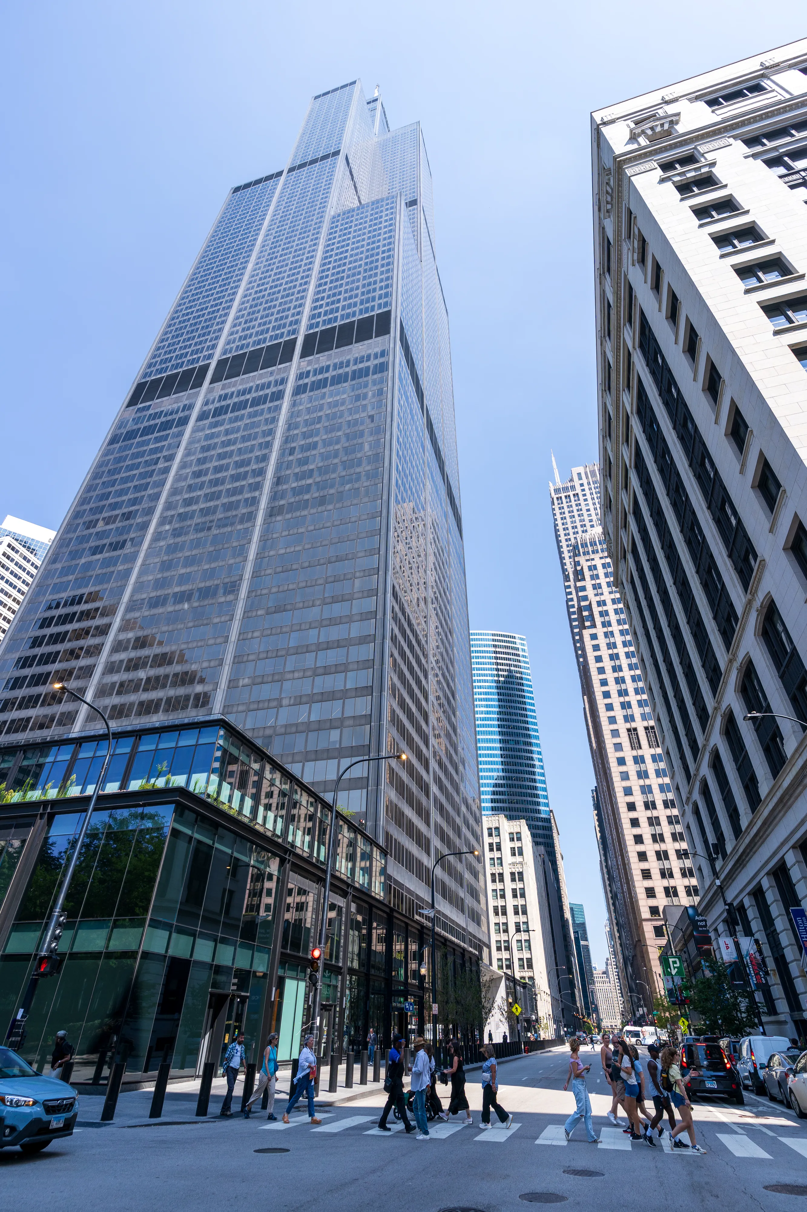 Die zweite bei Touristen beliebte Aussichtsplattform befindet sich im Willis Tower: dem höchsten Gebäude von Chicago (bis 2009 Sears Tower), dem dritthöchsten Hochhaus der USA (das höchste außerhalb New Yorks) und immerhin noch dem 25zig höchsten Gebäude der Welt (nachdem es zum Zeitpunkt seiner Errichtung noch das höchste war). Zumindest Stand August 2025 - aber hier wird die Zukunft sicher noch Änderungen bringen. Zwar ist dessen Aussichtsetage höher gelegen - allerdings sieht man das Gebäude dann nicht selbst 😉.