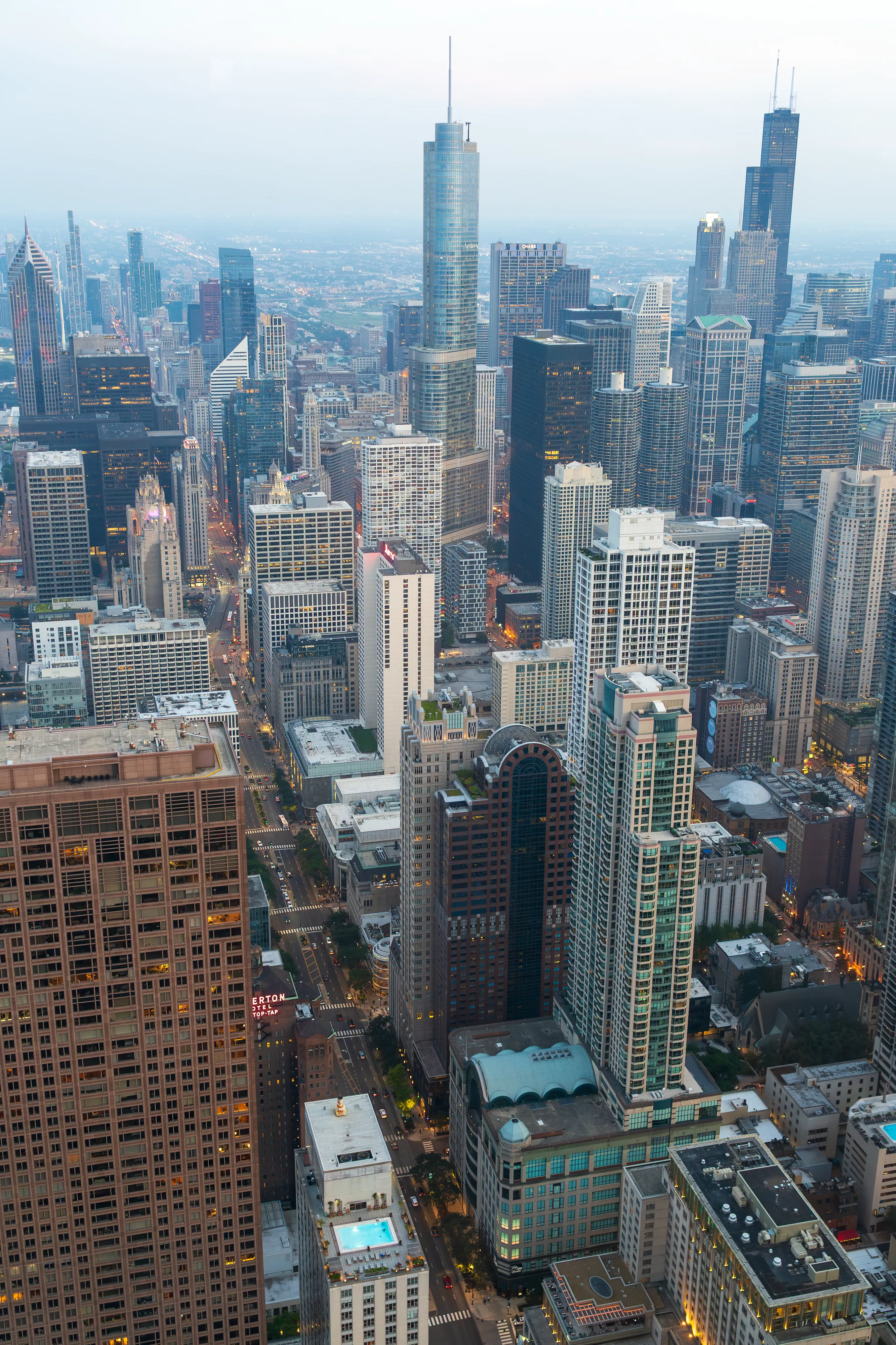 Aus dem 94ten Stock auf 314 Meter Höhe hat man vom 360 Chicago Observation Deck einen grandiosen Blick auf die Skyline von Chicago - insbesondere deshalb, da das Gebäude selbst am nördlichen Rand der Innenstadt liegt.